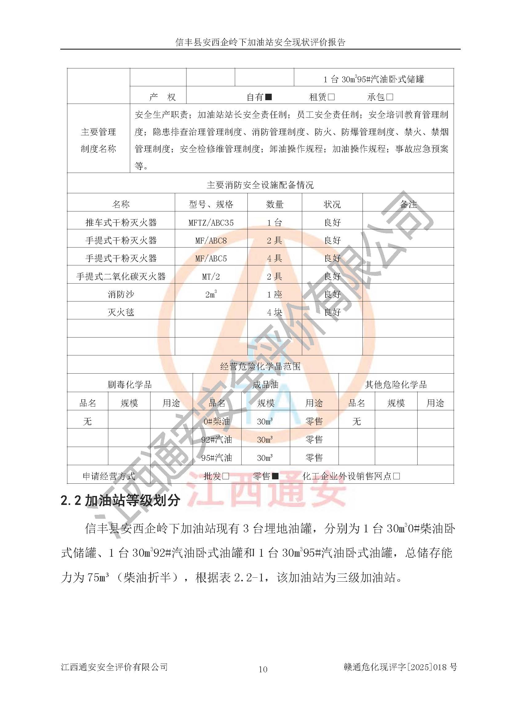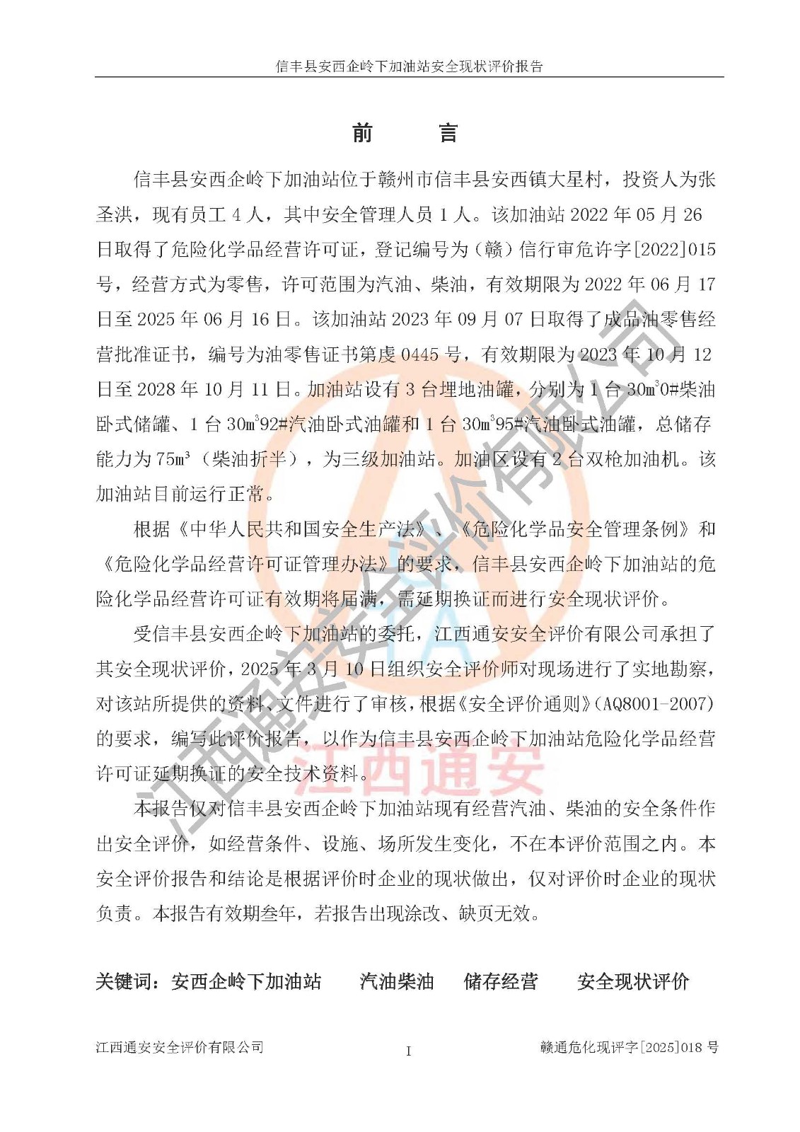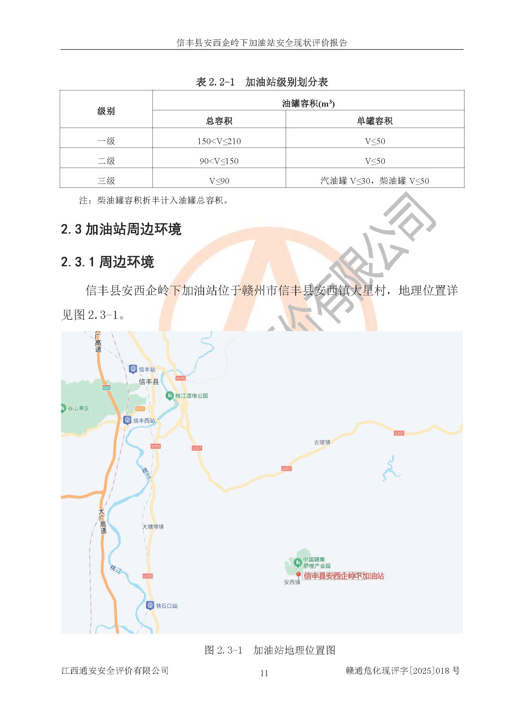 評價報告名稱 | 信豐縣安西企嶺下加油站安全現(xiàn)狀評價報告 | |||