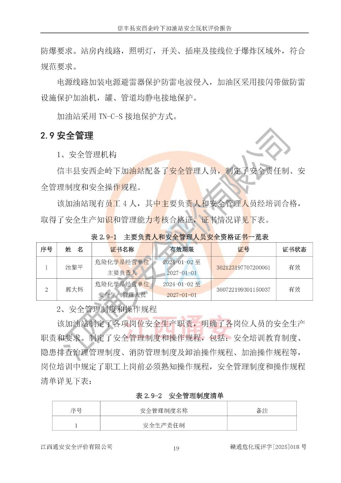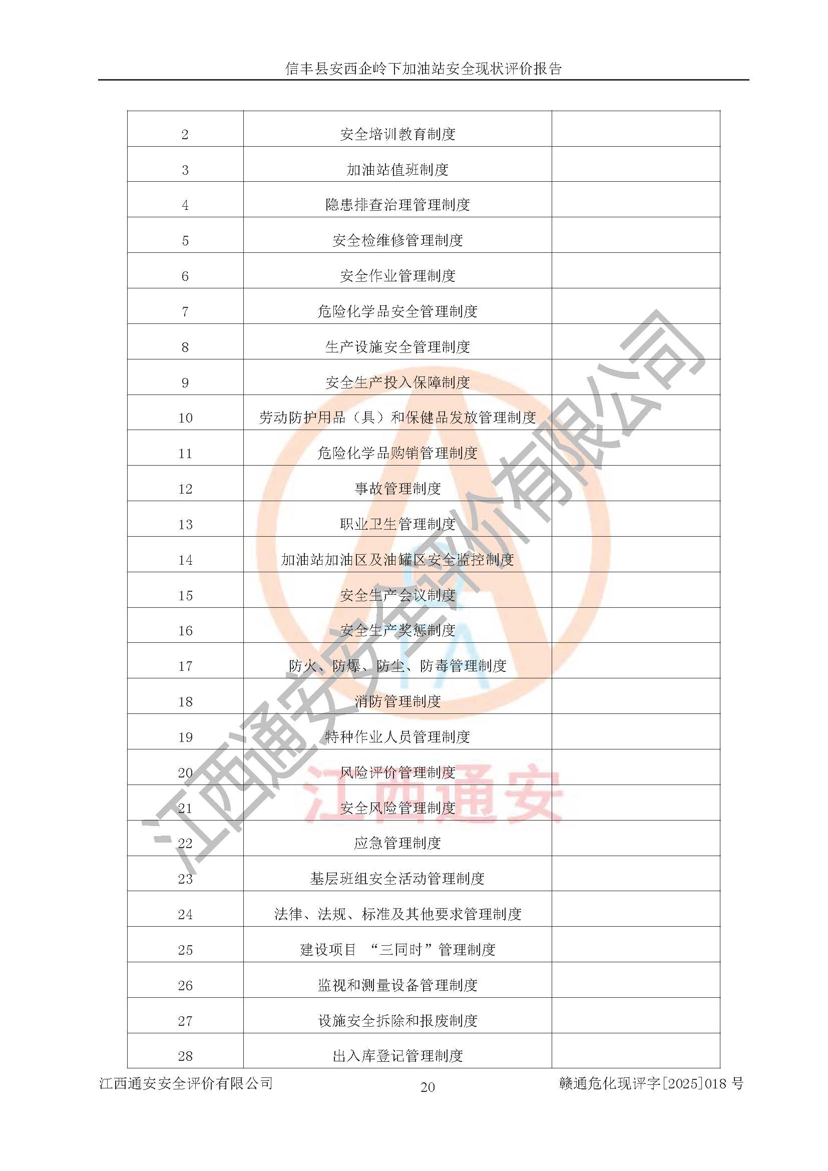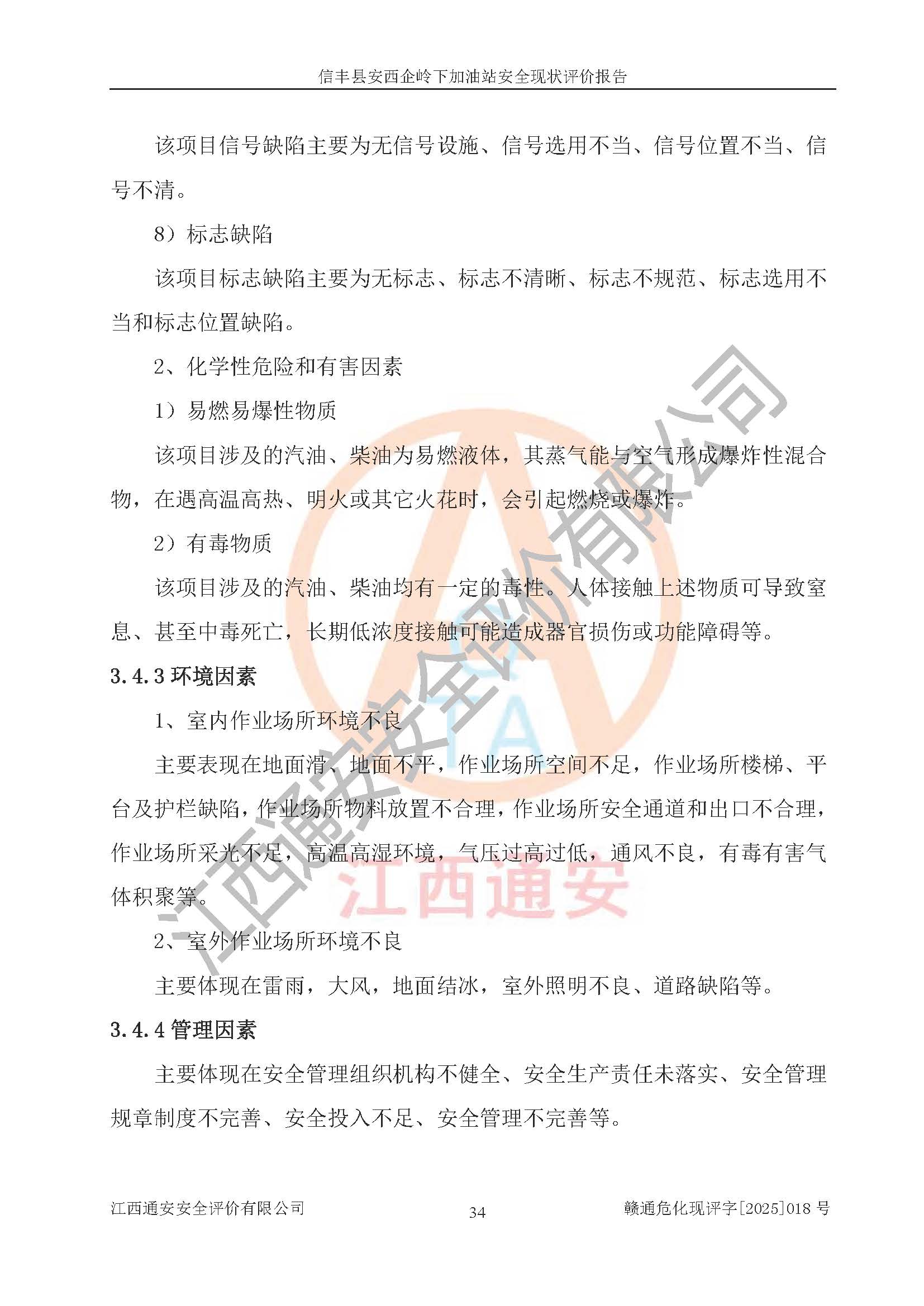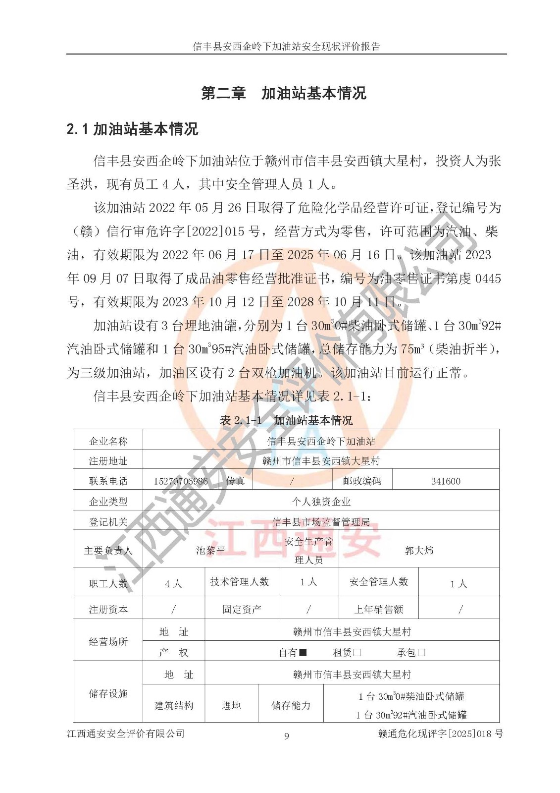 評價報告名稱 | 信豐縣安西企嶺下加油站安全現(xiàn)狀評價報告 | |||