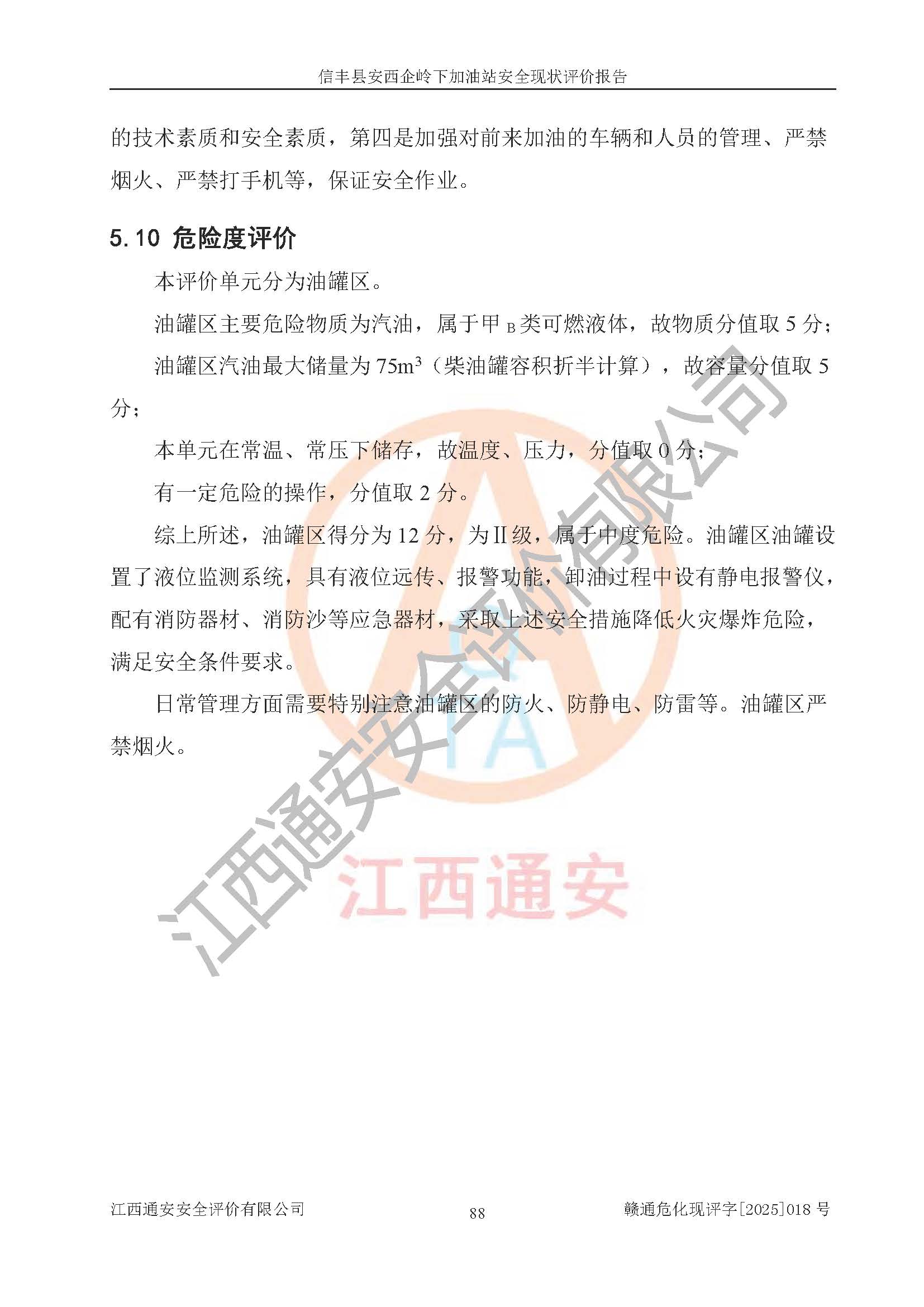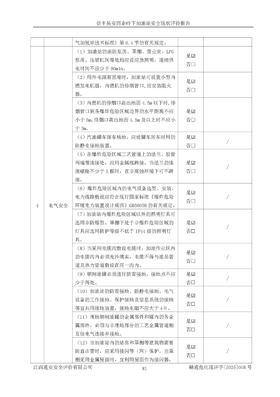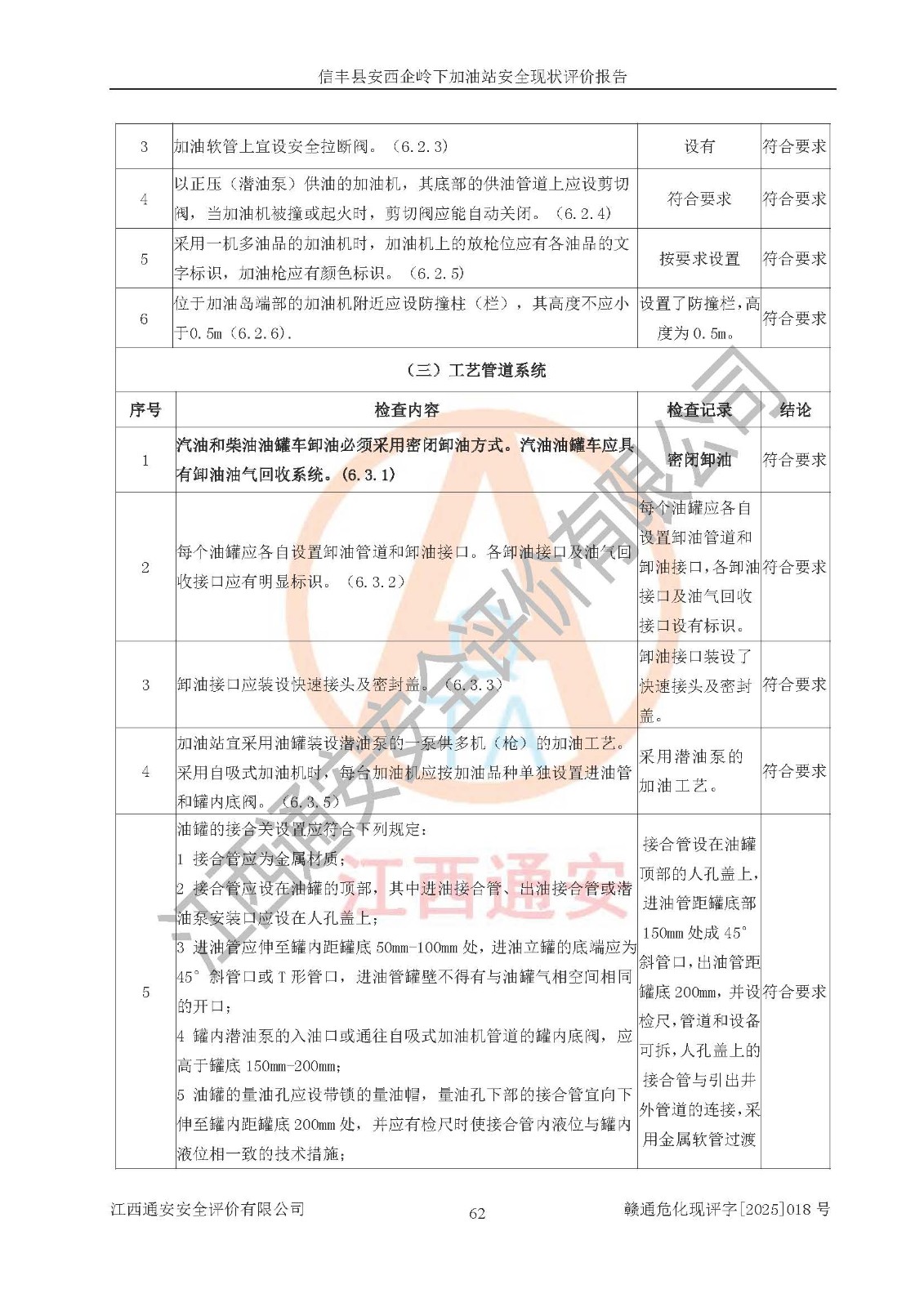 評價結(jié)論 | 信豐縣安西企嶺下加油站安全現(xiàn)狀符合危險化學(xué)品經(jīng)營安全條件。 | |||