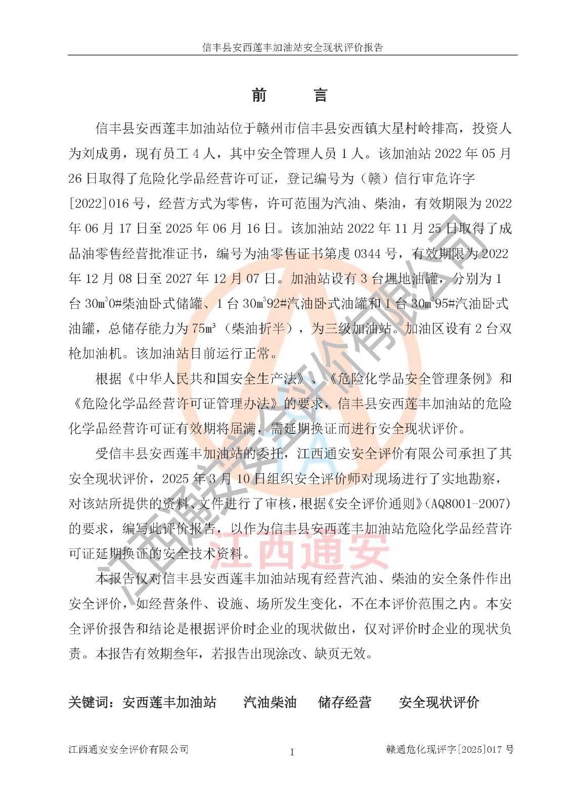 評(píng)價(jià)報(bào)告名稱 | 信豐縣安西蓮豐加油站安全現(xiàn)狀評(píng)價(jià)報(bào)告 | |||