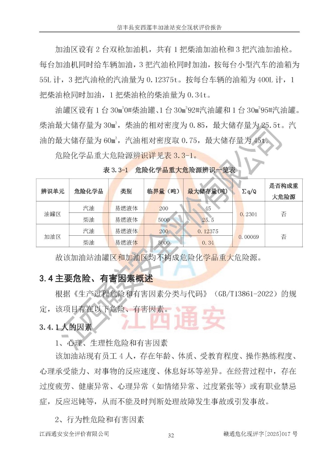 項(xiàng)目簡(jiǎn)介 | 信豐縣安西蓮豐加油站位于贛州市信豐縣安西鎮(zhèn)大星村嶺排高,投資人為劉成勇,現(xiàn)有員工4人,其中安全管理人員1人。該加油站2022年05月26日取得了危險(xiǎn)化學(xué)品經(jīng)營(yíng)許可證,登記編號(hào)為(贛)信行審危許字[2022]016號(hào),經(jīng)營(yíng)方式為零售,許可范圍為汽油、柴油,**期限為2022年06月17日至2025年06月16日。該加油站2022年11月25日取得了成品油零售經(jīng)營(yíng)批準(zhǔn)證書(shū),編號(hào)為油零售證書(shū)第虔0344號(hào),**期限為2022年12月08日至2027年12月07日。加油站設(shè)有3臺(tái)埋地油罐,分別為1臺(tái)30m30#柴油臥式儲(chǔ)罐、1臺(tái)30m392#汽油臥式油罐和1臺(tái)30m395#汽油臥式油罐,總儲(chǔ)存能力為75m3(柴油折半),為三級(jí)加油站。加油區(qū)設(shè)有2臺(tái)雙槍加油機(jī)。該加油站目前運(yùn)行正常。 | |||