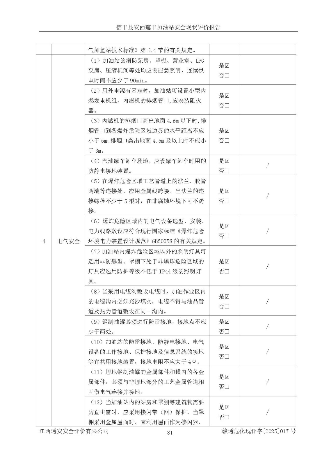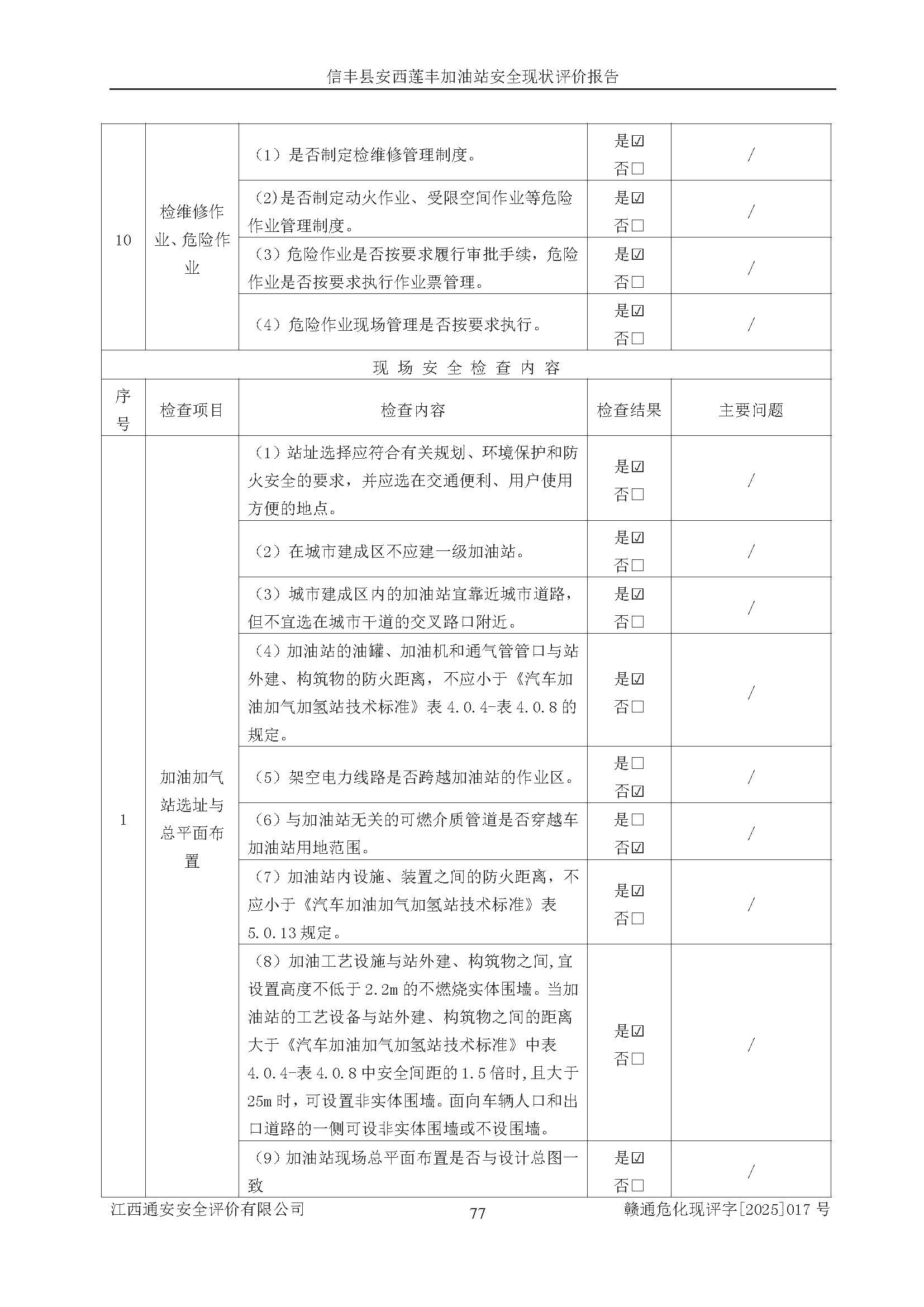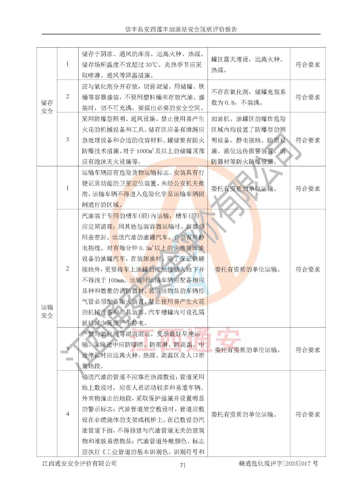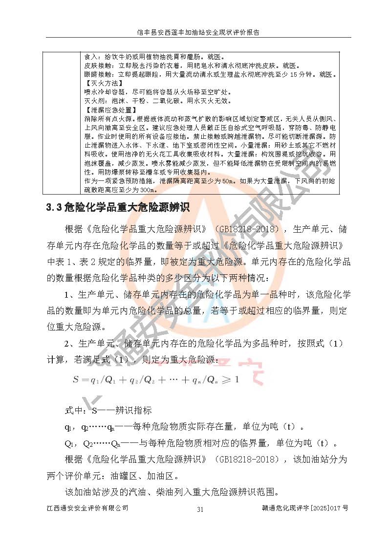 評(píng)價(jià)結(jié)論 | 信豐縣安西蓮豐加油站安全現(xiàn)狀符合危險(xiǎn)化學(xué)品經(jīng)營(yíng)安全條件。 | |||