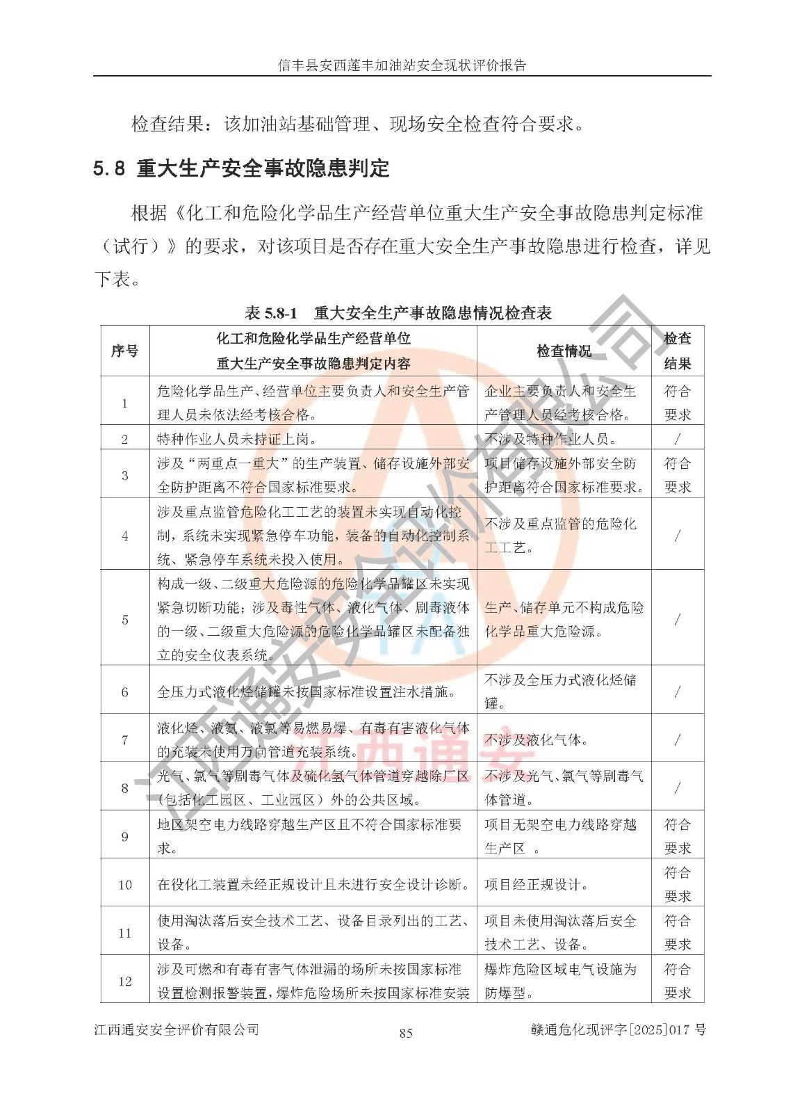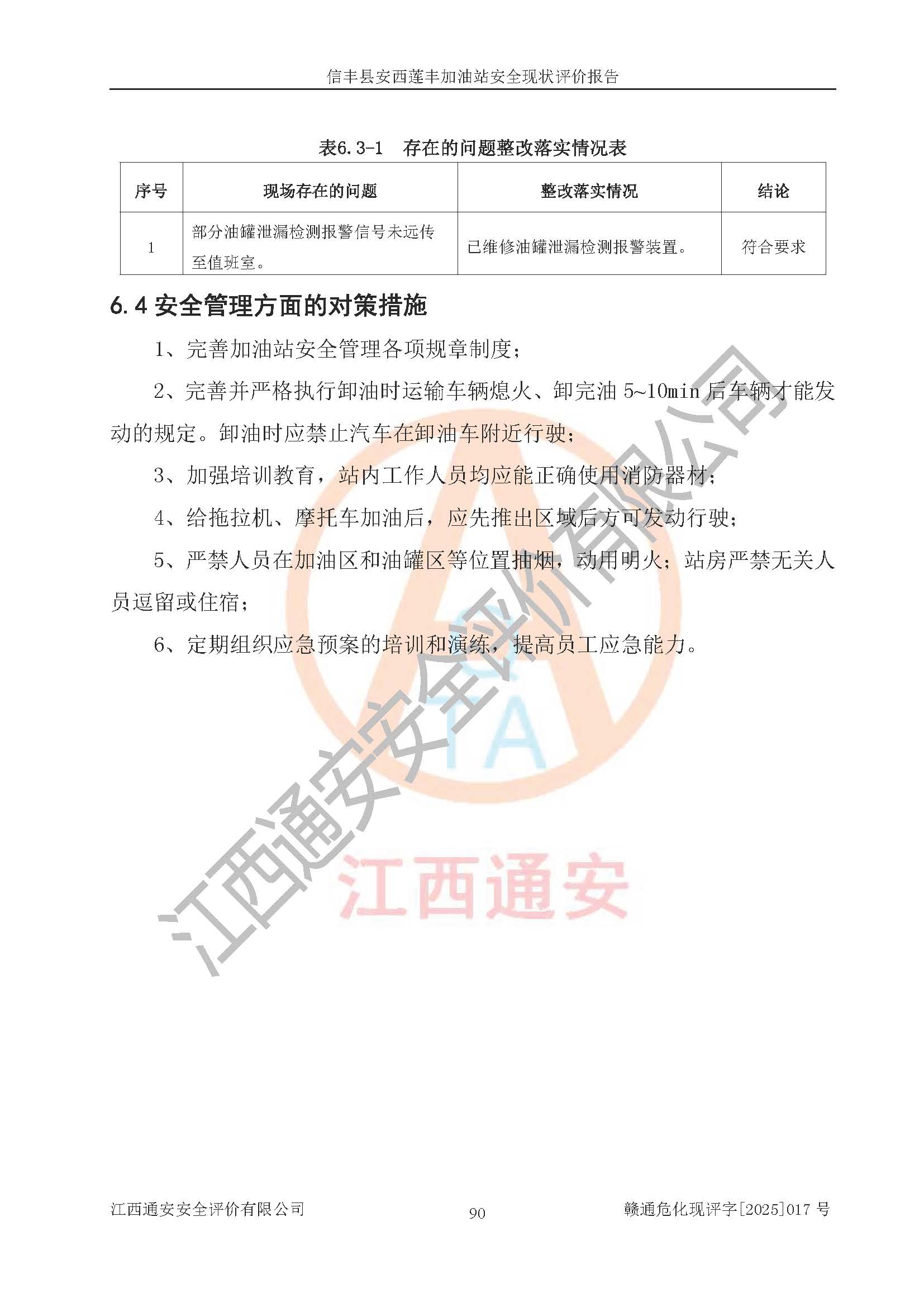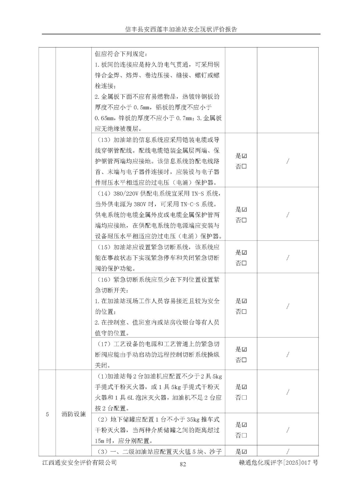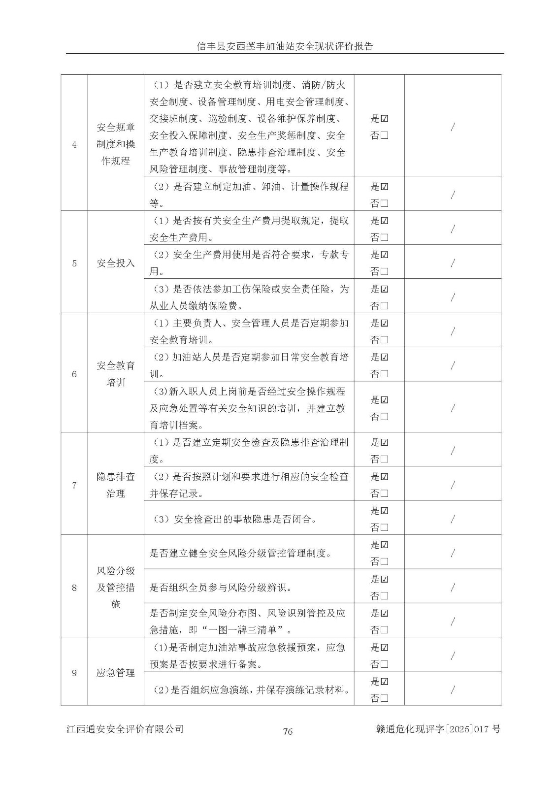 評(píng)價(jià)結(jié)論 | 信豐縣安西蓮豐加油站安全現(xiàn)狀符合危險(xiǎn)化學(xué)品經(jīng)營(yíng)安全條件。 | |||