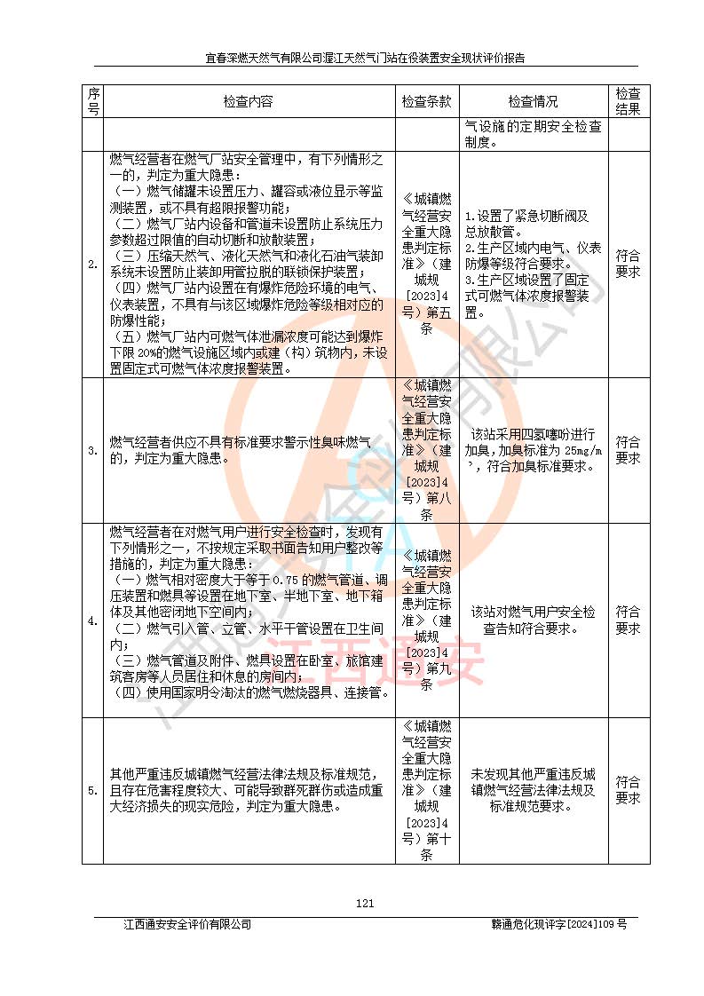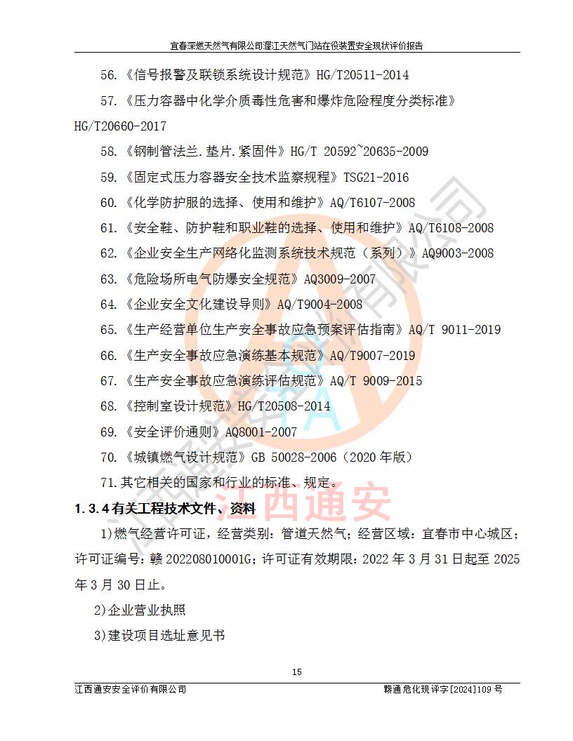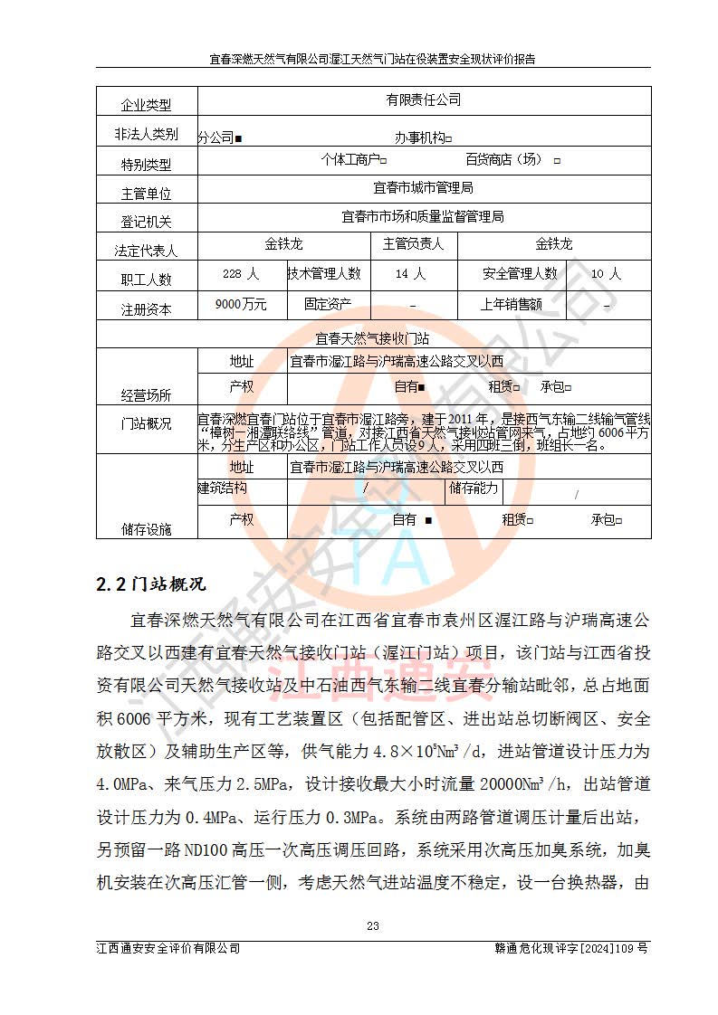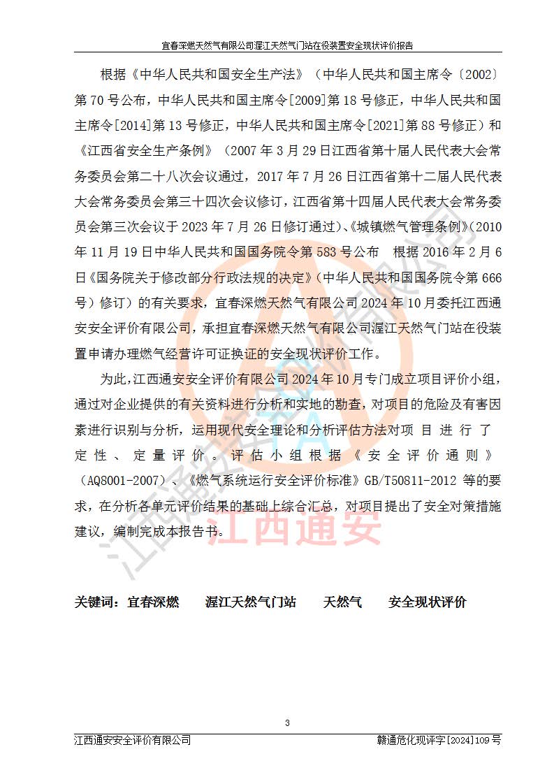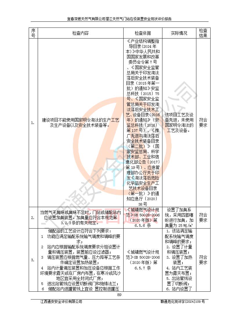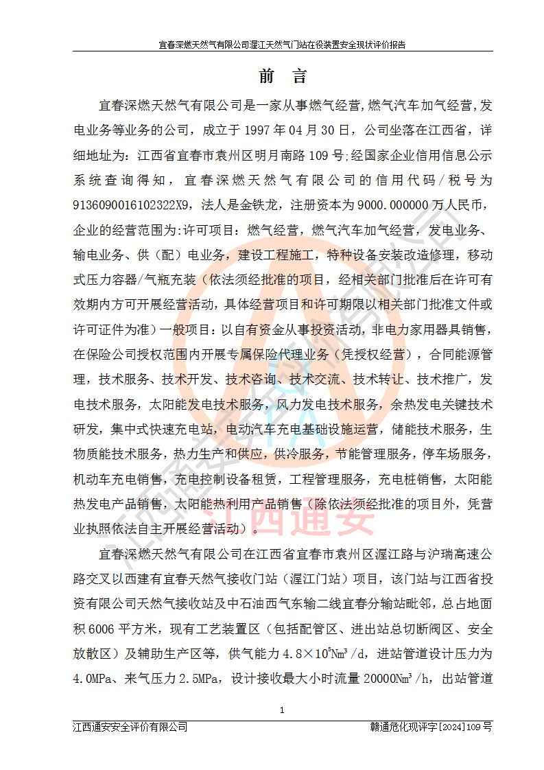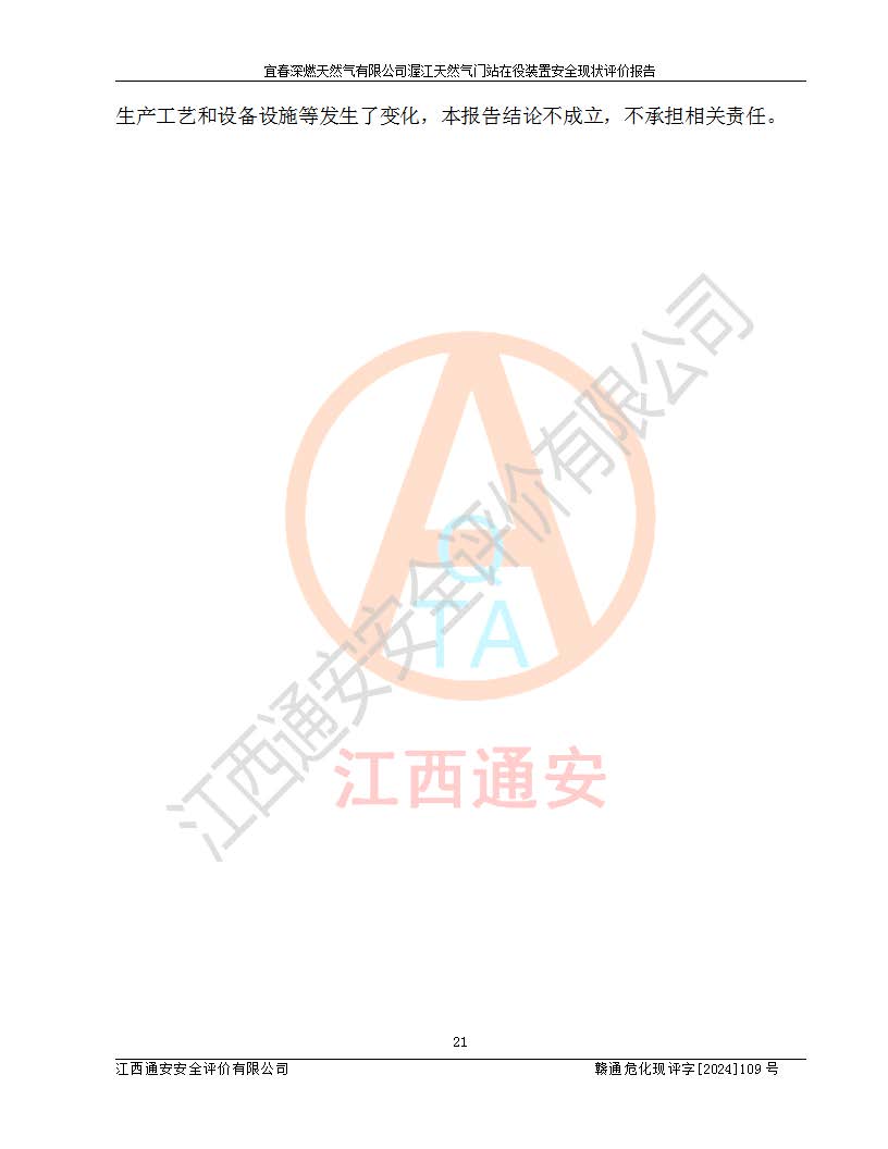 項(xiàng)目名稱 | 宜春深燃天然氣有限公司渥江天然氣門站在役裝置安全現(xiàn)狀評價(jià)報(bào)告 | ||||