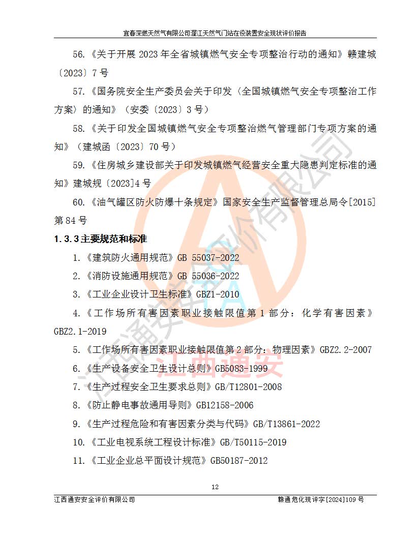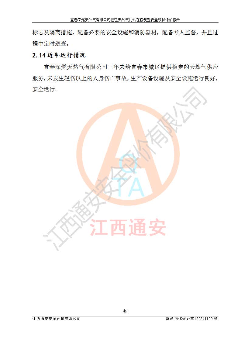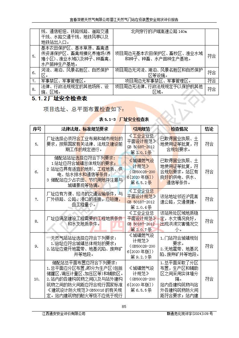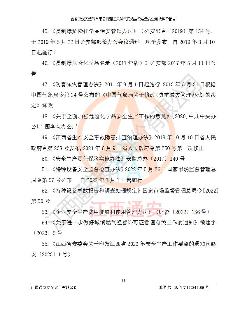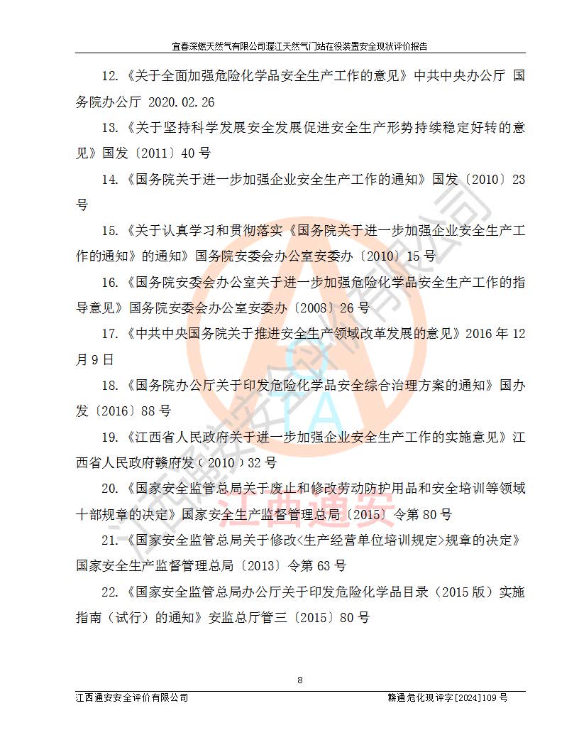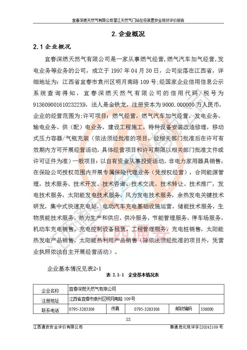 項(xiàng)目名稱 | 宜春深燃天然氣有限公司渥江天然氣門站在役裝置安全現(xiàn)狀評價(jià)報(bào)告 | ||||