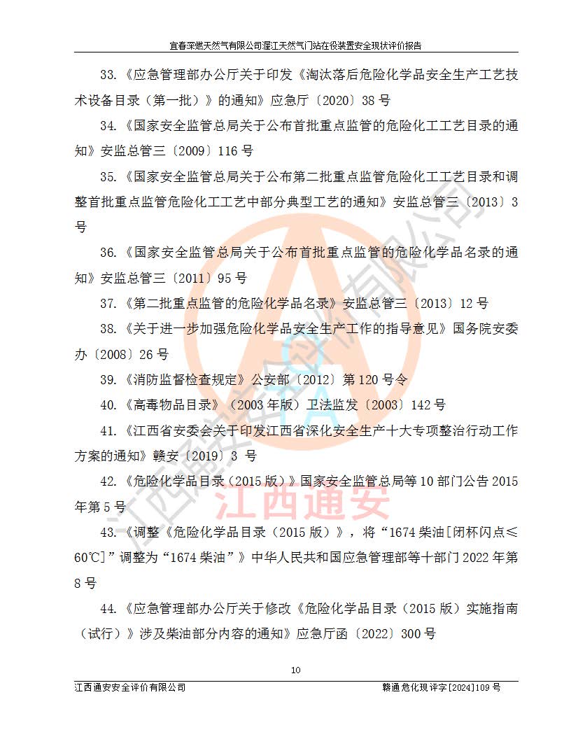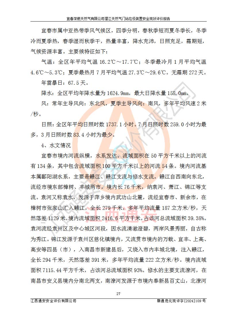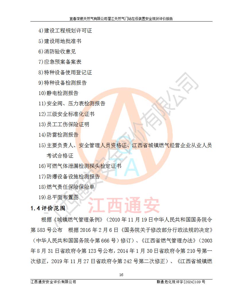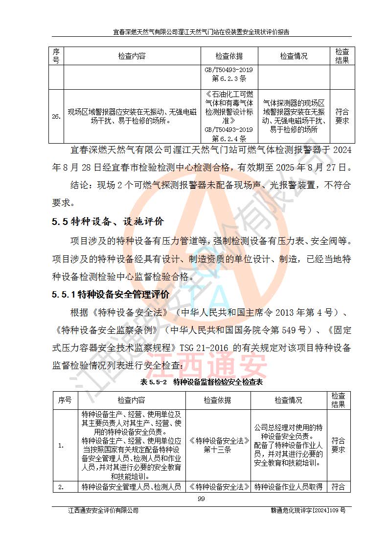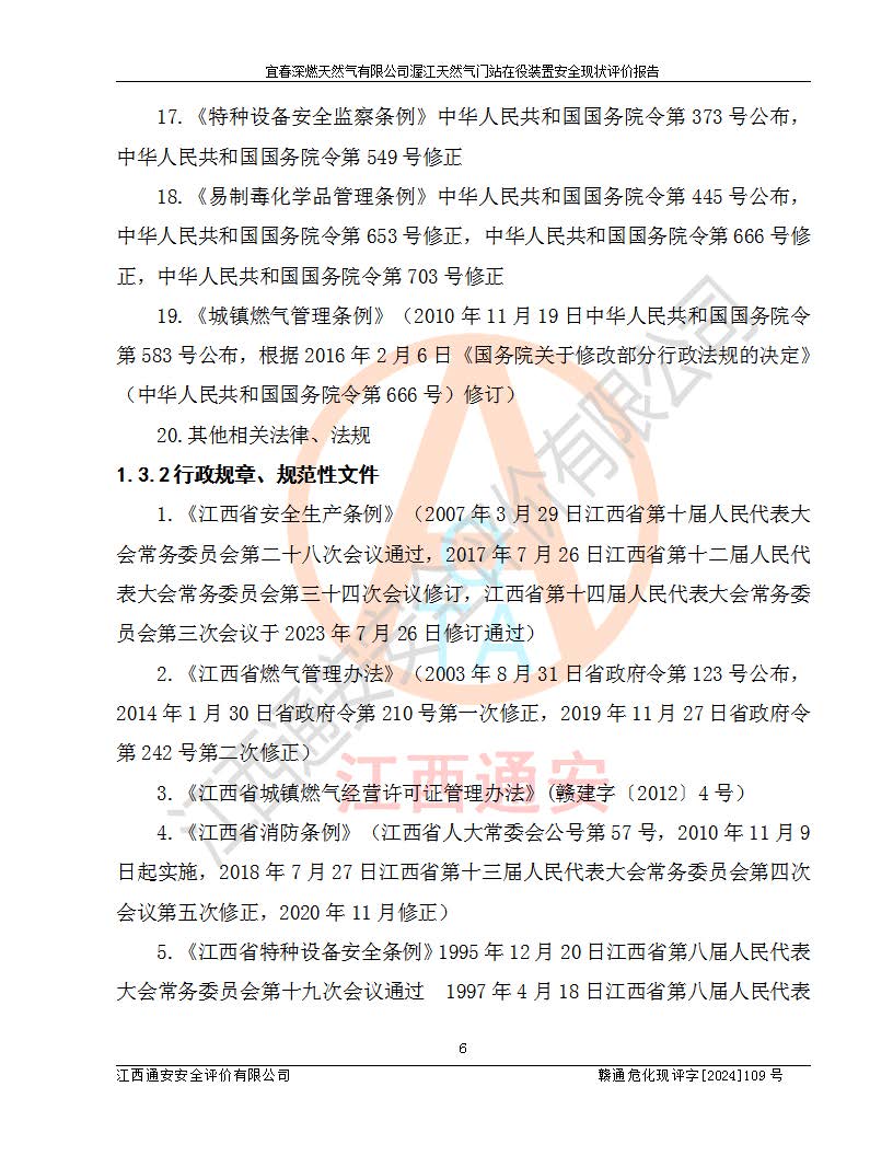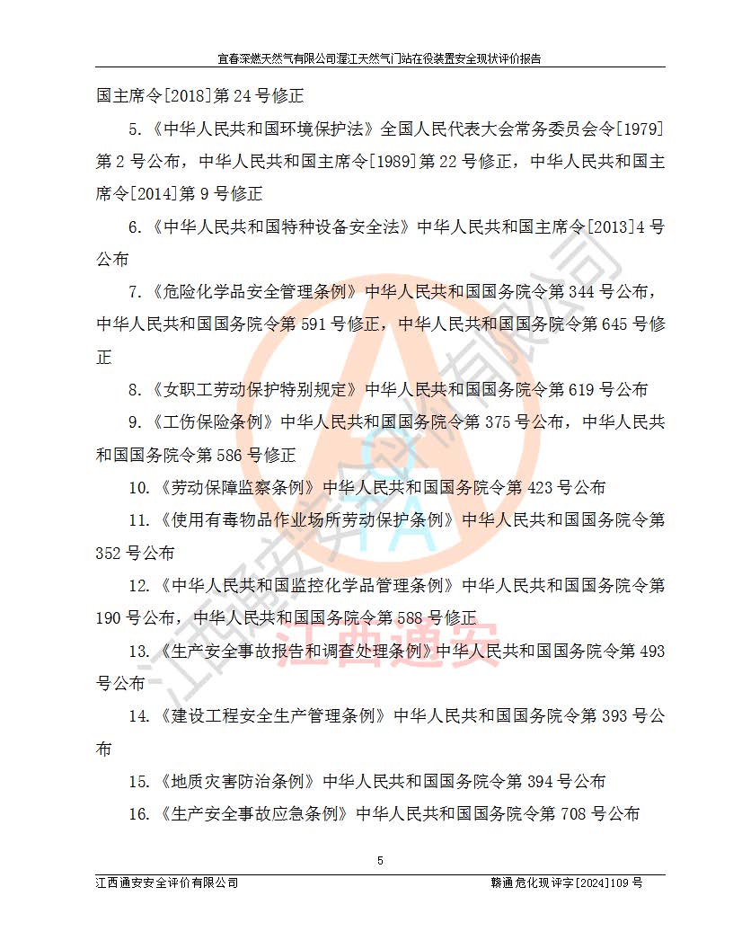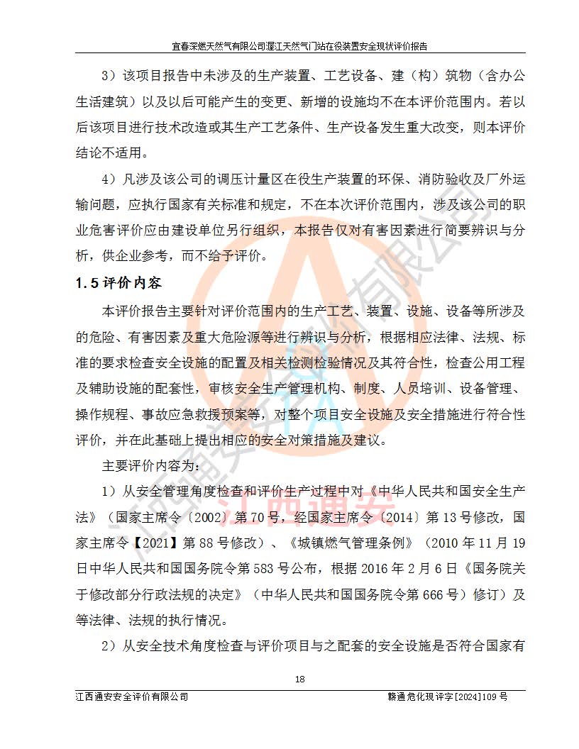 項(xiàng)目名稱 | 宜春深燃天然氣有限公司渥江天然氣門站在役裝置安全現(xiàn)狀評價(jià)報(bào)告 | ||||