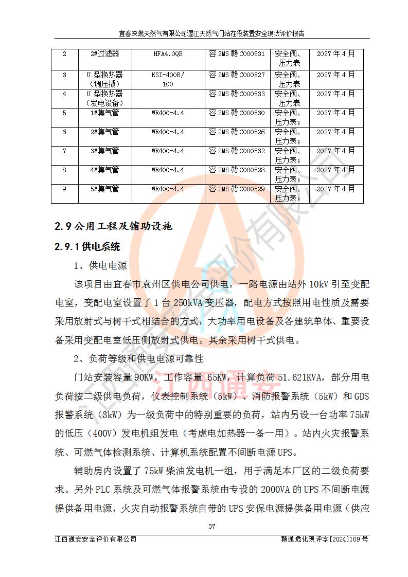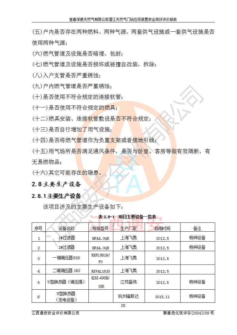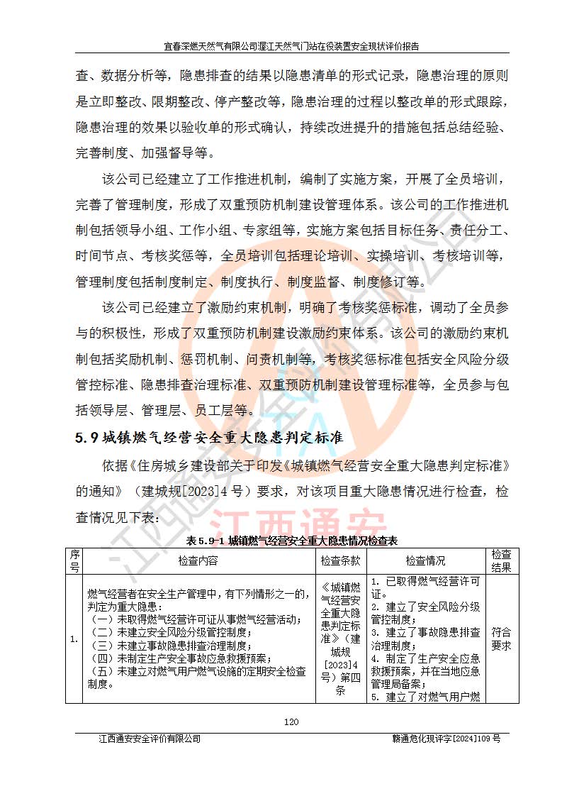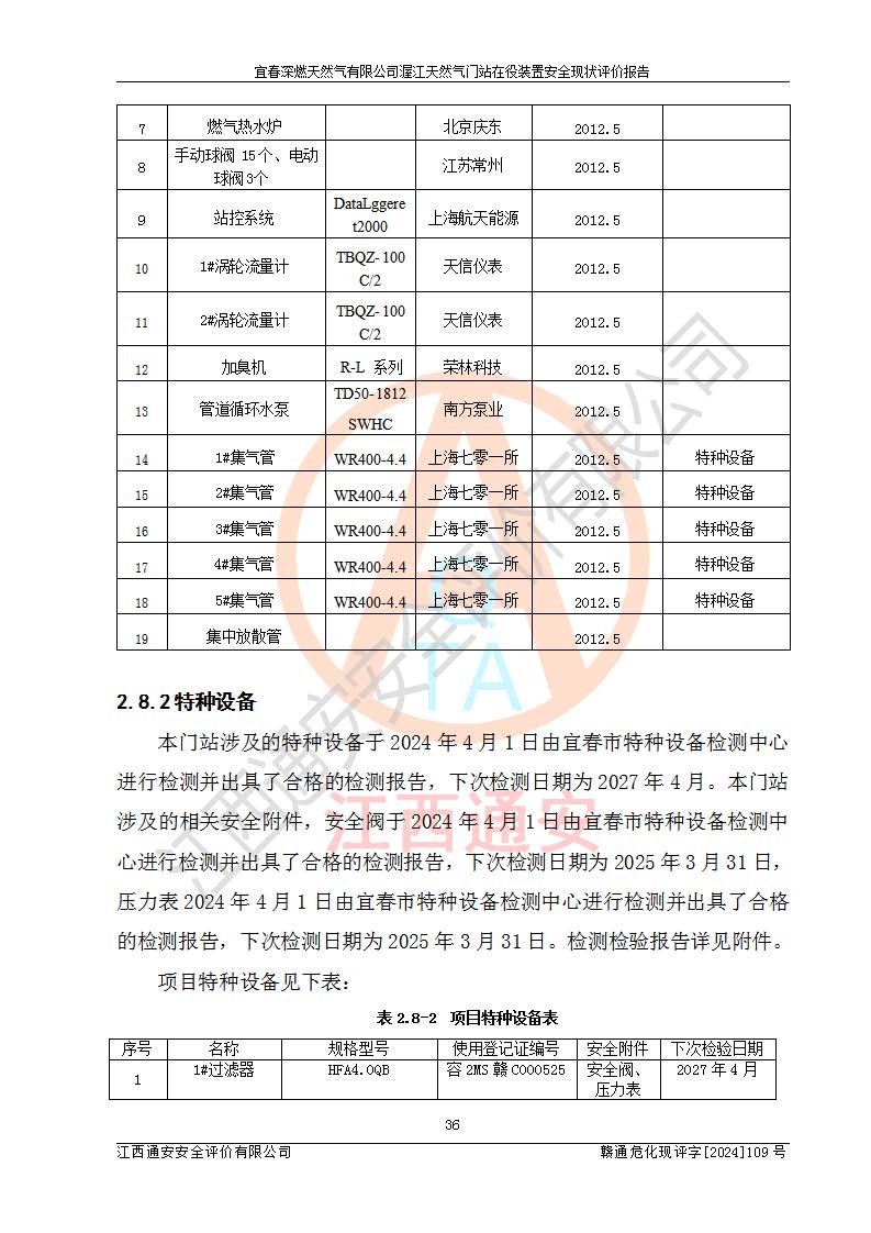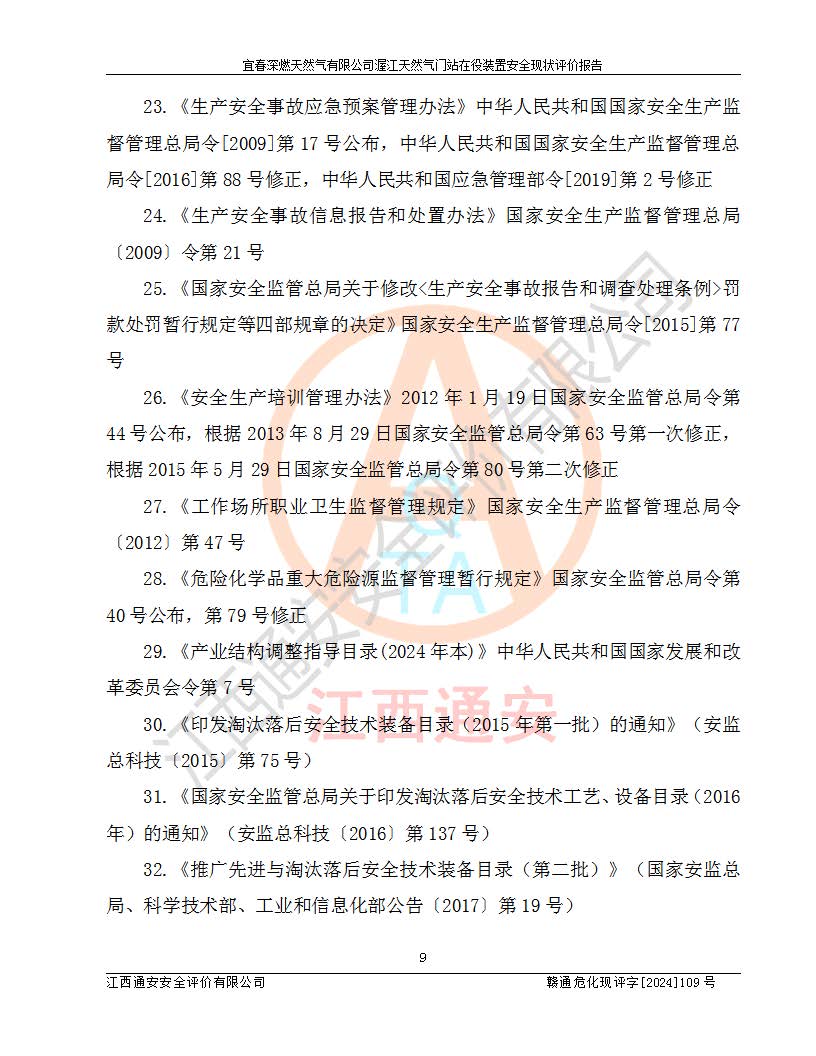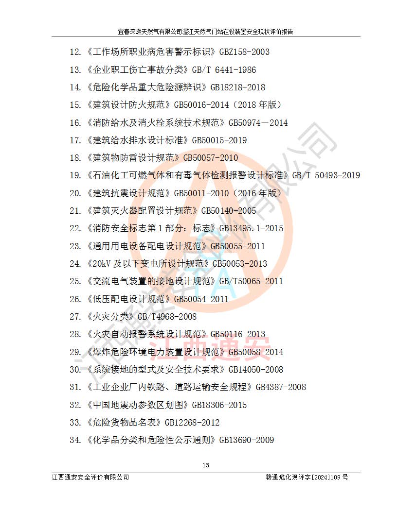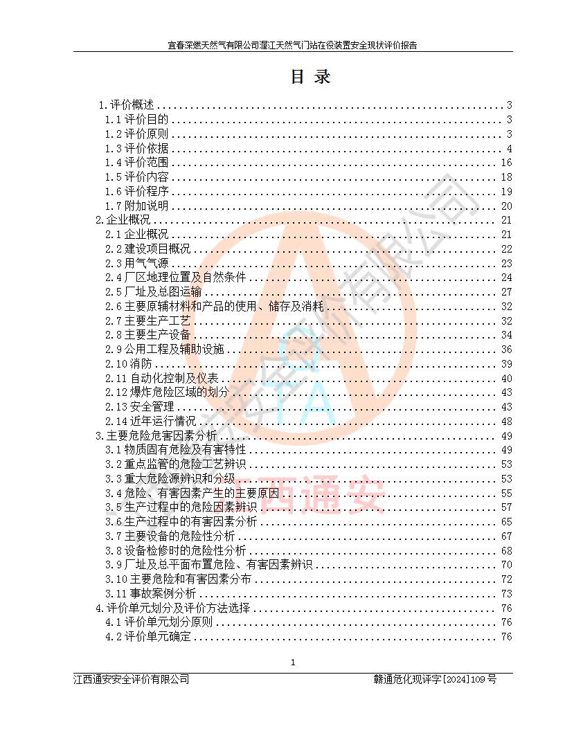 項(xiàng)目名稱 | 宜春深燃天然氣有限公司渥江天然氣門站在役裝置安全現(xiàn)狀評價(jià)報(bào)告 | ||||