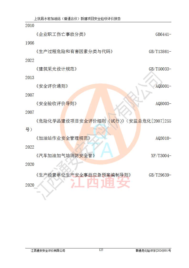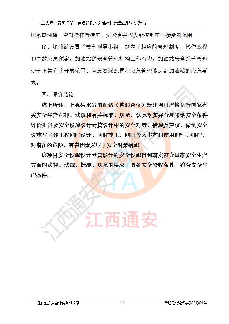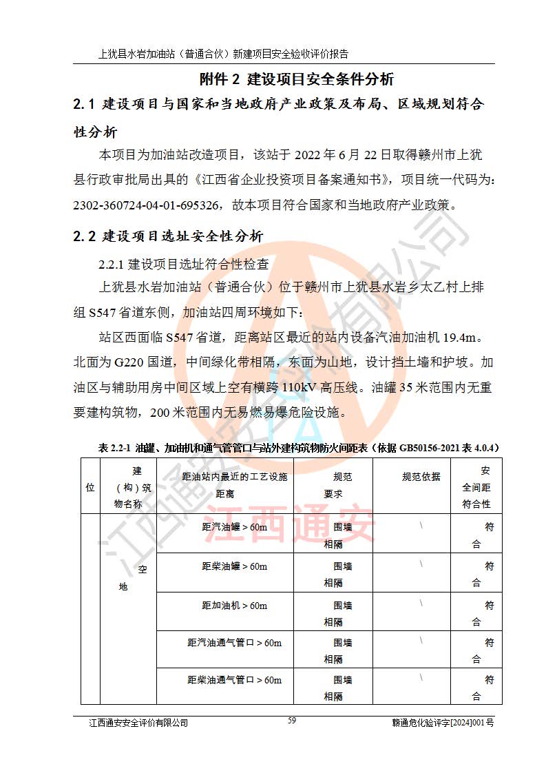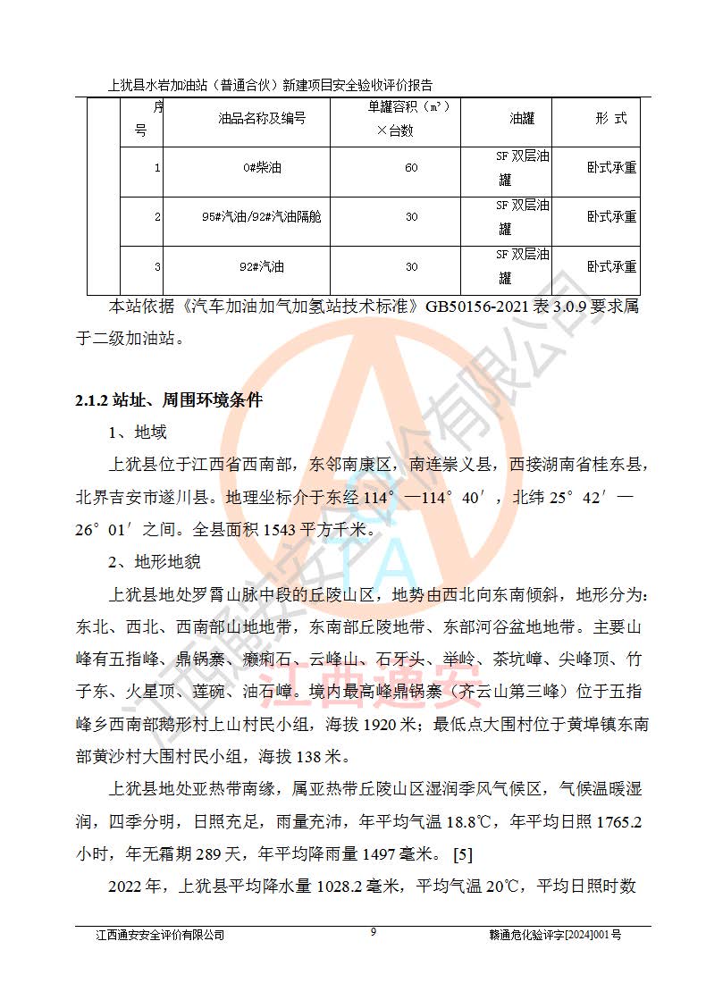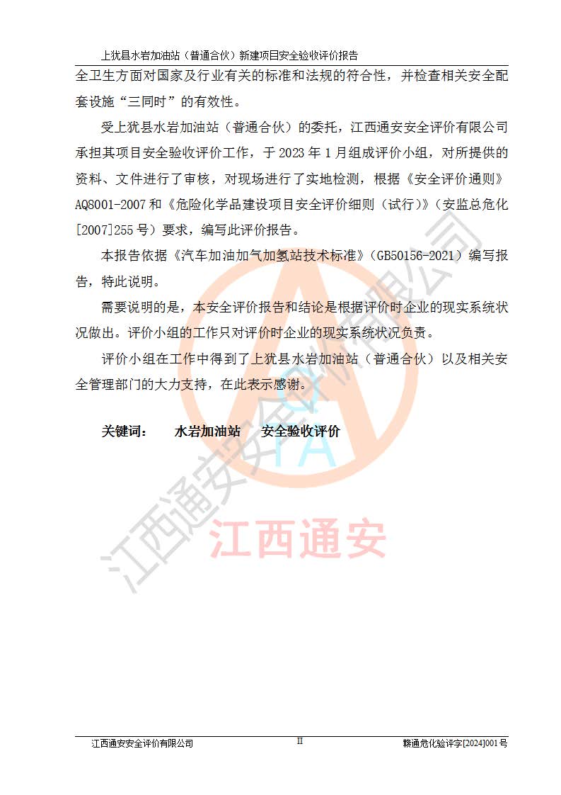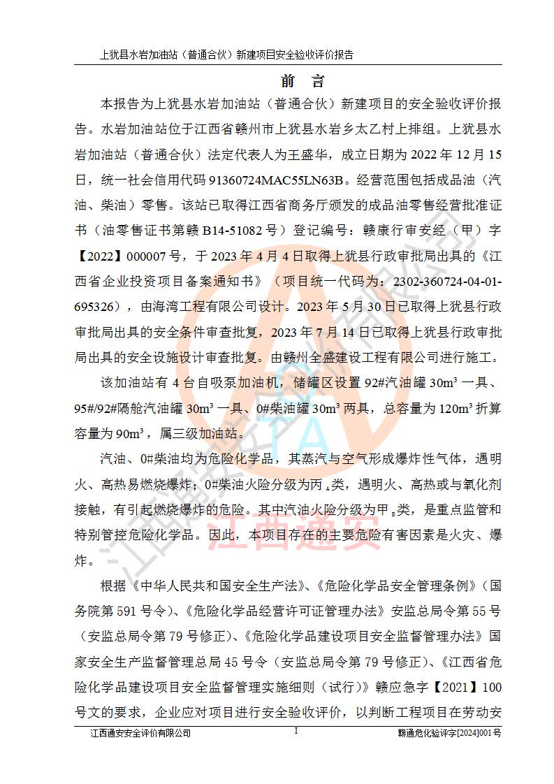 項(xiàng)目名稱(chēng) | 上猶縣水巖加油站(普通合伙)新建項(xiàng)目安全驗(yàn)收評(píng)價(jià)報(bào)告 | ||||