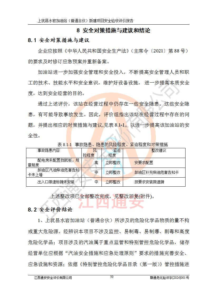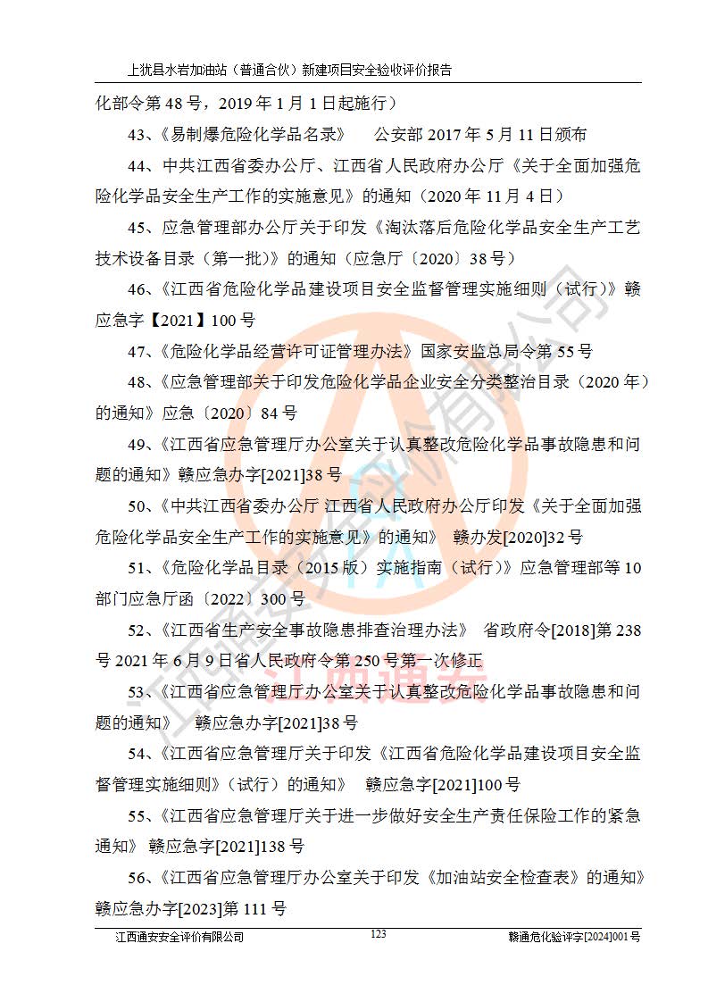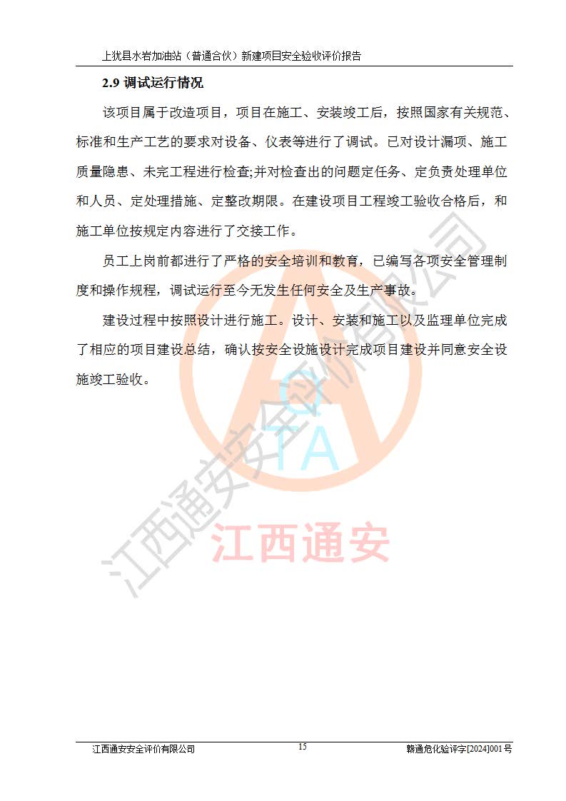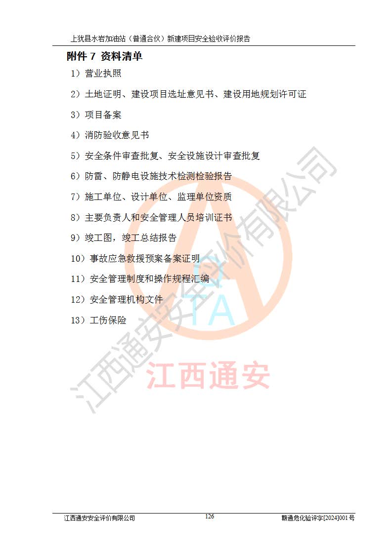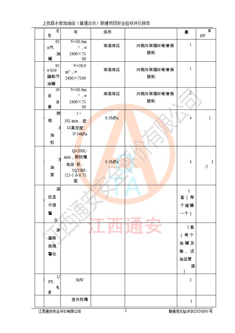 項(xiàng)目名稱(chēng) | 上猶縣水巖加油站(普通合伙)新建項(xiàng)目安全驗(yàn)收評(píng)價(jià)報(bào)告 | ||||