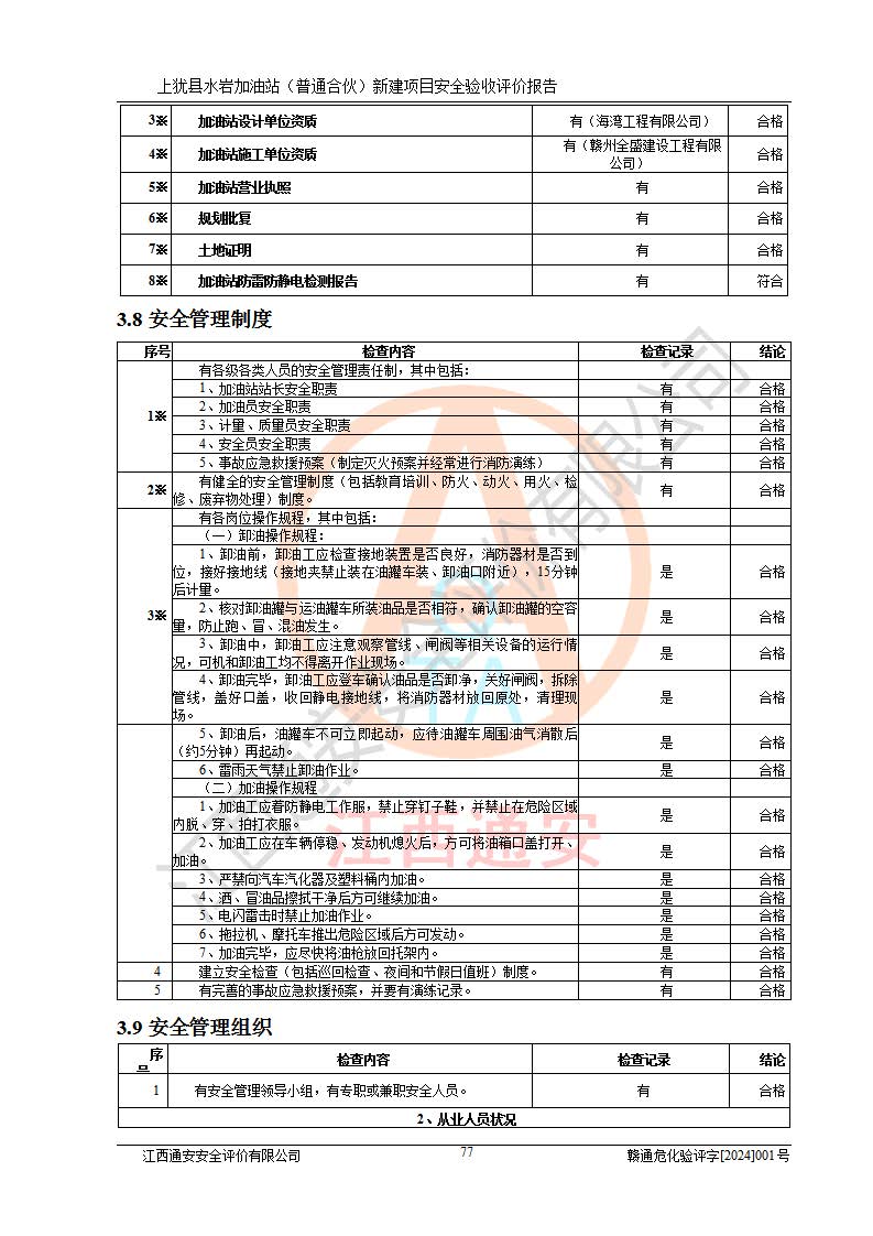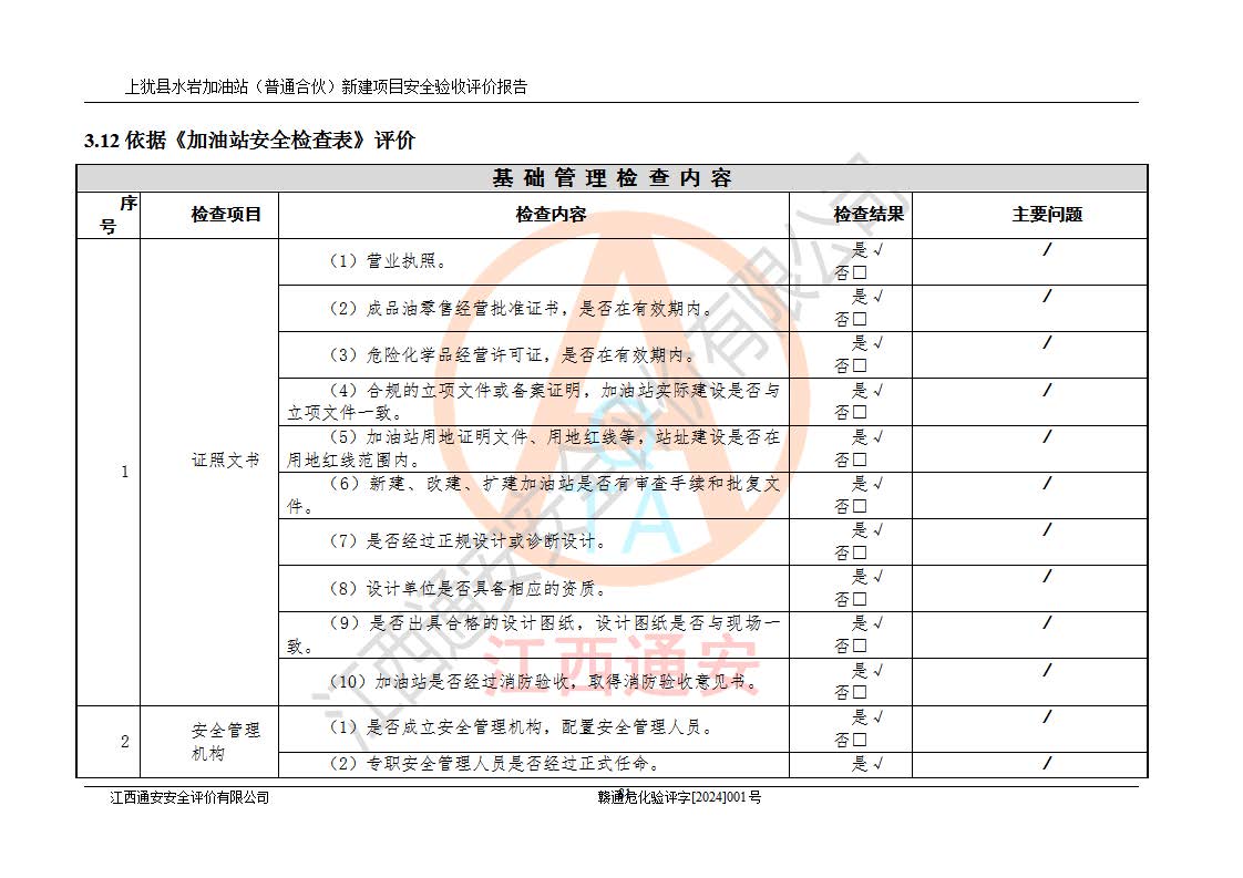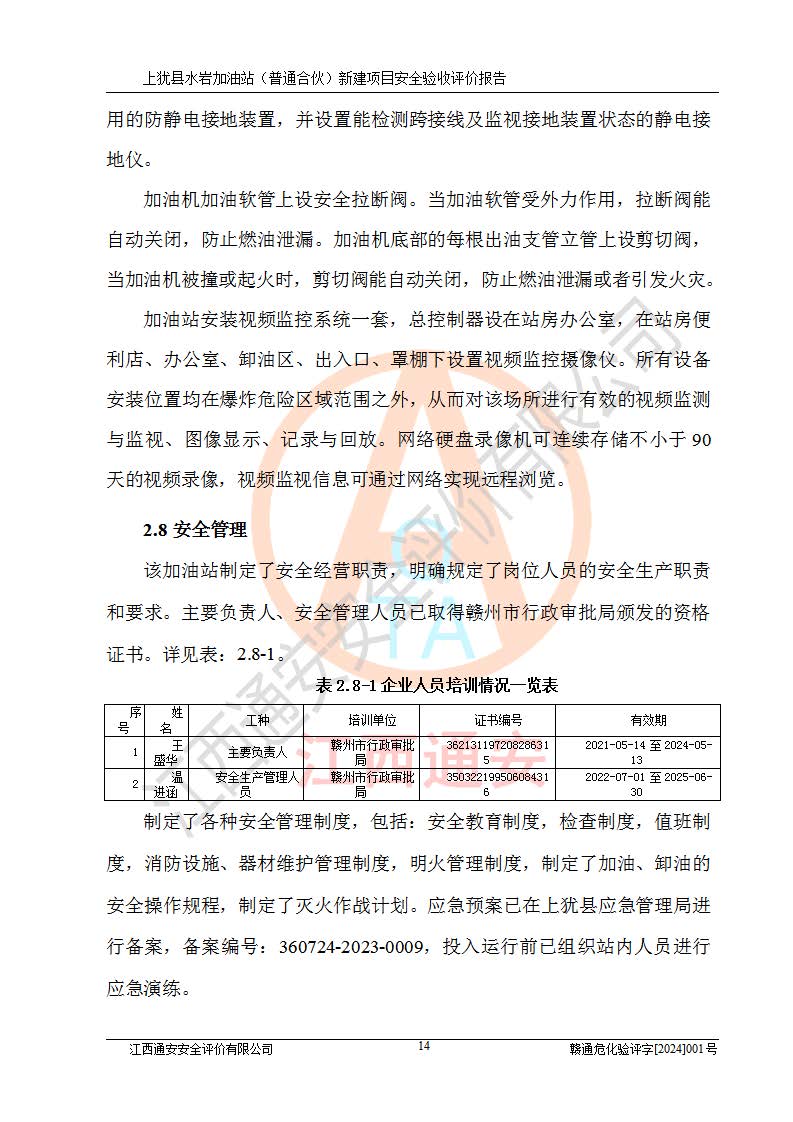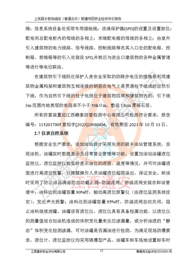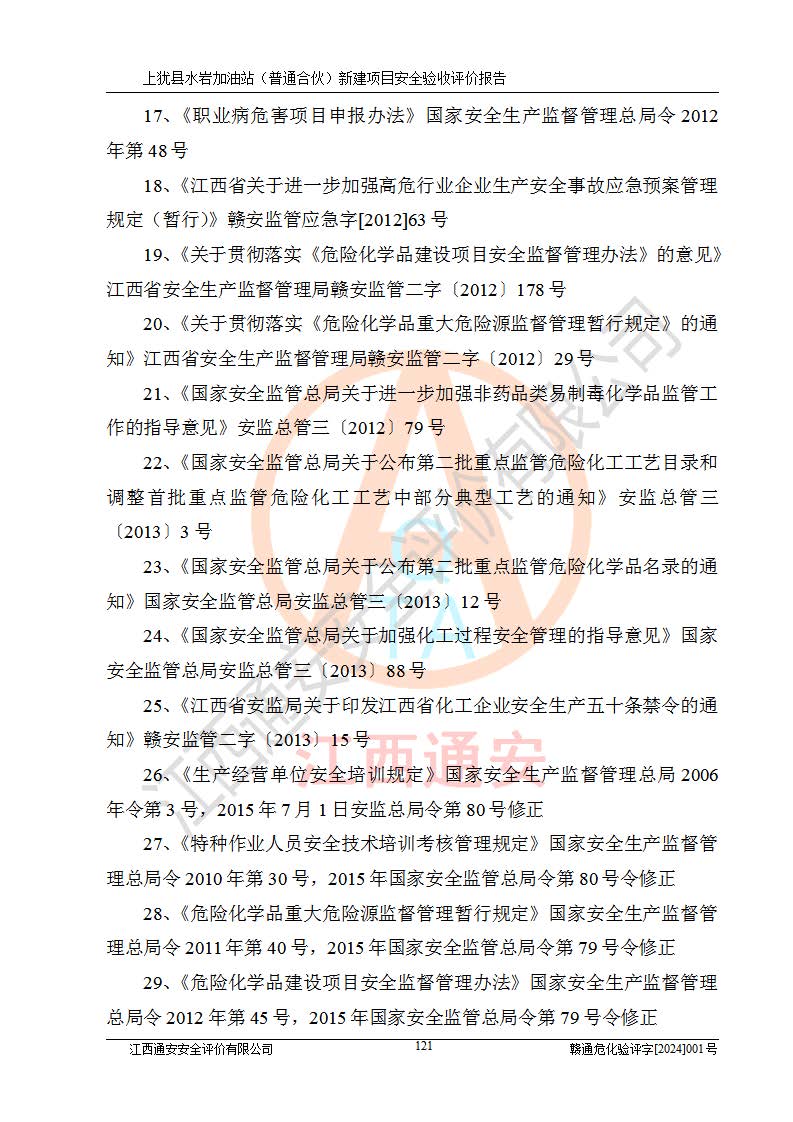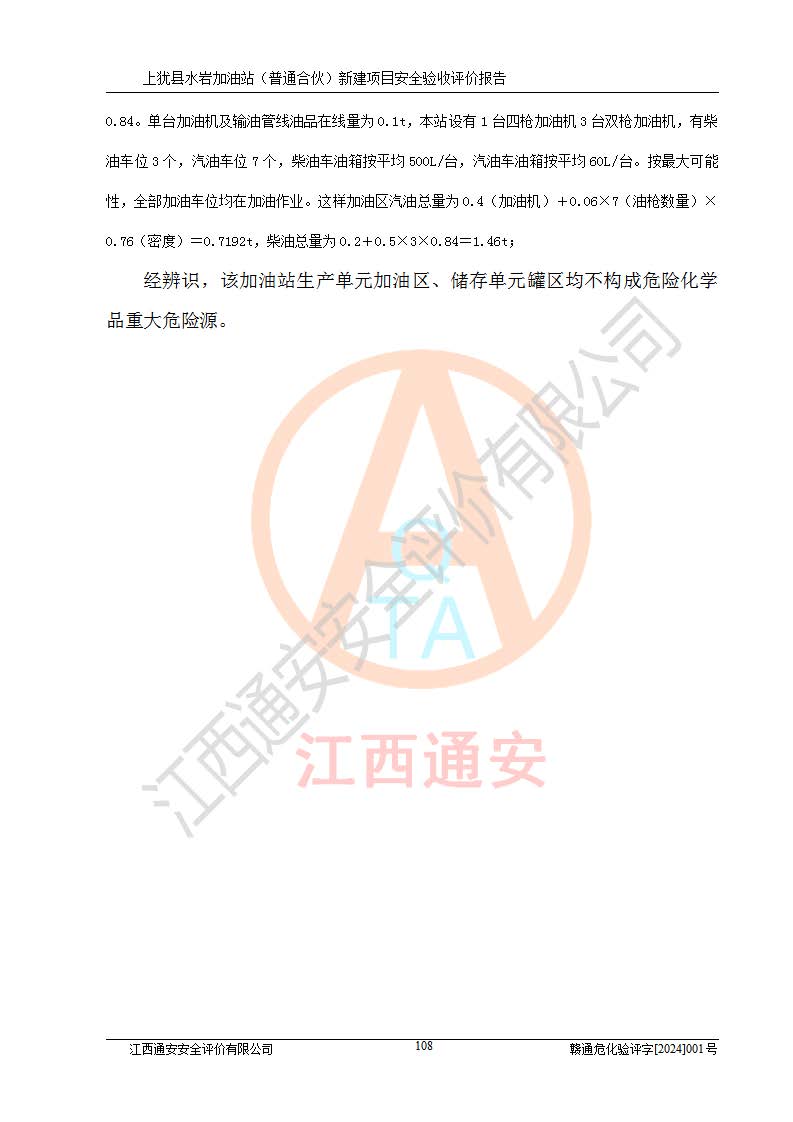 項(xiàng)目名稱(chēng) | 上猶縣水巖加油站(普通合伙)新建項(xiàng)目安全驗(yàn)收評(píng)價(jià)報(bào)告 | ||||