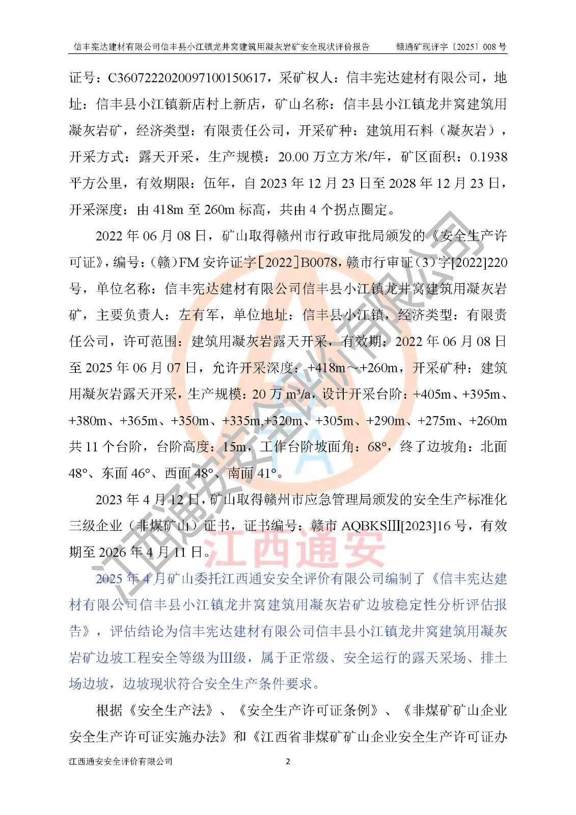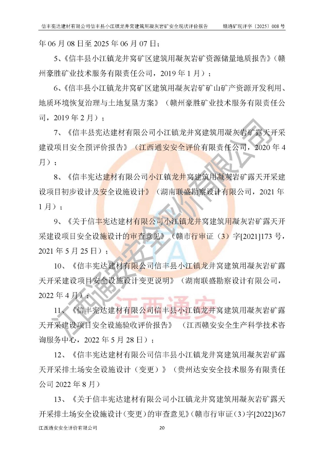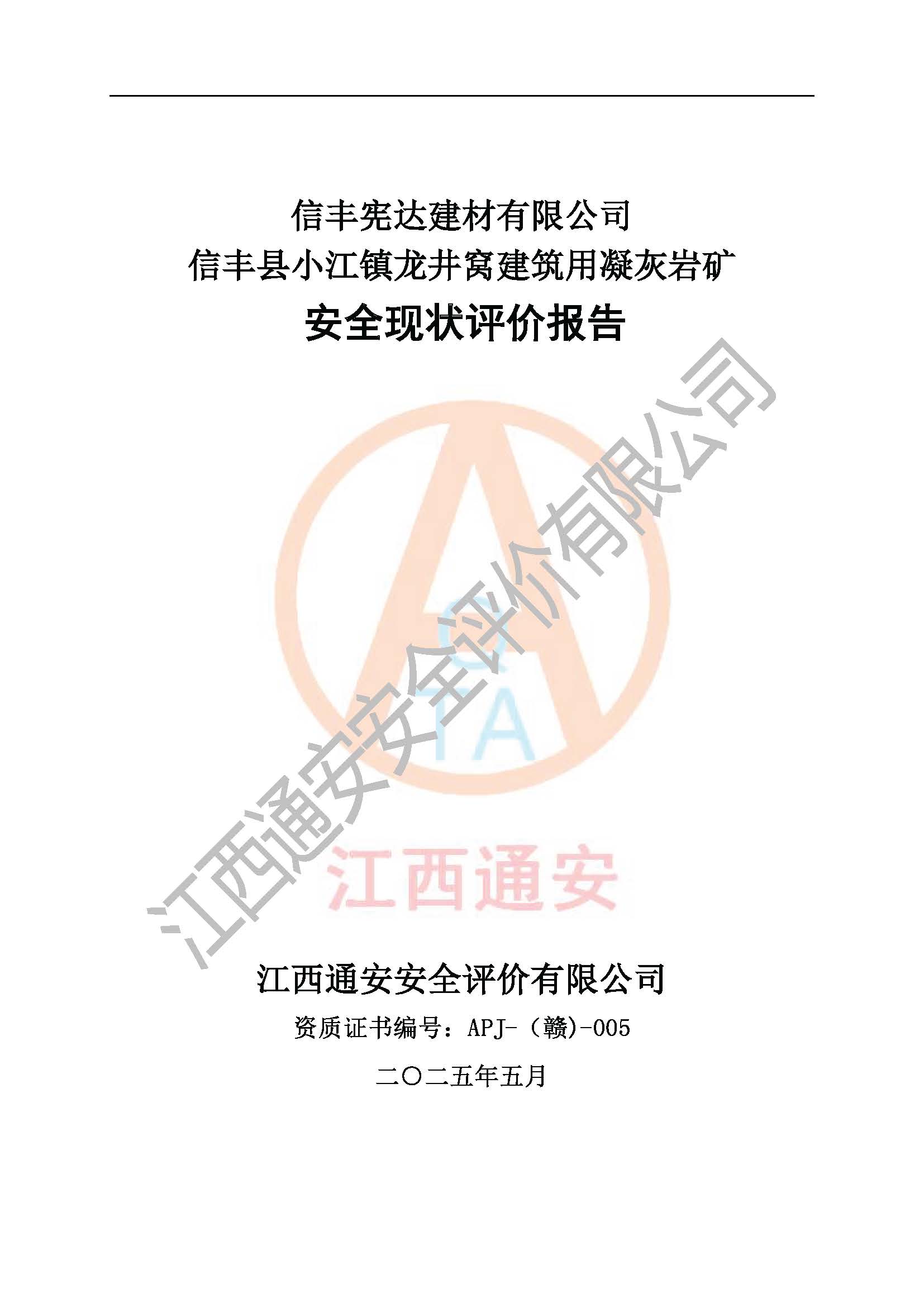項(xiàng)目名稱 | 信豐憲達(dá)建材有限公司信豐縣小江鎮(zhèn)龍井窩建筑用凝灰?guī)r礦安全現(xiàn)狀評(píng)價(jià)報(bào)告 | ||||