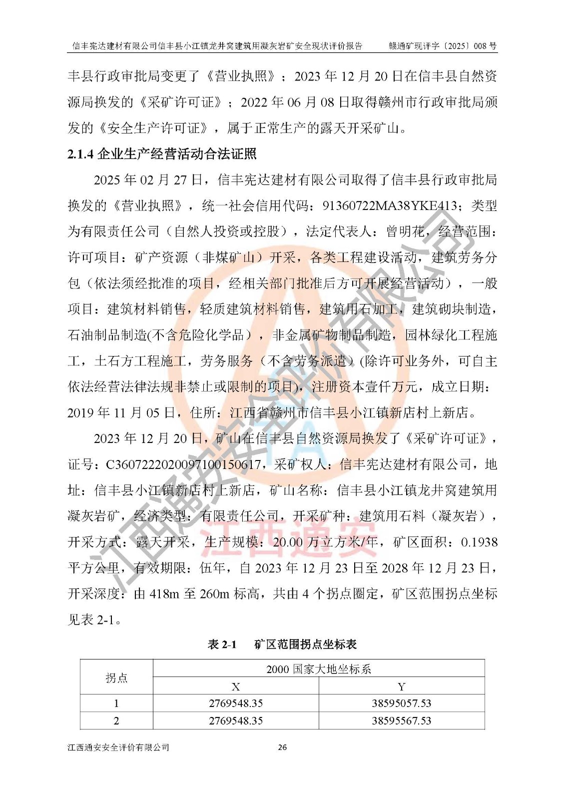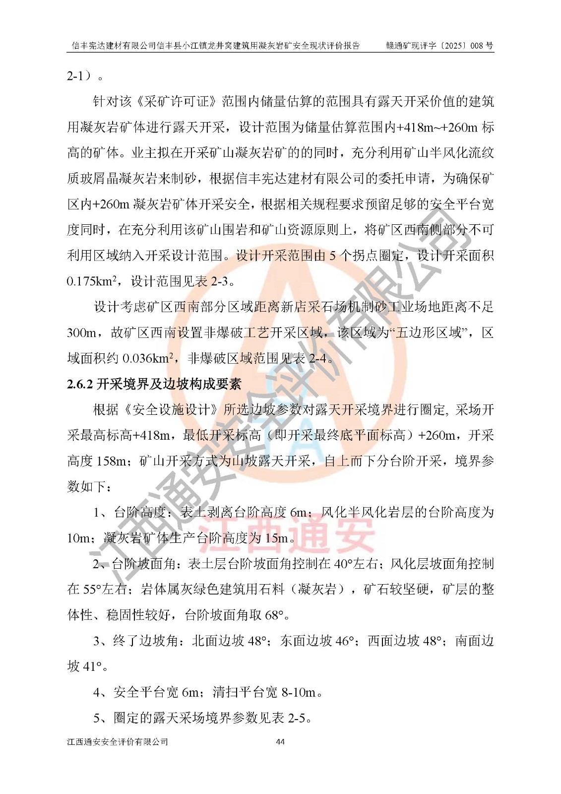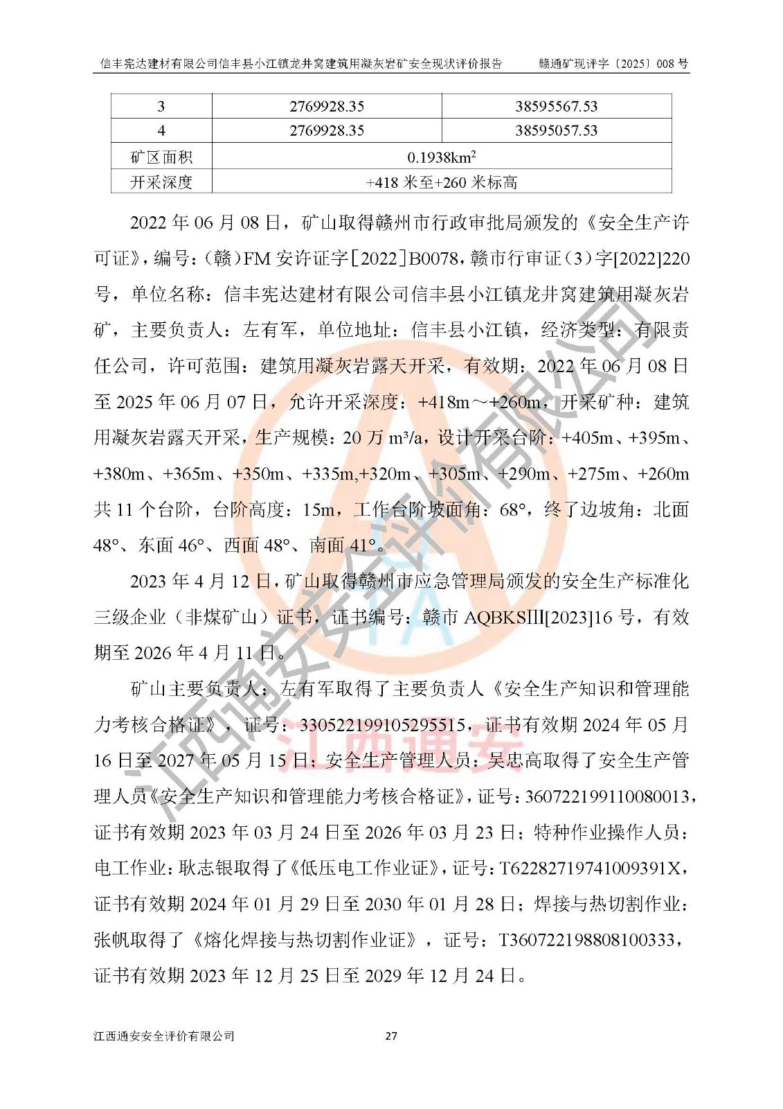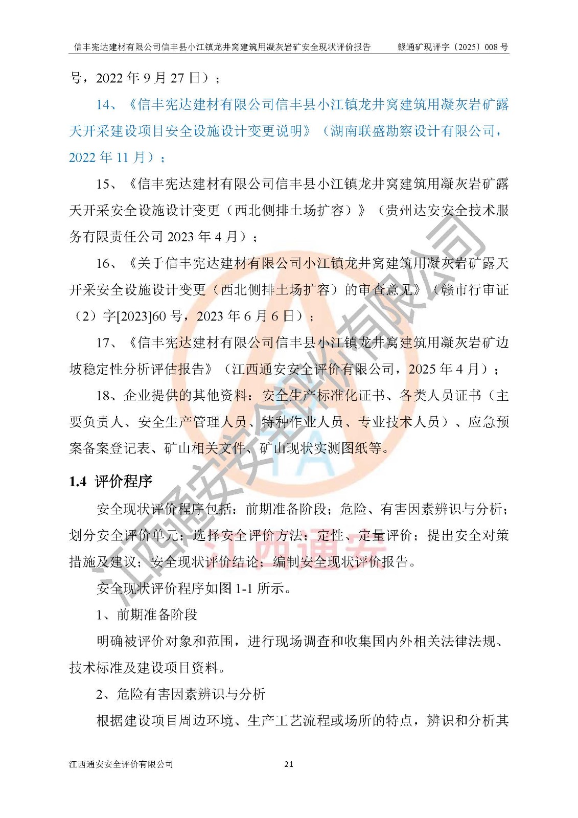 項(xiàng)目名稱 | 信豐憲達(dá)建材有限公司信豐縣小江鎮(zhèn)龍井窩建筑用凝灰?guī)r礦安全現(xiàn)狀評(píng)價(jià)報(bào)告 | ||||