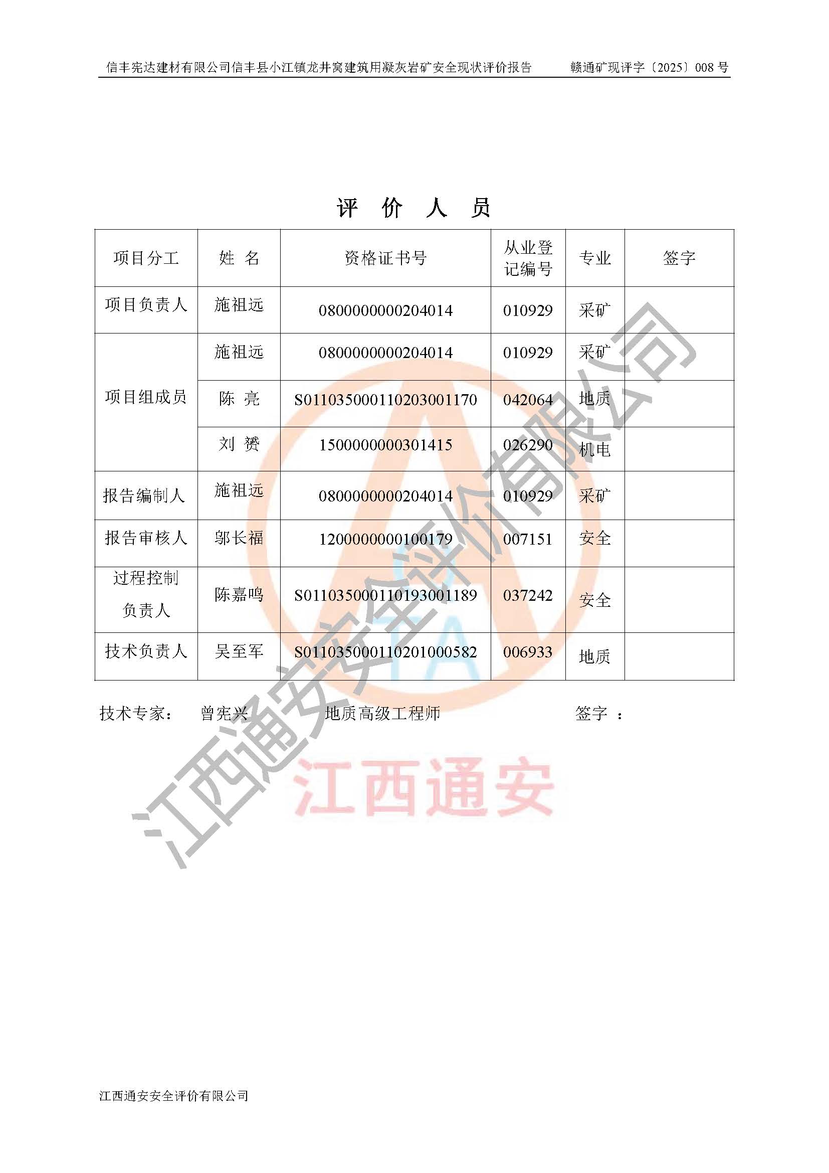 技術(shù)負(fù)責(zé)人 | 吳至軍 | 注冊安全工程師 | —— | ||