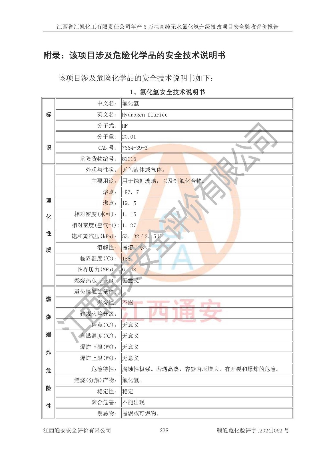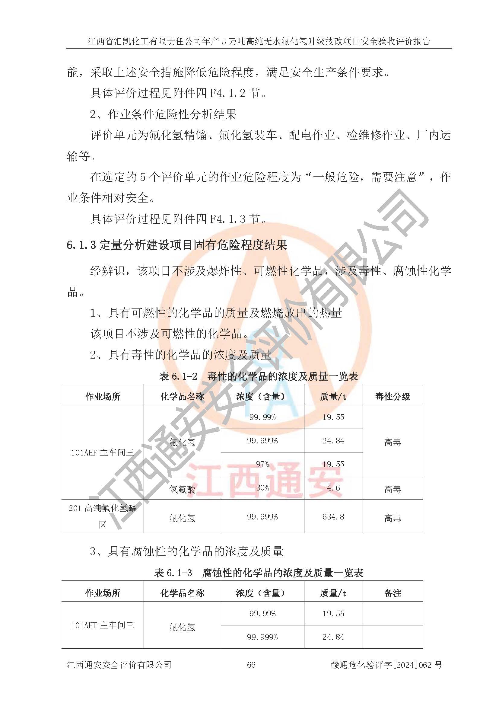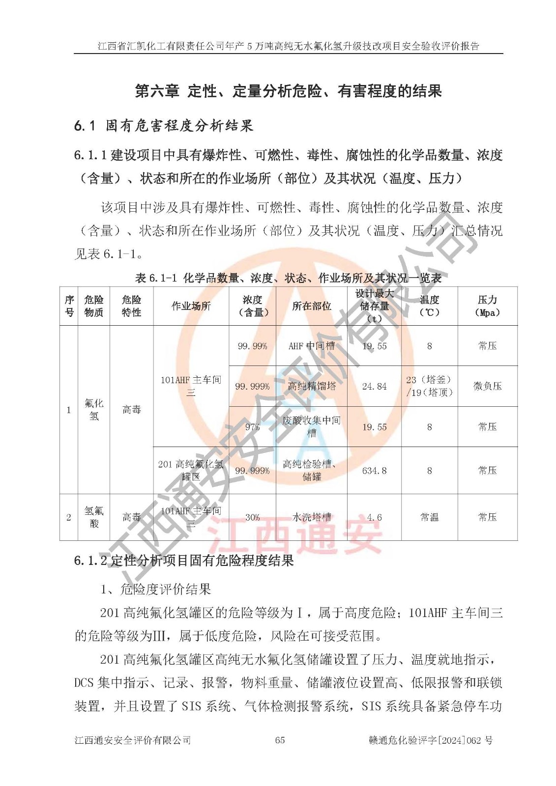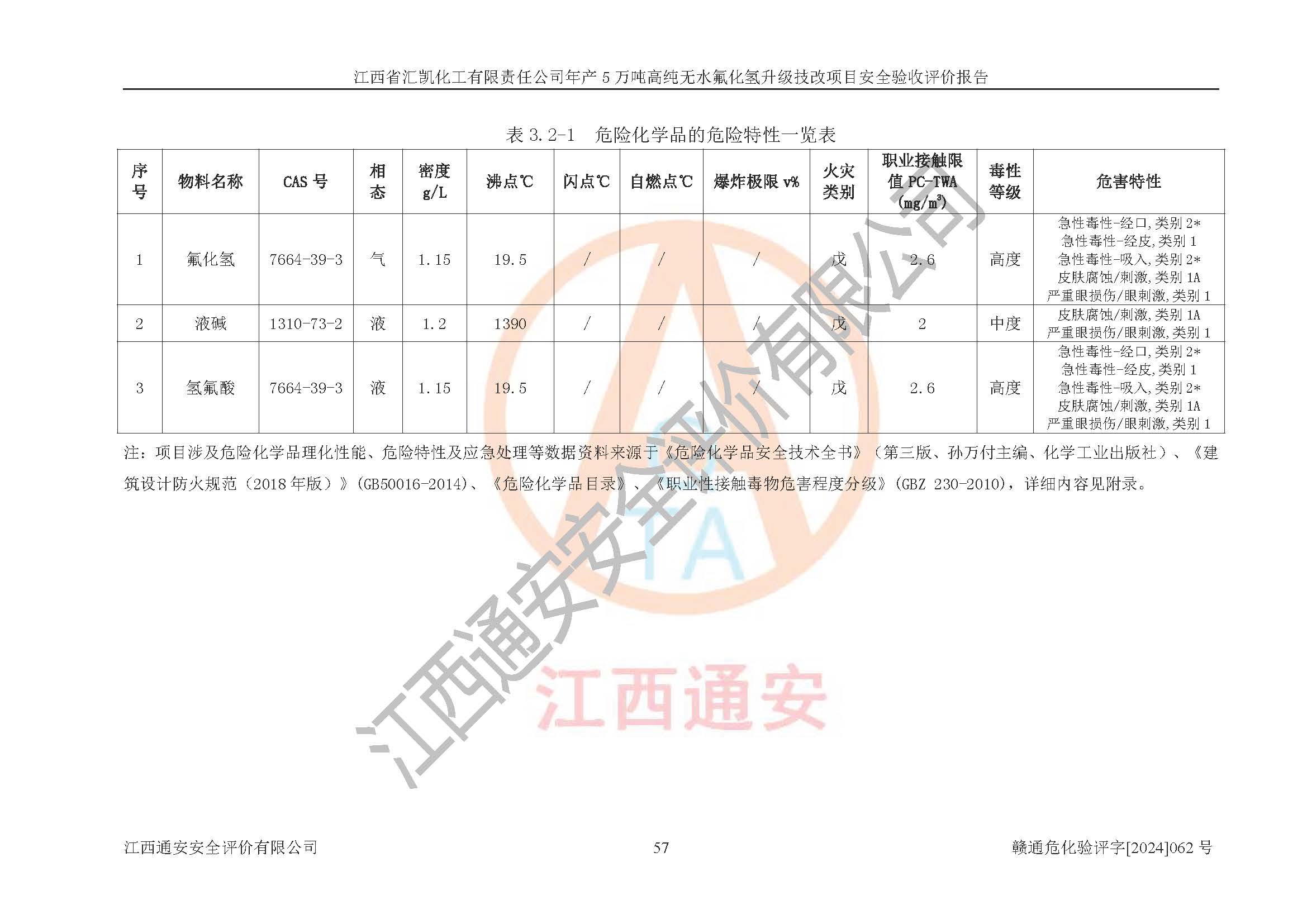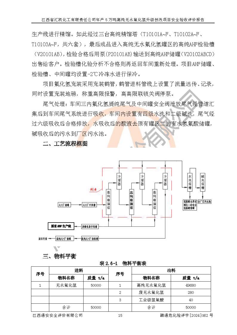 評價報告名稱 | 江西省匯凱化工有限責任公司年產(chǎn)5萬噸高純無水氟化氫升級技改項目安全驗收評價報告 | ||||||