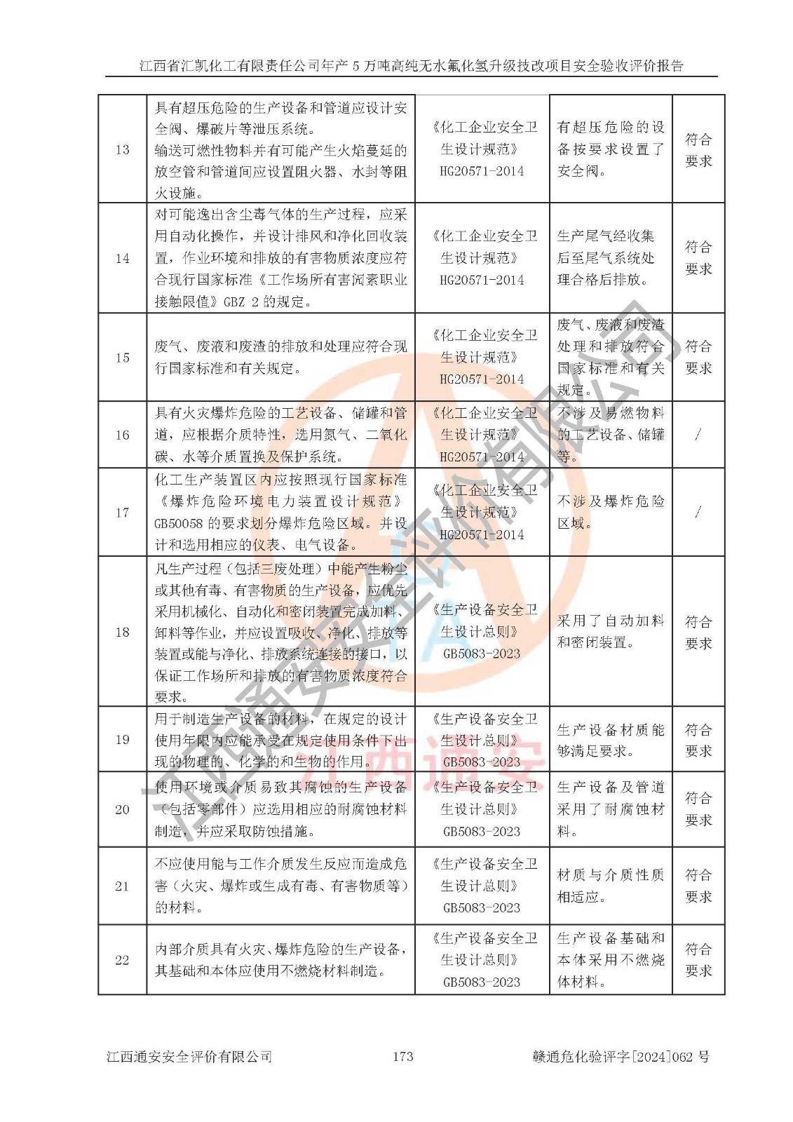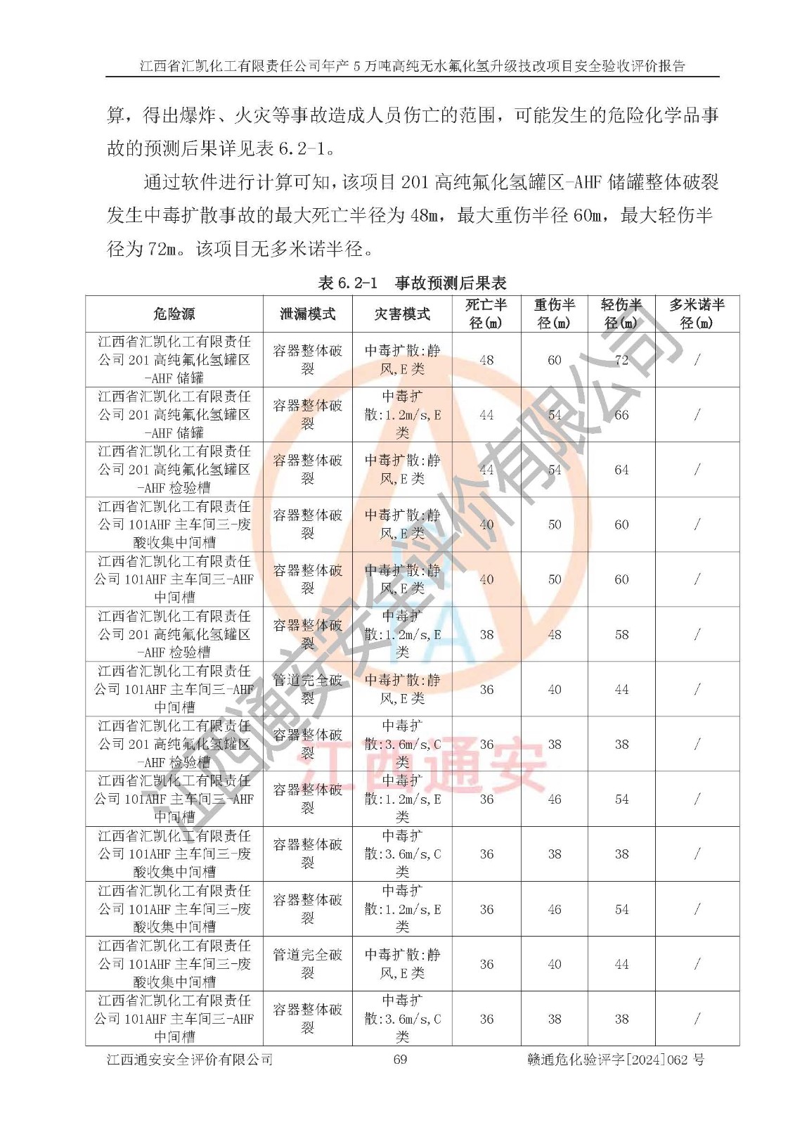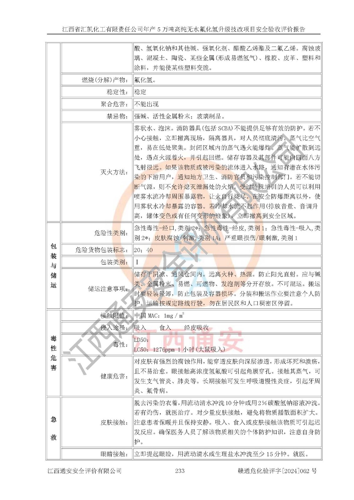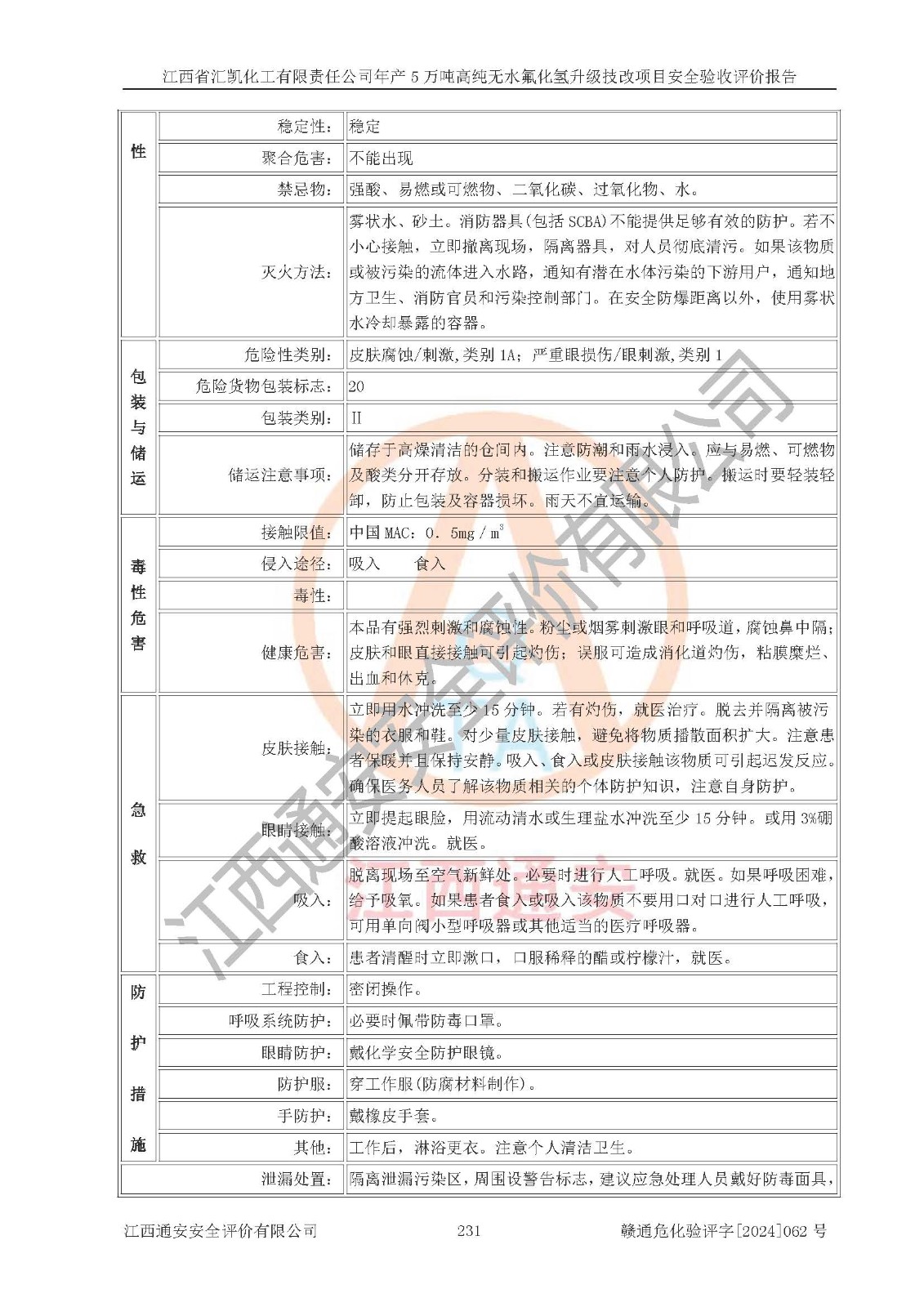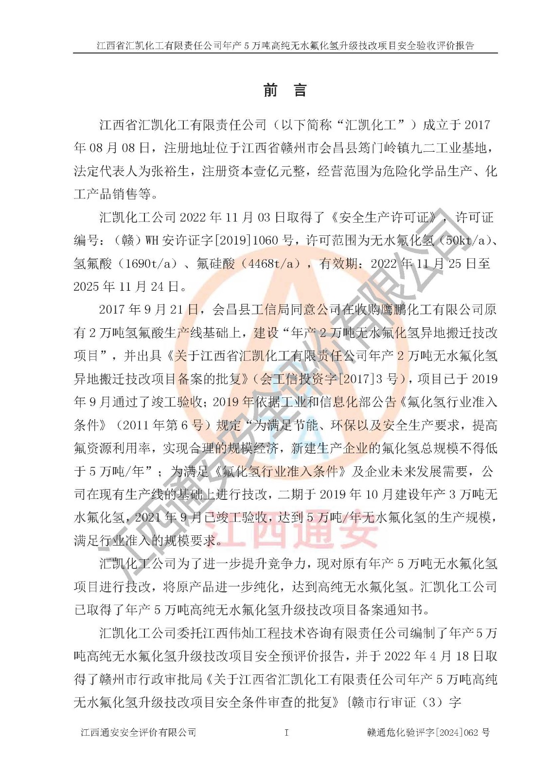 評價報告名稱 | 江西省匯凱化工有限責任公司年產(chǎn)5萬噸高純無水氟化氫升級技改項目安全驗收評價報告 | ||||||