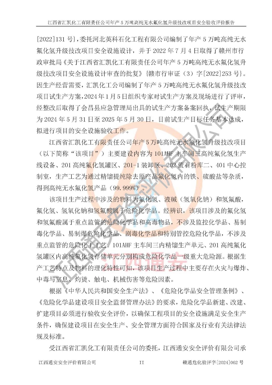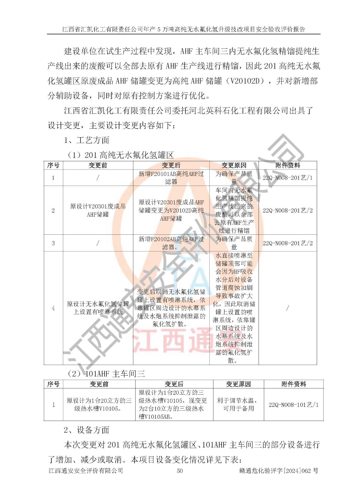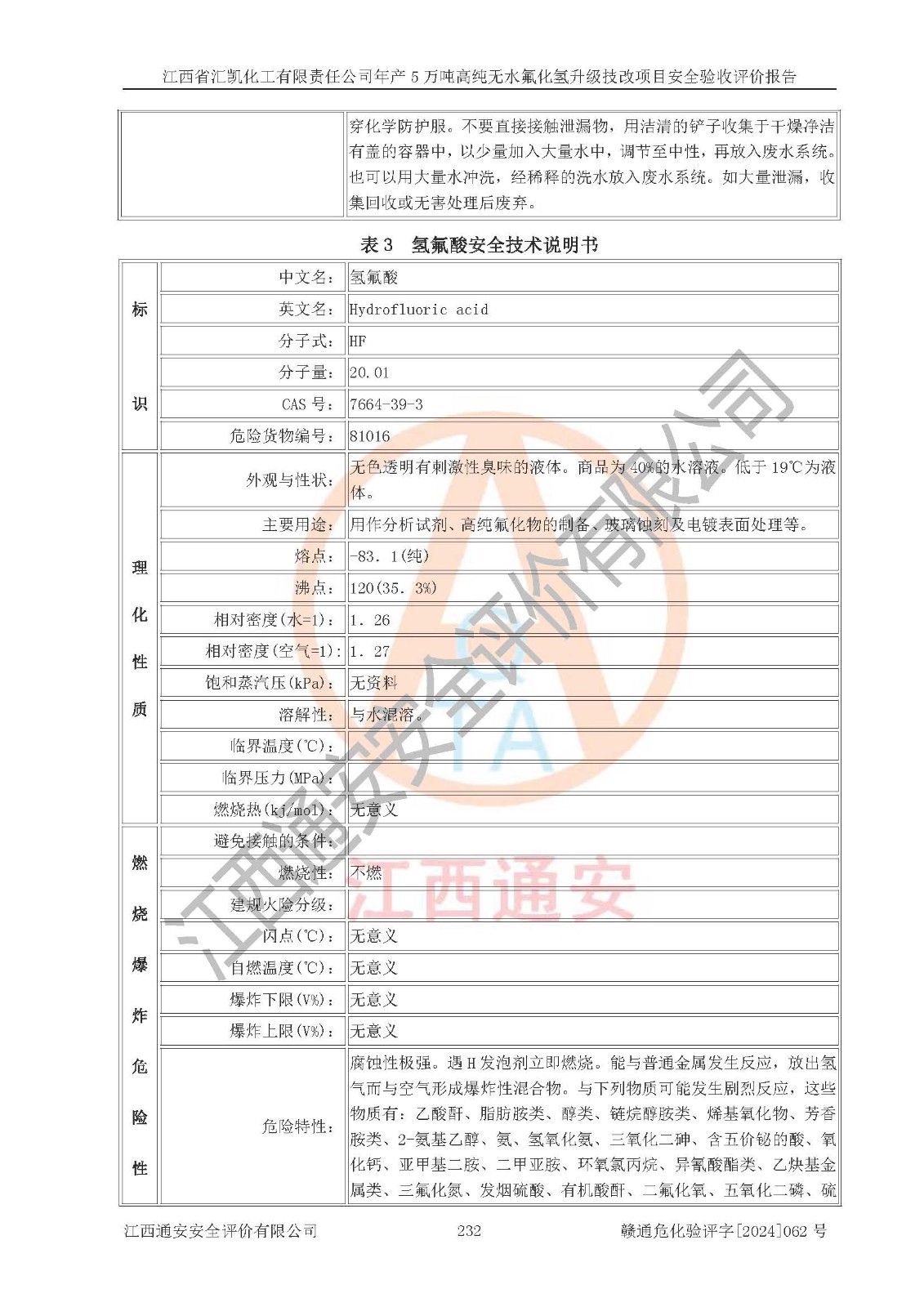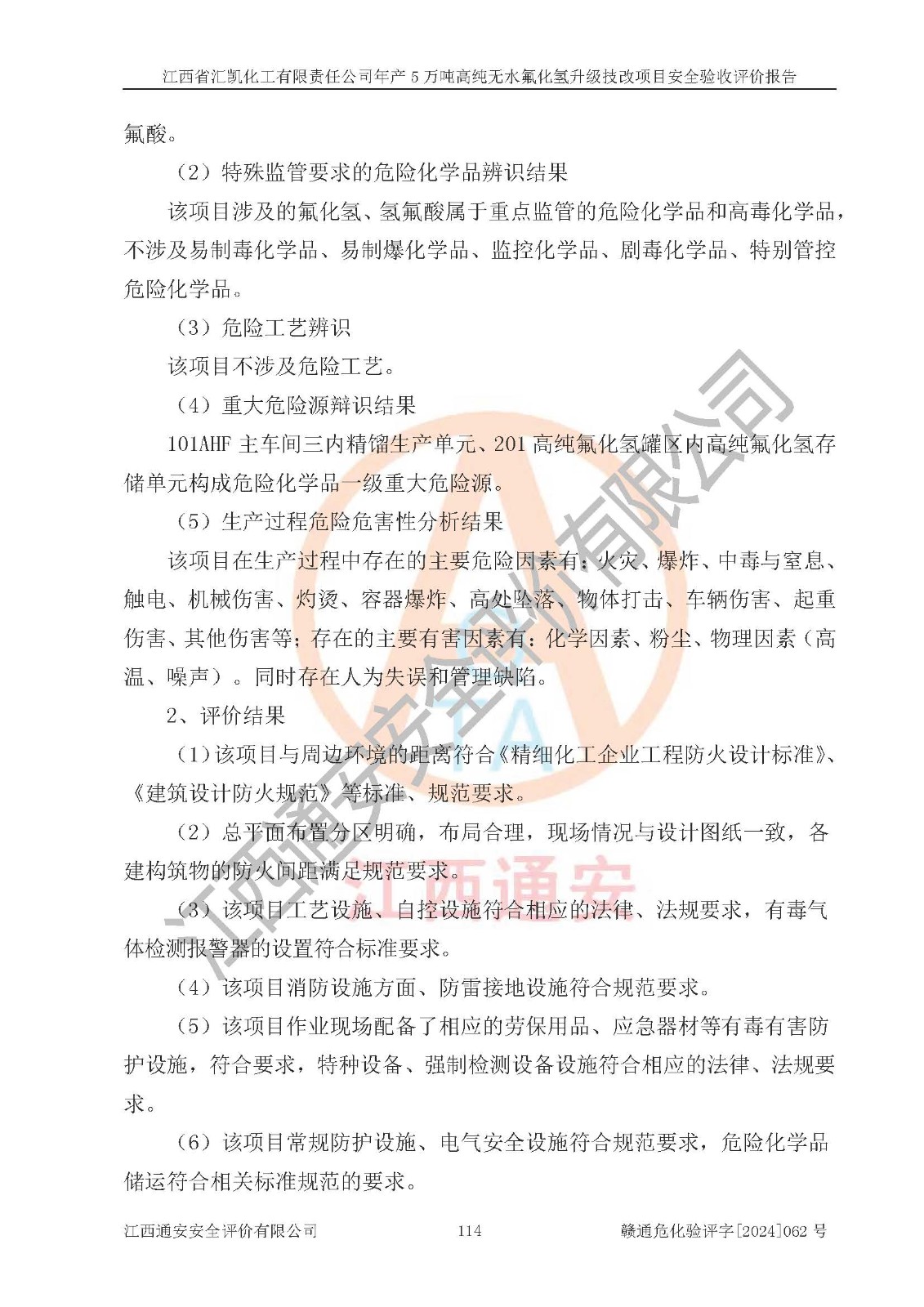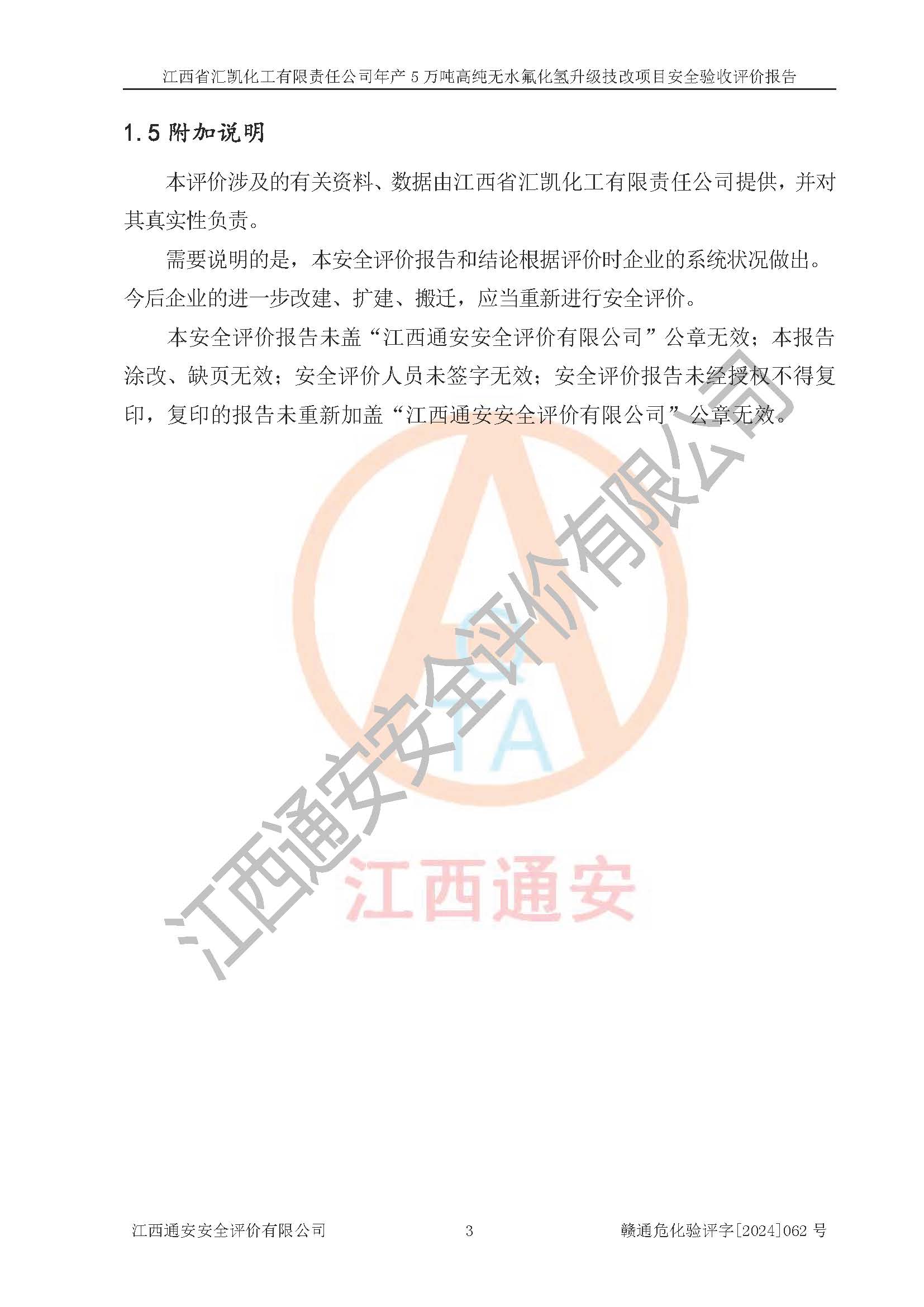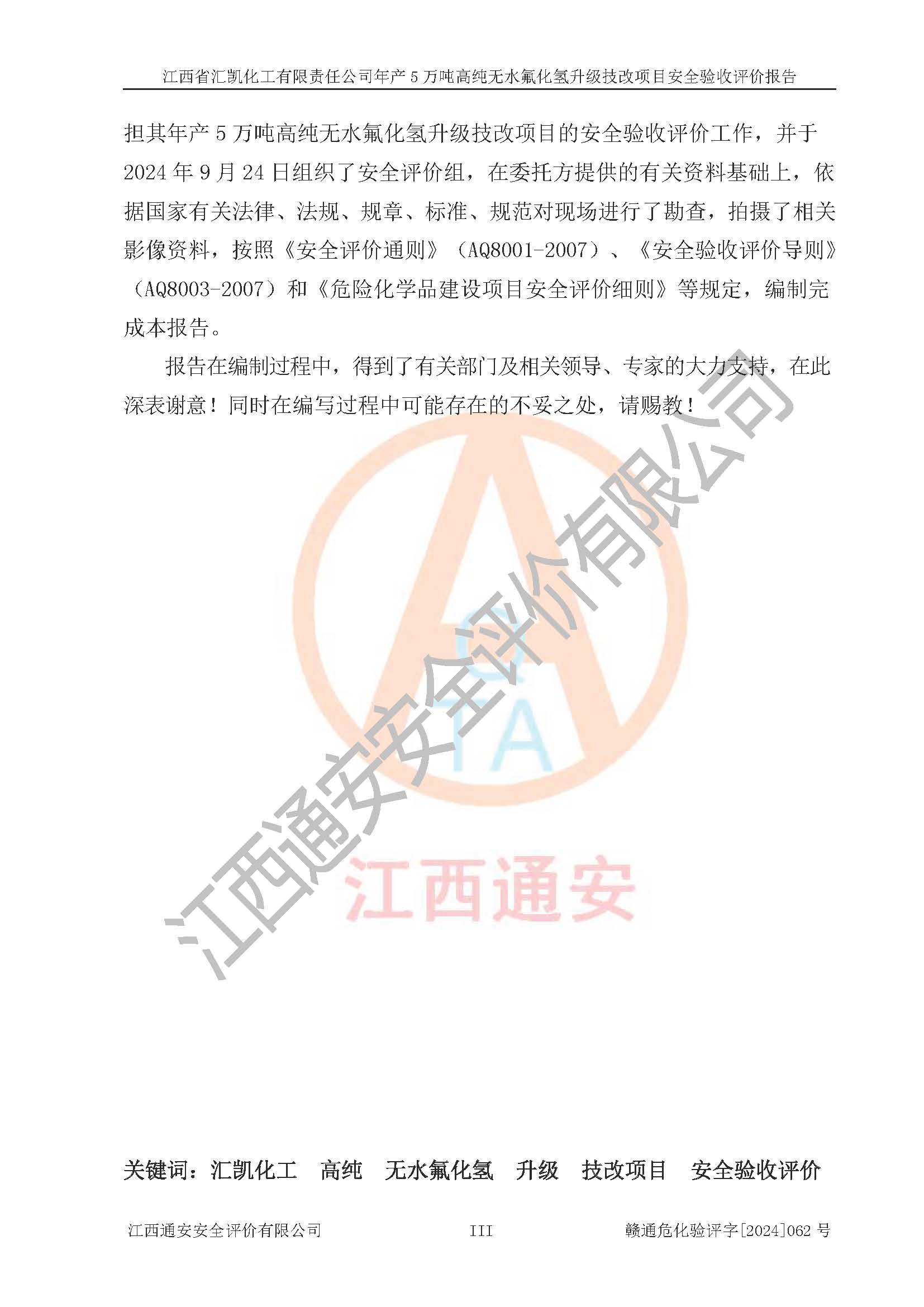 評價報告名稱 | 江西省匯凱化工有限責任公司年產(chǎn)5萬噸高純無水氟化氫升級技改項目安全驗收評價報告 | ||||||