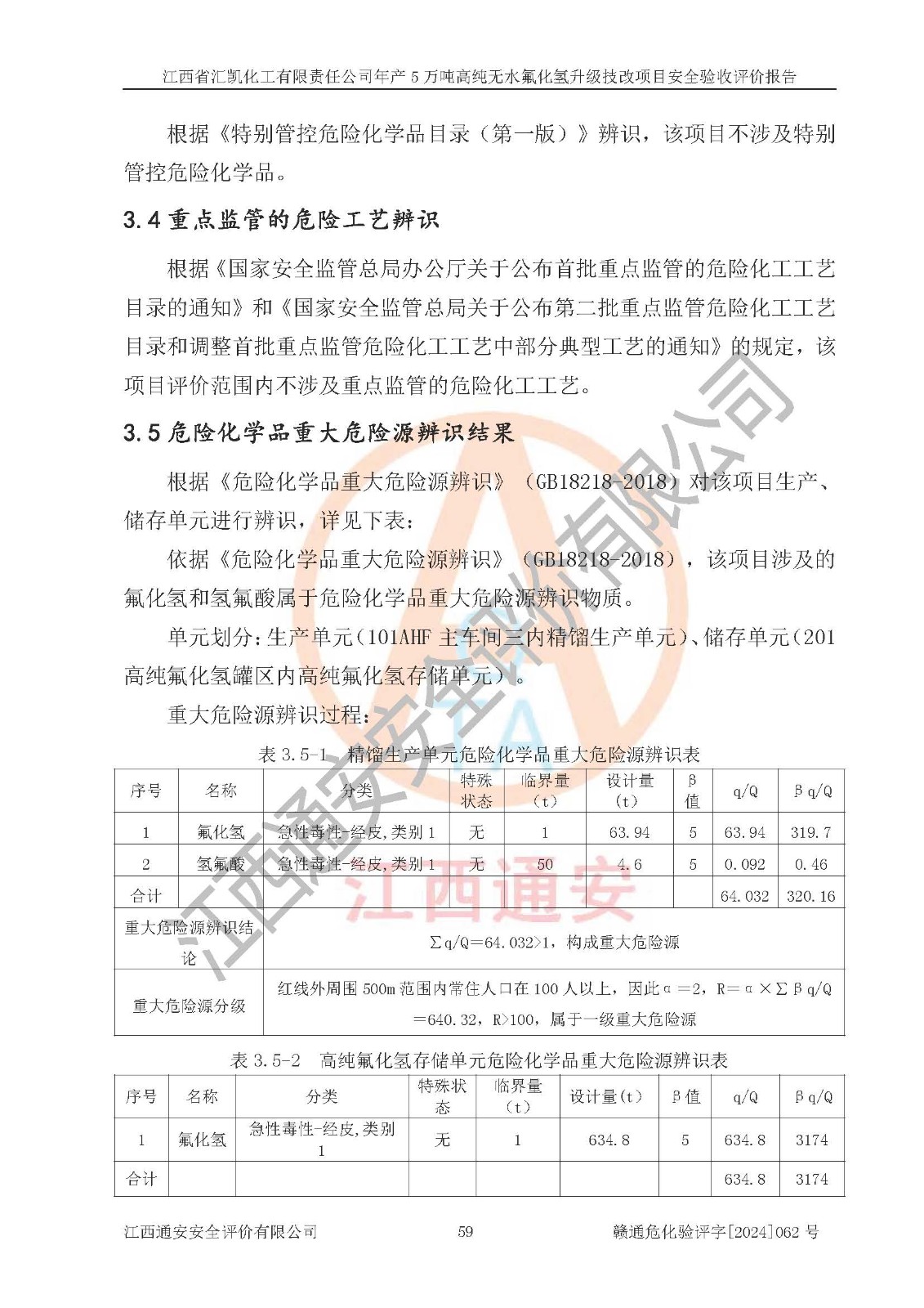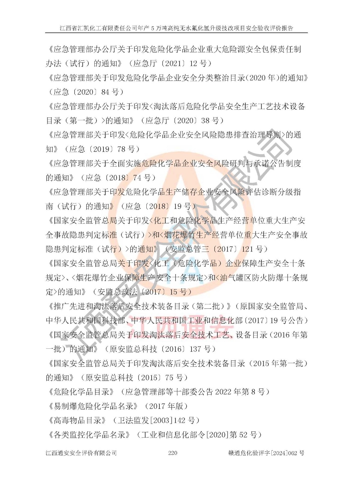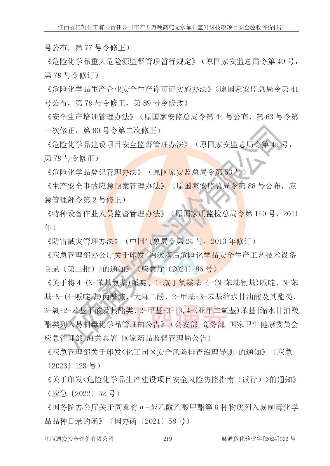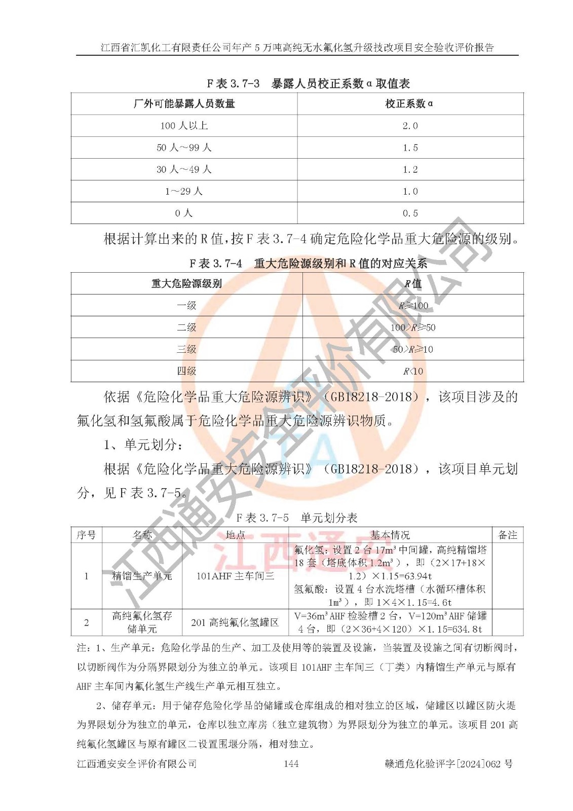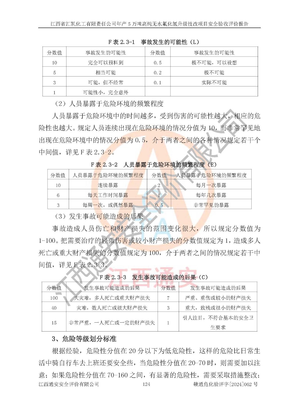 評價報告名稱 | 江西省匯凱化工有限責任公司年產(chǎn)5萬噸高純無水氟化氫升級技改項目安全驗收評價報告 | ||||||