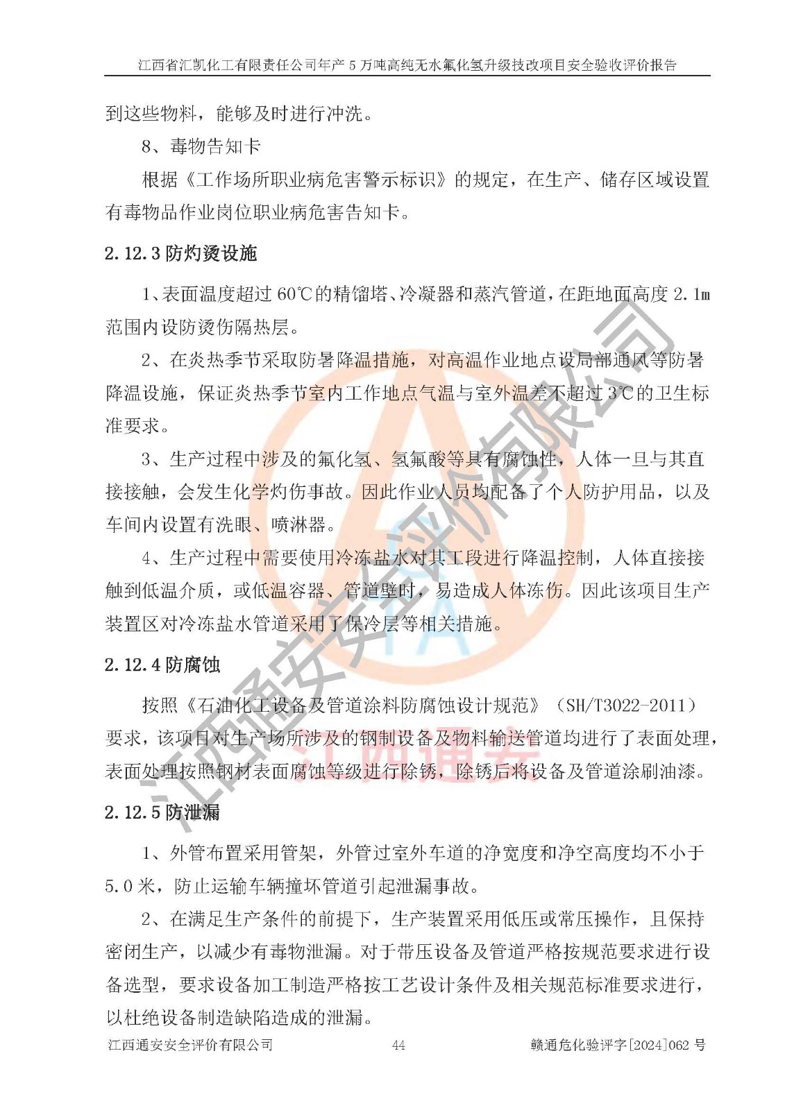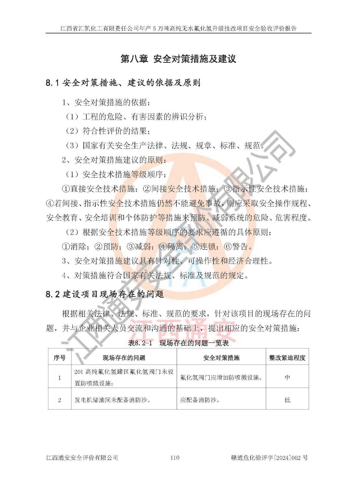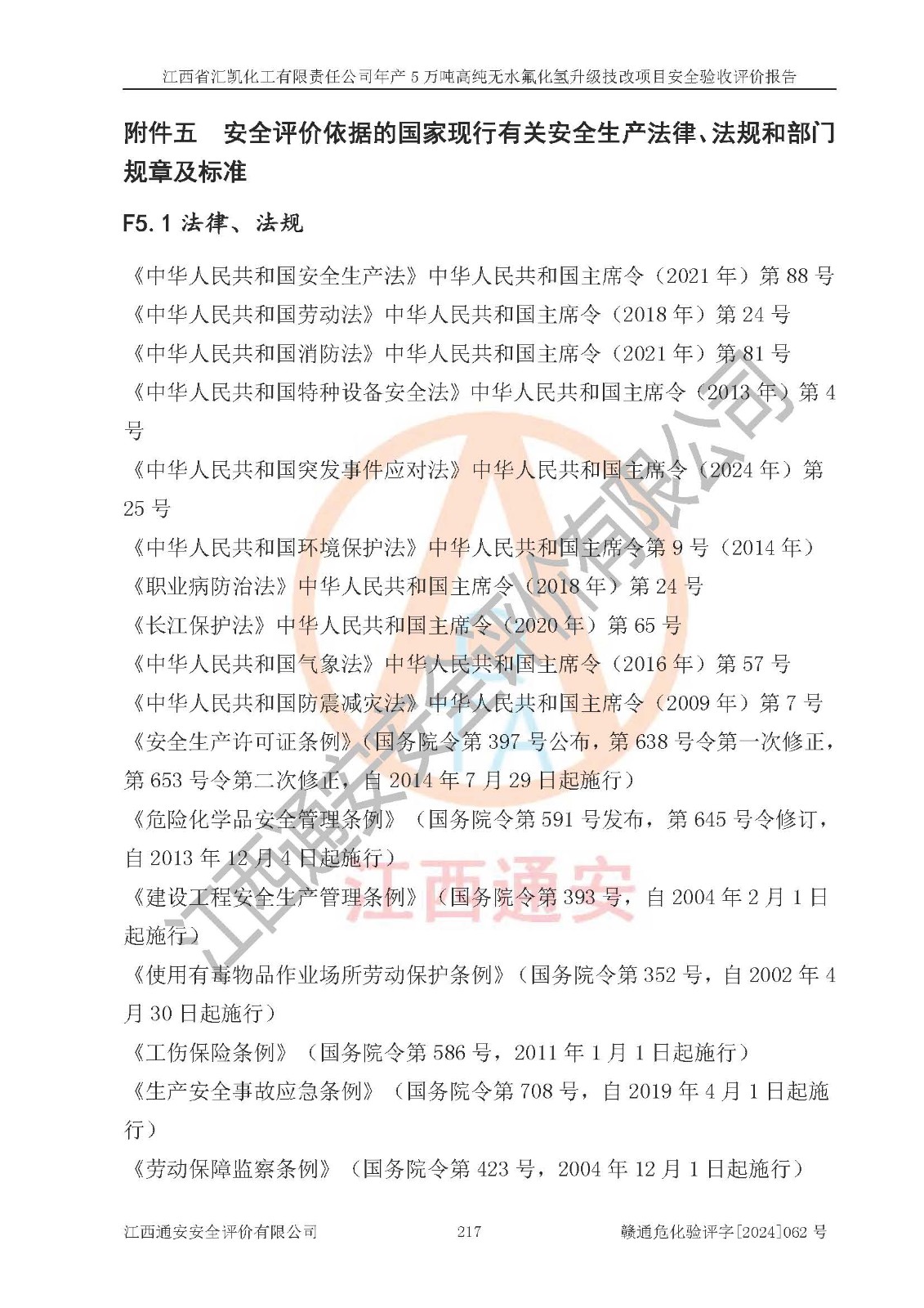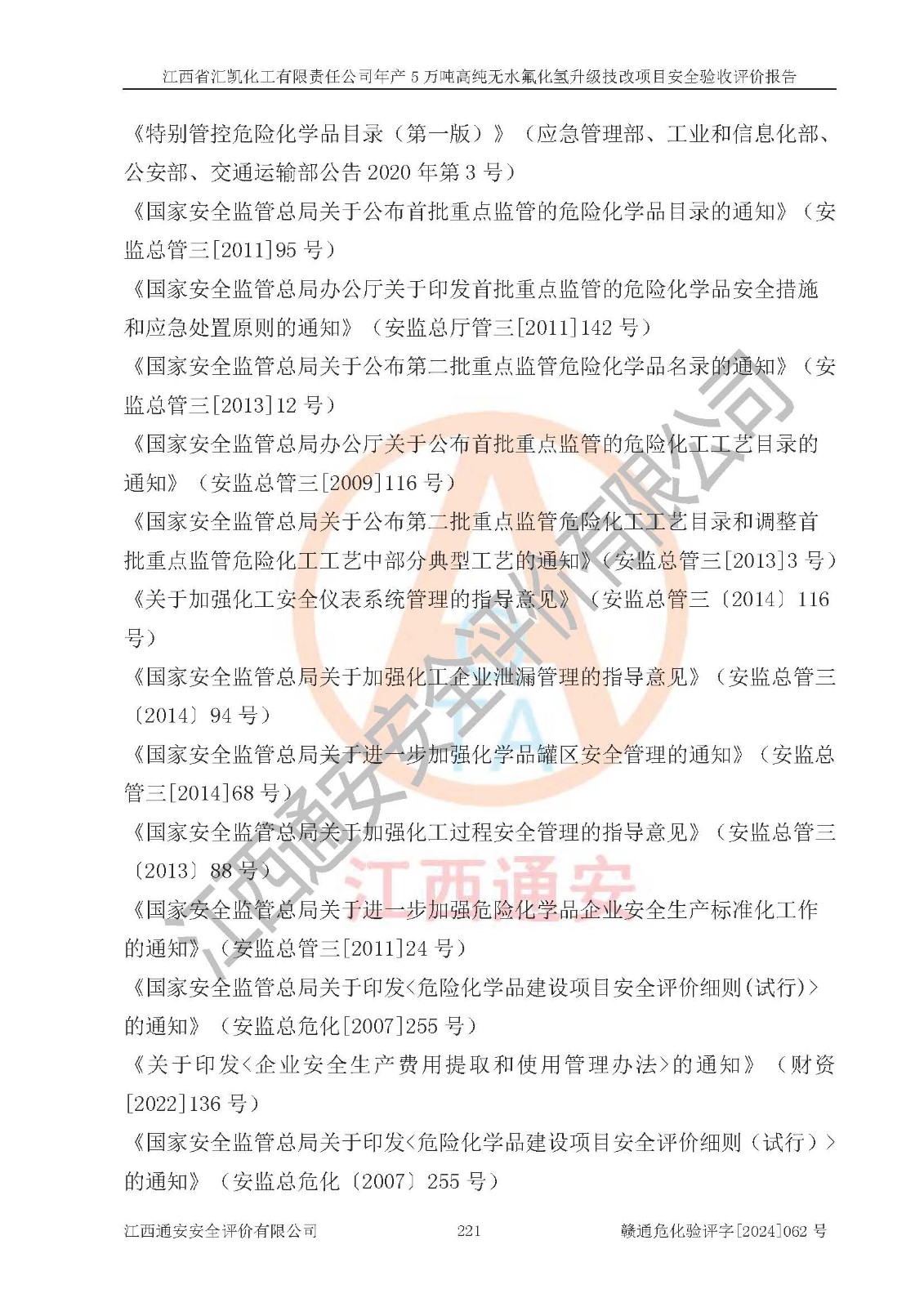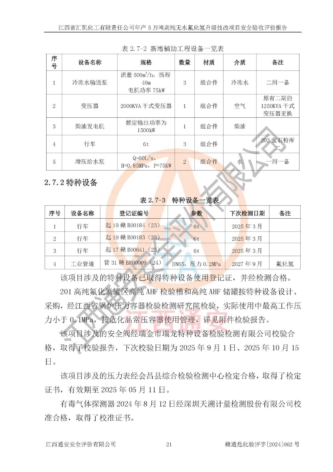 評價報告名稱 | 江西省匯凱化工有限責任公司年產(chǎn)5萬噸高純無水氟化氫升級技改項目安全驗收評價報告 | ||||||