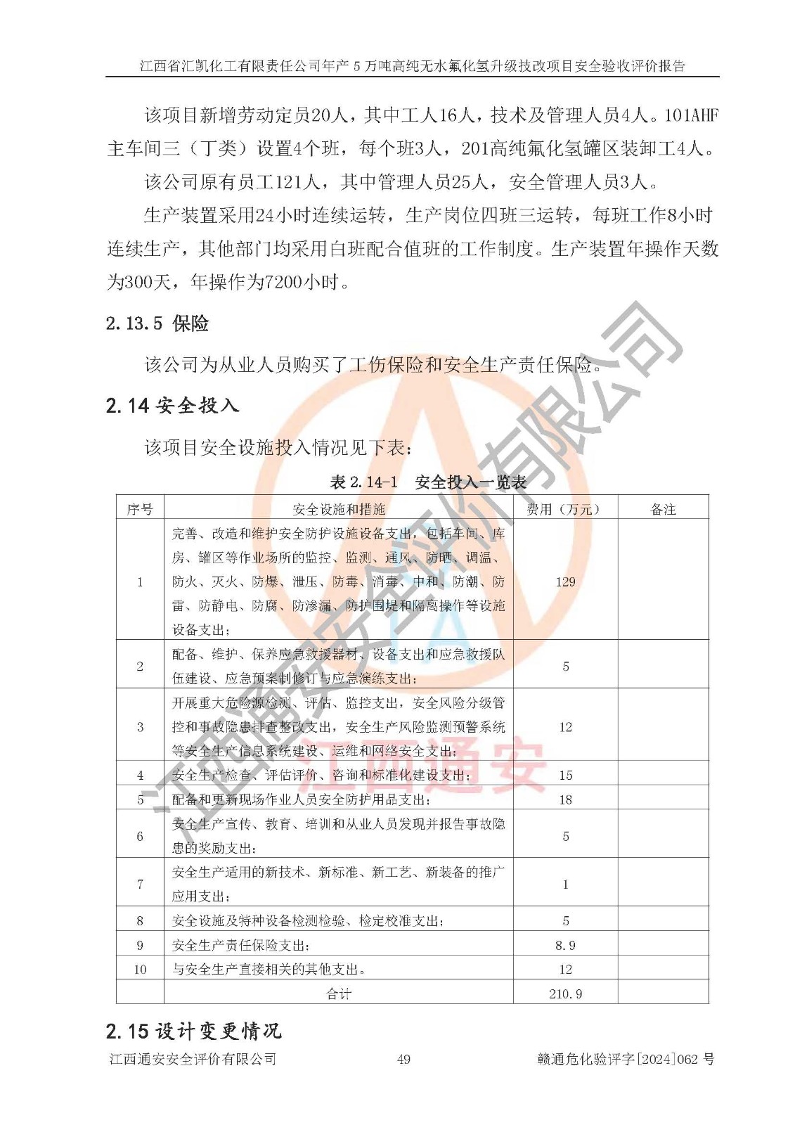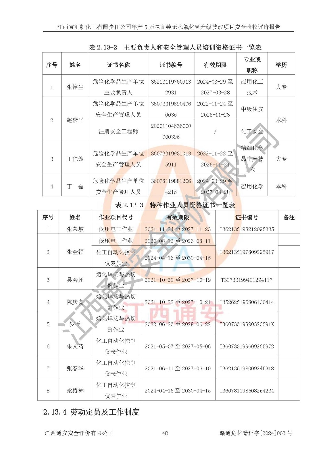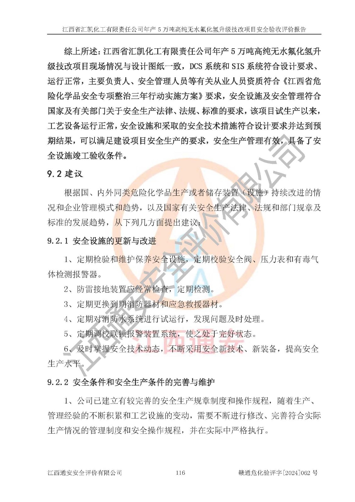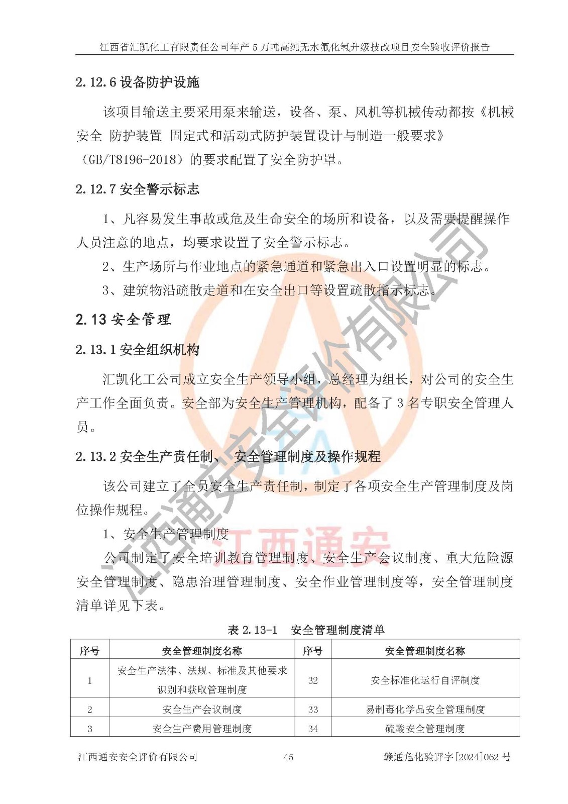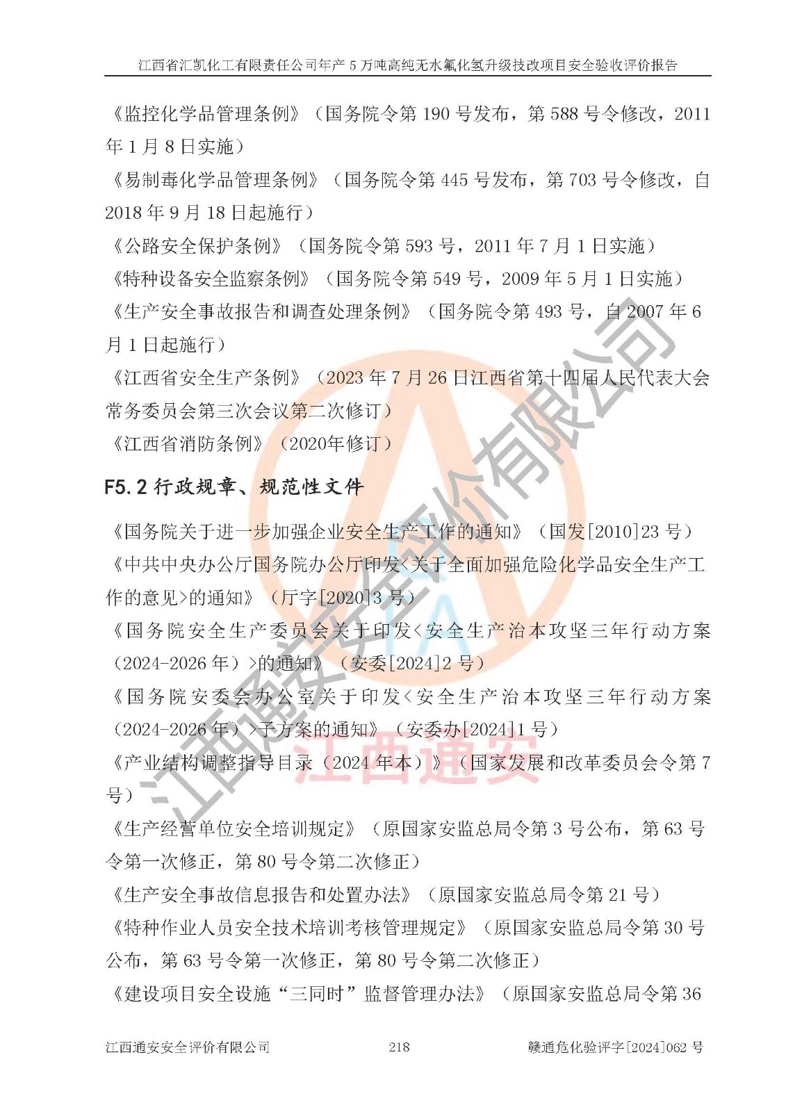 評價報告名稱 | 江西省匯凱化工有限責任公司年產(chǎn)5萬噸高純無水氟化氫升級技改項目安全驗收評價報告 | ||||||