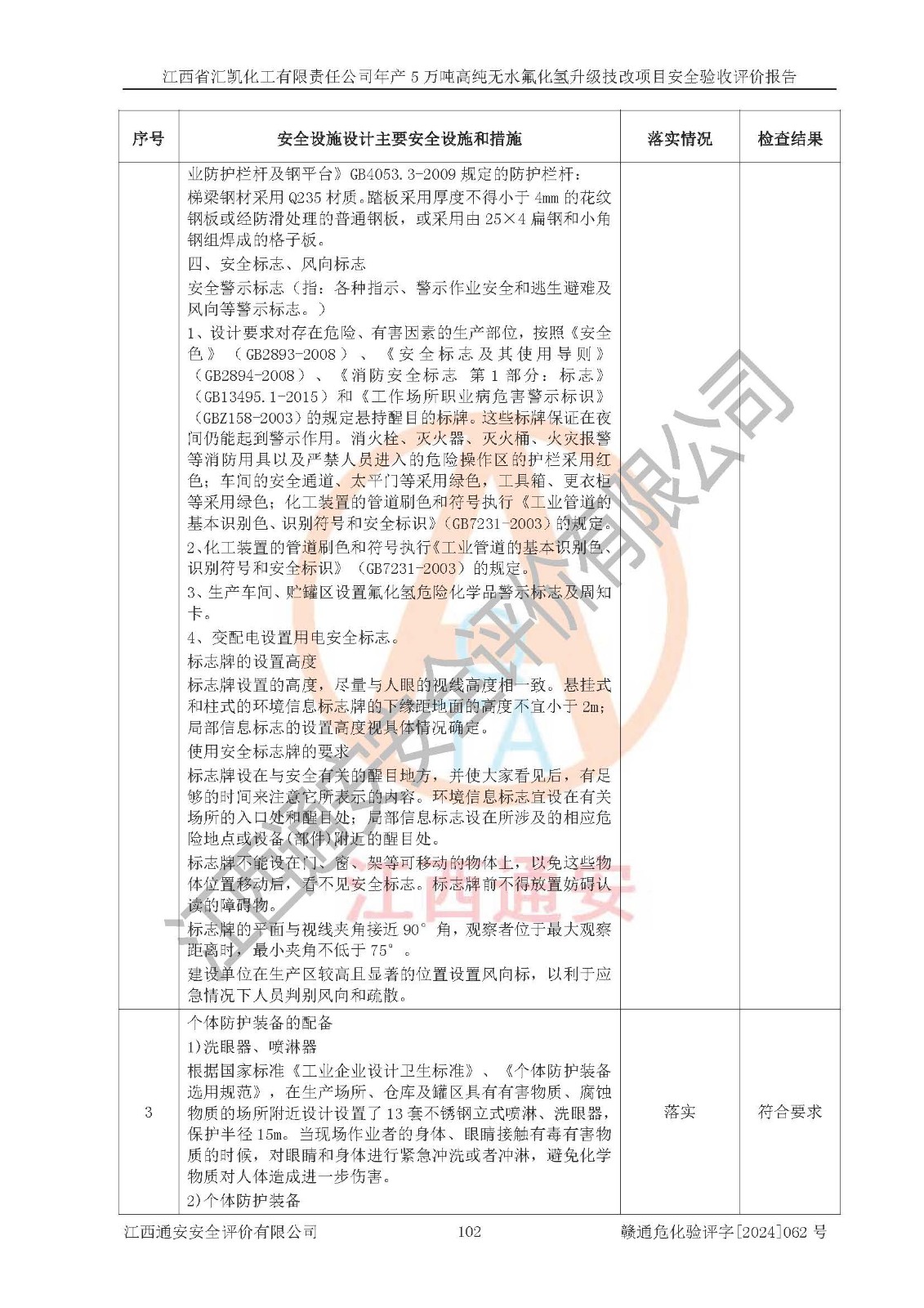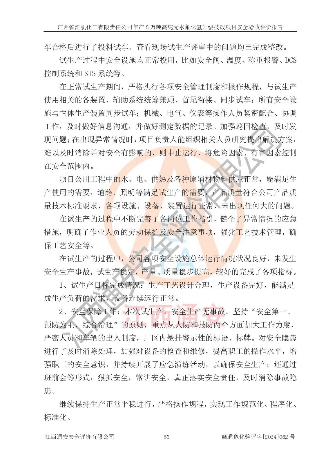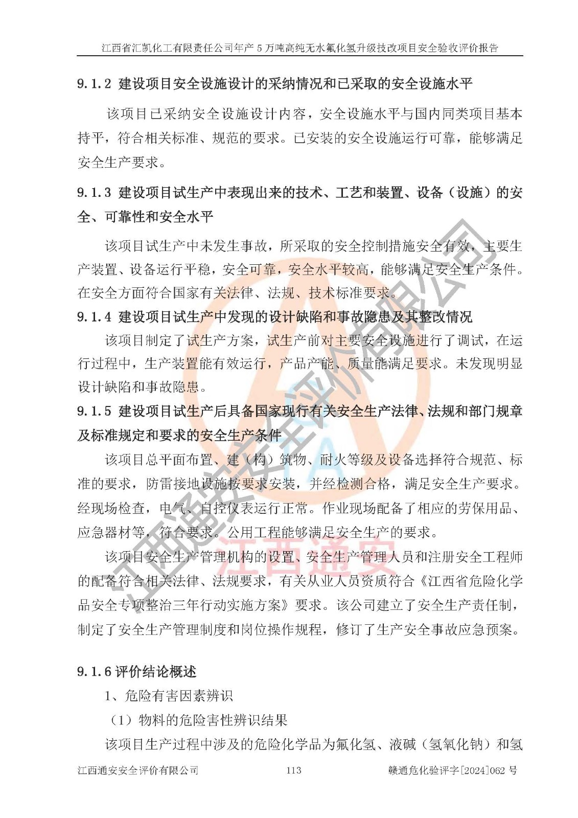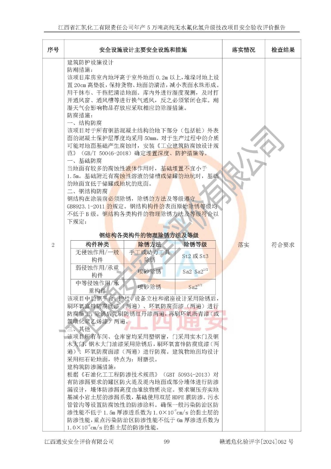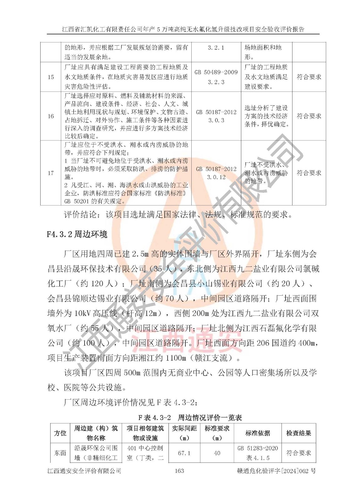 評價結(jié)論 | 江西省匯凱化工有限責任公司年產(chǎn)5萬噸高純無水氟化氫升級技改項目現(xiàn)場情況與設(shè)計圖紙一致,DCS系統(tǒng)和SIS系統(tǒng)符合設(shè)計要求、運行正常,主要負責人、安全管理人員等有關(guān)從業(yè)人員資質(zhì)符合《江西省危險化學品安全專項整治三年行動實施方案》要求,安全設(shè)施及安全管理符合**及有關(guān)部門關(guān)于安全生產(chǎn)法律、法規(guī)、標準的要求,該項目試生產(chǎn)以來,工藝設(shè)備運行正常,安全設(shè)施和采取的安全技術(shù)措施符合設(shè)計要求并達到預(yù)期結(jié)果,可以滿足建設(shè)項目安全生產(chǎn)的要求,安全生產(chǎn)管理**,具備了安全設(shè)施竣工驗收條件。 | ||||||