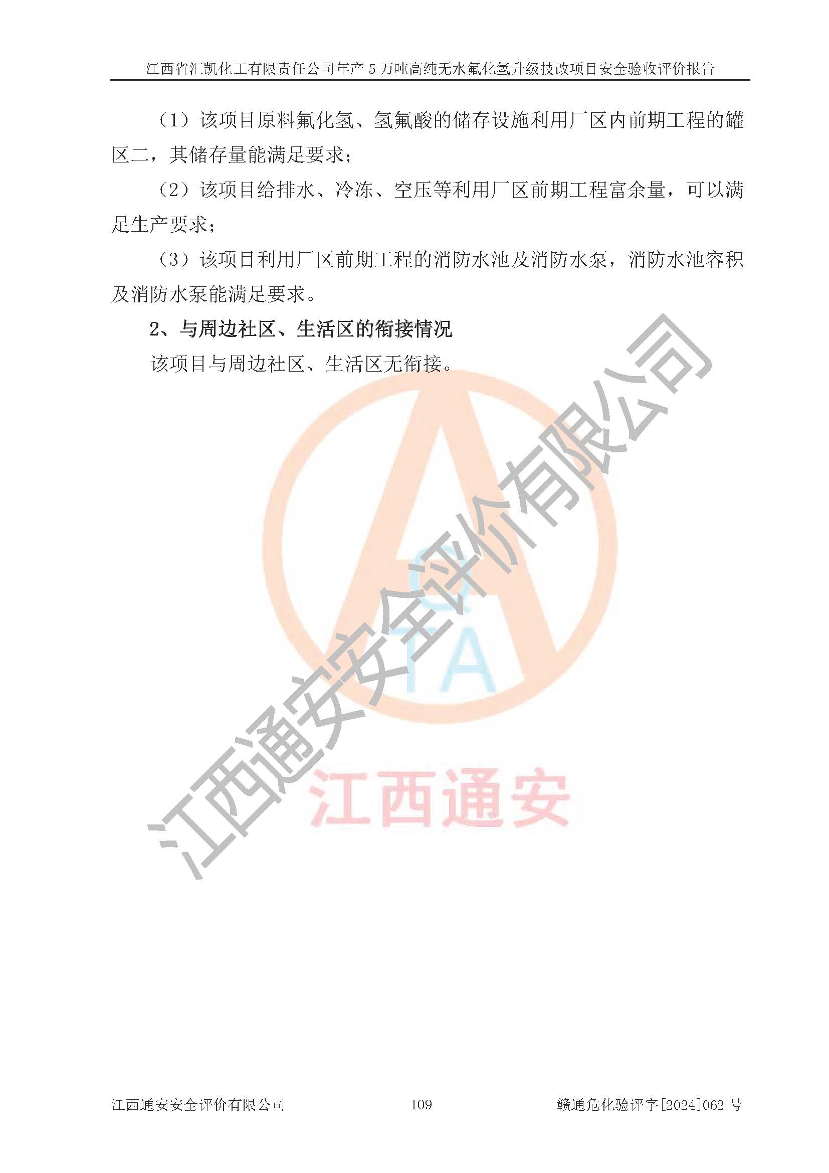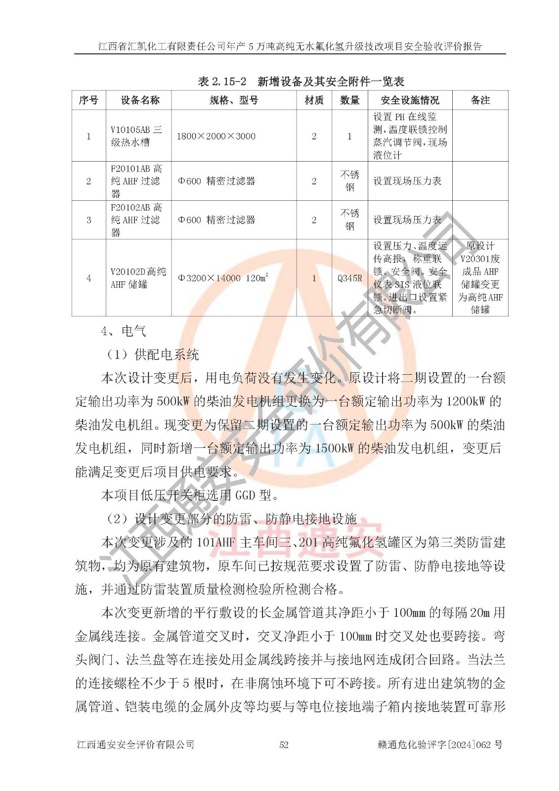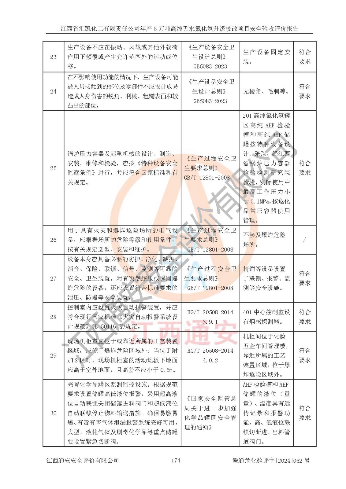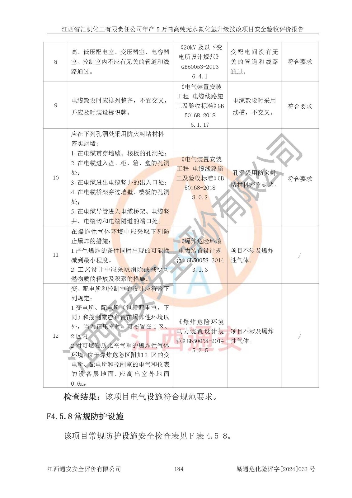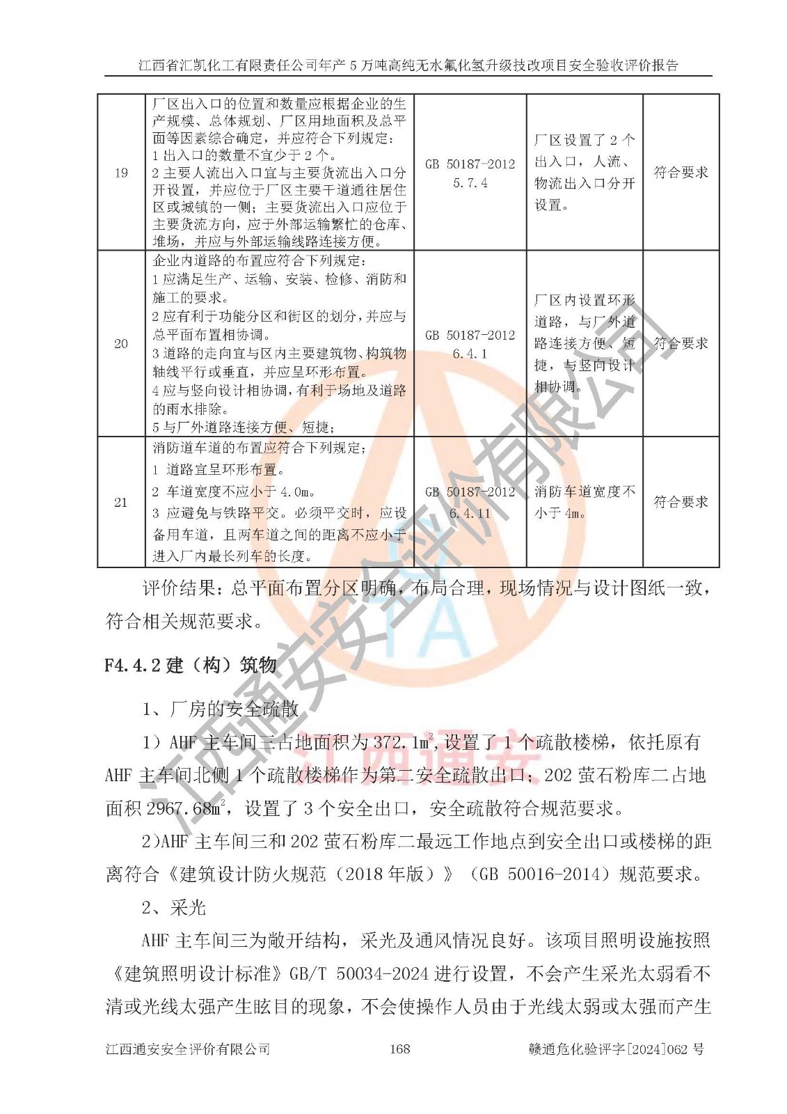 評價結(jié)論 | 江西省匯凱化工有限責任公司年產(chǎn)5萬噸高純無水氟化氫升級技改項目現(xiàn)場情況與設(shè)計圖紙一致,DCS系統(tǒng)和SIS系統(tǒng)符合設(shè)計要求、運行正常,主要負責人、安全管理人員等有關(guān)從業(yè)人員資質(zhì)符合《江西省危險化學品安全專項整治三年行動實施方案》要求,安全設(shè)施及安全管理符合**及有關(guān)部門關(guān)于安全生產(chǎn)法律、法規(guī)、標準的要求,該項目試生產(chǎn)以來,工藝設(shè)備運行正常,安全設(shè)施和采取的安全技術(shù)措施符合設(shè)計要求并達到預(yù)期結(jié)果,可以滿足建設(shè)項目安全生產(chǎn)的要求,安全生產(chǎn)管理**,具備了安全設(shè)施竣工驗收條件。 | ||||||