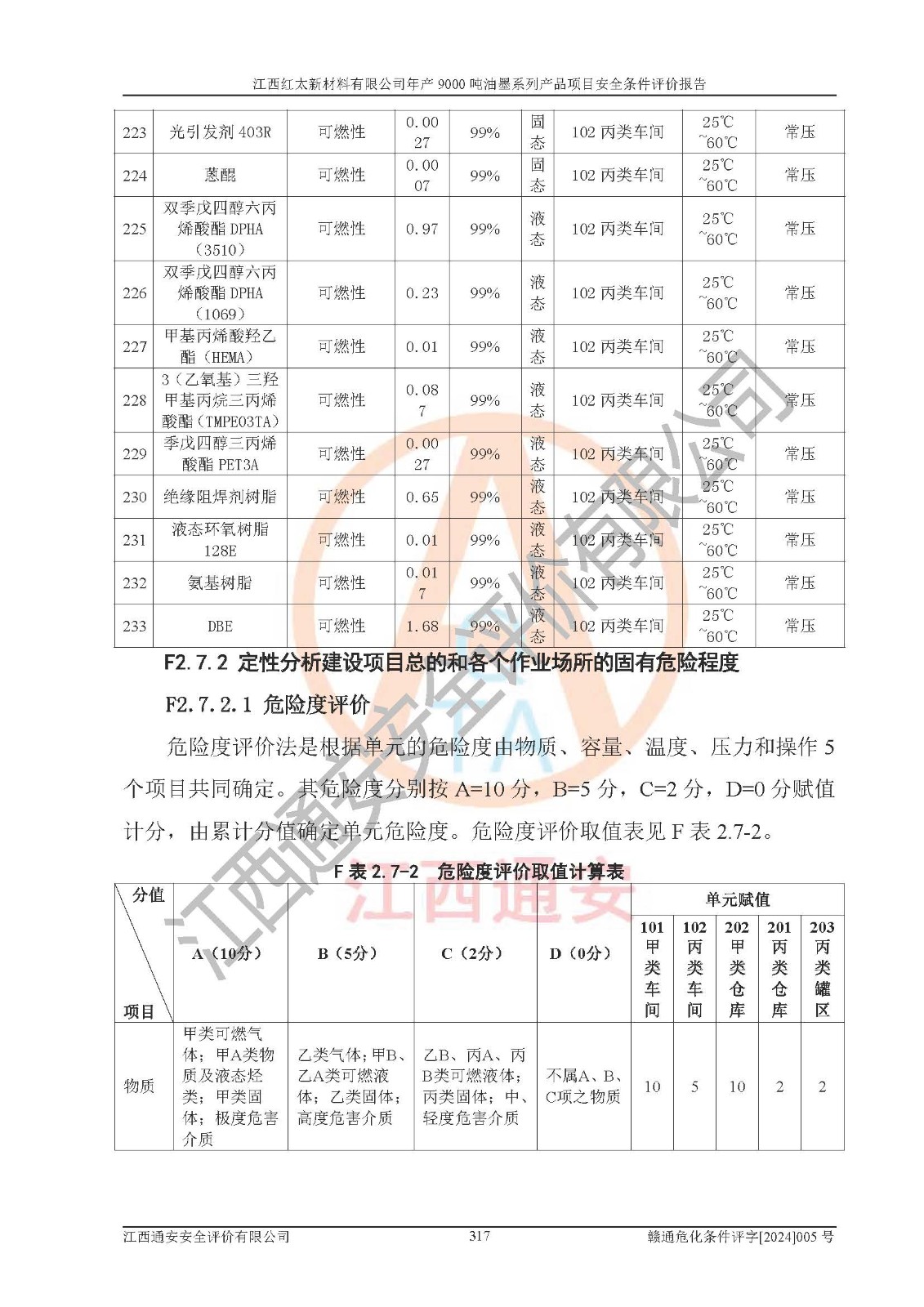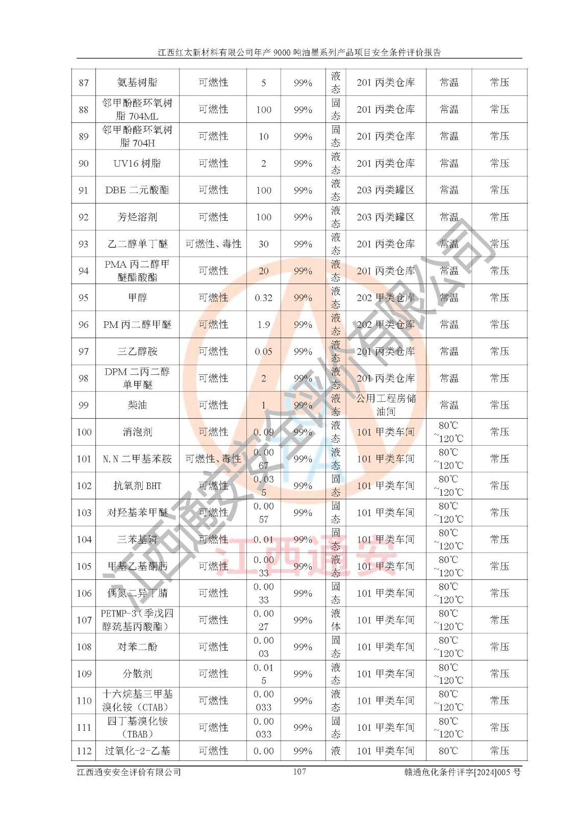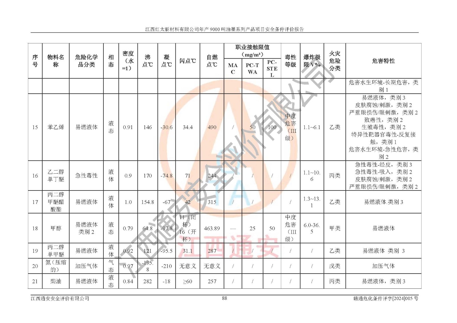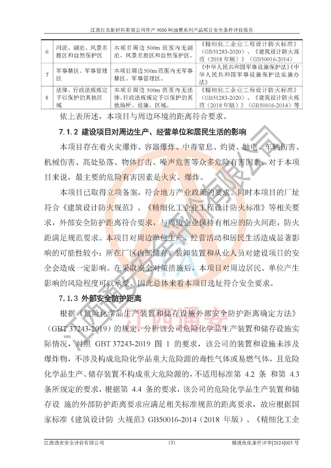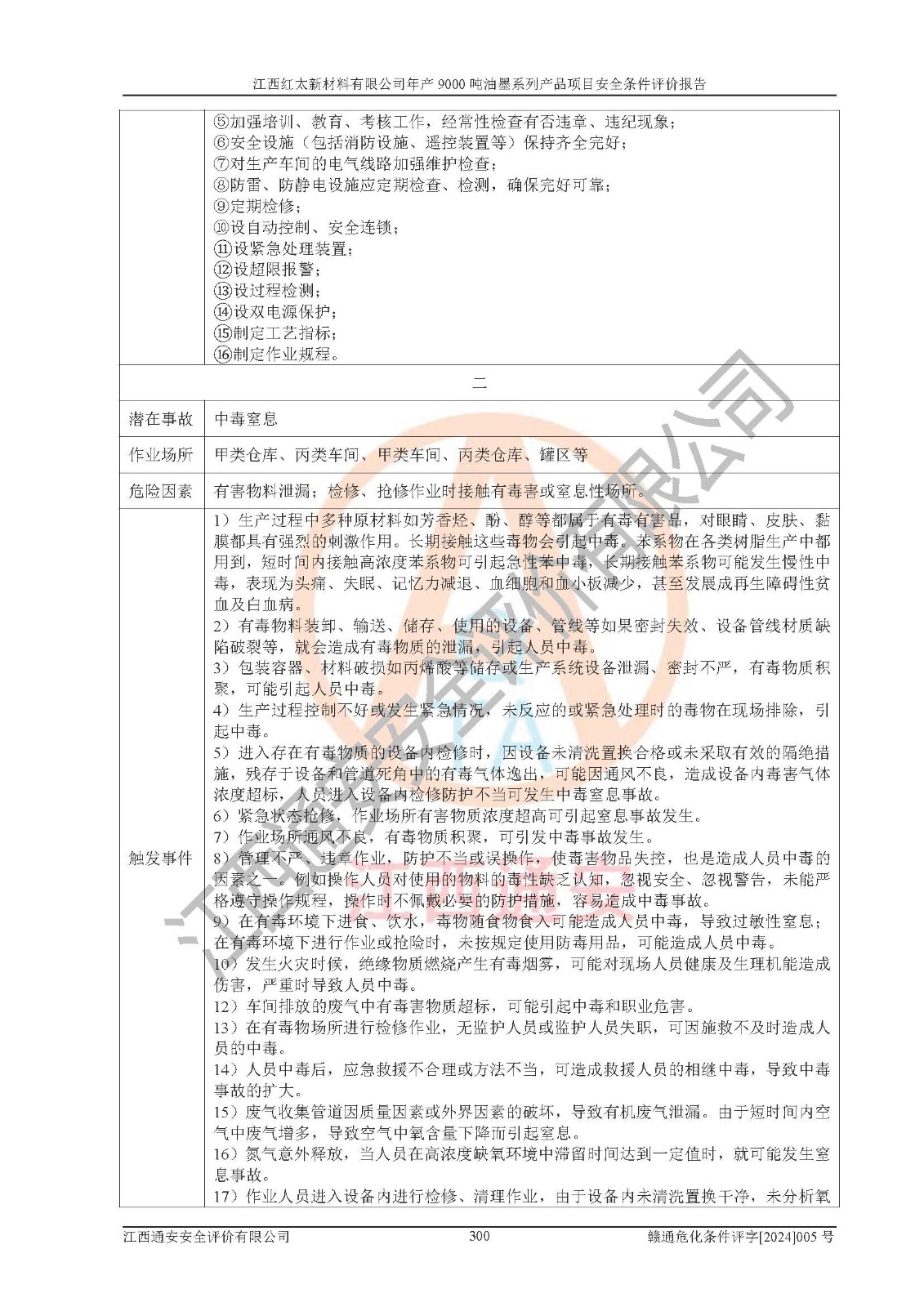 1)本項(xiàng)目依法取得了《江西省企業(yè)投資項(xiàng)目備案通知書》、《建設(shè)用地規(guī)劃許可證》,符合地方產(chǎn)業(yè)發(fā)展規(guī)劃的要求。 2)根據(jù)《**安全監(jiān)管總局關(guān)于公布首批重點(diǎn)監(jiān)管的危險(xiǎn)化工工藝目錄的通知》(安監(jiān)總管三[2009]116號(hào))和《**安全監(jiān)管總局關(guān)于公布第二批重點(diǎn)監(jiān)管危險(xiǎn)化工工藝目錄和調(diào)整首批重點(diǎn)監(jiān)管危險(xiǎn)化工工藝中部分典型工藝的通知》(安監(jiān)總管三[2013]3號(hào)),本項(xiàng)目聚合工藝為常壓條件生產(chǎn)工藝,故不列入危險(xiǎn)工藝。 3)根據(jù)《危險(xiǎn)化學(xué)品重大危險(xiǎn)源辨識(shí)》(GB18218-2018),該項(xiàng)目未構(gòu)成危險(xiǎn)化學(xué)品重大危險(xiǎn)源。 4)項(xiàng)目存在的主要危險(xiǎn)因素有:火災(zāi)爆炸、容器爆炸、中毒窒息、灼燙、觸電、**傷害、機(jī)械傷害、高處墜落、物體打擊、淹溺等,存在的主要危害因素有:噪聲與振動(dòng)、高溫、有害化學(xué)物質(zhì)等;引起事故的原因有人的不安全行為、物的不安全狀態(tài)、管理缺陷和環(huán)境不良。其中*主要的危險(xiǎn)有害因素是火災(zāi)爆炸。 5)采用預(yù)先危險(xiǎn)性分析法評(píng)價(jià),結(jié)果為: (1)通過預(yù)先危險(xiǎn)(PHA)分析可知,項(xiàng)目廠址及總體布局單元存在周邊環(huán)境相互影響,發(fā)生異常情況,可對(duì)周邊企業(yè)生產(chǎn)經(jīng)營(yíng)活動(dòng)、人員活動(dòng)產(chǎn)生影響;存在自然條件影響,可因雷擊、暴雨等引起事故;存在**傷害、建筑物危害,其固有的危險(xiǎn)性等級(jí)為Ⅱ級(jí),屬于“臨界的”,應(yīng)予以排除、采取控制措施因素。 (2)生產(chǎn)作業(yè)存在的危險(xiǎn)因素包括火災(zāi)爆炸、觸電、灼燙、中毒窒息固有的危險(xiǎn)等級(jí)為Ⅲ級(jí),屬于“危險(xiǎn)的”,可能導(dǎo)致人員傷亡和系統(tǒng)損壞的因素,需要采取防范和對(duì)策措施的因素;其它危險(xiǎn)因素固有的危險(xiǎn)等級(jí)為Ⅱ級(jí),屬于“臨界的”,應(yīng)予以排除、采取控制措施因素。 (3)生產(chǎn)作業(yè)存在的噪聲、粉塵、高溫、有害化學(xué)物質(zhì)的危險(xiǎn)有害因素等級(jí)為Ⅱ級(jí),屬于“臨界的”,應(yīng)予以排除、采取控制措施因素。 6)危險(xiǎn)度評(píng)價(jià)分析,結(jié)果為: 生產(chǎn)裝置危險(xiǎn)度評(píng)價(jià)分析:101甲類車間為**危險(xiǎn)(Ⅰ級(jí)),102丙類車間為中度危險(xiǎn)(Ⅱ級(jí))。 儲(chǔ)存單元危險(xiǎn)度評(píng)價(jià)分析:202甲類倉(cāng)庫(kù)為**危險(xiǎn)(Ⅰ級(jí)),201丙類倉(cāng)庫(kù)為低度危險(xiǎn)(Ⅲ級(jí)),203丙類罐區(qū)為中度危險(xiǎn)(Ⅱ級(jí))。 7)作業(yè)條件危險(xiǎn)性評(píng)價(jià)結(jié)果:在選定的評(píng)價(jià)單元中,其危險(xiǎn)分值均在70以下,危險(xiǎn)程度基本屬于“可能危險(xiǎn)”、“稍有危險(xiǎn)”范圍,作業(yè)條件相對(duì)安全。企業(yè)經(jīng)營(yíng)過程中首先應(yīng)重點(diǎn)加強(qiáng)對(duì)甲類生產(chǎn)車間、甲類倉(cāng)庫(kù)、儲(chǔ)罐區(qū)的危險(xiǎn)因素的嚴(yán)格控制,注重日常安全管理;其次要建立健全完善的安全生產(chǎn)責(zé)任制、安全管理制度、安全技術(shù)操作規(guī)程并**其貫徹落實(shí);第三要認(rèn)真抓好操作人員、管理人員的安全知識(shí)和操作技能的培訓(xùn),**人員具有與工程技術(shù)水平相適應(yīng)的技術(shù)素質(zhì)和安全素質(zhì),**安全作業(yè)。 8)項(xiàng)目建設(shè)場(chǎng)地符合當(dāng)?shù)匾?guī)劃要求,建設(shè)場(chǎng)地通過合理規(guī)劃,其選址、周邊環(huán)境、總平面布置、交通運(yùn)輸?shù)饶芊稀吨腥A人民共和國(guó)安全生產(chǎn)法》、《危險(xiǎn)化學(xué)品安全管理?xiàng)l例》、《建筑設(shè)計(jì)防火規(guī)范》、《精細(xì)化工企業(yè)工程設(shè)計(jì)防火標(biāo)準(zhǔn)》等法規(guī)、標(biāo)準(zhǔn)、規(guī)范要求。 廠址地區(qū)地震活動(dòng)相對(duì)較弱,災(zāi)害性天氣出現(xiàn)頻率稍高,自然災(zāi)害對(duì)項(xiàng)目建設(shè)具有**影響,通過采取相應(yīng)的防護(hù)措施,自然條件適宜建設(shè)。 9)建設(shè)項(xiàng)目符合**產(chǎn)業(yè)政策的要求;選擇工藝為現(xiàn)行成熟工藝,其安全可靠性可得到**。 10)本報(bào)告已根據(jù)有關(guān)安全生產(chǎn)法律、法規(guī)、規(guī)章和**標(biāo)準(zhǔn)、行業(yè)標(biāo)準(zhǔn),并嚴(yán)格執(zhí)行省委辦公廳省**辦公廳《關(guān)于全面加強(qiáng)危險(xiǎn)化學(xué)品安全生產(chǎn)工作的實(shí)施意見》(贛辦發(fā)[2020]32號(hào))及都陽(yáng)湖生態(tài)經(jīng)濟(jì)區(qū)、長(zhǎng)江經(jīng)濟(jì)帶、“五河一湖”相關(guān)政策規(guī)定,客觀、公正、科學(xué)地進(jìn)行安全評(píng)價(jià),項(xiàng)目符合《江西省應(yīng)急管理廳關(guān)于印發(fā)《江西省危險(xiǎn)化學(xué)品建設(shè)項(xiàng)目安全監(jiān)督管理實(shí)施細(xì)則》(試行)的通知》(贛應(yīng)急字[2021]100號(hào))的要求。 11)本報(bào)告結(jié)合工藝特征,提出應(yīng)采取的對(duì)應(yīng)的自動(dòng)化控制系統(tǒng)及自動(dòng)化實(shí)施方案,滿足《江西省應(yīng)急管理廳關(gu