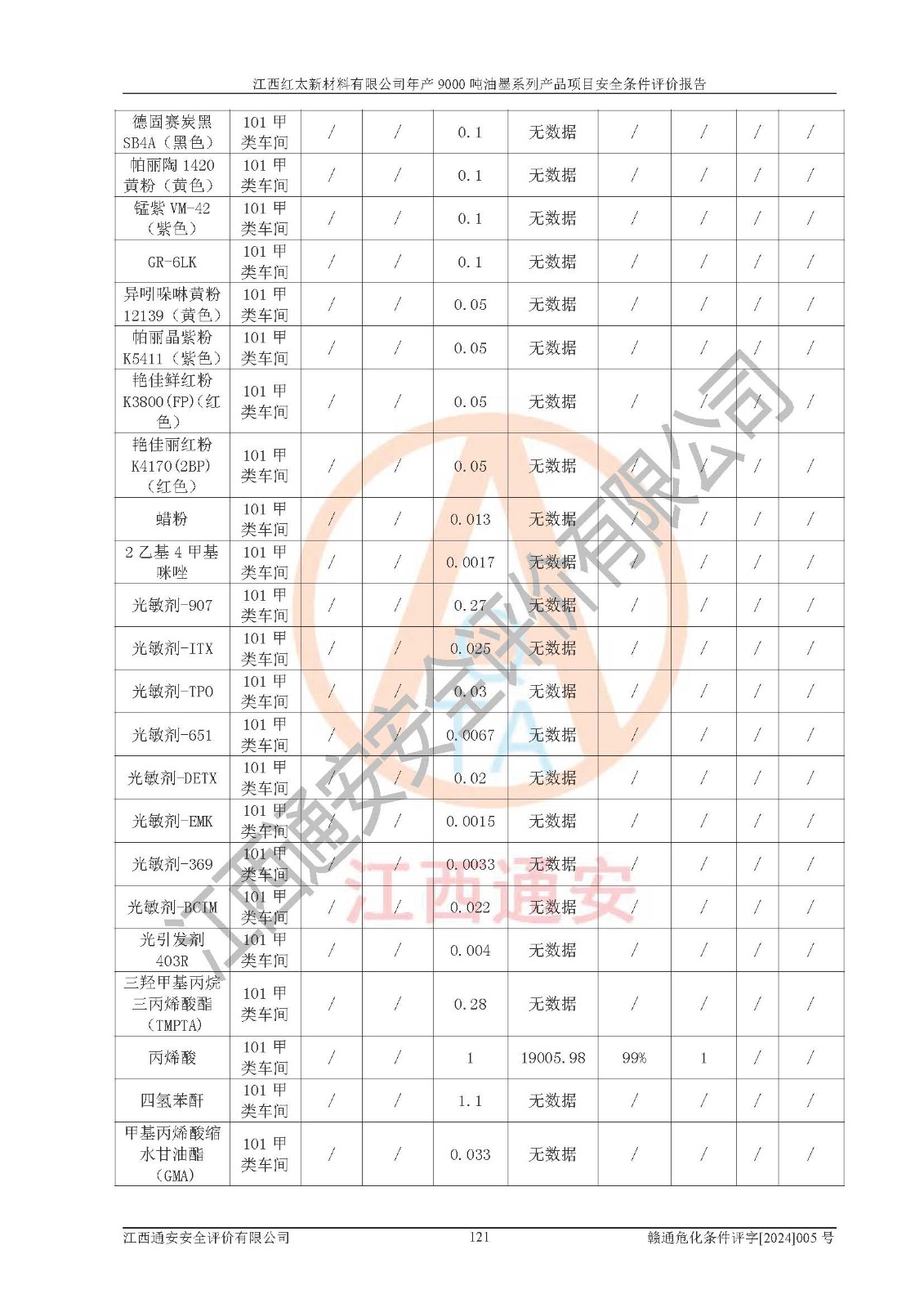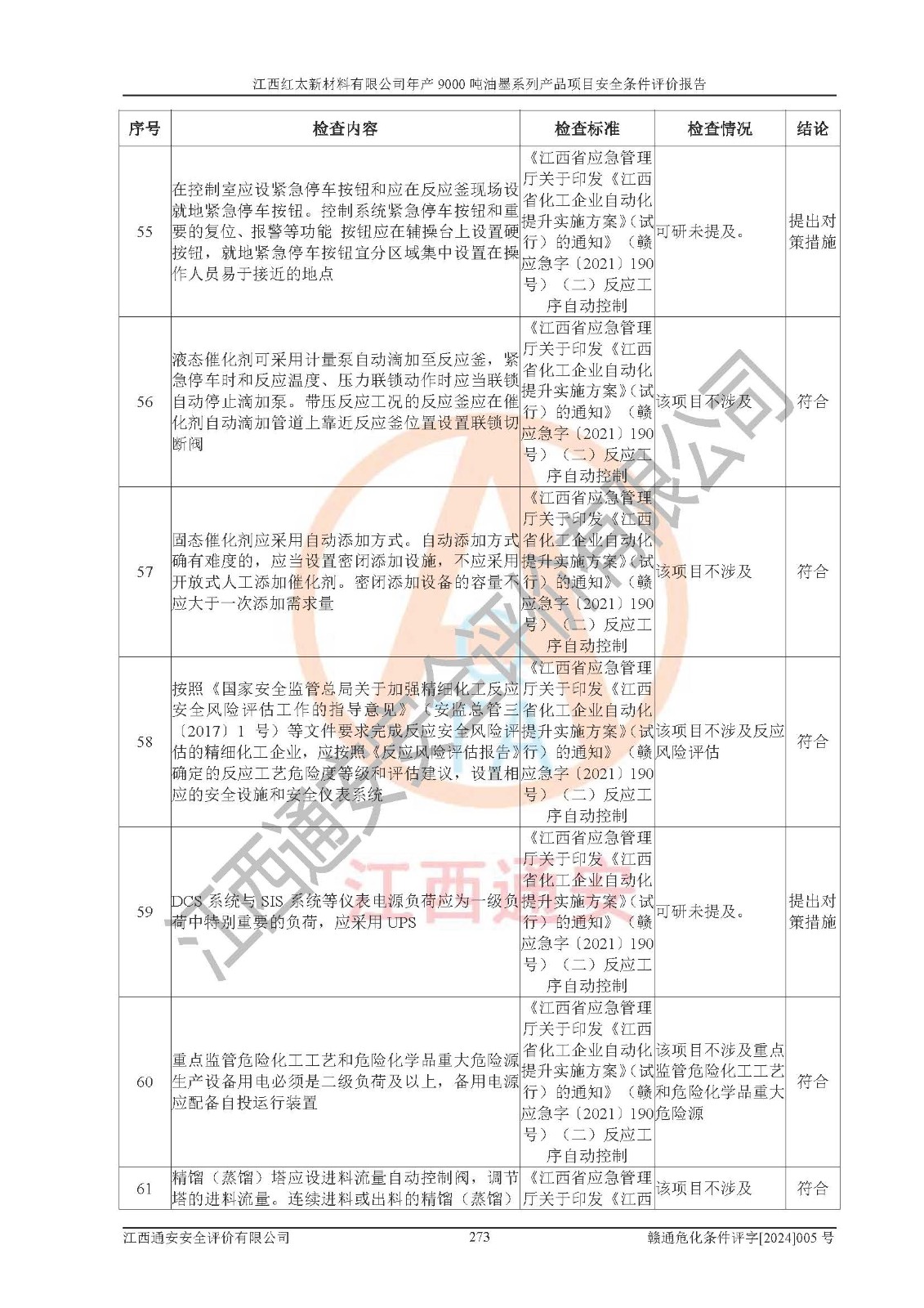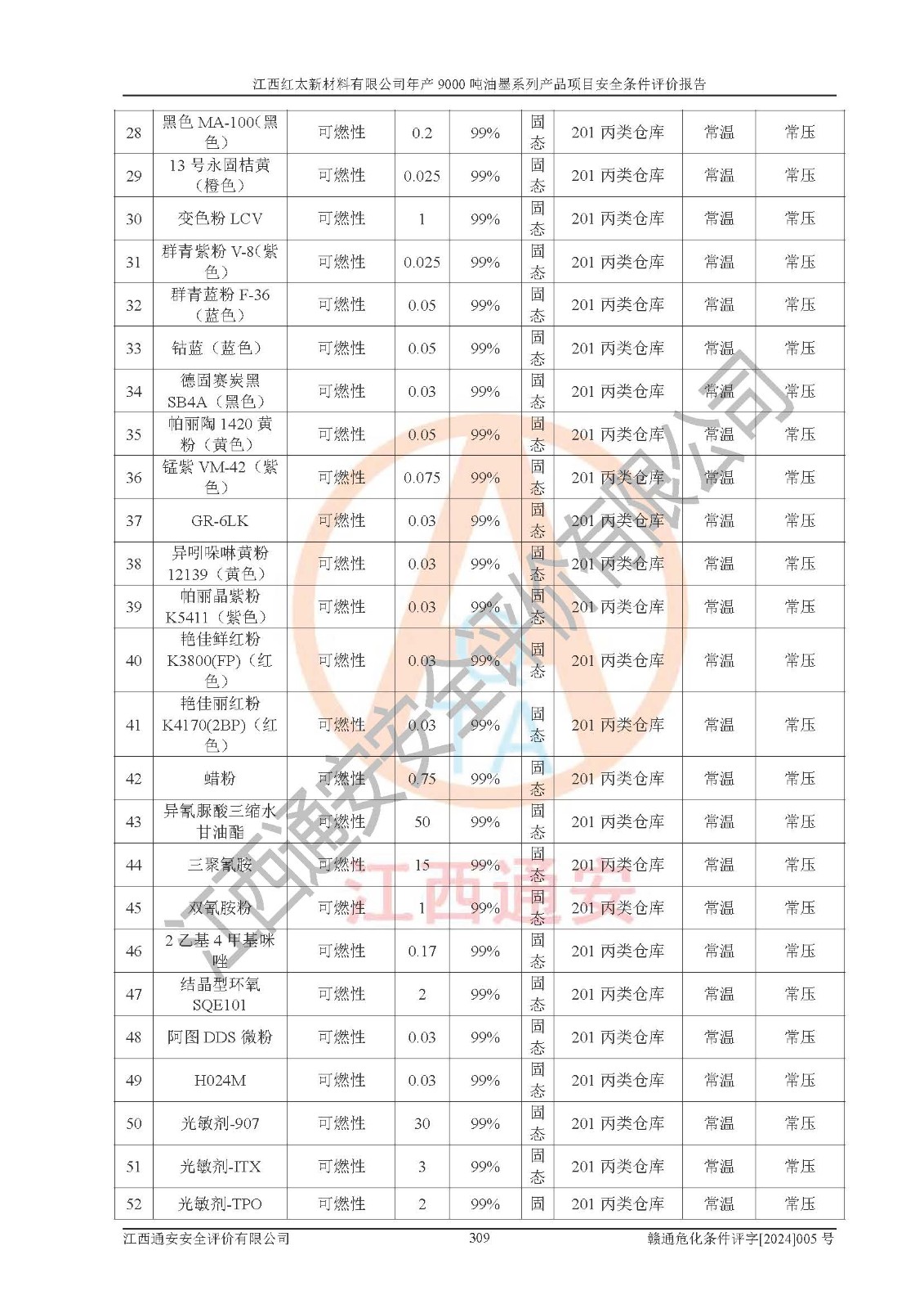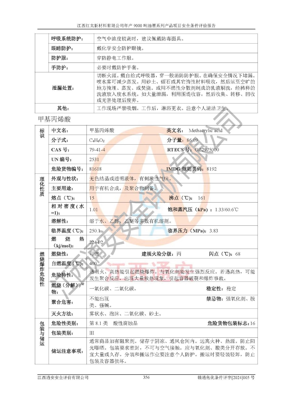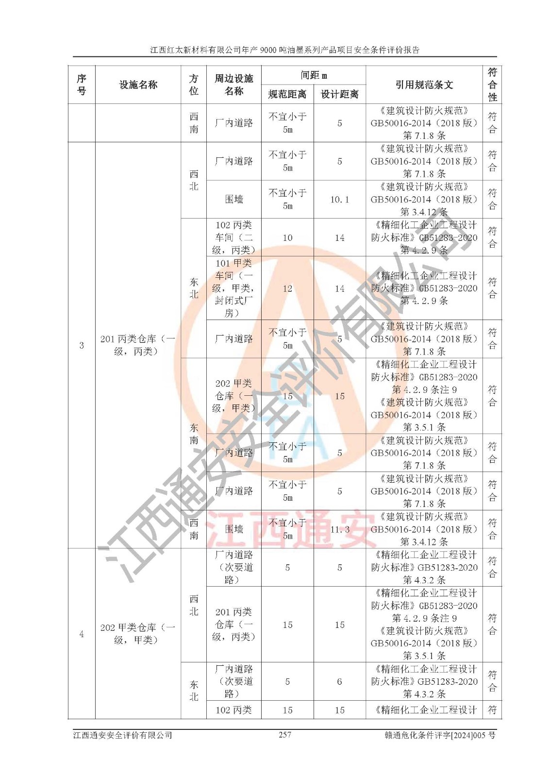 1)本項(xiàng)目依法取得了《江西省企業(yè)投資項(xiàng)目備案通知書》、《建設(shè)用地規(guī)劃許可證》,符合地方產(chǎn)業(yè)發(fā)展規(guī)劃的要求。 2)根據(jù)《**安全監(jiān)管總局關(guān)于公布首批重點(diǎn)監(jiān)管的危險(xiǎn)化工工藝目錄的通知》(安監(jiān)總管三[2009]116號(hào))和《**安全監(jiān)管總局關(guān)于公布第二批重點(diǎn)監(jiān)管危險(xiǎn)化工工藝目錄和調(diào)整首批重點(diǎn)監(jiān)管危險(xiǎn)化工工藝中部分典型工藝的通知》(安監(jiān)總管三[2013]3號(hào)),本項(xiàng)目聚合工藝為常壓條件生產(chǎn)工藝,故不列入危險(xiǎn)工藝。 3)根據(jù)《危險(xiǎn)化學(xué)品重大危險(xiǎn)源辨識(shí)》(GB18218-2018),該項(xiàng)目未構(gòu)成危險(xiǎn)化學(xué)品重大危險(xiǎn)源。 4)項(xiàng)目存在的主要危險(xiǎn)因素有:火災(zāi)爆炸、容器爆炸、中毒窒息、灼燙、觸電、**傷害、機(jī)械傷害、高處墜落、物體打擊、淹溺等,存在的主要危害因素有:噪聲與振動(dòng)、高溫、有害化學(xué)物質(zhì)等;引起事故的原因有人的不安全行為、物的不安全狀態(tài)、管理缺陷和環(huán)境不良。其中*主要的危險(xiǎn)有害因素是火災(zāi)爆炸。 5)采用預(yù)先危險(xiǎn)性分析法評(píng)價(jià),結(jié)果為: (1)通過預(yù)先危險(xiǎn)(PHA)分析可知,項(xiàng)目廠址及總體布局單元存在周邊環(huán)境相互影響,發(fā)生異常情況,可對(duì)周邊企業(yè)生產(chǎn)經(jīng)營(yíng)活動(dòng)、人員活動(dòng)產(chǎn)生影響;存在自然條件影響,可因雷擊、暴雨等引起事故;存在**傷害、建筑物危害,其固有的危險(xiǎn)性等級(jí)為Ⅱ級(jí),屬于“臨界的”,應(yīng)予以排除、采取控制措施因素。 (2)生產(chǎn)作業(yè)存在的危險(xiǎn)因素包括火災(zāi)爆炸、觸電、灼燙、中毒窒息固有的危險(xiǎn)等級(jí)為Ⅲ級(jí),屬于“危險(xiǎn)的”,可能導(dǎo)致人員傷亡和系統(tǒng)損壞的因素,需要采取防范和對(duì)策措施的因素;其它危險(xiǎn)因素固有的危險(xiǎn)等級(jí)為Ⅱ級(jí),屬于“臨界的”,應(yīng)予以排除、采取控制措施因素。 (3)生產(chǎn)作業(yè)存在的噪聲、粉塵、高溫、有害化學(xué)物質(zhì)的危險(xiǎn)有害因素等級(jí)為Ⅱ級(jí),屬于“臨界的”,應(yīng)予以排除、采取控制措施因素。 6)危險(xiǎn)度評(píng)價(jià)分析,結(jié)果為: 生產(chǎn)裝置危險(xiǎn)度評(píng)價(jià)分析:101甲類車間為**危險(xiǎn)(Ⅰ級(jí)),102丙類車間為中度危險(xiǎn)(Ⅱ級(jí))。 儲(chǔ)存單元危險(xiǎn)度評(píng)價(jià)分析:202甲類倉(cāng)庫(kù)為**危險(xiǎn)(Ⅰ級(jí)),201丙類倉(cāng)庫(kù)為低度危險(xiǎn)(Ⅲ級(jí)),203丙類罐區(qū)為中度危險(xiǎn)(Ⅱ級(jí))。 7)作業(yè)條件危險(xiǎn)性評(píng)價(jià)結(jié)果:在選定的評(píng)價(jià)單元中,其危險(xiǎn)分值均在70以下,危險(xiǎn)程度基本屬于“可能危險(xiǎn)”、“稍有危險(xiǎn)”范圍,作業(yè)條件相對(duì)安全。企業(yè)經(jīng)營(yíng)過程中首先應(yīng)重點(diǎn)加強(qiáng)對(duì)甲類生產(chǎn)車間、甲類倉(cāng)庫(kù)、儲(chǔ)罐區(qū)的危險(xiǎn)因素的嚴(yán)格控制,注重日常安全管理;其次要建立健全完善的安全生產(chǎn)責(zé)任制、安全管理制度、安全技術(shù)操作規(guī)程并**其貫徹落實(shí);第三要認(rèn)真抓好操作人員、管理人員的安全知識(shí)和操作技能的培訓(xùn),**人員具有與工程技術(shù)水平相適應(yīng)的技術(shù)素質(zhì)和安全素質(zhì),**安全作業(yè)。 8)項(xiàng)目建設(shè)場(chǎng)地符合當(dāng)?shù)匾?guī)劃要求,建設(shè)場(chǎng)地通過合理規(guī)劃,其選址、周邊環(huán)境、總平面布置、交通運(yùn)輸?shù)饶芊稀吨腥A人民共和國(guó)安全生產(chǎn)法》、《危險(xiǎn)化學(xué)品安全管理?xiàng)l例》、《建筑設(shè)計(jì)防火規(guī)范》、《精細(xì)化工企業(yè)工程設(shè)計(jì)防火標(biāo)準(zhǔn)》等法規(guī)、標(biāo)準(zhǔn)、規(guī)范要求。 廠址地區(qū)地震活動(dòng)相對(duì)較弱,災(zāi)害性天氣出現(xiàn)頻率稍高,自然災(zāi)害對(duì)項(xiàng)目建設(shè)具有**影響,通過采取相應(yīng)的防護(hù)措施,自然條件適宜建設(shè)。 9)建設(shè)項(xiàng)目符合**產(chǎn)業(yè)政策的要求;選擇工藝為現(xiàn)行成熟工藝,其安全可靠性可得到**。 10)本報(bào)告已根據(jù)有關(guān)安全生產(chǎn)法律、法規(guī)、規(guī)章和**標(biāo)準(zhǔn)、行業(yè)標(biāo)準(zhǔn),并嚴(yán)格執(zhí)行省委辦公廳省**辦公廳《關(guān)于全面加強(qiáng)危險(xiǎn)化學(xué)品安全生產(chǎn)工作的實(shí)施意見》(贛辦發(fā)[2020]32號(hào))及都陽(yáng)湖生態(tài)經(jīng)濟(jì)區(qū)、長(zhǎng)江經(jīng)濟(jì)帶、“五河一湖”相關(guān)政策規(guī)定,客觀、公正、科學(xué)地進(jìn)行安全評(píng)價(jià),項(xiàng)目符合《江西省應(yīng)急管理廳關(guān)于印發(fā)《江西省危險(xiǎn)化學(xué)品建設(shè)項(xiàng)目安全監(jiān)督管理實(shí)施細(xì)則》(試行)的通知》(贛應(yīng)急字[2021]100號(hào))的要求。 11)本報(bào)告結(jié)合工藝特征,提出應(yīng)采取的對(duì)應(yīng)的自動(dòng)化控制系統(tǒng)及自動(dòng)化實(shí)施方案,滿足《江西省應(yīng)急管理廳關(gu