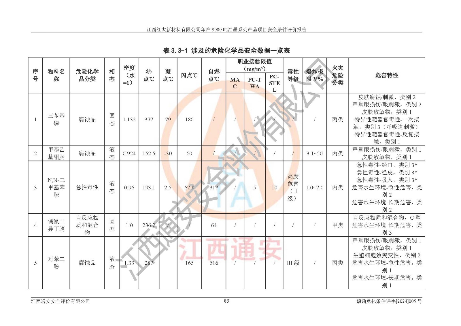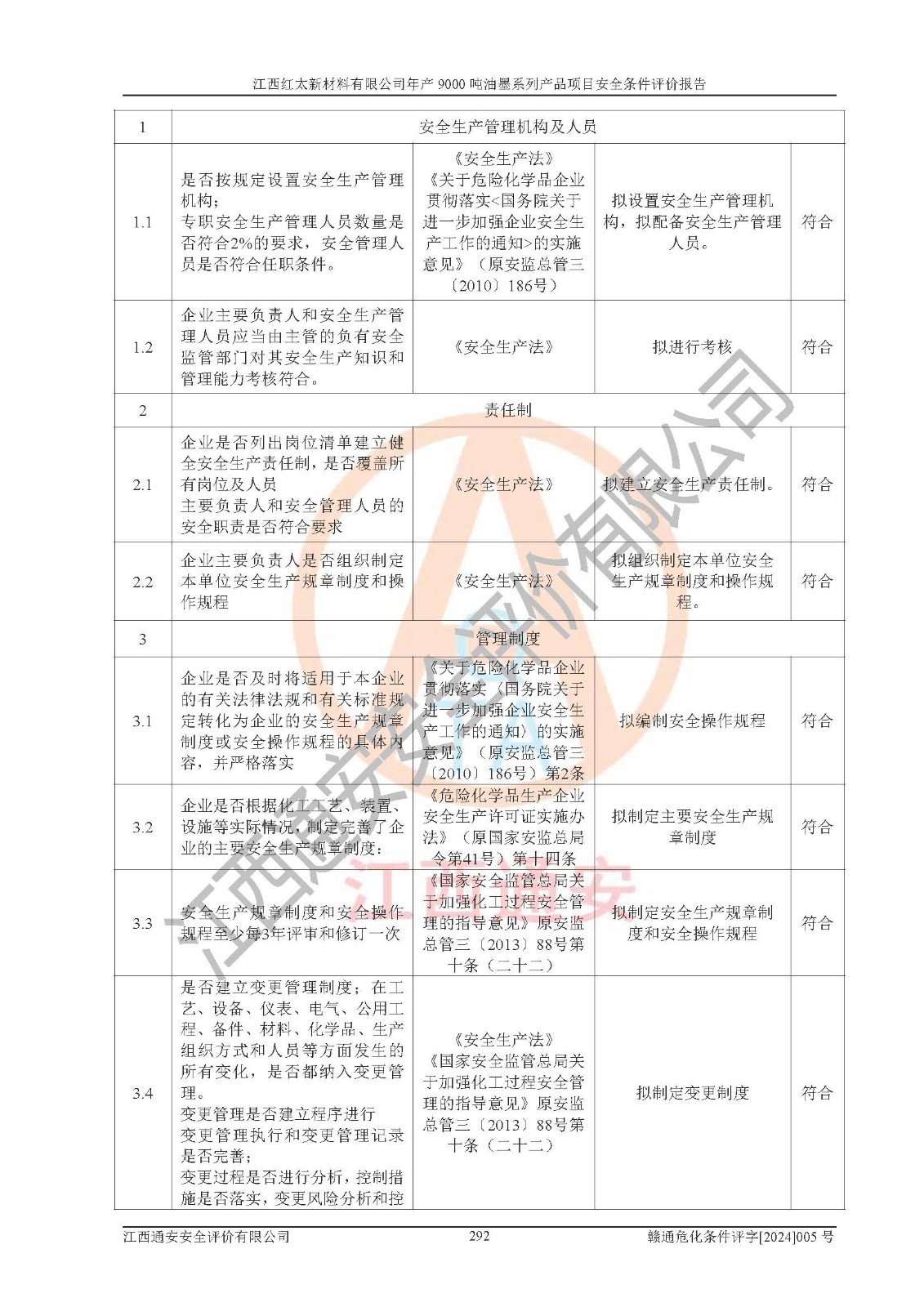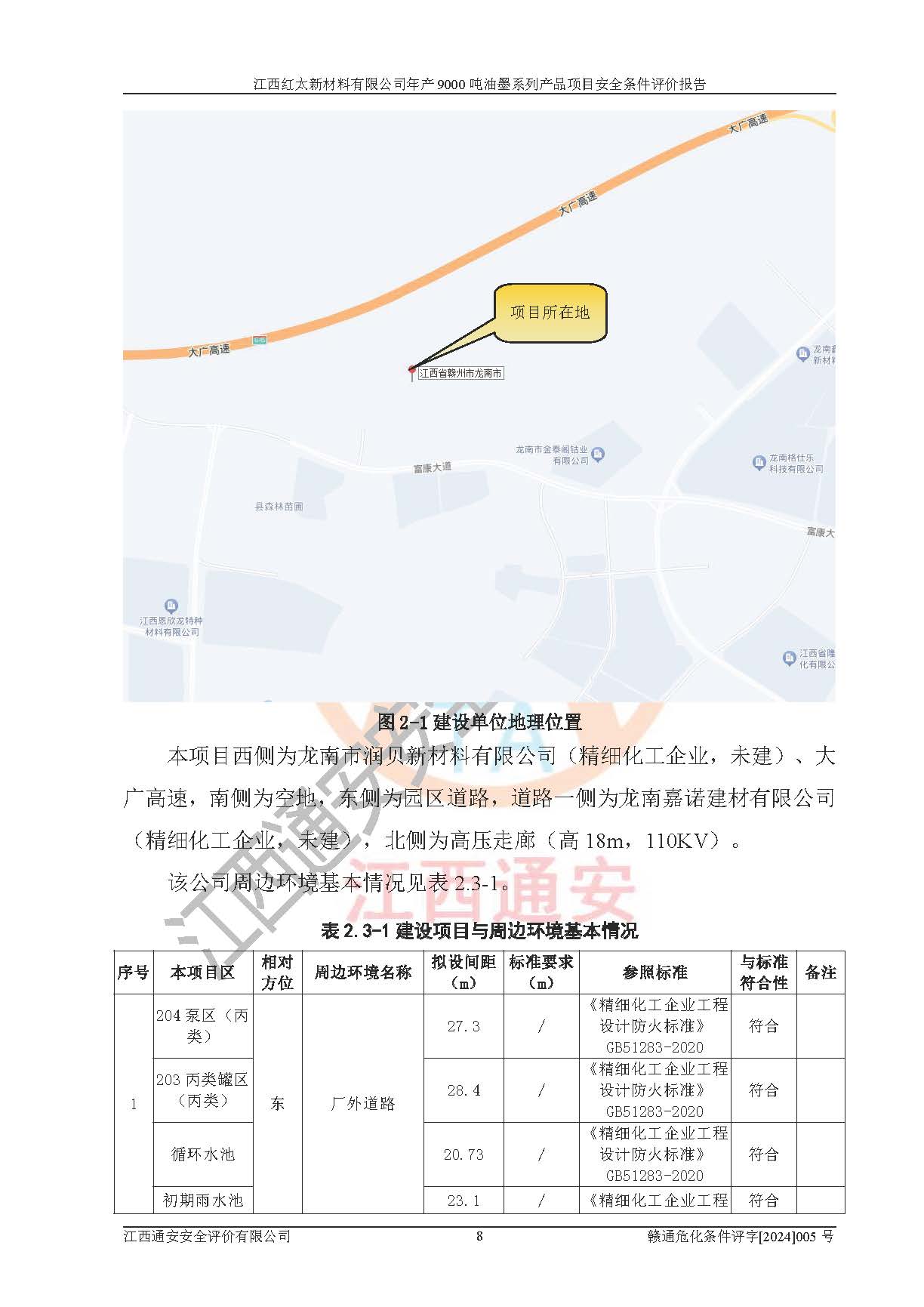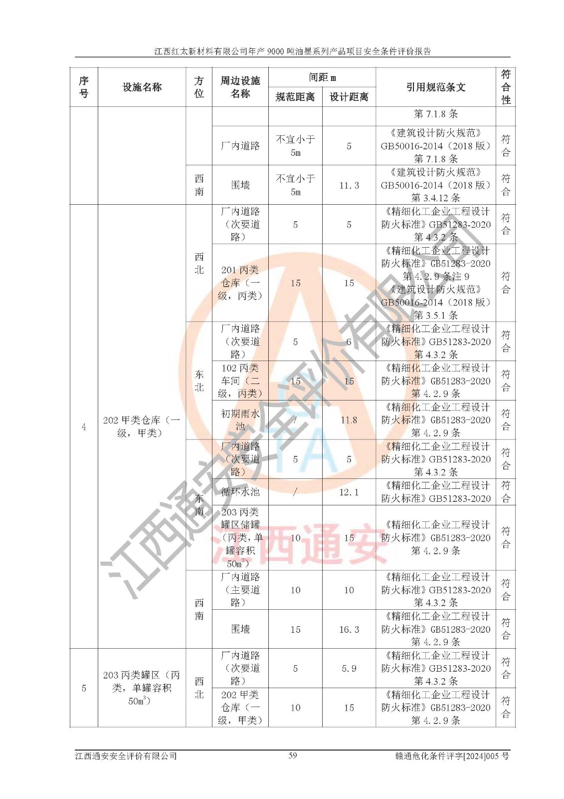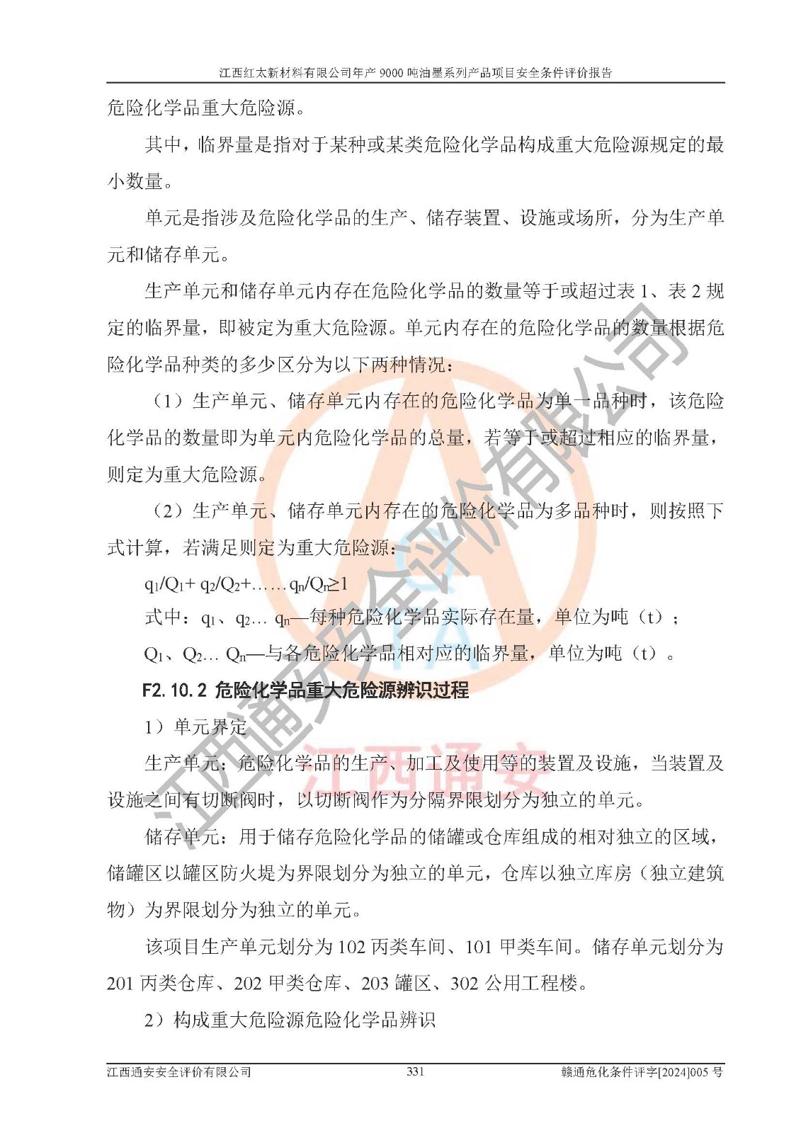 1)本項(xiàng)目依法取得了《江西省企業(yè)投資項(xiàng)目備案通知書》、《建設(shè)用地規(guī)劃許可證》,符合地方產(chǎn)業(yè)發(fā)展規(guī)劃的要求。 2)根據(jù)《**安全監(jiān)管總局關(guān)于公布首批重點(diǎn)監(jiān)管的危險(xiǎn)化工工藝目錄的通知》(安監(jiān)總管三[2009]116號(hào))和《**安全監(jiān)管總局關(guān)于公布第二批重點(diǎn)監(jiān)管危險(xiǎn)化工工藝目錄和調(diào)整首批重點(diǎn)監(jiān)管危險(xiǎn)化工工藝中部分典型工藝的通知》(安監(jiān)總管三[2013]3號(hào)),本項(xiàng)目聚合工藝為常壓條件生產(chǎn)工藝,故不列入危險(xiǎn)工藝。 3)根據(jù)《危險(xiǎn)化學(xué)品重大危險(xiǎn)源辨識(shí)》(GB18218-2018),該項(xiàng)目未構(gòu)成危險(xiǎn)化學(xué)品重大危險(xiǎn)源。 4)項(xiàng)目存在的主要危險(xiǎn)因素有:火災(zāi)爆炸、容器爆炸、中毒窒息、灼燙、觸電、**傷害、機(jī)械傷害、高處墜落、物體打擊、淹溺等,存在的主要危害因素有:噪聲與振動(dòng)、高溫、有害化學(xué)物質(zhì)等;引起事故的原因有人的不安全行為、物的不安全狀態(tài)、管理缺陷和環(huán)境不良。其中*主要的危險(xiǎn)有害因素是火災(zāi)爆炸。 5)采用預(yù)先危險(xiǎn)性分析法評(píng)價(jià),結(jié)果為: (1)通過預(yù)先危險(xiǎn)(PHA)分析可知,項(xiàng)目廠址及總體布局單元存在周邊環(huán)境相互影響,發(fā)生異常情況,可對(duì)周邊企業(yè)生產(chǎn)經(jīng)營(yíng)活動(dòng)、人員活動(dòng)產(chǎn)生影響;存在自然條件影響,可因雷擊、暴雨等引起事故;存在**傷害、建筑物危害,其固有的危險(xiǎn)性等級(jí)為Ⅱ級(jí),屬于“臨界的”,應(yīng)予以排除、采取控制措施因素。 (2)生產(chǎn)作業(yè)存在的危險(xiǎn)因素包括火災(zāi)爆炸、觸電、灼燙、中毒窒息固有的危險(xiǎn)等級(jí)為Ⅲ級(jí),屬于“危險(xiǎn)的”,可能導(dǎo)致人員傷亡和系統(tǒng)損壞的因素,需要采取防范和對(duì)策措施的因素;其它危險(xiǎn)因素固有的危險(xiǎn)等級(jí)為Ⅱ級(jí),屬于“臨界的”,應(yīng)予以排除、采取控制措施因素。 (3)生產(chǎn)作業(yè)存在的噪聲、粉塵、高溫、有害化學(xué)物質(zhì)的危險(xiǎn)有害因素等級(jí)為Ⅱ級(jí),屬于“臨界的”,應(yīng)予以排除、采取控制措施因素。 6)危險(xiǎn)度評(píng)價(jià)分析,結(jié)果為: 生產(chǎn)裝置危險(xiǎn)度評(píng)價(jià)分析:101甲類車間為**危險(xiǎn)(Ⅰ級(jí)),102丙類車間為中度危險(xiǎn)(Ⅱ級(jí))。 儲(chǔ)存單元危險(xiǎn)度評(píng)價(jià)分析:202甲類倉(cāng)庫(kù)為**危險(xiǎn)(Ⅰ級(jí)),201丙類倉(cāng)庫(kù)為低度危險(xiǎn)(Ⅲ級(jí)),203丙類罐區(qū)為中度危險(xiǎn)(Ⅱ級(jí))。 7)作業(yè)條件危險(xiǎn)性評(píng)價(jià)結(jié)果:在選定的評(píng)價(jià)單元中,其危險(xiǎn)分值均在70以下,危險(xiǎn)程度基本屬于“可能危險(xiǎn)”、“稍有危險(xiǎn)”范圍,作業(yè)條件相對(duì)安全。企業(yè)經(jīng)營(yíng)過程中首先應(yīng)重點(diǎn)加強(qiáng)對(duì)甲類生產(chǎn)車間、甲類倉(cāng)庫(kù)、儲(chǔ)罐區(qū)的危險(xiǎn)因素的嚴(yán)格控制,注重日常安全管理;其次要建立健全完善的安全生產(chǎn)責(zé)任制、安全管理制度、安全技術(shù)操作規(guī)程并**其貫徹落實(shí);第三要認(rèn)真抓好操作人員、管理人員的安全知識(shí)和操作技能的培訓(xùn),**人員具有與工程技術(shù)水平相適應(yīng)的技術(shù)素質(zhì)和安全素質(zhì),**安全作業(yè)。 8)項(xiàng)目建設(shè)場(chǎng)地符合當(dāng)?shù)匾?guī)劃要求,建設(shè)場(chǎng)地通過合理規(guī)劃,其選址、周邊環(huán)境、總平面布置、交通運(yùn)輸?shù)饶芊稀吨腥A人民共和國(guó)安全生產(chǎn)法》、《危險(xiǎn)化學(xué)品安全管理?xiàng)l例》、《建筑設(shè)計(jì)防火規(guī)范》、《精細(xì)化工企業(yè)工程設(shè)計(jì)防火標(biāo)準(zhǔn)》等法規(guī)、標(biāo)準(zhǔn)、規(guī)范要求。 廠址地區(qū)地震活動(dòng)相對(duì)較弱,災(zāi)害性天氣出現(xiàn)頻率稍高,自然災(zāi)害對(duì)項(xiàng)目建設(shè)具有**影響,通過采取相應(yīng)的防護(hù)措施,自然條件適宜建設(shè)。 9)建設(shè)項(xiàng)目符合**產(chǎn)業(yè)政策的要求;選擇工藝為現(xiàn)行成熟工藝,其安全可靠性可得到**。 10)本報(bào)告已根據(jù)有關(guān)安全生產(chǎn)法律、法規(guī)、規(guī)章和**標(biāo)準(zhǔn)、行業(yè)標(biāo)準(zhǔn),并嚴(yán)格執(zhí)行省委辦公廳省**辦公廳《關(guān)于全面加強(qiáng)危險(xiǎn)化學(xué)品安全生產(chǎn)工作的實(shí)施意見》(贛辦發(fā)[2020]32號(hào))及都陽(yáng)湖生態(tài)經(jīng)濟(jì)區(qū)、長(zhǎng)江經(jīng)濟(jì)帶、“五河一湖”相關(guān)政策規(guī)定,客觀、公正、科學(xué)地進(jìn)行安全評(píng)價(jià),項(xiàng)目符合《江西省應(yīng)急管理廳關(guān)于印發(fā)《江西省危險(xiǎn)化學(xué)品建設(shè)項(xiàng)目安全監(jiān)督管理實(shí)施細(xì)則》(試行)的通知》(贛應(yīng)急字[2021]100號(hào))的要求。 11)本報(bào)告結(jié)合工藝特征,提出應(yīng)采取的對(duì)應(yīng)的自動(dòng)化控制系統(tǒng)及自動(dòng)化實(shí)施方案,滿足《江西省應(yīng)急管理廳關(gu