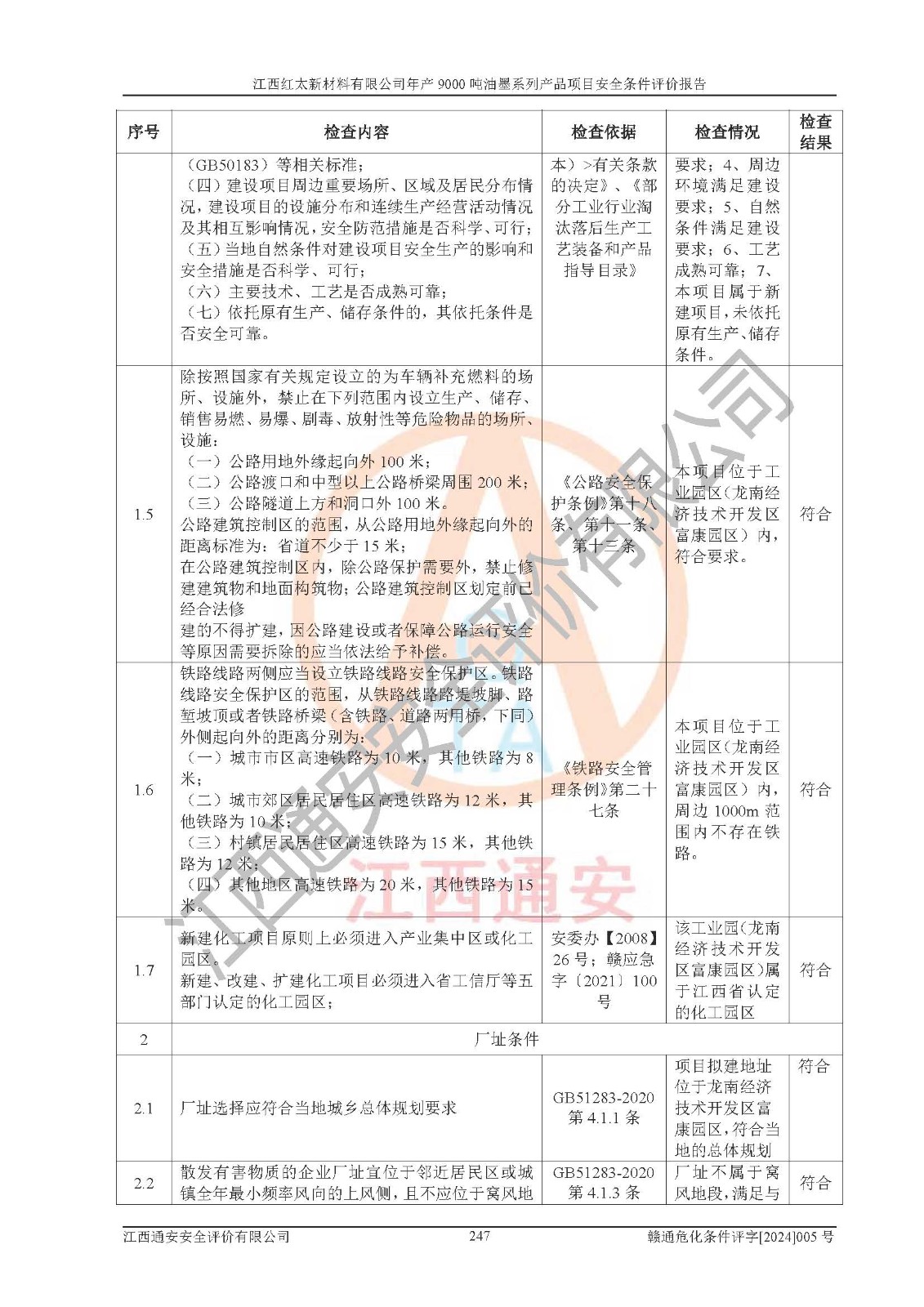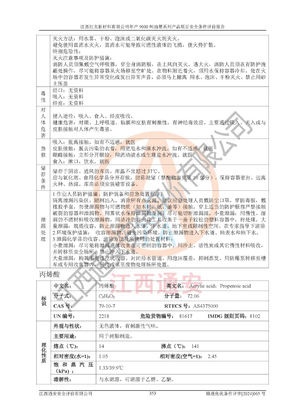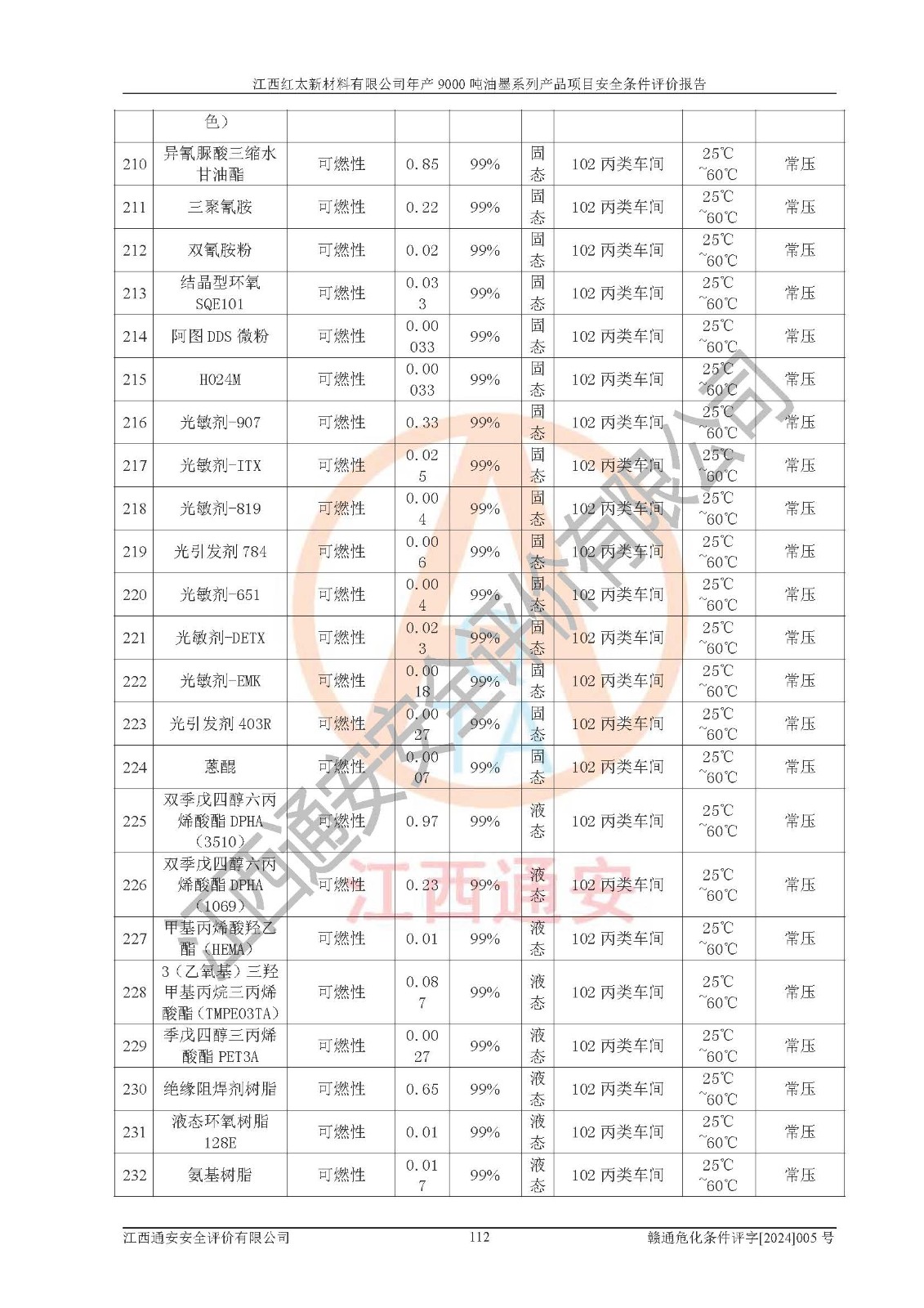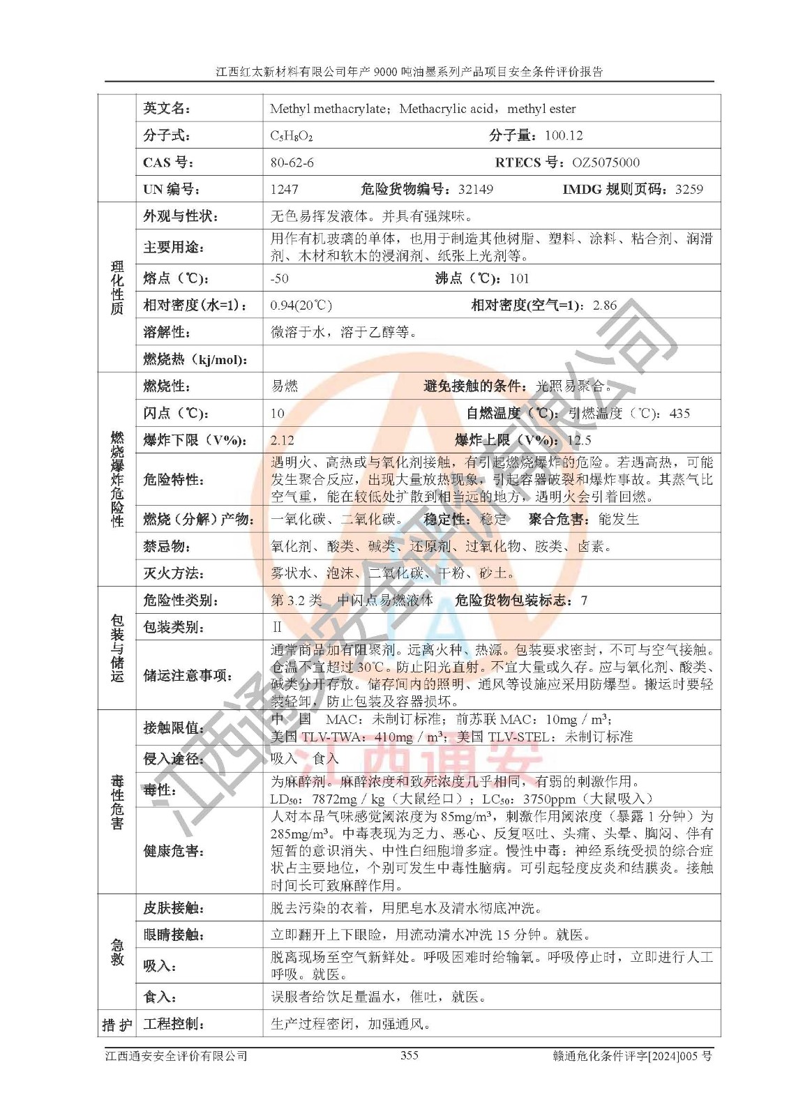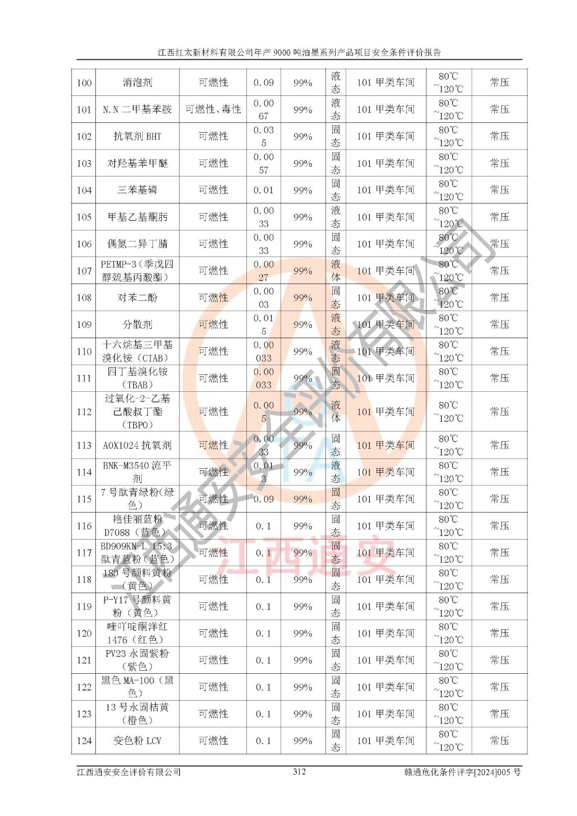 1)本項(xiàng)目依法取得了《江西省企業(yè)投資項(xiàng)目備案通知書》、《建設(shè)用地規(guī)劃許可證》,符合地方產(chǎn)業(yè)發(fā)展規(guī)劃的要求。 2)根據(jù)《**安全監(jiān)管總局關(guān)于公布首批重點(diǎn)監(jiān)管的危險(xiǎn)化工工藝目錄的通知》(安監(jiān)總管三[2009]116號(hào))和《**安全監(jiān)管總局關(guān)于公布第二批重點(diǎn)監(jiān)管危險(xiǎn)化工工藝目錄和調(diào)整首批重點(diǎn)監(jiān)管危險(xiǎn)化工工藝中部分典型工藝的通知》(安監(jiān)總管三[2013]3號(hào)),本項(xiàng)目聚合工藝為常壓條件生產(chǎn)工藝,故不列入危險(xiǎn)工藝。 3)根據(jù)《危險(xiǎn)化學(xué)品重大危險(xiǎn)源辨識(shí)》(GB18218-2018),該項(xiàng)目未構(gòu)成危險(xiǎn)化學(xué)品重大危險(xiǎn)源。 4)項(xiàng)目存在的主要危險(xiǎn)因素有:火災(zāi)爆炸、容器爆炸、中毒窒息、灼燙、觸電、**傷害、機(jī)械傷害、高處墜落、物體打擊、淹溺等,存在的主要危害因素有:噪聲與振動(dòng)、高溫、有害化學(xué)物質(zhì)等;引起事故的原因有人的不安全行為、物的不安全狀態(tài)、管理缺陷和環(huán)境不良。其中*主要的危險(xiǎn)有害因素是火災(zāi)爆炸。 5)采用預(yù)先危險(xiǎn)性分析法評(píng)價(jià),結(jié)果為: (1)通過預(yù)先危險(xiǎn)(PHA)分析可知,項(xiàng)目廠址及總體布局單元存在周邊環(huán)境相互影響,發(fā)生異常情況,可對(duì)周邊企業(yè)生產(chǎn)經(jīng)營(yíng)活動(dòng)、人員活動(dòng)產(chǎn)生影響;存在自然條件影響,可因雷擊、暴雨等引起事故;存在**傷害、建筑物危害,其固有的危險(xiǎn)性等級(jí)為Ⅱ級(jí),屬于“臨界的”,應(yīng)予以排除、采取控制措施因素。 (2)生產(chǎn)作業(yè)存在的危險(xiǎn)因素包括火災(zāi)爆炸、觸電、灼燙、中毒窒息固有的危險(xiǎn)等級(jí)為Ⅲ級(jí),屬于“危險(xiǎn)的”,可能導(dǎo)致人員傷亡和系統(tǒng)損壞的因素,需要采取防范和對(duì)策措施的因素;其它危險(xiǎn)因素固有的危險(xiǎn)等級(jí)為Ⅱ級(jí),屬于“臨界的”,應(yīng)予以排除、采取控制措施因素。 (3)生產(chǎn)作業(yè)存在的噪聲、粉塵、高溫、有害化學(xué)物質(zhì)的危險(xiǎn)有害因素等級(jí)為Ⅱ級(jí),屬于“臨界的”,應(yīng)予以排除、采取控制措施因素。 6)危險(xiǎn)度評(píng)價(jià)分析,結(jié)果為: 生產(chǎn)裝置危險(xiǎn)度評(píng)價(jià)分析:101甲類車間為**危險(xiǎn)(Ⅰ級(jí)),102丙類車間為中度危險(xiǎn)(Ⅱ級(jí))。 儲(chǔ)存單元危險(xiǎn)度評(píng)價(jià)分析:202甲類倉(cāng)庫(kù)為**危險(xiǎn)(Ⅰ級(jí)),201丙類倉(cāng)庫(kù)為低度危險(xiǎn)(Ⅲ級(jí)),203丙類罐區(qū)為中度危險(xiǎn)(Ⅱ級(jí))。 7)作業(yè)條件危險(xiǎn)性評(píng)價(jià)結(jié)果:在選定的評(píng)價(jià)單元中,其危險(xiǎn)分值均在70以下,危險(xiǎn)程度基本屬于“可能危險(xiǎn)”、“稍有危險(xiǎn)”范圍,作業(yè)條件相對(duì)安全。企業(yè)經(jīng)營(yíng)過程中首先應(yīng)重點(diǎn)加強(qiáng)對(duì)甲類生產(chǎn)車間、甲類倉(cāng)庫(kù)、儲(chǔ)罐區(qū)的危險(xiǎn)因素的嚴(yán)格控制,注重日常安全管理;其次要建立健全完善的安全生產(chǎn)責(zé)任制、安全管理制度、安全技術(shù)操作規(guī)程并**其貫徹落實(shí);第三要認(rèn)真抓好操作人員、管理人員的安全知識(shí)和操作技能的培訓(xùn),**人員具有與工程技術(shù)水平相適應(yīng)的技術(shù)素質(zhì)和安全素質(zhì),**安全作業(yè)。 8)項(xiàng)目建設(shè)場(chǎng)地符合當(dāng)?shù)匾?guī)劃要求,建設(shè)場(chǎng)地通過合理規(guī)劃,其選址、周邊環(huán)境、總平面布置、交通運(yùn)輸?shù)饶芊稀吨腥A人民共和國(guó)安全生產(chǎn)法》、《危險(xiǎn)化學(xué)品安全管理?xiàng)l例》、《建筑設(shè)計(jì)防火規(guī)范》、《精細(xì)化工企業(yè)工程設(shè)計(jì)防火標(biāo)準(zhǔn)》等法規(guī)、標(biāo)準(zhǔn)、規(guī)范要求。 廠址地區(qū)地震活動(dòng)相對(duì)較弱,災(zāi)害性天氣出現(xiàn)頻率稍高,自然災(zāi)害對(duì)項(xiàng)目建設(shè)具有**影響,通過采取相應(yīng)的防護(hù)措施,自然條件適宜建設(shè)。 9)建設(shè)項(xiàng)目符合**產(chǎn)業(yè)政策的要求;選擇工藝為現(xiàn)行成熟工藝,其安全可靠性可得到**。 10)本報(bào)告已根據(jù)有關(guān)安全生產(chǎn)法律、法規(guī)、規(guī)章和**標(biāo)準(zhǔn)、行業(yè)標(biāo)準(zhǔn),并嚴(yán)格執(zhí)行省委辦公廳省**辦公廳《關(guān)于全面加強(qiáng)危險(xiǎn)化學(xué)品安全生產(chǎn)工作的實(shí)施意見》(贛辦發(fā)[2020]32號(hào))及都陽(yáng)湖生態(tài)經(jīng)濟(jì)區(qū)、長(zhǎng)江經(jīng)濟(jì)帶、“五河一湖”相關(guān)政策規(guī)定,客觀、公正、科學(xué)地進(jìn)行安全評(píng)價(jià),項(xiàng)目符合《江西省應(yīng)急管理廳關(guān)于印發(fā)《江西省危險(xiǎn)化學(xué)品建設(shè)項(xiàng)目安全監(jiān)督管理實(shí)施細(xì)則》(試行)的通知》(贛應(yīng)急字[2021]100號(hào))的要求。 11)本報(bào)告結(jié)合工藝特征,提出應(yīng)采取的對(duì)應(yīng)的自動(dòng)化控制系統(tǒng)及自動(dòng)化實(shí)施方案,滿足《江西省應(yīng)急管理廳關(gu