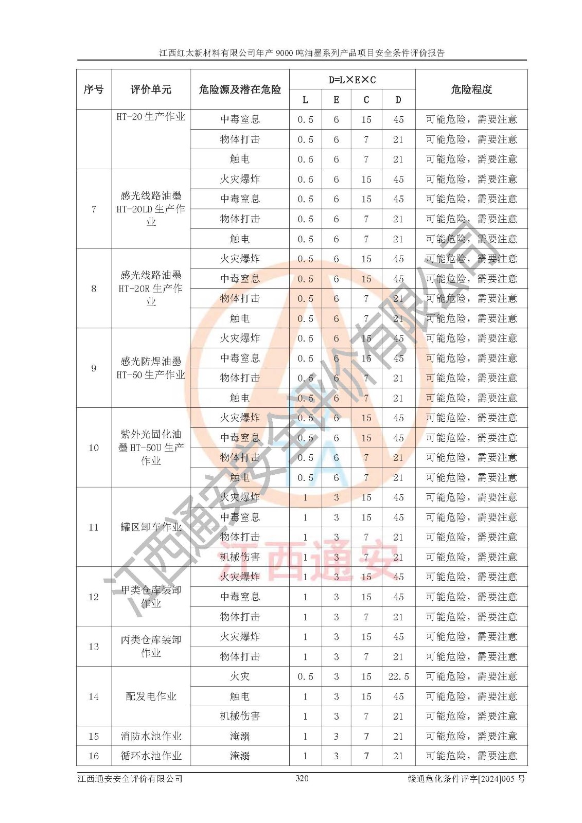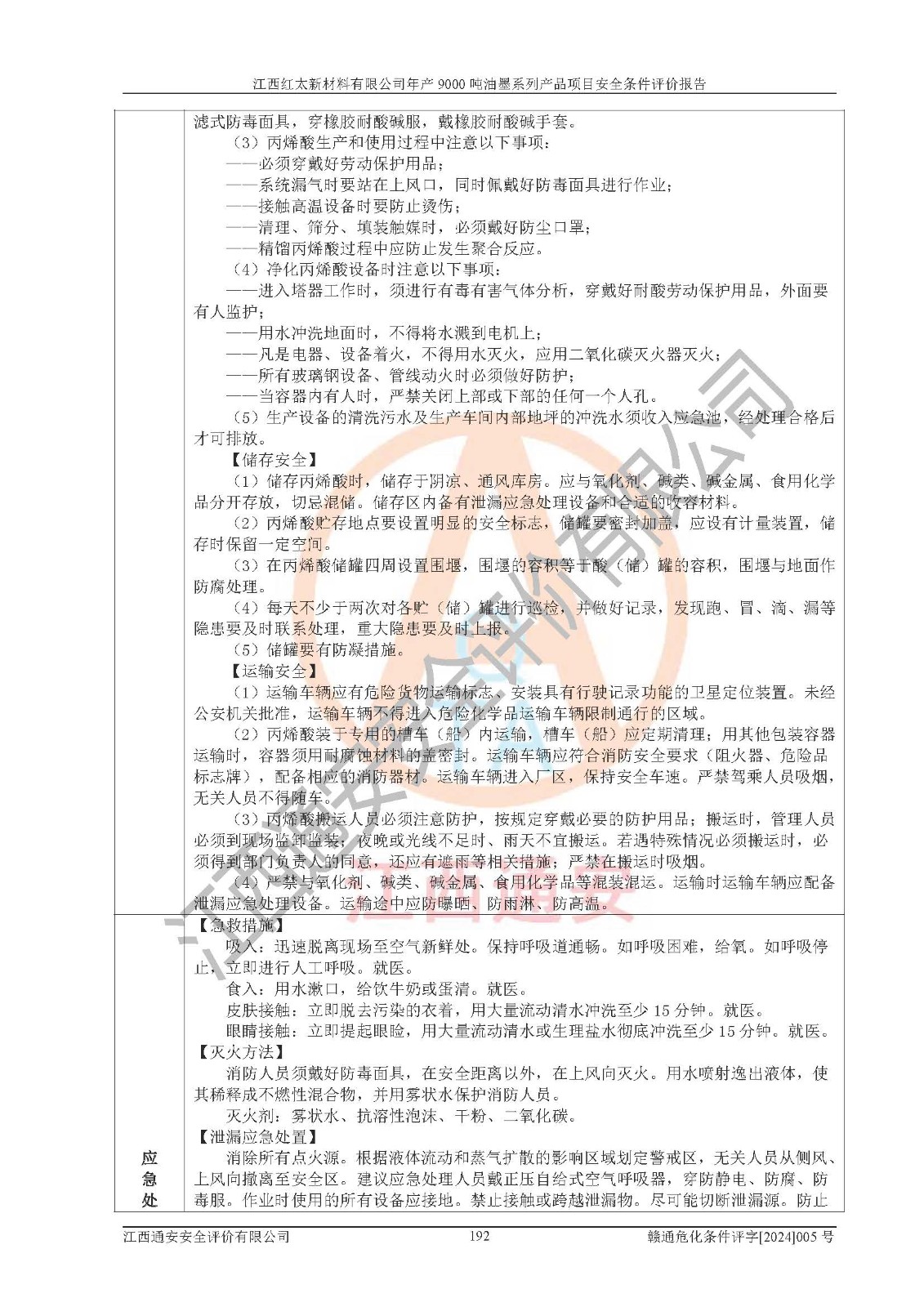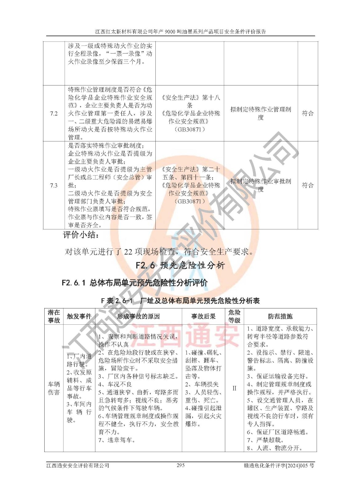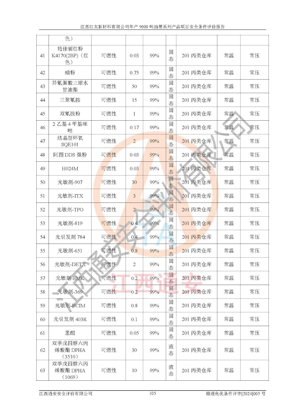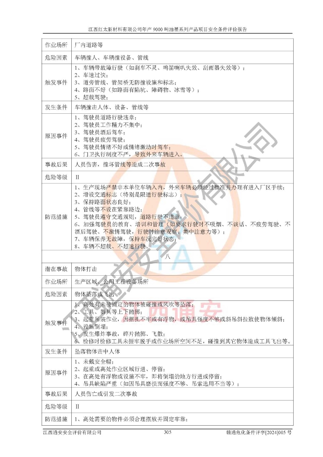 1)本項(xiàng)目依法取得了《江西省企業(yè)投資項(xiàng)目備案通知書》、《建設(shè)用地規(guī)劃許可證》,符合地方產(chǎn)業(yè)發(fā)展規(guī)劃的要求。 2)根據(jù)《**安全監(jiān)管總局關(guān)于公布首批重點(diǎn)監(jiān)管的危險(xiǎn)化工工藝目錄的通知》(安監(jiān)總管三[2009]116號(hào))和《**安全監(jiān)管總局關(guān)于公布第二批重點(diǎn)監(jiān)管危險(xiǎn)化工工藝目錄和調(diào)整首批重點(diǎn)監(jiān)管危險(xiǎn)化工工藝中部分典型工藝的通知》(安監(jiān)總管三[2013]3號(hào)),本項(xiàng)目聚合工藝為常壓條件生產(chǎn)工藝,故不列入危險(xiǎn)工藝。 3)根據(jù)《危險(xiǎn)化學(xué)品重大危險(xiǎn)源辨識(shí)》(GB18218-2018),該項(xiàng)目未構(gòu)成危險(xiǎn)化學(xué)品重大危險(xiǎn)源。 4)項(xiàng)目存在的主要危險(xiǎn)因素有:火災(zāi)爆炸、容器爆炸、中毒窒息、灼燙、觸電、**傷害、機(jī)械傷害、高處墜落、物體打擊、淹溺等,存在的主要危害因素有:噪聲與振動(dòng)、高溫、有害化學(xué)物質(zhì)等;引起事故的原因有人的不安全行為、物的不安全狀態(tài)、管理缺陷和環(huán)境不良。其中*主要的危險(xiǎn)有害因素是火災(zāi)爆炸。 5)采用預(yù)先危險(xiǎn)性分析法評(píng)價(jià),結(jié)果為: (1)通過預(yù)先危險(xiǎn)(PHA)分析可知,項(xiàng)目廠址及總體布局單元存在周邊環(huán)境相互影響,發(fā)生異常情況,可對(duì)周邊企業(yè)生產(chǎn)經(jīng)營(yíng)活動(dòng)、人員活動(dòng)產(chǎn)生影響;存在自然條件影響,可因雷擊、暴雨等引起事故;存在**傷害、建筑物危害,其固有的危險(xiǎn)性等級(jí)為Ⅱ級(jí),屬于“臨界的”,應(yīng)予以排除、采取控制措施因素。 (2)生產(chǎn)作業(yè)存在的危險(xiǎn)因素包括火災(zāi)爆炸、觸電、灼燙、中毒窒息固有的危險(xiǎn)等級(jí)為Ⅲ級(jí),屬于“危險(xiǎn)的”,可能導(dǎo)致人員傷亡和系統(tǒng)損壞的因素,需要采取防范和對(duì)策措施的因素;其它危險(xiǎn)因素固有的危險(xiǎn)等級(jí)為Ⅱ級(jí),屬于“臨界的”,應(yīng)予以排除、采取控制措施因素。 (3)生產(chǎn)作業(yè)存在的噪聲、粉塵、高溫、有害化學(xué)物質(zhì)的危險(xiǎn)有害因素等級(jí)為Ⅱ級(jí),屬于“臨界的”,應(yīng)予以排除、采取控制措施因素。 6)危險(xiǎn)度評(píng)價(jià)分析,結(jié)果為: 生產(chǎn)裝置危險(xiǎn)度評(píng)價(jià)分析:101甲類車間為**危險(xiǎn)(Ⅰ級(jí)),102丙類車間為中度危險(xiǎn)(Ⅱ級(jí))。 儲(chǔ)存單元危險(xiǎn)度評(píng)價(jià)分析:202甲類倉(cāng)庫(kù)為**危險(xiǎn)(Ⅰ級(jí)),201丙類倉(cāng)庫(kù)為低度危險(xiǎn)(Ⅲ級(jí)),203丙類罐區(qū)為中度危險(xiǎn)(Ⅱ級(jí))。 7)作業(yè)條件危險(xiǎn)性評(píng)價(jià)結(jié)果:在選定的評(píng)價(jià)單元中,其危險(xiǎn)分值均在70以下,危險(xiǎn)程度基本屬于“可能危險(xiǎn)”、“稍有危險(xiǎn)”范圍,作業(yè)條件相對(duì)安全。企業(yè)經(jīng)營(yíng)過程中首先應(yīng)重點(diǎn)加強(qiáng)對(duì)甲類生產(chǎn)車間、甲類倉(cāng)庫(kù)、儲(chǔ)罐區(qū)的危險(xiǎn)因素的嚴(yán)格控制,注重日常安全管理;其次要建立健全完善的安全生產(chǎn)責(zé)任制、安全管理制度、安全技術(shù)操作規(guī)程并**其貫徹落實(shí);第三要認(rèn)真抓好操作人員、管理人員的安全知識(shí)和操作技能的培訓(xùn),**人員具有與工程技術(shù)水平相適應(yīng)的技術(shù)素質(zhì)和安全素質(zhì),**安全作業(yè)。 8)項(xiàng)目建設(shè)場(chǎng)地符合當(dāng)?shù)匾?guī)劃要求,建設(shè)場(chǎng)地通過合理規(guī)劃,其選址、周邊環(huán)境、總平面布置、交通運(yùn)輸?shù)饶芊稀吨腥A人民共和國(guó)安全生產(chǎn)法》、《危險(xiǎn)化學(xué)品安全管理?xiàng)l例》、《建筑設(shè)計(jì)防火規(guī)范》、《精細(xì)化工企業(yè)工程設(shè)計(jì)防火標(biāo)準(zhǔn)》等法規(guī)、標(biāo)準(zhǔn)、規(guī)范要求。 廠址地區(qū)地震活動(dòng)相對(duì)較弱,災(zāi)害性天氣出現(xiàn)頻率稍高,自然災(zāi)害對(duì)項(xiàng)目建設(shè)具有**影響,通過采取相應(yīng)的防護(hù)措施,自然條件適宜建設(shè)。 9)建設(shè)項(xiàng)目符合**產(chǎn)業(yè)政策的要求;選擇工藝為現(xiàn)行成熟工藝,其安全可靠性可得到**。 10)本報(bào)告已根據(jù)有關(guān)安全生產(chǎn)法律、法規(guī)、規(guī)章和**標(biāo)準(zhǔn)、行業(yè)標(biāo)準(zhǔn),并嚴(yán)格執(zhí)行省委辦公廳省**辦公廳《關(guān)于全面加強(qiáng)危險(xiǎn)化學(xué)品安全生產(chǎn)工作的實(shí)施意見》(贛辦發(fā)[2020]32號(hào))及都陽(yáng)湖生態(tài)經(jīng)濟(jì)區(qū)、長(zhǎng)江經(jīng)濟(jì)帶、“五河一湖”相關(guān)政策規(guī)定,客觀、公正、科學(xué)地進(jìn)行安全評(píng)價(jià),項(xiàng)目符合《江西省應(yīng)急管理廳關(guān)于印發(fā)《江西省危險(xiǎn)化學(xué)品建設(shè)項(xiàng)目安全監(jiān)督管理實(shí)施細(xì)則》(試行)的通知》(贛應(yīng)急字[2021]100號(hào))的要求。 11)本報(bào)告結(jié)合工藝特征,提出應(yīng)采取的對(duì)應(yīng)的自動(dòng)化控制系統(tǒng)及自動(dòng)化實(shí)施方案,滿足《江西省應(yīng)急管理廳關(gu