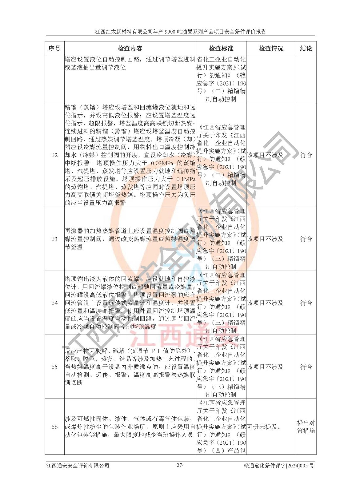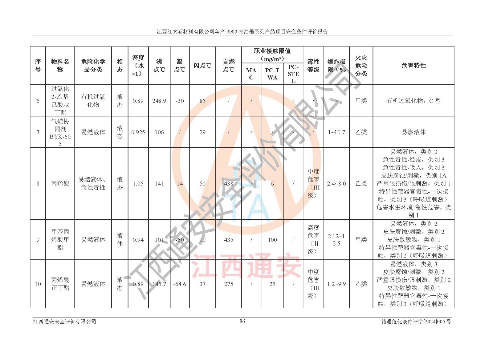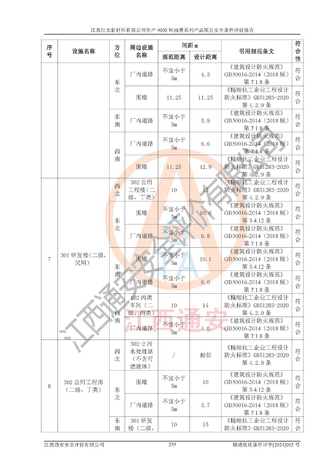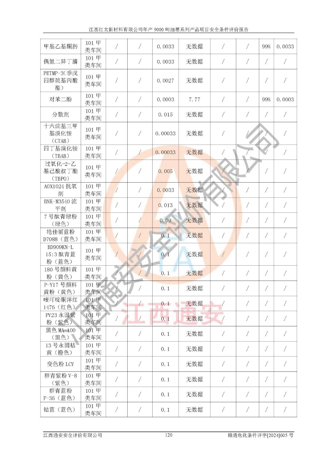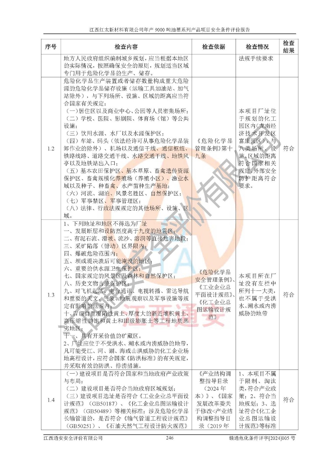 1)本項(xiàng)目依法取得了《江西省企業(yè)投資項(xiàng)目備案通知書》、《建設(shè)用地規(guī)劃許可證》,符合地方產(chǎn)業(yè)發(fā)展規(guī)劃的要求。 2)根據(jù)《**安全監(jiān)管總局關(guān)于公布首批重點(diǎn)監(jiān)管的危險(xiǎn)化工工藝目錄的通知》(安監(jiān)總管三[2009]116號(hào))和《**安全監(jiān)管總局關(guān)于公布第二批重點(diǎn)監(jiān)管危險(xiǎn)化工工藝目錄和調(diào)整首批重點(diǎn)監(jiān)管危險(xiǎn)化工工藝中部分典型工藝的通知》(安監(jiān)總管三[2013]3號(hào)),本項(xiàng)目聚合工藝為常壓條件生產(chǎn)工藝,故不列入危險(xiǎn)工藝。 3)根據(jù)《危險(xiǎn)化學(xué)品重大危險(xiǎn)源辨識(shí)》(GB18218-2018),該項(xiàng)目未構(gòu)成危險(xiǎn)化學(xué)品重大危險(xiǎn)源。 4)項(xiàng)目存在的主要危險(xiǎn)因素有:火災(zāi)爆炸、容器爆炸、中毒窒息、灼燙、觸電、**傷害、機(jī)械傷害、高處墜落、物體打擊、淹溺等,存在的主要危害因素有:噪聲與振動(dòng)、高溫、有害化學(xué)物質(zhì)等;引起事故的原因有人的不安全行為、物的不安全狀態(tài)、管理缺陷和環(huán)境不良。其中*主要的危險(xiǎn)有害因素是火災(zāi)爆炸。 5)采用預(yù)先危險(xiǎn)性分析法評(píng)價(jià),結(jié)果為: (1)通過預(yù)先危險(xiǎn)(PHA)分析可知,項(xiàng)目廠址及總體布局單元存在周邊環(huán)境相互影響,發(fā)生異常情況,可對(duì)周邊企業(yè)生產(chǎn)經(jīng)營(yíng)活動(dòng)、人員活動(dòng)產(chǎn)生影響;存在自然條件影響,可因雷擊、暴雨等引起事故;存在**傷害、建筑物危害,其固有的危險(xiǎn)性等級(jí)為Ⅱ級(jí),屬于“臨界的”,應(yīng)予以排除、采取控制措施因素。 (2)生產(chǎn)作業(yè)存在的危險(xiǎn)因素包括火災(zāi)爆炸、觸電、灼燙、中毒窒息固有的危險(xiǎn)等級(jí)為Ⅲ級(jí),屬于“危險(xiǎn)的”,可能導(dǎo)致人員傷亡和系統(tǒng)損壞的因素,需要采取防范和對(duì)策措施的因素;其它危險(xiǎn)因素固有的危險(xiǎn)等級(jí)為Ⅱ級(jí),屬于“臨界的”,應(yīng)予以排除、采取控制措施因素。 (3)生產(chǎn)作業(yè)存在的噪聲、粉塵、高溫、有害化學(xué)物質(zhì)的危險(xiǎn)有害因素等級(jí)為Ⅱ級(jí),屬于“臨界的”,應(yīng)予以排除、采取控制措施因素。 6)危險(xiǎn)度評(píng)價(jià)分析,結(jié)果為: 生產(chǎn)裝置危險(xiǎn)度評(píng)價(jià)分析:101甲類車間為**危險(xiǎn)(Ⅰ級(jí)),102丙類車間為中度危險(xiǎn)(Ⅱ級(jí))。 儲(chǔ)存單元危險(xiǎn)度評(píng)價(jià)分析:202甲類倉(cāng)庫(kù)為**危險(xiǎn)(Ⅰ級(jí)),201丙類倉(cāng)庫(kù)為低度危險(xiǎn)(Ⅲ級(jí)),203丙類罐區(qū)為中度危險(xiǎn)(Ⅱ級(jí))。 7)作業(yè)條件危險(xiǎn)性評(píng)價(jià)結(jié)果:在選定的評(píng)價(jià)單元中,其危險(xiǎn)分值均在70以下,危險(xiǎn)程度基本屬于“可能危險(xiǎn)”、“稍有危險(xiǎn)”范圍,作業(yè)條件相對(duì)安全。企業(yè)經(jīng)營(yíng)過程中首先應(yīng)重點(diǎn)加強(qiáng)對(duì)甲類生產(chǎn)車間、甲類倉(cāng)庫(kù)、儲(chǔ)罐區(qū)的危險(xiǎn)因素的嚴(yán)格控制,注重日常安全管理;其次要建立健全完善的安全生產(chǎn)責(zé)任制、安全管理制度、安全技術(shù)操作規(guī)程并**其貫徹落實(shí);第三要認(rèn)真抓好操作人員、管理人員的安全知識(shí)和操作技能的培訓(xùn),**人員具有與工程技術(shù)水平相適應(yīng)的技術(shù)素質(zhì)和安全素質(zhì),**安全作業(yè)。 8)項(xiàng)目建設(shè)場(chǎng)地符合當(dāng)?shù)匾?guī)劃要求,建設(shè)場(chǎng)地通過合理規(guī)劃,其選址、周邊環(huán)境、總平面布置、交通運(yùn)輸?shù)饶芊稀吨腥A人民共和國(guó)安全生產(chǎn)法》、《危險(xiǎn)化學(xué)品安全管理?xiàng)l例》、《建筑設(shè)計(jì)防火規(guī)范》、《精細(xì)化工企業(yè)工程設(shè)計(jì)防火標(biāo)準(zhǔn)》等法規(guī)、標(biāo)準(zhǔn)、規(guī)范要求。 廠址地區(qū)地震活動(dòng)相對(duì)較弱,災(zāi)害性天氣出現(xiàn)頻率稍高,自然災(zāi)害對(duì)項(xiàng)目建設(shè)具有**影響,通過采取相應(yīng)的防護(hù)措施,自然條件適宜建設(shè)。 9)建設(shè)項(xiàng)目符合**產(chǎn)業(yè)政策的要求;選擇工藝為現(xiàn)行成熟工藝,其安全可靠性可得到**。 10)本報(bào)告已根據(jù)有關(guān)安全生產(chǎn)法律、法規(guī)、規(guī)章和**標(biāo)準(zhǔn)、行業(yè)標(biāo)準(zhǔn),并嚴(yán)格執(zhí)行省委辦公廳省**辦公廳《關(guān)于全面加強(qiáng)危險(xiǎn)化學(xué)品安全生產(chǎn)工作的實(shí)施意見》(贛辦發(fā)[2020]32號(hào))及都陽(yáng)湖生態(tài)經(jīng)濟(jì)區(qū)、長(zhǎng)江經(jīng)濟(jì)帶、“五河一湖”相關(guān)政策規(guī)定,客觀、公正、科學(xué)地進(jìn)行安全評(píng)價(jià),項(xiàng)目符合《江西省應(yīng)急管理廳關(guān)于印發(fā)《江西省危險(xiǎn)化學(xué)品建設(shè)項(xiàng)目安全監(jiān)督管理實(shí)施細(xì)則》(試行)的通知》(贛應(yīng)急字[2021]100號(hào))的要求。 11)本報(bào)告結(jié)合工藝特征,提出應(yīng)采取的對(duì)應(yīng)的自動(dòng)化控制系統(tǒng)及自動(dòng)化實(shí)施方案,滿足《江西省應(yīng)急管理廳關(gu