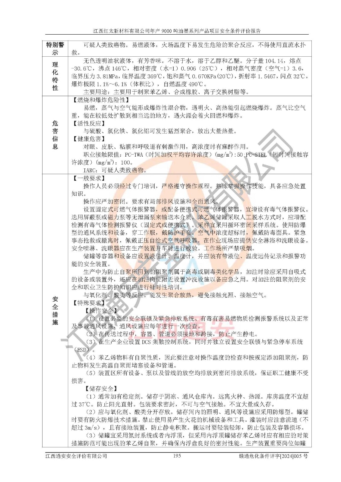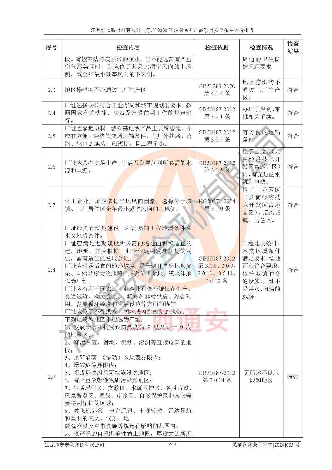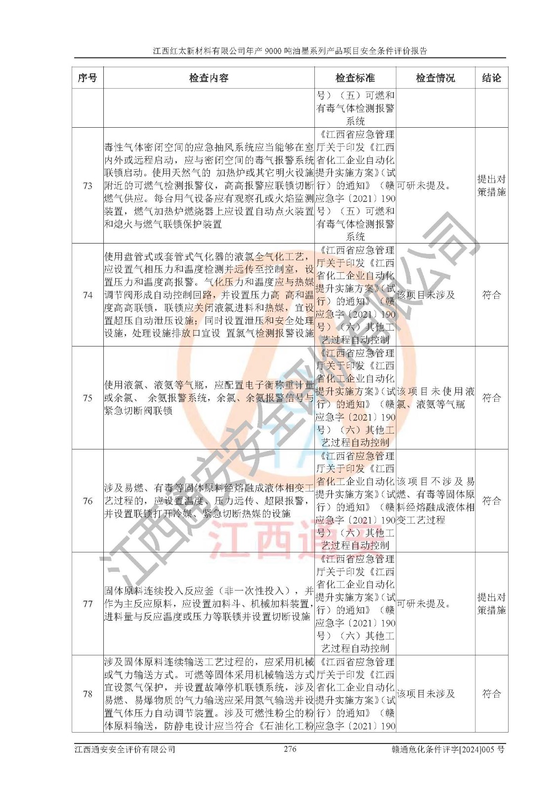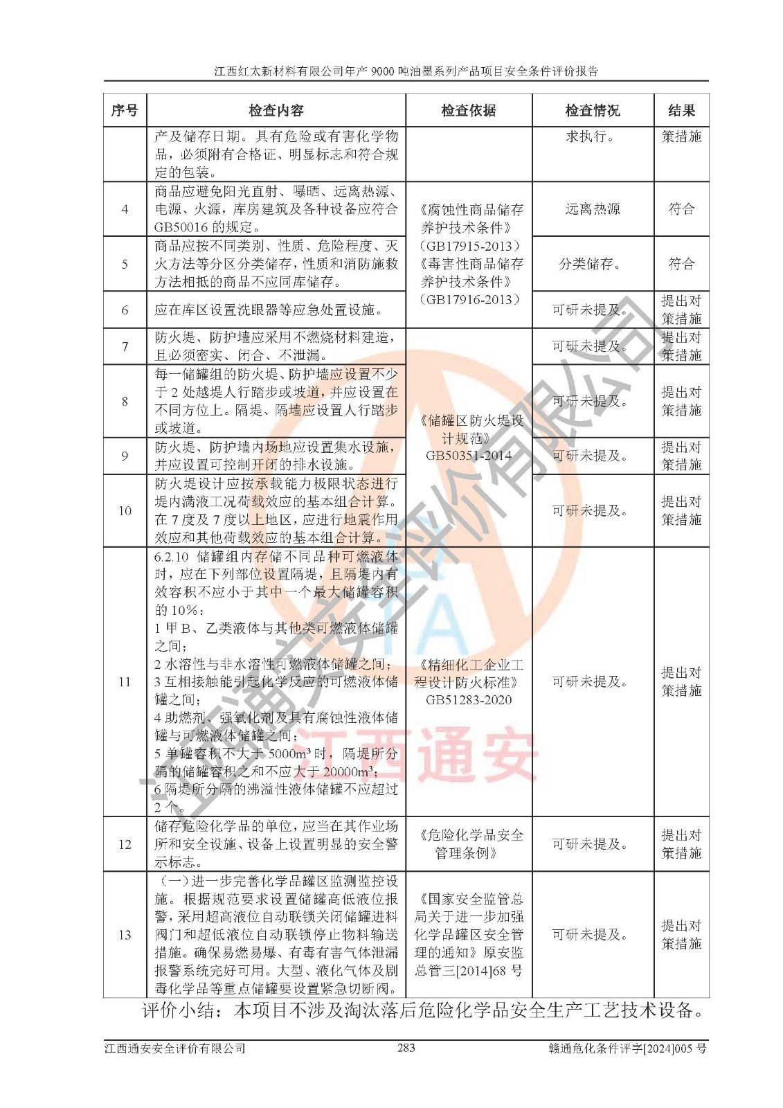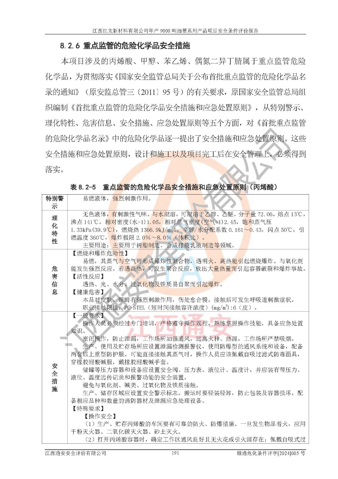 1)本項(xiàng)目依法取得了《江西省企業(yè)投資項(xiàng)目備案通知書》、《建設(shè)用地規(guī)劃許可證》,符合地方產(chǎn)業(yè)發(fā)展規(guī)劃的要求。 2)根據(jù)《**安全監(jiān)管總局關(guān)于公布首批重點(diǎn)監(jiān)管的危險(xiǎn)化工工藝目錄的通知》(安監(jiān)總管三[2009]116號(hào))和《**安全監(jiān)管總局關(guān)于公布第二批重點(diǎn)監(jiān)管危險(xiǎn)化工工藝目錄和調(diào)整首批重點(diǎn)監(jiān)管危險(xiǎn)化工工藝中部分典型工藝的通知》(安監(jiān)總管三[2013]3號(hào)),本項(xiàng)目聚合工藝為常壓條件生產(chǎn)工藝,故不列入危險(xiǎn)工藝。 3)根據(jù)《危險(xiǎn)化學(xué)品重大危險(xiǎn)源辨識(shí)》(GB18218-2018),該項(xiàng)目未構(gòu)成危險(xiǎn)化學(xué)品重大危險(xiǎn)源。 4)項(xiàng)目存在的主要危險(xiǎn)因素有:火災(zāi)爆炸、容器爆炸、中毒窒息、灼燙、觸電、**傷害、機(jī)械傷害、高處墜落、物體打擊、淹溺等,存在的主要危害因素有:噪聲與振動(dòng)、高溫、有害化學(xué)物質(zhì)等;引起事故的原因有人的不安全行為、物的不安全狀態(tài)、管理缺陷和環(huán)境不良。其中*主要的危險(xiǎn)有害因素是火災(zāi)爆炸。 5)采用預(yù)先危險(xiǎn)性分析法評(píng)價(jià),結(jié)果為: (1)通過預(yù)先危險(xiǎn)(PHA)分析可知,項(xiàng)目廠址及總體布局單元存在周邊環(huán)境相互影響,發(fā)生異常情況,可對(duì)周邊企業(yè)生產(chǎn)經(jīng)營(yíng)活動(dòng)、人員活動(dòng)產(chǎn)生影響;存在自然條件影響,可因雷擊、暴雨等引起事故;存在**傷害、建筑物危害,其固有的危險(xiǎn)性等級(jí)為Ⅱ級(jí),屬于“臨界的”,應(yīng)予以排除、采取控制措施因素。 (2)生產(chǎn)作業(yè)存在的危險(xiǎn)因素包括火災(zāi)爆炸、觸電、灼燙、中毒窒息固有的危險(xiǎn)等級(jí)為Ⅲ級(jí),屬于“危險(xiǎn)的”,可能導(dǎo)致人員傷亡和系統(tǒng)損壞的因素,需要采取防范和對(duì)策措施的因素;其它危險(xiǎn)因素固有的危險(xiǎn)等級(jí)為Ⅱ級(jí),屬于“臨界的”,應(yīng)予以排除、采取控制措施因素。 (3)生產(chǎn)作業(yè)存在的噪聲、粉塵、高溫、有害化學(xué)物質(zhì)的危險(xiǎn)有害因素等級(jí)為Ⅱ級(jí),屬于“臨界的”,應(yīng)予以排除、采取控制措施因素。 6)危險(xiǎn)度評(píng)價(jià)分析,結(jié)果為: 生產(chǎn)裝置危險(xiǎn)度評(píng)價(jià)分析:101甲類車間為**危險(xiǎn)(Ⅰ級(jí)),102丙類車間為中度危險(xiǎn)(Ⅱ級(jí))。 儲(chǔ)存單元危險(xiǎn)度評(píng)價(jià)分析:202甲類倉(cāng)庫(kù)為**危險(xiǎn)(Ⅰ級(jí)),201丙類倉(cāng)庫(kù)為低度危險(xiǎn)(Ⅲ級(jí)),203丙類罐區(qū)為中度危險(xiǎn)(Ⅱ級(jí))。 7)作業(yè)條件危險(xiǎn)性評(píng)價(jià)結(jié)果:在選定的評(píng)價(jià)單元中,其危險(xiǎn)分值均在70以下,危險(xiǎn)程度基本屬于“可能危險(xiǎn)”、“稍有危險(xiǎn)”范圍,作業(yè)條件相對(duì)安全。企業(yè)經(jīng)營(yíng)過程中首先應(yīng)重點(diǎn)加強(qiáng)對(duì)甲類生產(chǎn)車間、甲類倉(cāng)庫(kù)、儲(chǔ)罐區(qū)的危險(xiǎn)因素的嚴(yán)格控制,注重日常安全管理;其次要建立健全完善的安全生產(chǎn)責(zé)任制、安全管理制度、安全技術(shù)操作規(guī)程并**其貫徹落實(shí);第三要認(rèn)真抓好操作人員、管理人員的安全知識(shí)和操作技能的培訓(xùn),**人員具有與工程技術(shù)水平相適應(yīng)的技術(shù)素質(zhì)和安全素質(zhì),**安全作業(yè)。 8)項(xiàng)目建設(shè)場(chǎng)地符合當(dāng)?shù)匾?guī)劃要求,建設(shè)場(chǎng)地通過合理規(guī)劃,其選址、周邊環(huán)境、總平面布置、交通運(yùn)輸?shù)饶芊稀吨腥A人民共和國(guó)安全生產(chǎn)法》、《危險(xiǎn)化學(xué)品安全管理?xiàng)l例》、《建筑設(shè)計(jì)防火規(guī)范》、《精細(xì)化工企業(yè)工程設(shè)計(jì)防火標(biāo)準(zhǔn)》等法規(guī)、標(biāo)準(zhǔn)、規(guī)范要求。 廠址地區(qū)地震活動(dòng)相對(duì)較弱,災(zāi)害性天氣出現(xiàn)頻率稍高,自然災(zāi)害對(duì)項(xiàng)目建設(shè)具有**影響,通過采取相應(yīng)的防護(hù)措施,自然條件適宜建設(shè)。 9)建設(shè)項(xiàng)目符合**產(chǎn)業(yè)政策的要求;選擇工藝為現(xiàn)行成熟工藝,其安全可靠性可得到**。 10)本報(bào)告已根據(jù)有關(guān)安全生產(chǎn)法律、法規(guī)、規(guī)章和**標(biāo)準(zhǔn)、行業(yè)標(biāo)準(zhǔn),并嚴(yán)格執(zhí)行省委辦公廳省**辦公廳《關(guān)于全面加強(qiáng)危險(xiǎn)化學(xué)品安全生產(chǎn)工作的實(shí)施意見》(贛辦發(fā)[2020]32號(hào))及都陽(yáng)湖生態(tài)經(jīng)濟(jì)區(qū)、長(zhǎng)江經(jīng)濟(jì)帶、“五河一湖”相關(guān)政策規(guī)定,客觀、公正、科學(xué)地進(jìn)行安全評(píng)價(jià),項(xiàng)目符合《江西省應(yīng)急管理廳關(guān)于印發(fā)《江西省危險(xiǎn)化學(xué)品建設(shè)項(xiàng)目安全監(jiān)督管理實(shí)施細(xì)則》(試行)的通知》(贛應(yīng)急字[2021]100號(hào))的要求。 11)本報(bào)告結(jié)合工藝特征,提出應(yīng)采取的對(duì)應(yīng)的自動(dòng)化控制系統(tǒng)及自動(dòng)化實(shí)施方案,滿足《江西省應(yīng)急管理廳關(gu