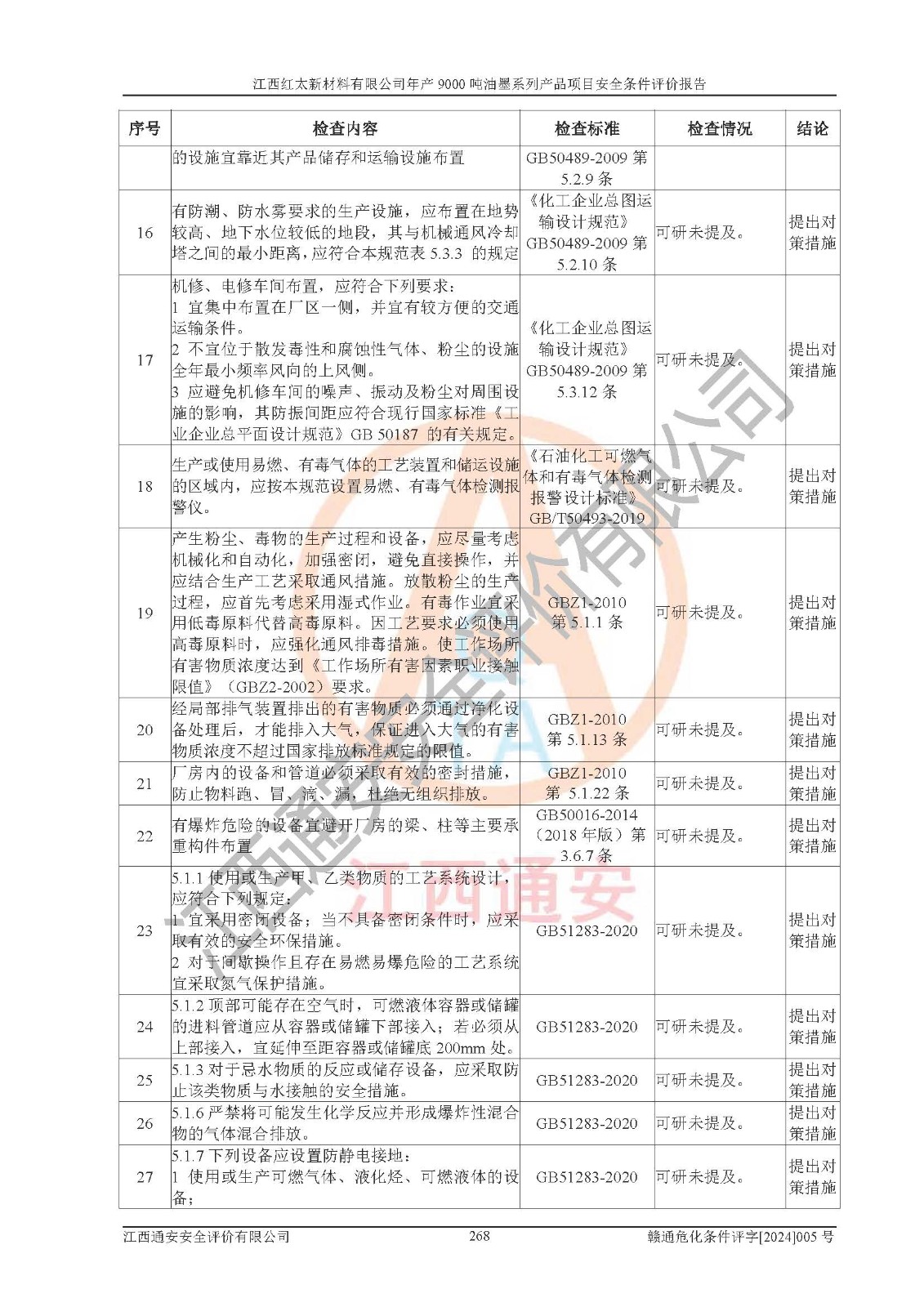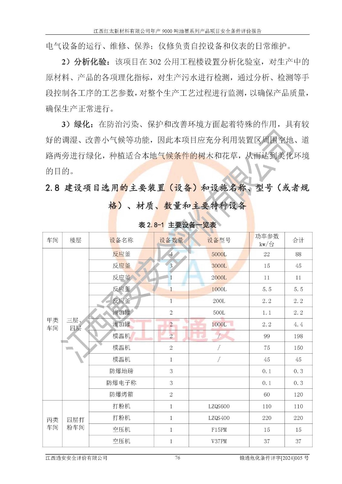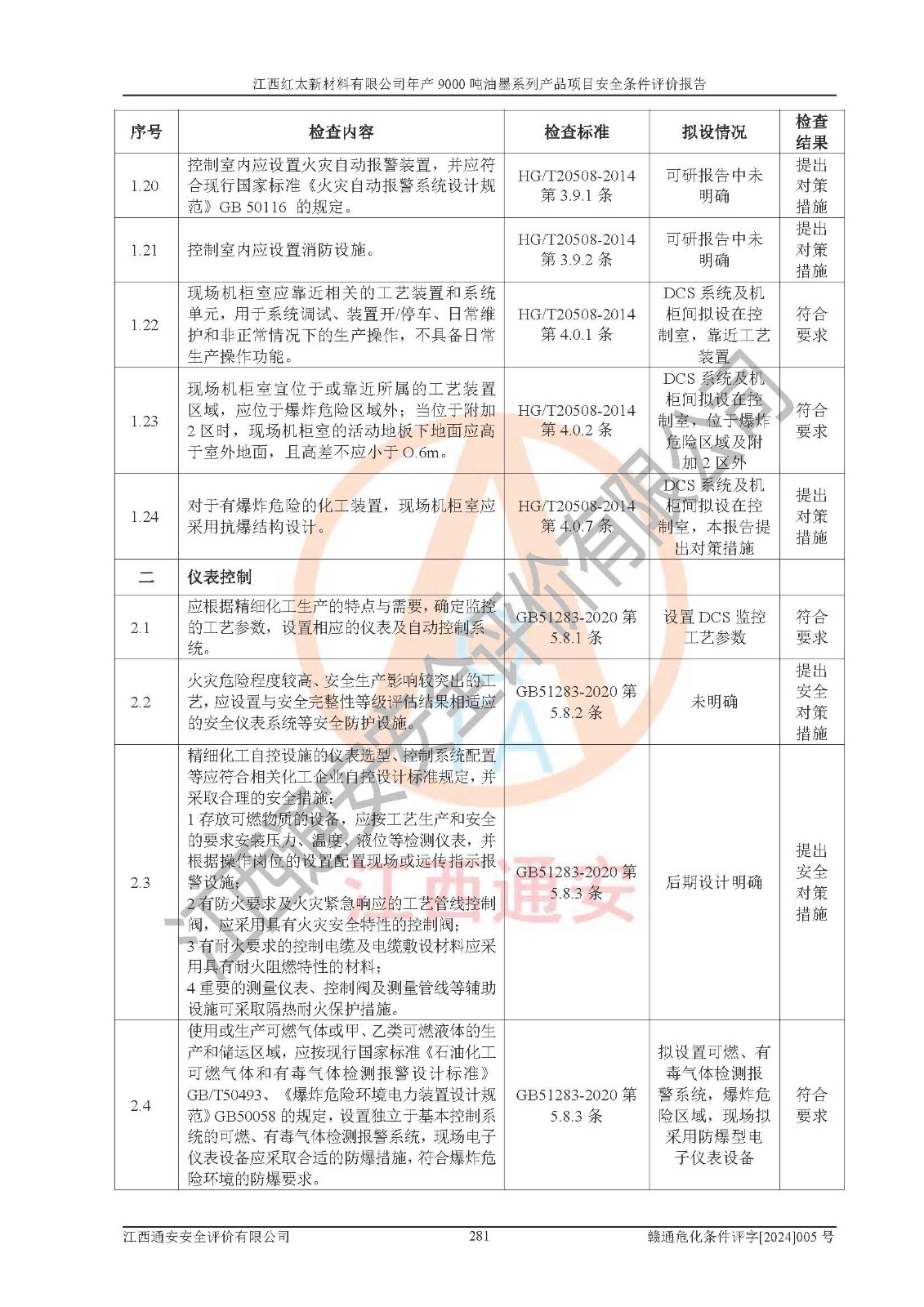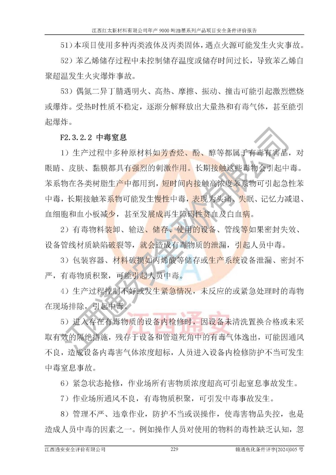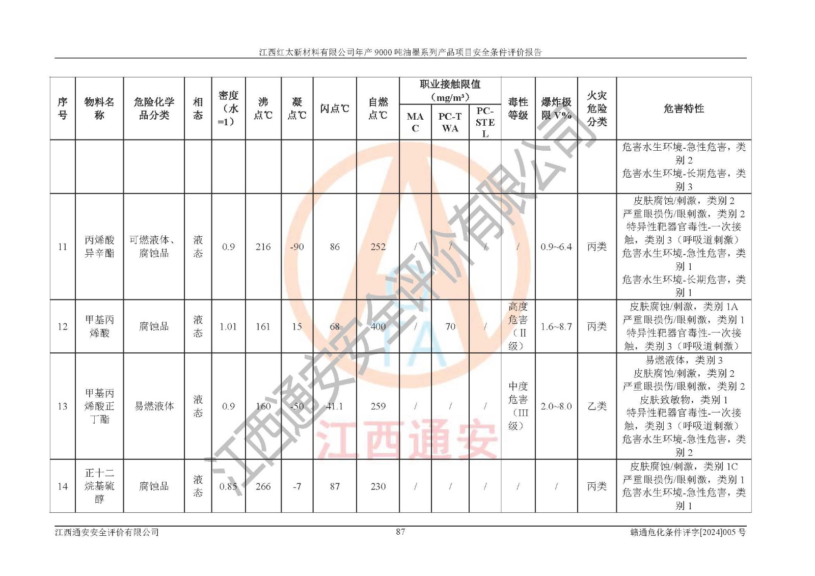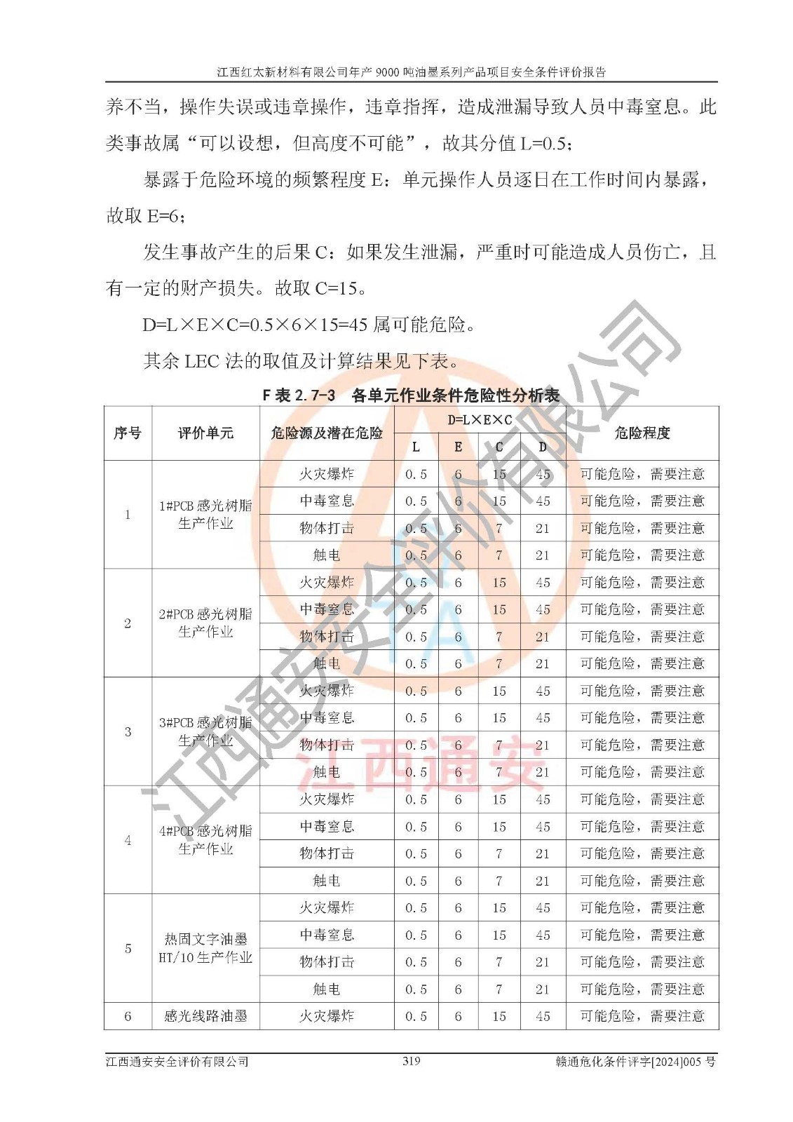1)本項(xiàng)目依法取得了《江西省企業(yè)投資項(xiàng)目備案通知書》、《建設(shè)用地規(guī)劃許可證》,符合地方產(chǎn)業(yè)發(fā)展規(guī)劃的要求。 2)根據(jù)《**安全監(jiān)管總局關(guān)于公布首批重點(diǎn)監(jiān)管的危險(xiǎn)化工工藝目錄的通知》(安監(jiān)總管三[2009]116號(hào))和《**安全監(jiān)管總局關(guān)于公布第二批重點(diǎn)監(jiān)管危險(xiǎn)化工工藝目錄和調(diào)整首批重點(diǎn)監(jiān)管危險(xiǎn)化工工藝中部分典型工藝的通知》(安監(jiān)總管三[2013]3號(hào)),本項(xiàng)目聚合工藝為常壓條件生產(chǎn)工藝,故不列入危險(xiǎn)工藝。 3)根據(jù)《危險(xiǎn)化學(xué)品重大危險(xiǎn)源辨識(shí)》(GB18218-2018),該項(xiàng)目未構(gòu)成危險(xiǎn)化學(xué)品重大危險(xiǎn)源。 4)項(xiàng)目存在的主要危險(xiǎn)因素有:火災(zāi)爆炸、容器爆炸、中毒窒息、灼燙、觸電、**傷害、機(jī)械傷害、高處墜落、物體打擊、淹溺等,存在的主要危害因素有:噪聲與振動(dòng)、高溫、有害化學(xué)物質(zhì)等;引起事故的原因有人的不安全行為、物的不安全狀態(tài)、管理缺陷和環(huán)境不良。其中*主要的危險(xiǎn)有害因素是火災(zāi)爆炸。 5)采用預(yù)先危險(xiǎn)性分析法評(píng)價(jià),結(jié)果為: (1)通過預(yù)先危險(xiǎn)(PHA)分析可知,項(xiàng)目廠址及總體布局單元存在周邊環(huán)境相互影響,發(fā)生異常情況,可對(duì)周邊企業(yè)生產(chǎn)經(jīng)營(yíng)活動(dòng)、人員活動(dòng)產(chǎn)生影響;存在自然條件影響,可因雷擊、暴雨等引起事故;存在**傷害、建筑物危害,其固有的危險(xiǎn)性等級(jí)為Ⅱ級(jí),屬于“臨界的”,應(yīng)予以排除、采取控制措施因素。 (2)生產(chǎn)作業(yè)存在的危險(xiǎn)因素包括火災(zāi)爆炸、觸電、灼燙、中毒窒息固有的危險(xiǎn)等級(jí)為Ⅲ級(jí),屬于“危險(xiǎn)的”,可能導(dǎo)致人員傷亡和系統(tǒng)損壞的因素,需要采取防范和對(duì)策措施的因素;其它危險(xiǎn)因素固有的危險(xiǎn)等級(jí)為Ⅱ級(jí),屬于“臨界的”,應(yīng)予以排除、采取控制措施因素。 (3)生產(chǎn)作業(yè)存在的噪聲、粉塵、高溫、有害化學(xué)物質(zhì)的危險(xiǎn)有害因素等級(jí)為Ⅱ級(jí),屬于“臨界的”,應(yīng)予以排除、采取控制措施因素。 6)危險(xiǎn)度評(píng)價(jià)分析,結(jié)果為: 生產(chǎn)裝置危險(xiǎn)度評(píng)價(jià)分析:101甲類車間為**危險(xiǎn)(Ⅰ級(jí)),102丙類車間為中度危險(xiǎn)(Ⅱ級(jí))。 儲(chǔ)存單元危險(xiǎn)度評(píng)價(jià)分析:202甲類倉(cāng)庫(kù)為**危險(xiǎn)(Ⅰ級(jí)),201丙類倉(cāng)庫(kù)為低度危險(xiǎn)(Ⅲ級(jí)),203丙類罐區(qū)為中度危險(xiǎn)(Ⅱ級(jí))。 7)作業(yè)條件危險(xiǎn)性評(píng)價(jià)結(jié)果:在選定的評(píng)價(jià)單元中,其危險(xiǎn)分值均在70以下,危險(xiǎn)程度基本屬于“可能危險(xiǎn)”、“稍有危險(xiǎn)”范圍,作業(yè)條件相對(duì)安全。企業(yè)經(jīng)營(yíng)過程中首先應(yīng)重點(diǎn)加強(qiáng)對(duì)甲類生產(chǎn)車間、甲類倉(cāng)庫(kù)、儲(chǔ)罐區(qū)的危險(xiǎn)因素的嚴(yán)格控制,注重日常安全管理;其次要建立健全完善的安全生產(chǎn)責(zé)任制、安全管理制度、安全技術(shù)操作規(guī)程并**其貫徹落實(shí);第三要認(rèn)真抓好操作人員、管理人員的安全知識(shí)和操作技能的培訓(xùn),**人員具有與工程技術(shù)水平相適應(yīng)的技術(shù)素質(zhì)和安全素質(zhì),**安全作業(yè)。 8)項(xiàng)目建設(shè)場(chǎng)地符合當(dāng)?shù)匾?guī)劃要求,建設(shè)場(chǎng)地通過合理規(guī)劃,其選址、周邊環(huán)境、總平面布置、交通運(yùn)輸?shù)饶芊稀吨腥A人民共和國(guó)安全生產(chǎn)法》、《危險(xiǎn)化學(xué)品安全管理?xiàng)l例》、《建筑設(shè)計(jì)防火規(guī)范》、《精細(xì)化工企業(yè)工程設(shè)計(jì)防火標(biāo)準(zhǔn)》等法規(guī)、標(biāo)準(zhǔn)、規(guī)范要求。 廠址地區(qū)地震活動(dòng)相對(duì)較弱,災(zāi)害性天氣出現(xiàn)頻率稍高,自然災(zāi)害對(duì)項(xiàng)目建設(shè)具有**影響,通過采取相應(yīng)的防護(hù)措施,自然條件適宜建設(shè)。 9)建設(shè)項(xiàng)目符合**產(chǎn)業(yè)政策的要求;選擇工藝為現(xiàn)行成熟工藝,其安全可靠性可得到**。 10)本報(bào)告已根據(jù)有關(guān)安全生產(chǎn)法律、法規(guī)、規(guī)章和**標(biāo)準(zhǔn)、行業(yè)標(biāo)準(zhǔn),并嚴(yán)格執(zhí)行省委辦公廳省**辦公廳《關(guān)于全面加強(qiáng)危險(xiǎn)化學(xué)品安全生產(chǎn)工作的實(shí)施意見》(贛辦發(fā)[2020]32號(hào))及都陽(yáng)湖生態(tài)經(jīng)濟(jì)區(qū)、長(zhǎng)江經(jīng)濟(jì)帶、“五河一湖”相關(guān)政策規(guī)定,客觀、公正、科學(xué)地進(jìn)行安全評(píng)價(jià),項(xiàng)目符合《江西省應(yīng)急管理廳關(guān)于印發(fā)《江西省危險(xiǎn)化學(xué)品建設(shè)項(xiàng)目安全監(jiān)督管理實(shí)施細(xì)則》(試行)的通知》(贛應(yīng)急字[2021]100號(hào))的要求。 11)本報(bào)告結(jié)合工藝特征,提出應(yīng)采取的對(duì)應(yīng)的自動(dòng)化控制系統(tǒng)及自動(dòng)化實(shí)施方案,滿足《江西省應(yīng)急管理廳關(gu