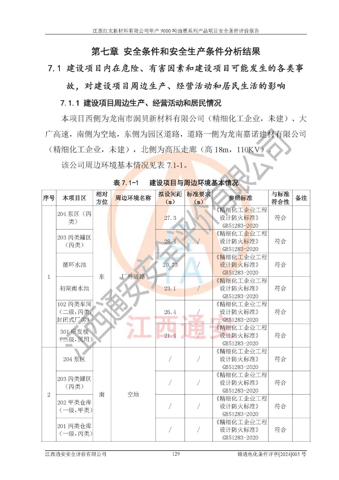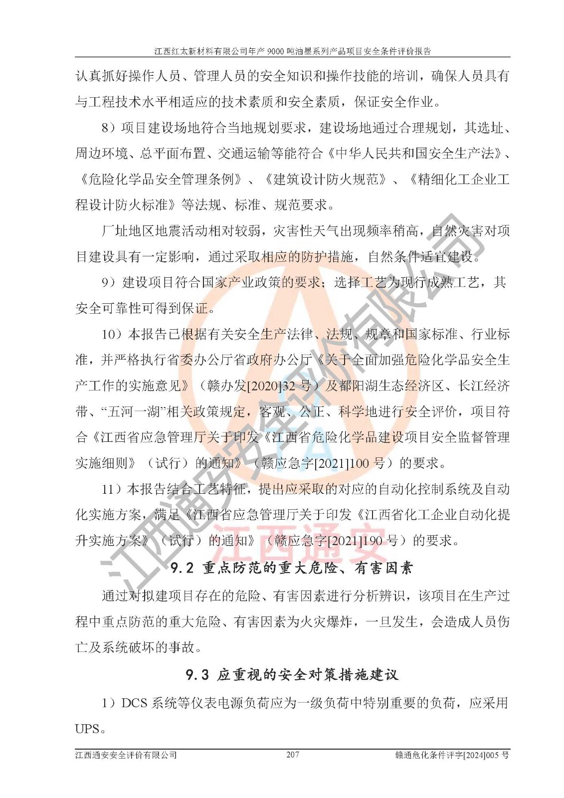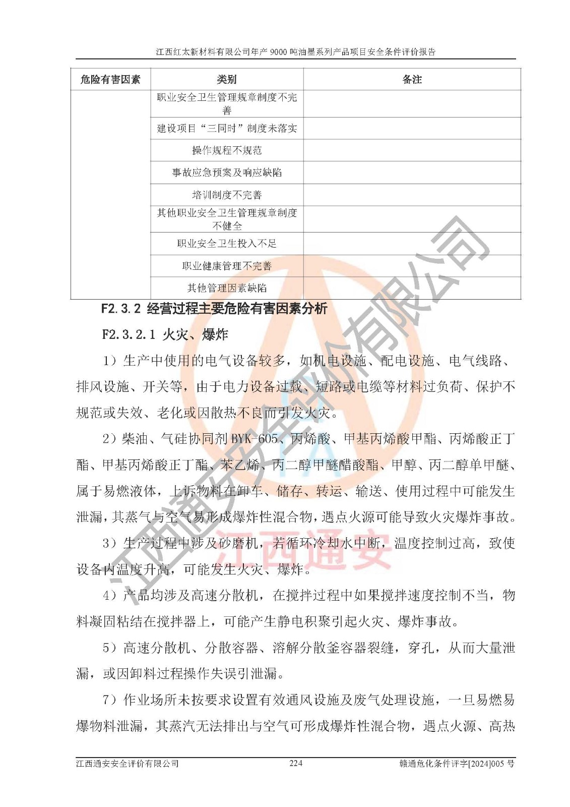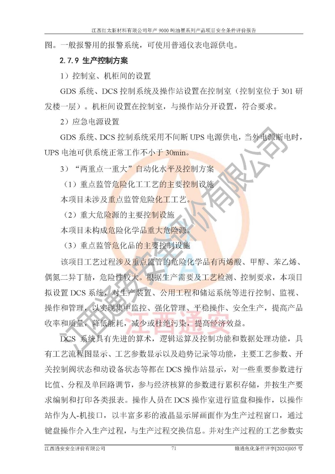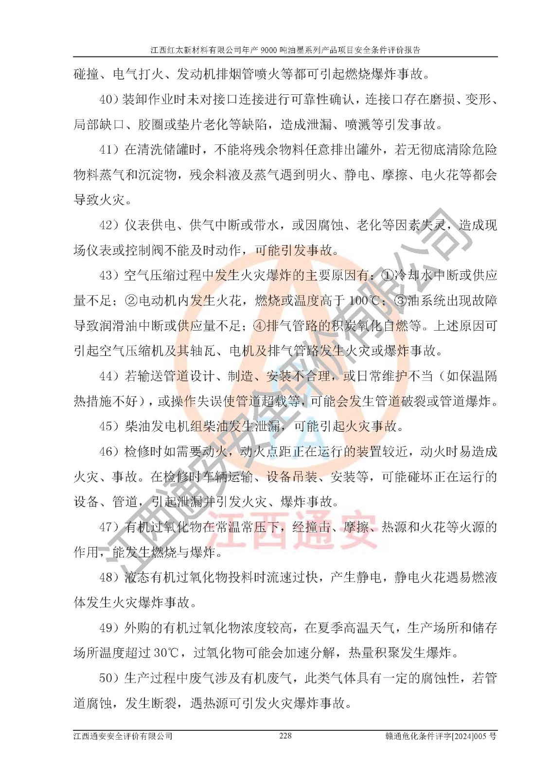 1)本項(xiàng)目依法取得了《江西省企業(yè)投資項(xiàng)目備案通知書》、《建設(shè)用地規(guī)劃許可證》,符合地方產(chǎn)業(yè)發(fā)展規(guī)劃的要求。 2)根據(jù)《**安全監(jiān)管總局關(guān)于公布首批重點(diǎn)監(jiān)管的危險(xiǎn)化工工藝目錄的通知》(安監(jiān)總管三[2009]116號(hào))和《**安全監(jiān)管總局關(guān)于公布第二批重點(diǎn)監(jiān)管危險(xiǎn)化工工藝目錄和調(diào)整首批重點(diǎn)監(jiān)管危險(xiǎn)化工工藝中部分典型工藝的通知》(安監(jiān)總管三[2013]3號(hào)),本項(xiàng)目聚合工藝為常壓條件生產(chǎn)工藝,故不列入危險(xiǎn)工藝。 3)根據(jù)《危險(xiǎn)化學(xué)品重大危險(xiǎn)源辨識(shí)》(GB18218-2018),該項(xiàng)目未構(gòu)成危險(xiǎn)化學(xué)品重大危險(xiǎn)源。 4)項(xiàng)目存在的主要危險(xiǎn)因素有:火災(zāi)爆炸、容器爆炸、中毒窒息、灼燙、觸電、**傷害、機(jī)械傷害、高處墜落、物體打擊、淹溺等,存在的主要危害因素有:噪聲與振動(dòng)、高溫、有害化學(xué)物質(zhì)等;引起事故的原因有人的不安全行為、物的不安全狀態(tài)、管理缺陷和環(huán)境不良。其中*主要的危險(xiǎn)有害因素是火災(zāi)爆炸。 5)采用預(yù)先危險(xiǎn)性分析法評(píng)價(jià),結(jié)果為: (1)通過預(yù)先危險(xiǎn)(PHA)分析可知,項(xiàng)目廠址及總體布局單元存在周邊環(huán)境相互影響,發(fā)生異常情況,可對(duì)周邊企業(yè)生產(chǎn)經(jīng)營(yíng)活動(dòng)、人員活動(dòng)產(chǎn)生影響;存在自然條件影響,可因雷擊、暴雨等引起事故;存在**傷害、建筑物危害,其固有的危險(xiǎn)性等級(jí)為Ⅱ級(jí),屬于“臨界的”,應(yīng)予以排除、采取控制措施因素。 (2)生產(chǎn)作業(yè)存在的危險(xiǎn)因素包括火災(zāi)爆炸、觸電、灼燙、中毒窒息固有的危險(xiǎn)等級(jí)為Ⅲ級(jí),屬于“危險(xiǎn)的”,可能導(dǎo)致人員傷亡和系統(tǒng)損壞的因素,需要采取防范和對(duì)策措施的因素;其它危險(xiǎn)因素固有的危險(xiǎn)等級(jí)為Ⅱ級(jí),屬于“臨界的”,應(yīng)予以排除、采取控制措施因素。 (3)生產(chǎn)作業(yè)存在的噪聲、粉塵、高溫、有害化學(xué)物質(zhì)的危險(xiǎn)有害因素等級(jí)為Ⅱ級(jí),屬于“臨界的”,應(yīng)予以排除、采取控制措施因素。 6)危險(xiǎn)度評(píng)價(jià)分析,結(jié)果為: 生產(chǎn)裝置危險(xiǎn)度評(píng)價(jià)分析:101甲類車間為**危險(xiǎn)(Ⅰ級(jí)),102丙類車間為中度危險(xiǎn)(Ⅱ級(jí))。 儲(chǔ)存單元危險(xiǎn)度評(píng)價(jià)分析:202甲類倉(cāng)庫(kù)為**危險(xiǎn)(Ⅰ級(jí)),201丙類倉(cāng)庫(kù)為低度危險(xiǎn)(Ⅲ級(jí)),203丙類罐區(qū)為中度危險(xiǎn)(Ⅱ級(jí))。 7)作業(yè)條件危險(xiǎn)性評(píng)價(jià)結(jié)果:在選定的評(píng)價(jià)單元中,其危險(xiǎn)分值均在70以下,危險(xiǎn)程度基本屬于“可能危險(xiǎn)”、“稍有危險(xiǎn)”范圍,作業(yè)條件相對(duì)安全。企業(yè)經(jīng)營(yíng)過程中首先應(yīng)重點(diǎn)加強(qiáng)對(duì)甲類生產(chǎn)車間、甲類倉(cāng)庫(kù)、儲(chǔ)罐區(qū)的危險(xiǎn)因素的嚴(yán)格控制,注重日常安全管理;其次要建立健全完善的安全生產(chǎn)責(zé)任制、安全管理制度、安全技術(shù)操作規(guī)程并**其貫徹落實(shí);第三要認(rèn)真抓好操作人員、管理人員的安全知識(shí)和操作技能的培訓(xùn),**人員具有與工程技術(shù)水平相適應(yīng)的技術(shù)素質(zhì)和安全素質(zhì),**安全作業(yè)。 8)項(xiàng)目建設(shè)場(chǎng)地符合當(dāng)?shù)匾?guī)劃要求,建設(shè)場(chǎng)地通過合理規(guī)劃,其選址、周邊環(huán)境、總平面布置、交通運(yùn)輸?shù)饶芊稀吨腥A人民共和國(guó)安全生產(chǎn)法》、《危險(xiǎn)化學(xué)品安全管理?xiàng)l例》、《建筑設(shè)計(jì)防火規(guī)范》、《精細(xì)化工企業(yè)工程設(shè)計(jì)防火標(biāo)準(zhǔn)》等法規(guī)、標(biāo)準(zhǔn)、規(guī)范要求。 廠址地區(qū)地震活動(dòng)相對(duì)較弱,災(zāi)害性天氣出現(xiàn)頻率稍高,自然災(zāi)害對(duì)項(xiàng)目建設(shè)具有**影響,通過采取相應(yīng)的防護(hù)措施,自然條件適宜建設(shè)。 9)建設(shè)項(xiàng)目符合**產(chǎn)業(yè)政策的要求;選擇工藝為現(xiàn)行成熟工藝,其安全可靠性可得到**。 10)本報(bào)告已根據(jù)有關(guān)安全生產(chǎn)法律、法規(guī)、規(guī)章和**標(biāo)準(zhǔn)、行業(yè)標(biāo)準(zhǔn),并嚴(yán)格執(zhí)行省委辦公廳省**辦公廳《關(guān)于全面加強(qiáng)危險(xiǎn)化學(xué)品安全生產(chǎn)工作的實(shí)施意見》(贛辦發(fā)[2020]32號(hào))及都陽(yáng)湖生態(tài)經(jīng)濟(jì)區(qū)、長(zhǎng)江經(jīng)濟(jì)帶、“五河一湖”相關(guān)政策規(guī)定,客觀、公正、科學(xué)地進(jìn)行安全評(píng)價(jià),項(xiàng)目符合《江西省應(yīng)急管理廳關(guān)于印發(fā)《江西省危險(xiǎn)化學(xué)品建設(shè)項(xiàng)目安全監(jiān)督管理實(shí)施細(xì)則》(試行)的通知》(贛應(yīng)急字[2021]100號(hào))的要求。 11)本報(bào)告結(jié)合工藝特征,提出應(yīng)采取的對(duì)應(yīng)的自動(dòng)化控制系統(tǒng)及自動(dòng)化實(shí)施方案,滿足《江西省應(yīng)急管理廳關(gu