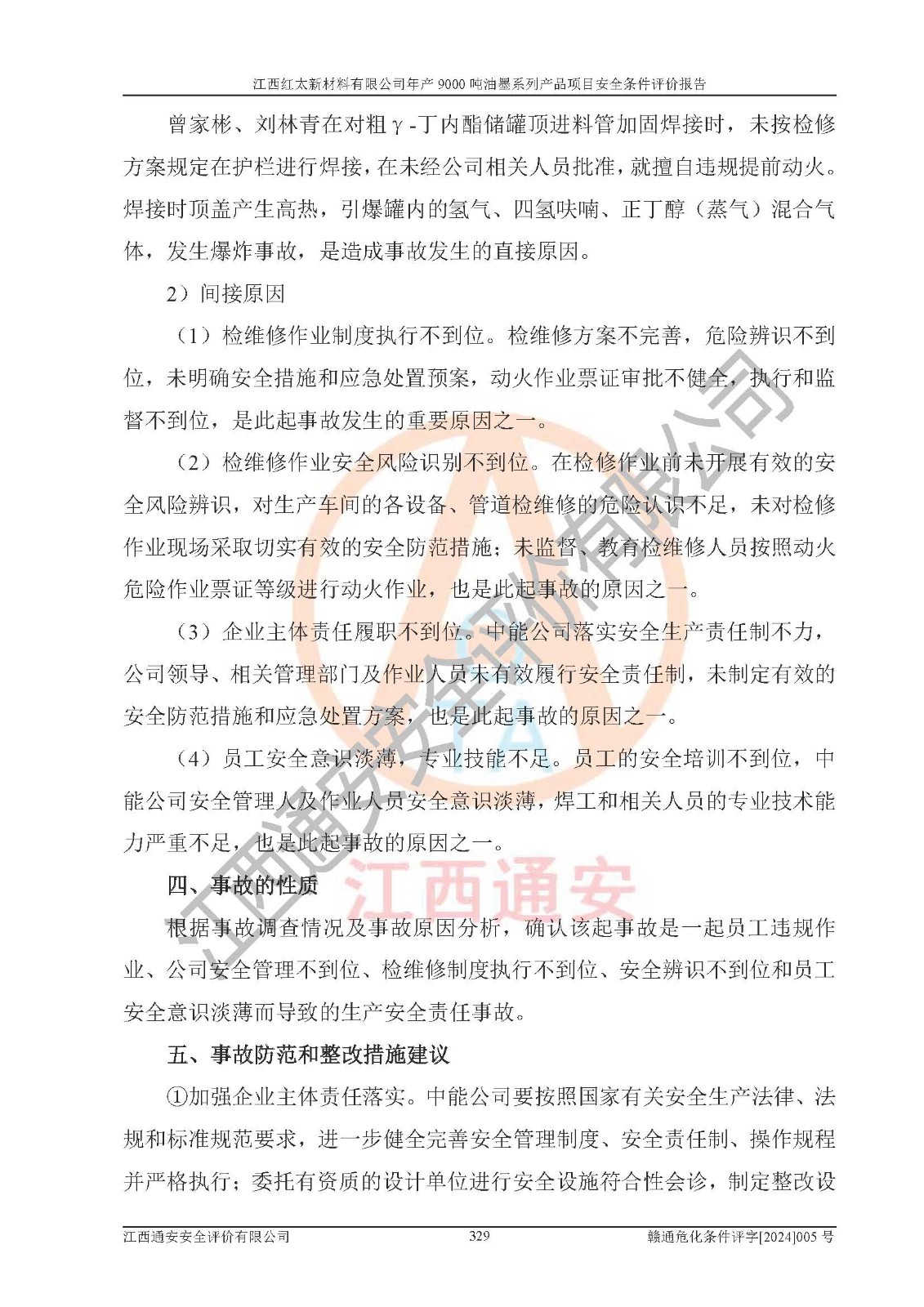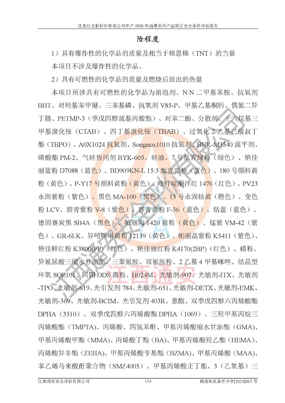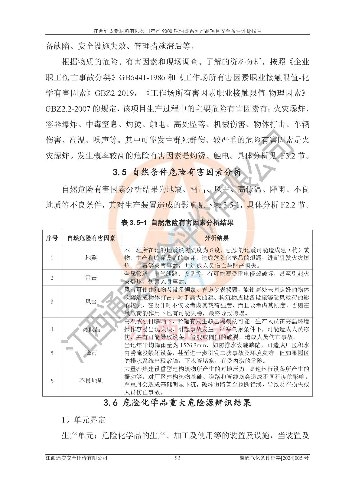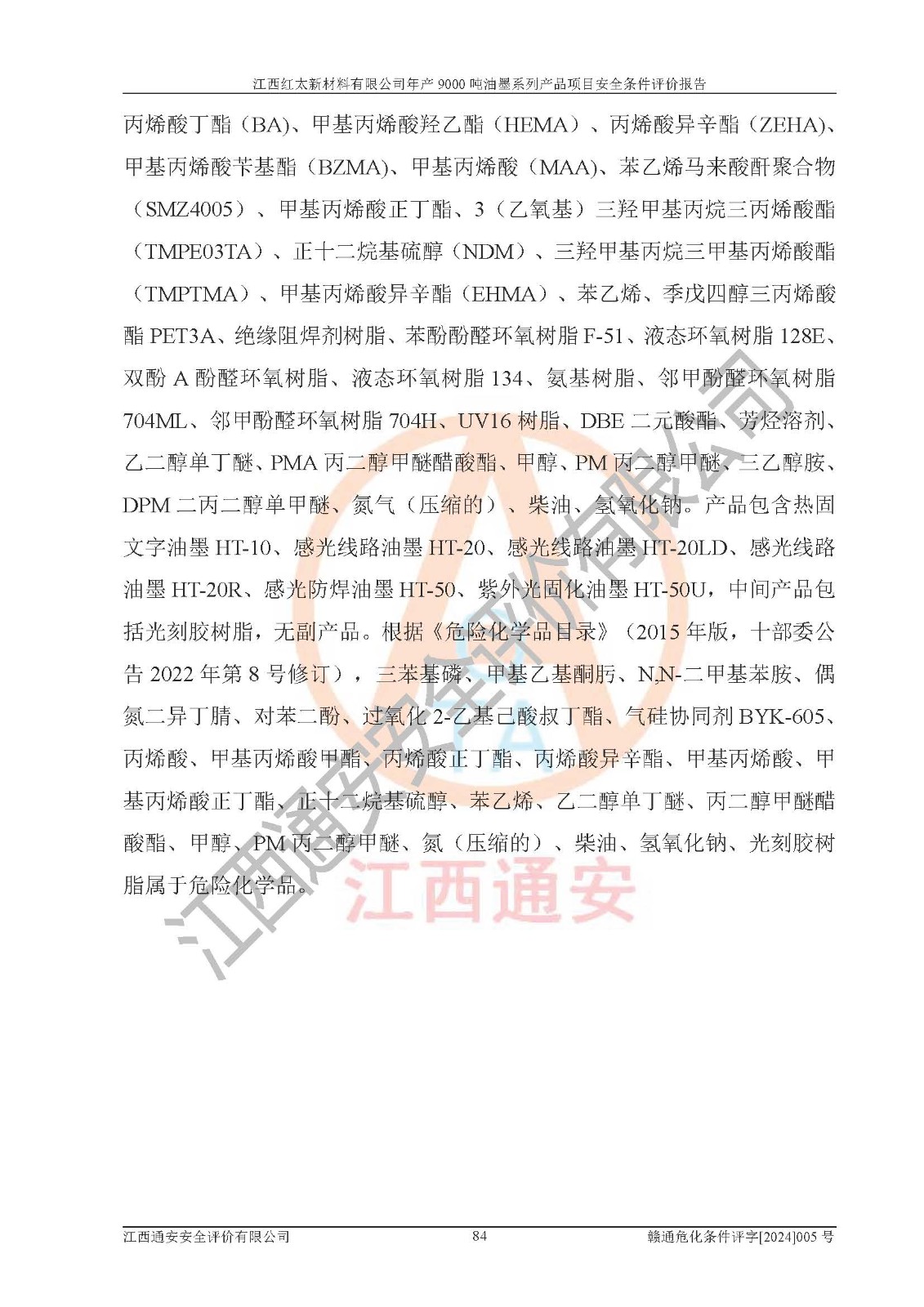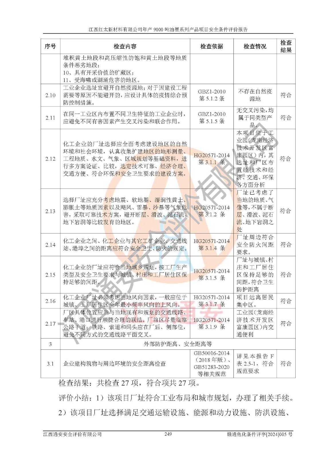 1)本項(xiàng)目依法取得了《江西省企業(yè)投資項(xiàng)目備案通知書》、《建設(shè)用地規(guī)劃許可證》,符合地方產(chǎn)業(yè)發(fā)展規(guī)劃的要求。 2)根據(jù)《**安全監(jiān)管總局關(guān)于公布首批重點(diǎn)監(jiān)管的危險(xiǎn)化工工藝目錄的通知》(安監(jiān)總管三[2009]116號(hào))和《**安全監(jiān)管總局關(guān)于公布第二批重點(diǎn)監(jiān)管危險(xiǎn)化工工藝目錄和調(diào)整首批重點(diǎn)監(jiān)管危險(xiǎn)化工工藝中部分典型工藝的通知》(安監(jiān)總管三[2013]3號(hào)),本項(xiàng)目聚合工藝為常壓條件生產(chǎn)工藝,故不列入危險(xiǎn)工藝。 3)根據(jù)《危險(xiǎn)化學(xué)品重大危險(xiǎn)源辨識(shí)》(GB18218-2018),該項(xiàng)目未構(gòu)成危險(xiǎn)化學(xué)品重大危險(xiǎn)源。 4)項(xiàng)目存在的主要危險(xiǎn)因素有:火災(zāi)爆炸、容器爆炸、中毒窒息、灼燙、觸電、**傷害、機(jī)械傷害、高處墜落、物體打擊、淹溺等,存在的主要危害因素有:噪聲與振動(dòng)、高溫、有害化學(xué)物質(zhì)等;引起事故的原因有人的不安全行為、物的不安全狀態(tài)、管理缺陷和環(huán)境不良。其中*主要的危險(xiǎn)有害因素是火災(zāi)爆炸。 5)采用預(yù)先危險(xiǎn)性分析法評(píng)價(jià),結(jié)果為: (1)通過預(yù)先危險(xiǎn)(PHA)分析可知,項(xiàng)目廠址及總體布局單元存在周邊環(huán)境相互影響,發(fā)生異常情況,可對(duì)周邊企業(yè)生產(chǎn)經(jīng)營(yíng)活動(dòng)、人員活動(dòng)產(chǎn)生影響;存在自然條件影響,可因雷擊、暴雨等引起事故;存在**傷害、建筑物危害,其固有的危險(xiǎn)性等級(jí)為Ⅱ級(jí),屬于“臨界的”,應(yīng)予以排除、采取控制措施因素。 (2)生產(chǎn)作業(yè)存在的危險(xiǎn)因素包括火災(zāi)爆炸、觸電、灼燙、中毒窒息固有的危險(xiǎn)等級(jí)為Ⅲ級(jí),屬于“危險(xiǎn)的”,可能導(dǎo)致人員傷亡和系統(tǒng)損壞的因素,需要采取防范和對(duì)策措施的因素;其它危險(xiǎn)因素固有的危險(xiǎn)等級(jí)為Ⅱ級(jí),屬于“臨界的”,應(yīng)予以排除、采取控制措施因素。 (3)生產(chǎn)作業(yè)存在的噪聲、粉塵、高溫、有害化學(xué)物質(zhì)的危險(xiǎn)有害因素等級(jí)為Ⅱ級(jí),屬于“臨界的”,應(yīng)予以排除、采取控制措施因素。 6)危險(xiǎn)度評(píng)價(jià)分析,結(jié)果為: 生產(chǎn)裝置危險(xiǎn)度評(píng)價(jià)分析:101甲類車間為**危險(xiǎn)(Ⅰ級(jí)),102丙類車間為中度危險(xiǎn)(Ⅱ級(jí))。 儲(chǔ)存單元危險(xiǎn)度評(píng)價(jià)分析:202甲類倉(cāng)庫(kù)為**危險(xiǎn)(Ⅰ級(jí)),201丙類倉(cāng)庫(kù)為低度危險(xiǎn)(Ⅲ級(jí)),203丙類罐區(qū)為中度危險(xiǎn)(Ⅱ級(jí))。 7)作業(yè)條件危險(xiǎn)性評(píng)價(jià)結(jié)果:在選定的評(píng)價(jià)單元中,其危險(xiǎn)分值均在70以下,危險(xiǎn)程度基本屬于“可能危險(xiǎn)”、“稍有危險(xiǎn)”范圍,作業(yè)條件相對(duì)安全。企業(yè)經(jīng)營(yíng)過程中首先應(yīng)重點(diǎn)加強(qiáng)對(duì)甲類生產(chǎn)車間、甲類倉(cāng)庫(kù)、儲(chǔ)罐區(qū)的危險(xiǎn)因素的嚴(yán)格控制,注重日常安全管理;其次要建立健全完善的安全生產(chǎn)責(zé)任制、安全管理制度、安全技術(shù)操作規(guī)程并**其貫徹落實(shí);第三要認(rèn)真抓好操作人員、管理人員的安全知識(shí)和操作技能的培訓(xùn),**人員具有與工程技術(shù)水平相適應(yīng)的技術(shù)素質(zhì)和安全素質(zhì),**安全作業(yè)。 8)項(xiàng)目建設(shè)場(chǎng)地符合當(dāng)?shù)匾?guī)劃要求,建設(shè)場(chǎng)地通過合理規(guī)劃,其選址、周邊環(huán)境、總平面布置、交通運(yùn)輸?shù)饶芊稀吨腥A人民共和國(guó)安全生產(chǎn)法》、《危險(xiǎn)化學(xué)品安全管理?xiàng)l例》、《建筑設(shè)計(jì)防火規(guī)范》、《精細(xì)化工企業(yè)工程設(shè)計(jì)防火標(biāo)準(zhǔn)》等法規(guī)、標(biāo)準(zhǔn)、規(guī)范要求。 廠址地區(qū)地震活動(dòng)相對(duì)較弱,災(zāi)害性天氣出現(xiàn)頻率稍高,自然災(zāi)害對(duì)項(xiàng)目建設(shè)具有**影響,通過采取相應(yīng)的防護(hù)措施,自然條件適宜建設(shè)。 9)建設(shè)項(xiàng)目符合**產(chǎn)業(yè)政策的要求;選擇工藝為現(xiàn)行成熟工藝,其安全可靠性可得到**。 10)本報(bào)告已根據(jù)有關(guān)安全生產(chǎn)法律、法規(guī)、規(guī)章和**標(biāo)準(zhǔn)、行業(yè)標(biāo)準(zhǔn),并嚴(yán)格執(zhí)行省委辦公廳省**辦公廳《關(guān)于全面加強(qiáng)危險(xiǎn)化學(xué)品安全生產(chǎn)工作的實(shí)施意見》(贛辦發(fā)[2020]32號(hào))及都陽(yáng)湖生態(tài)經(jīng)濟(jì)區(qū)、長(zhǎng)江經(jīng)濟(jì)帶、“五河一湖”相關(guān)政策規(guī)定,客觀、公正、科學(xué)地進(jìn)行安全評(píng)價(jià),項(xiàng)目符合《江西省應(yīng)急管理廳關(guān)于印發(fā)《江西省危險(xiǎn)化學(xué)品建設(shè)項(xiàng)目安全監(jiān)督管理實(shí)施細(xì)則》(試行)的通知》(贛應(yīng)急字[2021]100號(hào))的要求。 11)本報(bào)告結(jié)合工藝特征,提出應(yīng)采取的對(duì)應(yīng)的自動(dòng)化控制系統(tǒng)及自動(dòng)化實(shí)施方案,滿足《江西省應(yīng)急管理廳關(gu