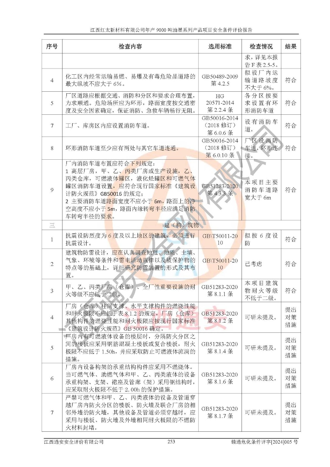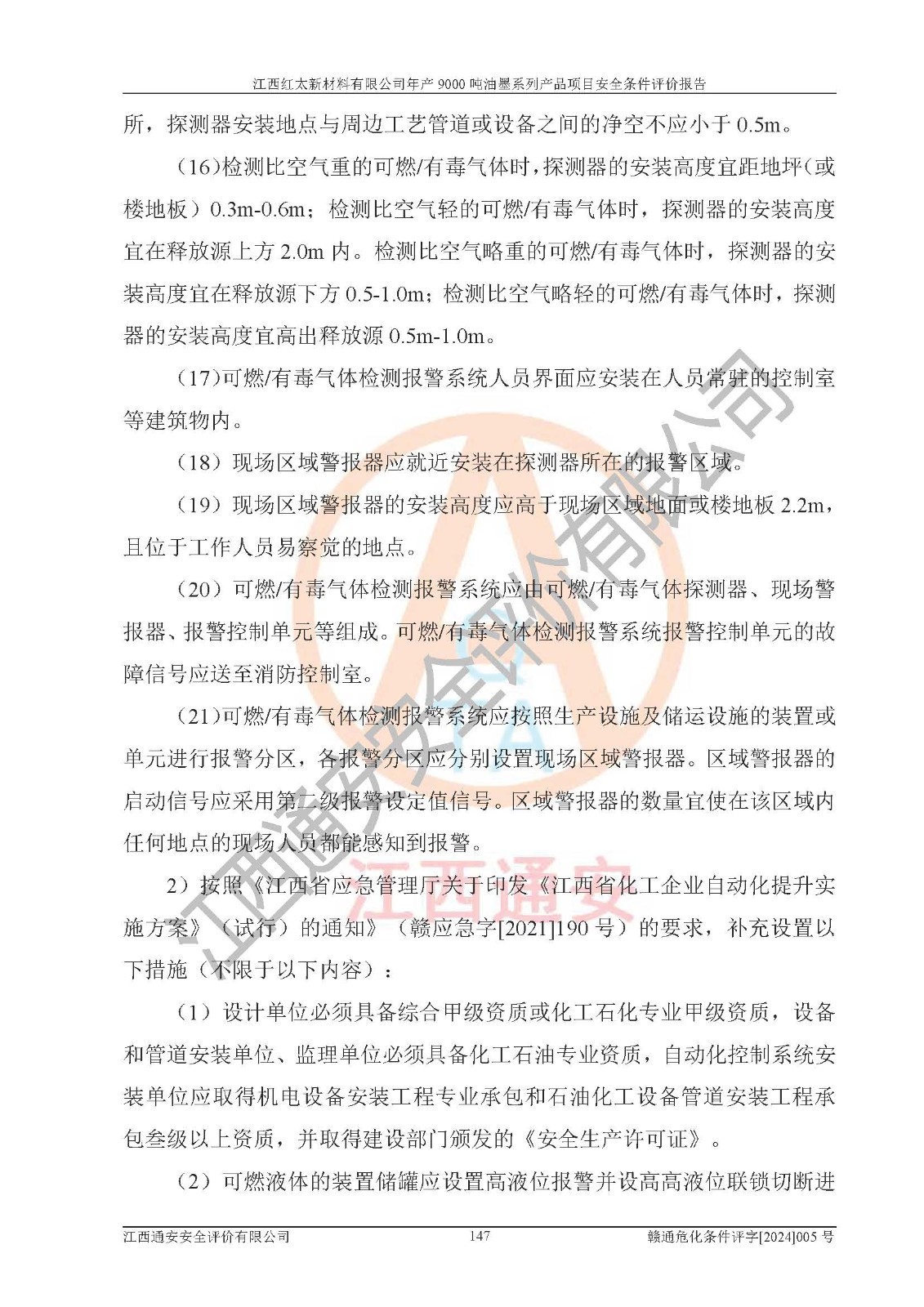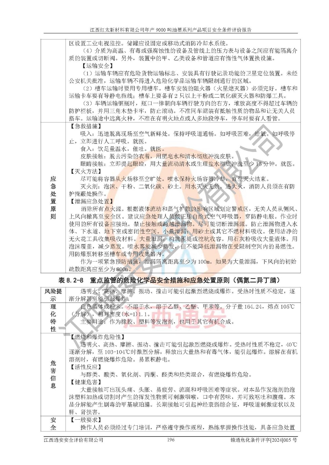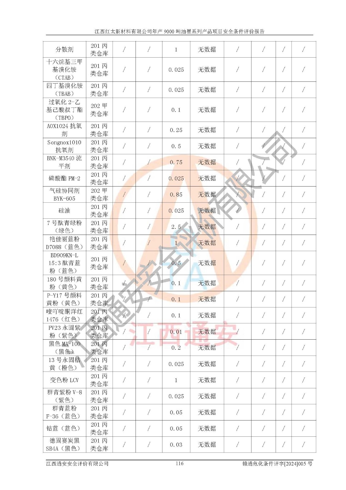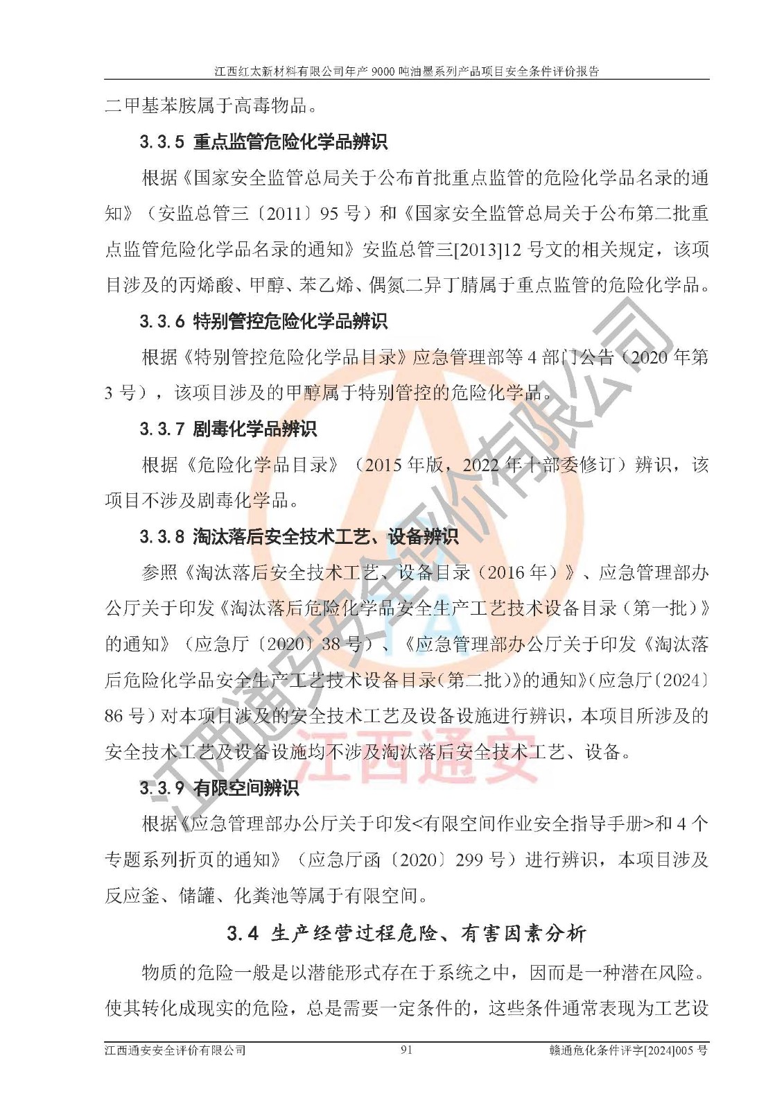 1)本項(xiàng)目依法取得了《江西省企業(yè)投資項(xiàng)目備案通知書》、《建設(shè)用地規(guī)劃許可證》,符合地方產(chǎn)業(yè)發(fā)展規(guī)劃的要求。 2)根據(jù)《**安全監(jiān)管總局關(guān)于公布首批重點(diǎn)監(jiān)管的危險(xiǎn)化工工藝目錄的通知》(安監(jiān)總管三[2009]116號(hào))和《**安全監(jiān)管總局關(guān)于公布第二批重點(diǎn)監(jiān)管危險(xiǎn)化工工藝目錄和調(diào)整首批重點(diǎn)監(jiān)管危險(xiǎn)化工工藝中部分典型工藝的通知》(安監(jiān)總管三[2013]3號(hào)),本項(xiàng)目聚合工藝為常壓條件生產(chǎn)工藝,故不列入危險(xiǎn)工藝。 3)根據(jù)《危險(xiǎn)化學(xué)品重大危險(xiǎn)源辨識(shí)》(GB18218-2018),該項(xiàng)目未構(gòu)成危險(xiǎn)化學(xué)品重大危險(xiǎn)源。 4)項(xiàng)目存在的主要危險(xiǎn)因素有:火災(zāi)爆炸、容器爆炸、中毒窒息、灼燙、觸電、**傷害、機(jī)械傷害、高處墜落、物體打擊、淹溺等,存在的主要危害因素有:噪聲與振動(dòng)、高溫、有害化學(xué)物質(zhì)等;引起事故的原因有人的不安全行為、物的不安全狀態(tài)、管理缺陷和環(huán)境不良。其中*主要的危險(xiǎn)有害因素是火災(zāi)爆炸。 5)采用預(yù)先危險(xiǎn)性分析法評(píng)價(jià),結(jié)果為: (1)通過預(yù)先危險(xiǎn)(PHA)分析可知,項(xiàng)目廠址及總體布局單元存在周邊環(huán)境相互影響,發(fā)生異常情況,可對(duì)周邊企業(yè)生產(chǎn)經(jīng)營(yíng)活動(dòng)、人員活動(dòng)產(chǎn)生影響;存在自然條件影響,可因雷擊、暴雨等引起事故;存在**傷害、建筑物危害,其固有的危險(xiǎn)性等級(jí)為Ⅱ級(jí),屬于“臨界的”,應(yīng)予以排除、采取控制措施因素。 (2)生產(chǎn)作業(yè)存在的危險(xiǎn)因素包括火災(zāi)爆炸、觸電、灼燙、中毒窒息固有的危險(xiǎn)等級(jí)為Ⅲ級(jí),屬于“危險(xiǎn)的”,可能導(dǎo)致人員傷亡和系統(tǒng)損壞的因素,需要采取防范和對(duì)策措施的因素;其它危險(xiǎn)因素固有的危險(xiǎn)等級(jí)為Ⅱ級(jí),屬于“臨界的”,應(yīng)予以排除、采取控制措施因素。 (3)生產(chǎn)作業(yè)存在的噪聲、粉塵、高溫、有害化學(xué)物質(zhì)的危險(xiǎn)有害因素等級(jí)為Ⅱ級(jí),屬于“臨界的”,應(yīng)予以排除、采取控制措施因素。 6)危險(xiǎn)度評(píng)價(jià)分析,結(jié)果為: 生產(chǎn)裝置危險(xiǎn)度評(píng)價(jià)分析:101甲類車間為**危險(xiǎn)(Ⅰ級(jí)),102丙類車間為中度危險(xiǎn)(Ⅱ級(jí))。 儲(chǔ)存單元危險(xiǎn)度評(píng)價(jià)分析:202甲類倉(cāng)庫(kù)為**危險(xiǎn)(Ⅰ級(jí)),201丙類倉(cāng)庫(kù)為低度危險(xiǎn)(Ⅲ級(jí)),203丙類罐區(qū)為中度危險(xiǎn)(Ⅱ級(jí))。 7)作業(yè)條件危險(xiǎn)性評(píng)價(jià)結(jié)果:在選定的評(píng)價(jià)單元中,其危險(xiǎn)分值均在70以下,危險(xiǎn)程度基本屬于“可能危險(xiǎn)”、“稍有危險(xiǎn)”范圍,作業(yè)條件相對(duì)安全。企業(yè)經(jīng)營(yíng)過程中首先應(yīng)重點(diǎn)加強(qiáng)對(duì)甲類生產(chǎn)車間、甲類倉(cāng)庫(kù)、儲(chǔ)罐區(qū)的危險(xiǎn)因素的嚴(yán)格控制,注重日常安全管理;其次要建立健全完善的安全生產(chǎn)責(zé)任制、安全管理制度、安全技術(shù)操作規(guī)程并**其貫徹落實(shí);第三要認(rèn)真抓好操作人員、管理人員的安全知識(shí)和操作技能的培訓(xùn),**人員具有與工程技術(shù)水平相適應(yīng)的技術(shù)素質(zhì)和安全素質(zhì),**安全作業(yè)。 8)項(xiàng)目建設(shè)場(chǎng)地符合當(dāng)?shù)匾?guī)劃要求,建設(shè)場(chǎng)地通過合理規(guī)劃,其選址、周邊環(huán)境、總平面布置、交通運(yùn)輸?shù)饶芊稀吨腥A人民共和國(guó)安全生產(chǎn)法》、《危險(xiǎn)化學(xué)品安全管理?xiàng)l例》、《建筑設(shè)計(jì)防火規(guī)范》、《精細(xì)化工企業(yè)工程設(shè)計(jì)防火標(biāo)準(zhǔn)》等法規(guī)、標(biāo)準(zhǔn)、規(guī)范要求。 廠址地區(qū)地震活動(dòng)相對(duì)較弱,災(zāi)害性天氣出現(xiàn)頻率稍高,自然災(zāi)害對(duì)項(xiàng)目建設(shè)具有**影響,通過采取相應(yīng)的防護(hù)措施,自然條件適宜建設(shè)。 9)建設(shè)項(xiàng)目符合**產(chǎn)業(yè)政策的要求;選擇工藝為現(xiàn)行成熟工藝,其安全可靠性可得到**。 10)本報(bào)告已根據(jù)有關(guān)安全生產(chǎn)法律、法規(guī)、規(guī)章和**標(biāo)準(zhǔn)、行業(yè)標(biāo)準(zhǔn),并嚴(yán)格執(zhí)行省委辦公廳省**辦公廳《關(guān)于全面加強(qiáng)危險(xiǎn)化學(xué)品安全生產(chǎn)工作的實(shí)施意見》(贛辦發(fā)[2020]32號(hào))及都陽(yáng)湖生態(tài)經(jīng)濟(jì)區(qū)、長(zhǎng)江經(jīng)濟(jì)帶、“五河一湖”相關(guān)政策規(guī)定,客觀、公正、科學(xué)地進(jìn)行安全評(píng)價(jià),項(xiàng)目符合《江西省應(yīng)急管理廳關(guān)于印發(fā)《江西省危險(xiǎn)化學(xué)品建設(shè)項(xiàng)目安全監(jiān)督管理實(shí)施細(xì)則》(試行)的通知》(贛應(yīng)急字[2021]100號(hào))的要求。 11)本報(bào)告結(jié)合工藝特征,提出應(yīng)采取的對(duì)應(yīng)的自動(dòng)化控制系統(tǒng)及自動(dòng)化實(shí)施方案,滿足《江西省應(yīng)急管理廳關(gu