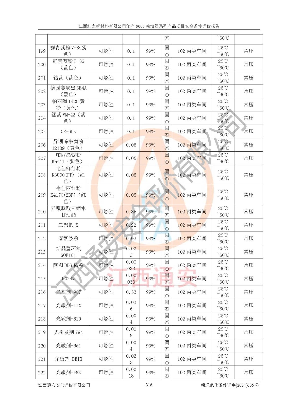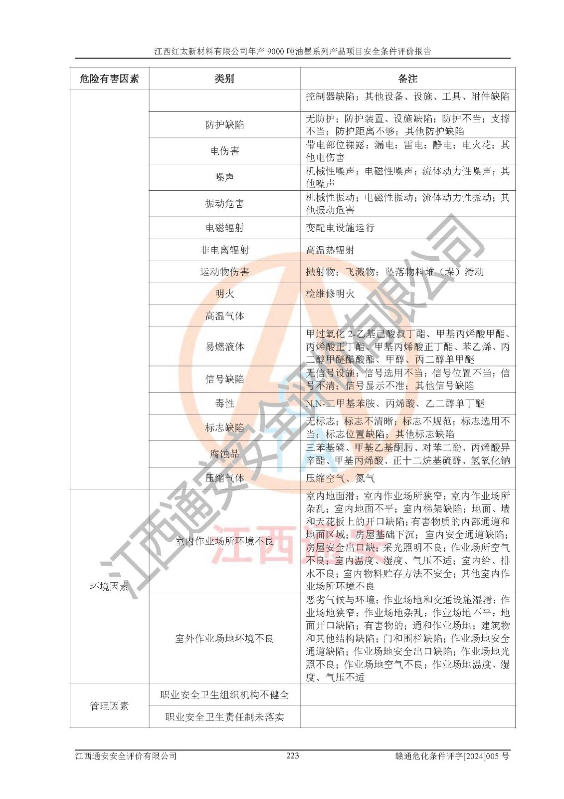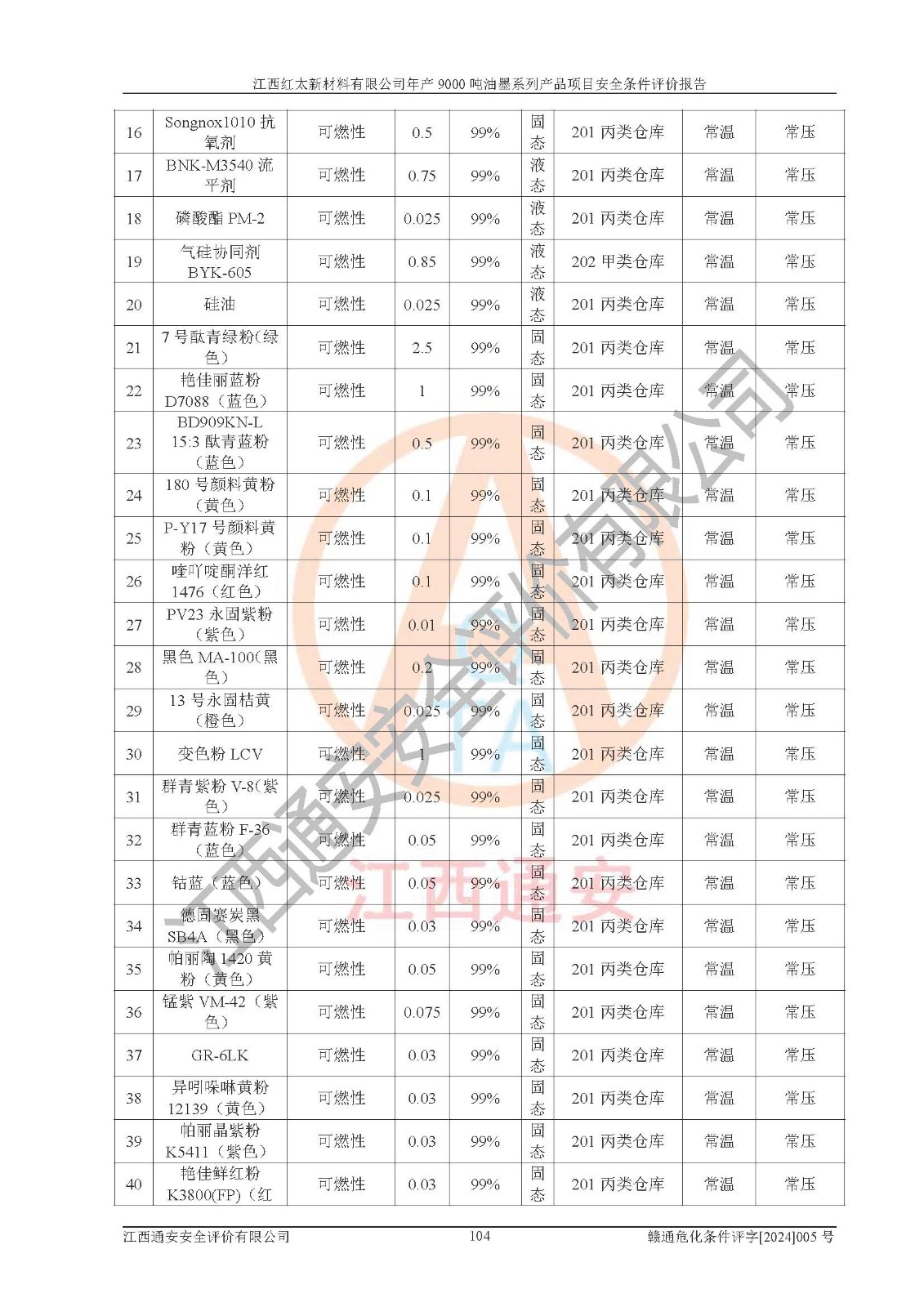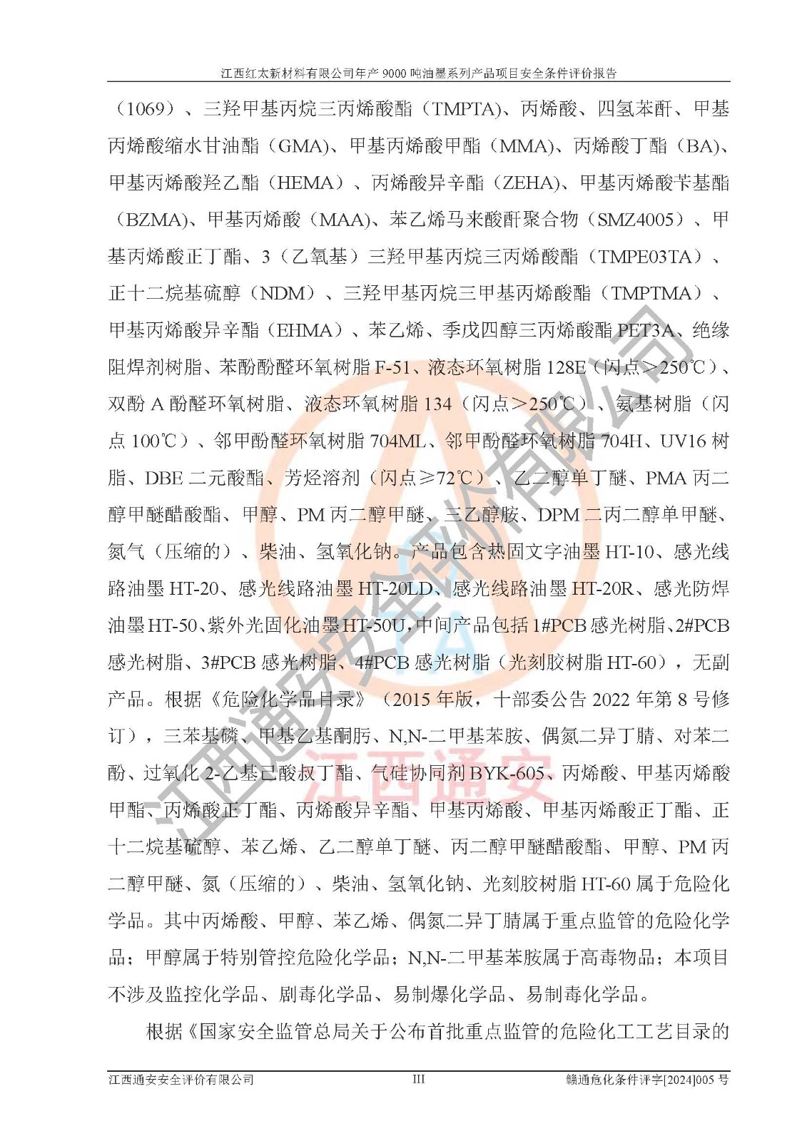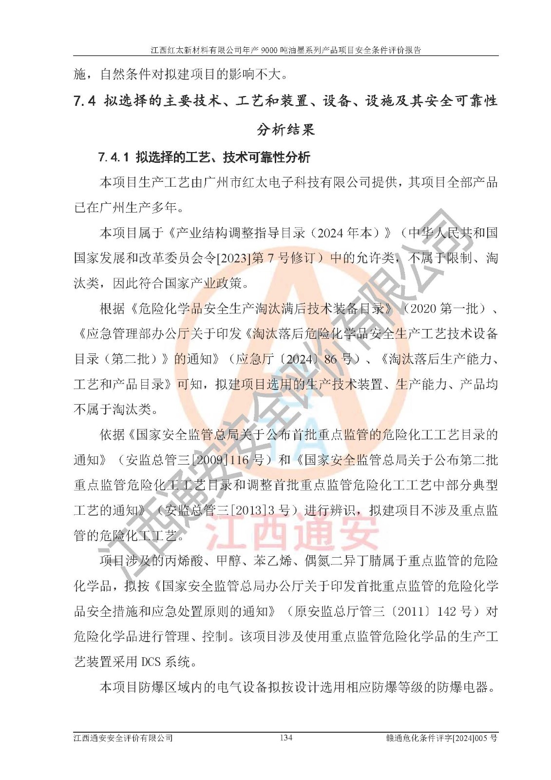 1)本項(xiàng)目依法取得了《江西省企業(yè)投資項(xiàng)目備案通知書》、《建設(shè)用地規(guī)劃許可證》,符合地方產(chǎn)業(yè)發(fā)展規(guī)劃的要求。 2)根據(jù)《**安全監(jiān)管總局關(guān)于公布首批重點(diǎn)監(jiān)管的危險(xiǎn)化工工藝目錄的通知》(安監(jiān)總管三[2009]116號(hào))和《**安全監(jiān)管總局關(guān)于公布第二批重點(diǎn)監(jiān)管危險(xiǎn)化工工藝目錄和調(diào)整首批重點(diǎn)監(jiān)管危險(xiǎn)化工工藝中部分典型工藝的通知》(安監(jiān)總管三[2013]3號(hào)),本項(xiàng)目聚合工藝為常壓條件生產(chǎn)工藝,故不列入危險(xiǎn)工藝。 3)根據(jù)《危險(xiǎn)化學(xué)品重大危險(xiǎn)源辨識(shí)》(GB18218-2018),該項(xiàng)目未構(gòu)成危險(xiǎn)化學(xué)品重大危險(xiǎn)源。 4)項(xiàng)目存在的主要危險(xiǎn)因素有:火災(zāi)爆炸、容器爆炸、中毒窒息、灼燙、觸電、**傷害、機(jī)械傷害、高處墜落、物體打擊、淹溺等,存在的主要危害因素有:噪聲與振動(dòng)、高溫、有害化學(xué)物質(zhì)等;引起事故的原因有人的不安全行為、物的不安全狀態(tài)、管理缺陷和環(huán)境不良。其中*主要的危險(xiǎn)有害因素是火災(zāi)爆炸。 5)采用預(yù)先危險(xiǎn)性分析法評(píng)價(jià),結(jié)果為: (1)通過預(yù)先危險(xiǎn)(PHA)分析可知,項(xiàng)目廠址及總體布局單元存在周邊環(huán)境相互影響,發(fā)生異常情況,可對(duì)周邊企業(yè)生產(chǎn)經(jīng)營(yíng)活動(dòng)、人員活動(dòng)產(chǎn)生影響;存在自然條件影響,可因雷擊、暴雨等引起事故;存在**傷害、建筑物危害,其固有的危險(xiǎn)性等級(jí)為Ⅱ級(jí),屬于“臨界的”,應(yīng)予以排除、采取控制措施因素。 (2)生產(chǎn)作業(yè)存在的危險(xiǎn)因素包括火災(zāi)爆炸、觸電、灼燙、中毒窒息固有的危險(xiǎn)等級(jí)為Ⅲ級(jí),屬于“危險(xiǎn)的”,可能導(dǎo)致人員傷亡和系統(tǒng)損壞的因素,需要采取防范和對(duì)策措施的因素;其它危險(xiǎn)因素固有的危險(xiǎn)等級(jí)為Ⅱ級(jí),屬于“臨界的”,應(yīng)予以排除、采取控制措施因素。 (3)生產(chǎn)作業(yè)存在的噪聲、粉塵、高溫、有害化學(xué)物質(zhì)的危險(xiǎn)有害因素等級(jí)為Ⅱ級(jí),屬于“臨界的”,應(yīng)予以排除、采取控制措施因素。 6)危險(xiǎn)度評(píng)價(jià)分析,結(jié)果為: 生產(chǎn)裝置危險(xiǎn)度評(píng)價(jià)分析:101甲類車間為**危險(xiǎn)(Ⅰ級(jí)),102丙類車間為中度危險(xiǎn)(Ⅱ級(jí))。 儲(chǔ)存單元危險(xiǎn)度評(píng)價(jià)分析:202甲類倉(cāng)庫(kù)為**危險(xiǎn)(Ⅰ級(jí)),201丙類倉(cāng)庫(kù)為低度危險(xiǎn)(Ⅲ級(jí)),203丙類罐區(qū)為中度危險(xiǎn)(Ⅱ級(jí))。 7)作業(yè)條件危險(xiǎn)性評(píng)價(jià)結(jié)果:在選定的評(píng)價(jià)單元中,其危險(xiǎn)分值均在70以下,危險(xiǎn)程度基本屬于“可能危險(xiǎn)”、“稍有危險(xiǎn)”范圍,作業(yè)條件相對(duì)安全。企業(yè)經(jīng)營(yíng)過程中首先應(yīng)重點(diǎn)加強(qiáng)對(duì)甲類生產(chǎn)車間、甲類倉(cāng)庫(kù)、儲(chǔ)罐區(qū)的危險(xiǎn)因素的嚴(yán)格控制,注重日常安全管理;其次要建立健全完善的安全生產(chǎn)責(zé)任制、安全管理制度、安全技術(shù)操作規(guī)程并**其貫徹落實(shí);第三要認(rèn)真抓好操作人員、管理人員的安全知識(shí)和操作技能的培訓(xùn),**人員具有與工程技術(shù)水平相適應(yīng)的技術(shù)素質(zhì)和安全素質(zhì),**安全作業(yè)。 8)項(xiàng)目建設(shè)場(chǎng)地符合當(dāng)?shù)匾?guī)劃要求,建設(shè)場(chǎng)地通過合理規(guī)劃,其選址、周邊環(huán)境、總平面布置、交通運(yùn)輸?shù)饶芊稀吨腥A人民共和國(guó)安全生產(chǎn)法》、《危險(xiǎn)化學(xué)品安全管理?xiàng)l例》、《建筑設(shè)計(jì)防火規(guī)范》、《精細(xì)化工企業(yè)工程設(shè)計(jì)防火標(biāo)準(zhǔn)》等法規(guī)、標(biāo)準(zhǔn)、規(guī)范要求。 廠址地區(qū)地震活動(dòng)相對(duì)較弱,災(zāi)害性天氣出現(xiàn)頻率稍高,自然災(zāi)害對(duì)項(xiàng)目建設(shè)具有**影響,通過采取相應(yīng)的防護(hù)措施,自然條件適宜建設(shè)。 9)建設(shè)項(xiàng)目符合**產(chǎn)業(yè)政策的要求;選擇工藝為現(xiàn)行成熟工藝,其安全可靠性可得到**。 10)本報(bào)告已根據(jù)有關(guān)安全生產(chǎn)法律、法規(guī)、規(guī)章和**標(biāo)準(zhǔn)、行業(yè)標(biāo)準(zhǔn),并嚴(yán)格執(zhí)行省委辦公廳省**辦公廳《關(guān)于全面加強(qiáng)危險(xiǎn)化學(xué)品安全生產(chǎn)工作的實(shí)施意見》(贛辦發(fā)[2020]32號(hào))及都陽(yáng)湖生態(tài)經(jīng)濟(jì)區(qū)、長(zhǎng)江經(jīng)濟(jì)帶、“五河一湖”相關(guān)政策規(guī)定,客觀、公正、科學(xué)地進(jìn)行安全評(píng)價(jià),項(xiàng)目符合《江西省應(yīng)急管理廳關(guān)于印發(fā)《江西省危險(xiǎn)化學(xué)品建設(shè)項(xiàng)目安全監(jiān)督管理實(shí)施細(xì)則》(試行)的通知》(贛應(yīng)急字[2021]100號(hào))的要求。 11)本報(bào)告結(jié)合工藝特征,提出應(yīng)采取的對(duì)應(yīng)的自動(dòng)化控制系統(tǒng)及自動(dòng)化實(shí)施方案,滿足《江西省應(yīng)急管理廳關(gu