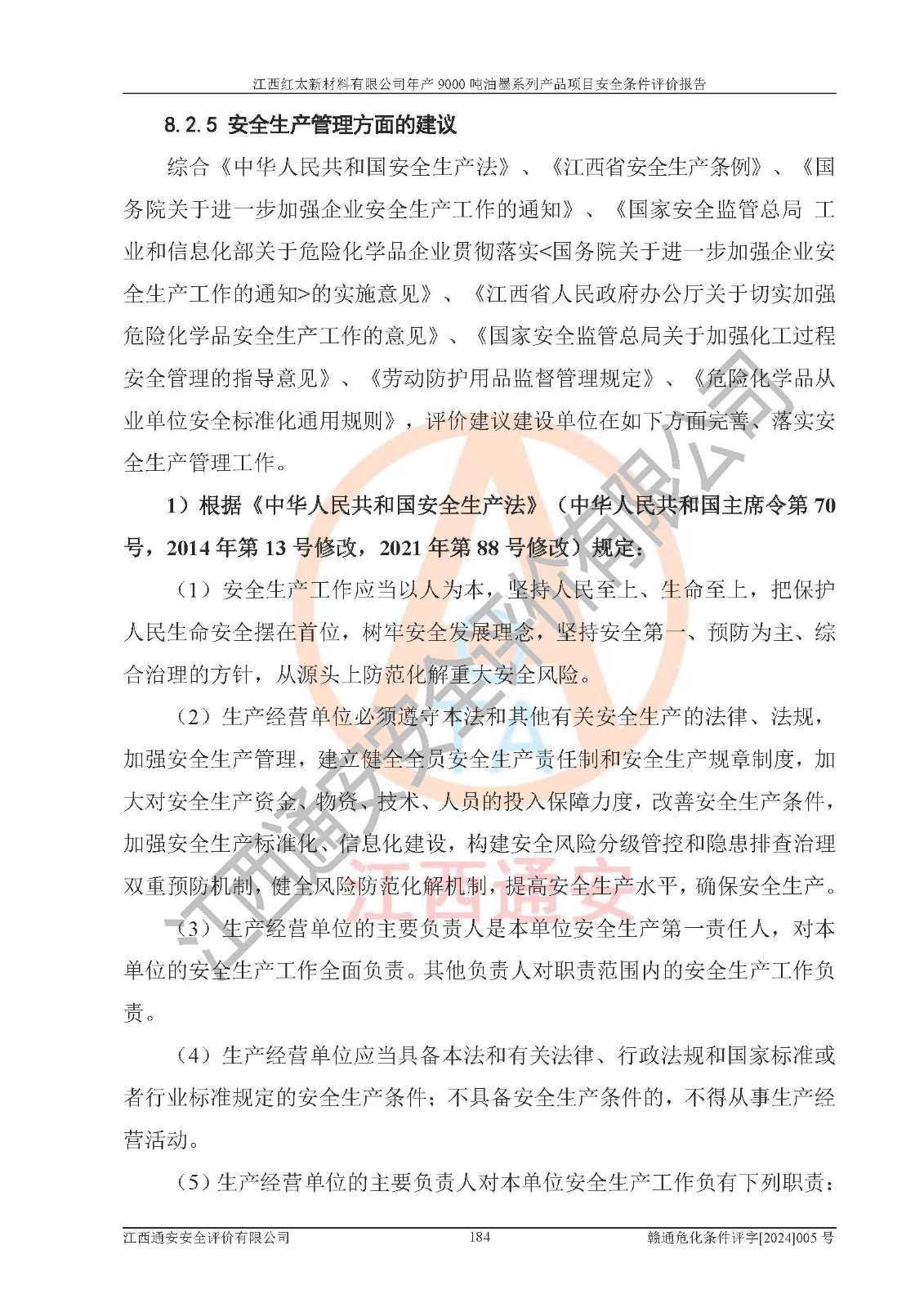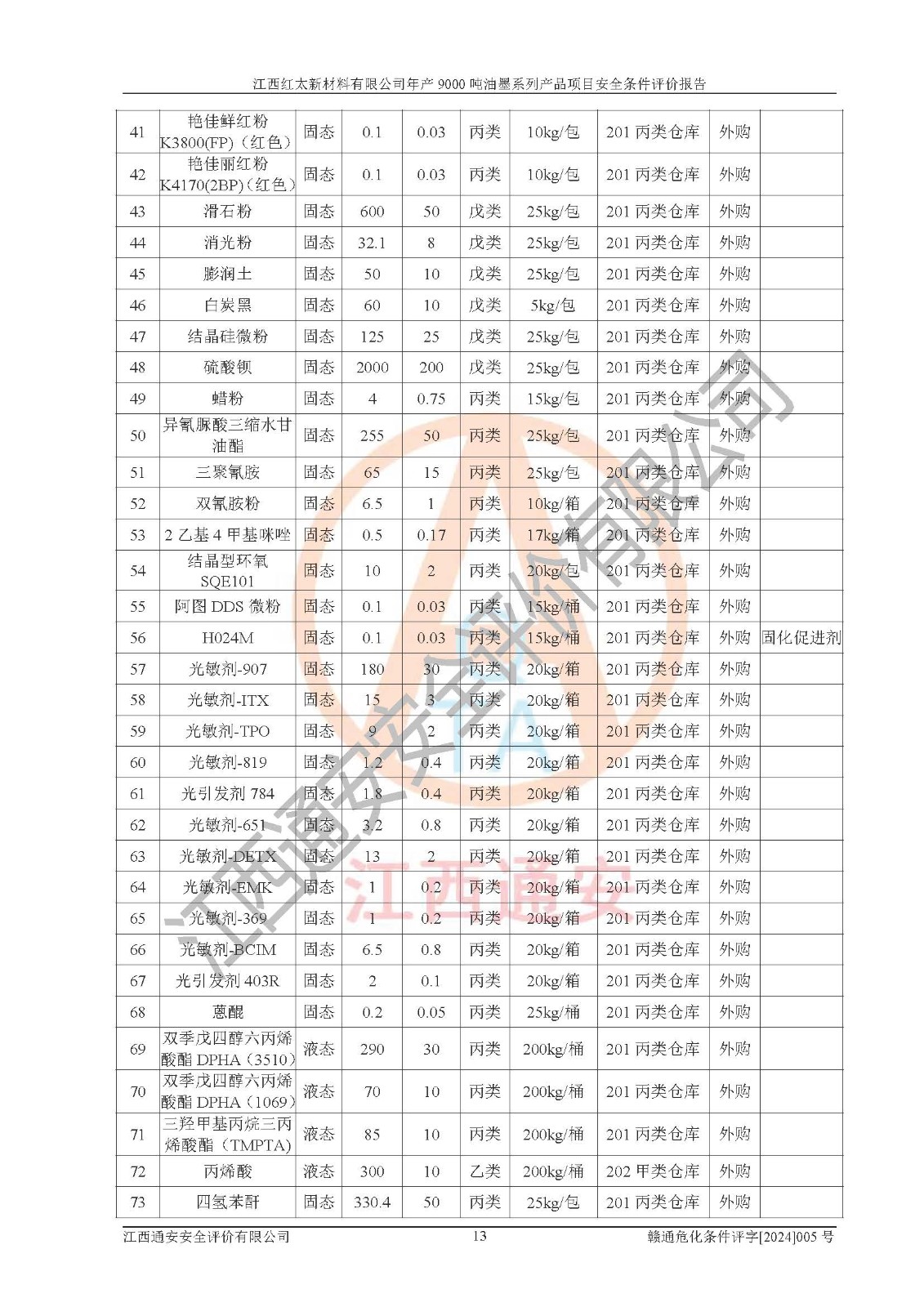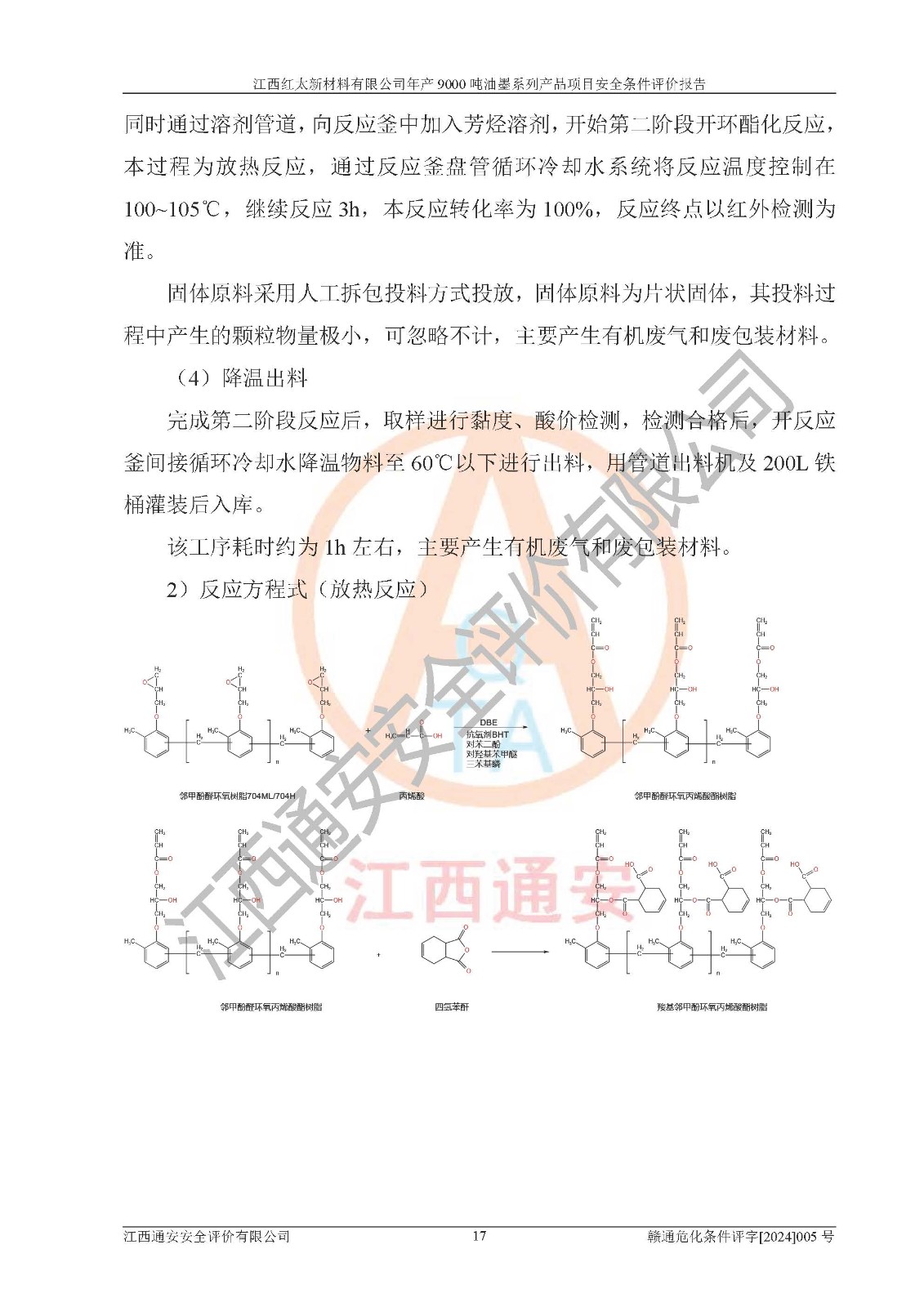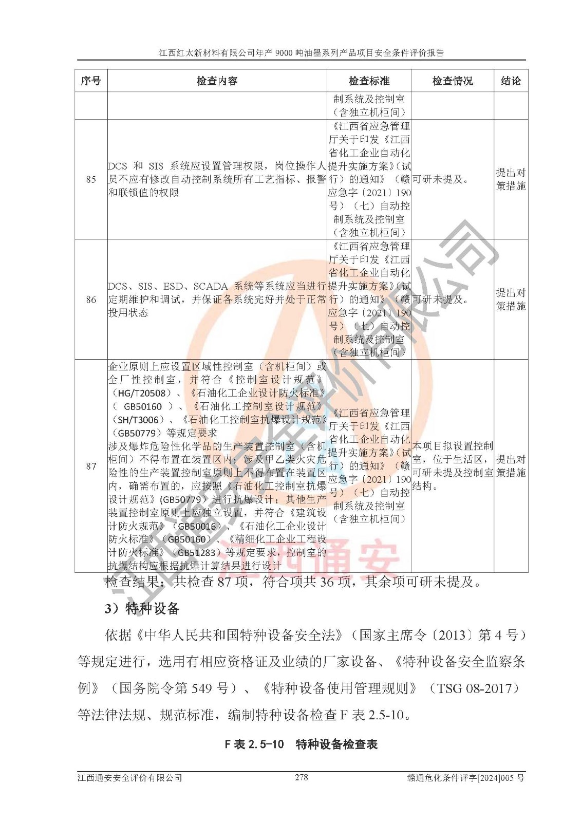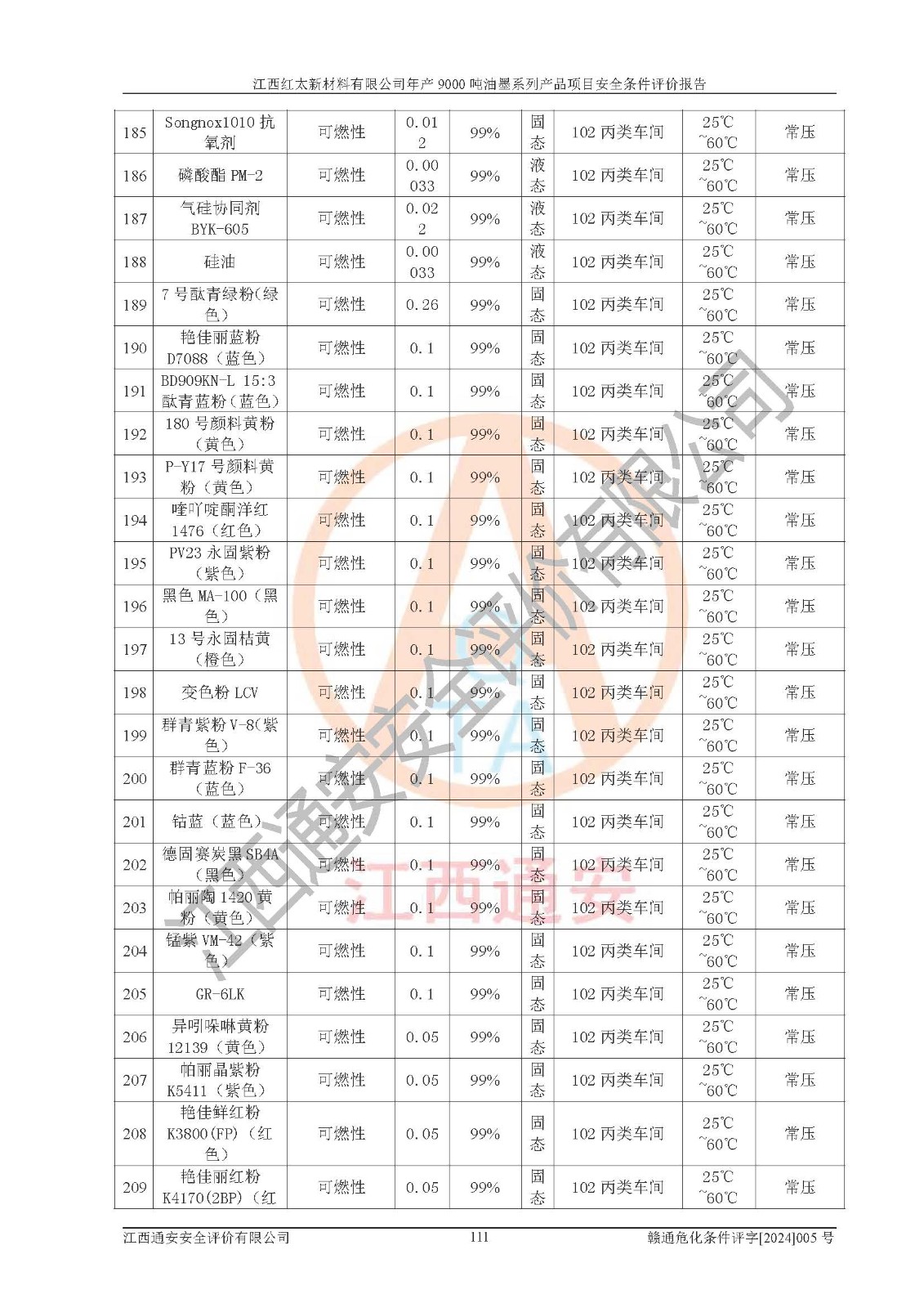1)本項(xiàng)目依法取得了《江西省企業(yè)投資項(xiàng)目備案通知書》、《建設(shè)用地規(guī)劃許可證》,符合地方產(chǎn)業(yè)發(fā)展規(guī)劃的要求。 2)根據(jù)《**安全監(jiān)管總局關(guān)于公布首批重點(diǎn)監(jiān)管的危險(xiǎn)化工工藝目錄的通知》(安監(jiān)總管三[2009]116號(hào))和《**安全監(jiān)管總局關(guān)于公布第二批重點(diǎn)監(jiān)管危險(xiǎn)化工工藝目錄和調(diào)整首批重點(diǎn)監(jiān)管危險(xiǎn)化工工藝中部分典型工藝的通知》(安監(jiān)總管三[2013]3號(hào)),本項(xiàng)目聚合工藝為常壓條件生產(chǎn)工藝,故不列入危險(xiǎn)工藝。 3)根據(jù)《危險(xiǎn)化學(xué)品重大危險(xiǎn)源辨識(shí)》(GB18218-2018),該項(xiàng)目未構(gòu)成危險(xiǎn)化學(xué)品重大危險(xiǎn)源。 4)項(xiàng)目存在的主要危險(xiǎn)因素有:火災(zāi)爆炸、容器爆炸、中毒窒息、灼燙、觸電、**傷害、機(jī)械傷害、高處墜落、物體打擊、淹溺等,存在的主要危害因素有:噪聲與振動(dòng)、高溫、有害化學(xué)物質(zhì)等;引起事故的原因有人的不安全行為、物的不安全狀態(tài)、管理缺陷和環(huán)境不良。其中*主要的危險(xiǎn)有害因素是火災(zāi)爆炸。 5)采用預(yù)先危險(xiǎn)性分析法評(píng)價(jià),結(jié)果為: (1)通過預(yù)先危險(xiǎn)(PHA)分析可知,項(xiàng)目廠址及總體布局單元存在周邊環(huán)境相互影響,發(fā)生異常情況,可對(duì)周邊企業(yè)生產(chǎn)經(jīng)營(yíng)活動(dòng)、人員活動(dòng)產(chǎn)生影響;存在自然條件影響,可因雷擊、暴雨等引起事故;存在**傷害、建筑物危害,其固有的危險(xiǎn)性等級(jí)為Ⅱ級(jí),屬于“臨界的”,應(yīng)予以排除、采取控制措施因素。 (2)生產(chǎn)作業(yè)存在的危險(xiǎn)因素包括火災(zāi)爆炸、觸電、灼燙、中毒窒息固有的危險(xiǎn)等級(jí)為Ⅲ級(jí),屬于“危險(xiǎn)的”,可能導(dǎo)致人員傷亡和系統(tǒng)損壞的因素,需要采取防范和對(duì)策措施的因素;其它危險(xiǎn)因素固有的危險(xiǎn)等級(jí)為Ⅱ級(jí),屬于“臨界的”,應(yīng)予以排除、采取控制措施因素。 (3)生產(chǎn)作業(yè)存在的噪聲、粉塵、高溫、有害化學(xué)物質(zhì)的危險(xiǎn)有害因素等級(jí)為Ⅱ級(jí),屬于“臨界的”,應(yīng)予以排除、采取控制措施因素。 6)危險(xiǎn)度評(píng)價(jià)分析,結(jié)果為: 生產(chǎn)裝置危險(xiǎn)度評(píng)價(jià)分析:101甲類車間為**危險(xiǎn)(Ⅰ級(jí)),102丙類車間為中度危險(xiǎn)(Ⅱ級(jí))。 儲(chǔ)存單元危險(xiǎn)度評(píng)價(jià)分析:202甲類倉(cāng)庫(kù)為**危險(xiǎn)(Ⅰ級(jí)),201丙類倉(cāng)庫(kù)為低度危險(xiǎn)(Ⅲ級(jí)),203丙類罐區(qū)為中度危險(xiǎn)(Ⅱ級(jí))。 7)作業(yè)條件危險(xiǎn)性評(píng)價(jià)結(jié)果:在選定的評(píng)價(jià)單元中,其危險(xiǎn)分值均在70以下,危險(xiǎn)程度基本屬于“可能危險(xiǎn)”、“稍有危險(xiǎn)”范圍,作業(yè)條件相對(duì)安全。企業(yè)經(jīng)營(yíng)過程中首先應(yīng)重點(diǎn)加強(qiáng)對(duì)甲類生產(chǎn)車間、甲類倉(cāng)庫(kù)、儲(chǔ)罐區(qū)的危險(xiǎn)因素的嚴(yán)格控制,注重日常安全管理;其次要建立健全完善的安全生產(chǎn)責(zé)任制、安全管理制度、安全技術(shù)操作規(guī)程并**其貫徹落實(shí);第三要認(rèn)真抓好操作人員、管理人員的安全知識(shí)和操作技能的培訓(xùn),**人員具有與工程技術(shù)水平相適應(yīng)的技術(shù)素質(zhì)和安全素質(zhì),**安全作業(yè)。 8)項(xiàng)目建設(shè)場(chǎng)地符合當(dāng)?shù)匾?guī)劃要求,建設(shè)場(chǎng)地通過合理規(guī)劃,其選址、周邊環(huán)境、總平面布置、交通運(yùn)輸?shù)饶芊稀吨腥A人民共和國(guó)安全生產(chǎn)法》、《危險(xiǎn)化學(xué)品安全管理?xiàng)l例》、《建筑設(shè)計(jì)防火規(guī)范》、《精細(xì)化工企業(yè)工程設(shè)計(jì)防火標(biāo)準(zhǔn)》等法規(guī)、標(biāo)準(zhǔn)、規(guī)范要求。 廠址地區(qū)地震活動(dòng)相對(duì)較弱,災(zāi)害性天氣出現(xiàn)頻率稍高,自然災(zāi)害對(duì)項(xiàng)目建設(shè)具有**影響,通過采取相應(yīng)的防護(hù)措施,自然條件適宜建設(shè)。 9)建設(shè)項(xiàng)目符合**產(chǎn)業(yè)政策的要求;選擇工藝為現(xiàn)行成熟工藝,其安全可靠性可得到**。 10)本報(bào)告已根據(jù)有關(guān)安全生產(chǎn)法律、法規(guī)、規(guī)章和**標(biāo)準(zhǔn)、行業(yè)標(biāo)準(zhǔn),并嚴(yán)格執(zhí)行省委辦公廳省**辦公廳《關(guān)于全面加強(qiáng)危險(xiǎn)化學(xué)品安全生產(chǎn)工作的實(shí)施意見》(贛辦發(fā)[2020]32號(hào))及都陽(yáng)湖生態(tài)經(jīng)濟(jì)區(qū)、長(zhǎng)江經(jīng)濟(jì)帶、“五河一湖”相關(guān)政策規(guī)定,客觀、公正、科學(xué)地進(jìn)行安全評(píng)價(jià),項(xiàng)目符合《江西省應(yīng)急管理廳關(guān)于印發(fā)《江西省危險(xiǎn)化學(xué)品建設(shè)項(xiàng)目安全監(jiān)督管理實(shí)施細(xì)則》(試行)的通知》(贛應(yīng)急字[2021]100號(hào))的要求。 11)本報(bào)告結(jié)合工藝特征,提出應(yīng)采取的對(duì)應(yīng)的自動(dòng)化控制系統(tǒng)及自動(dòng)化實(shí)施方案,滿足《江西省應(yīng)急管理廳關(gu