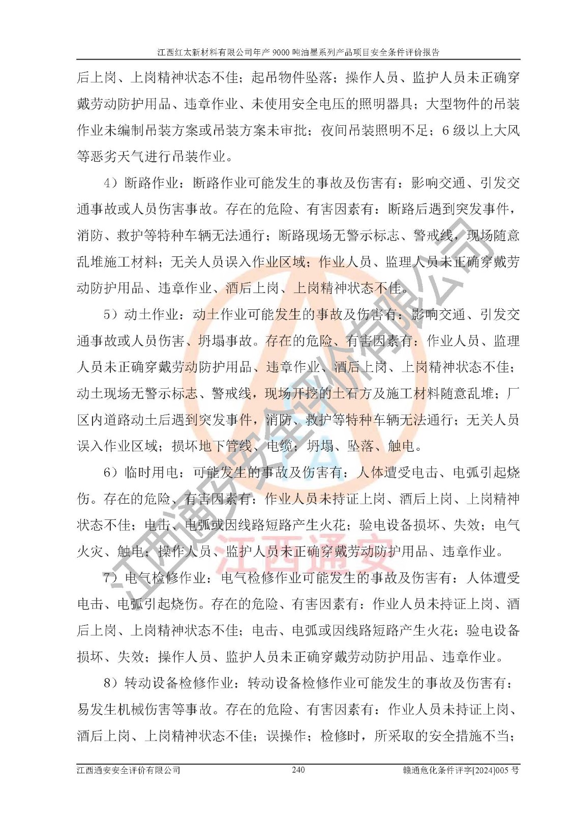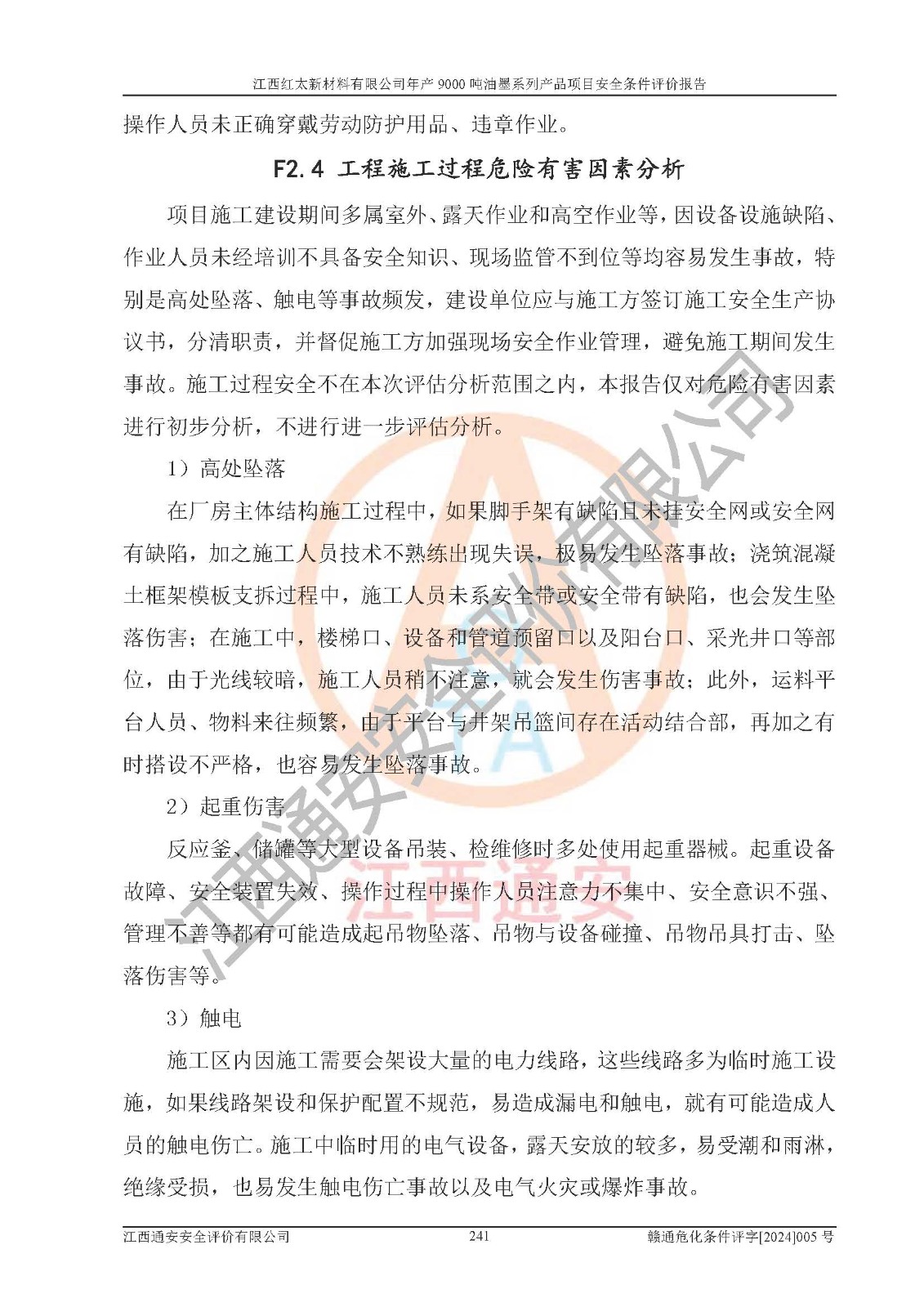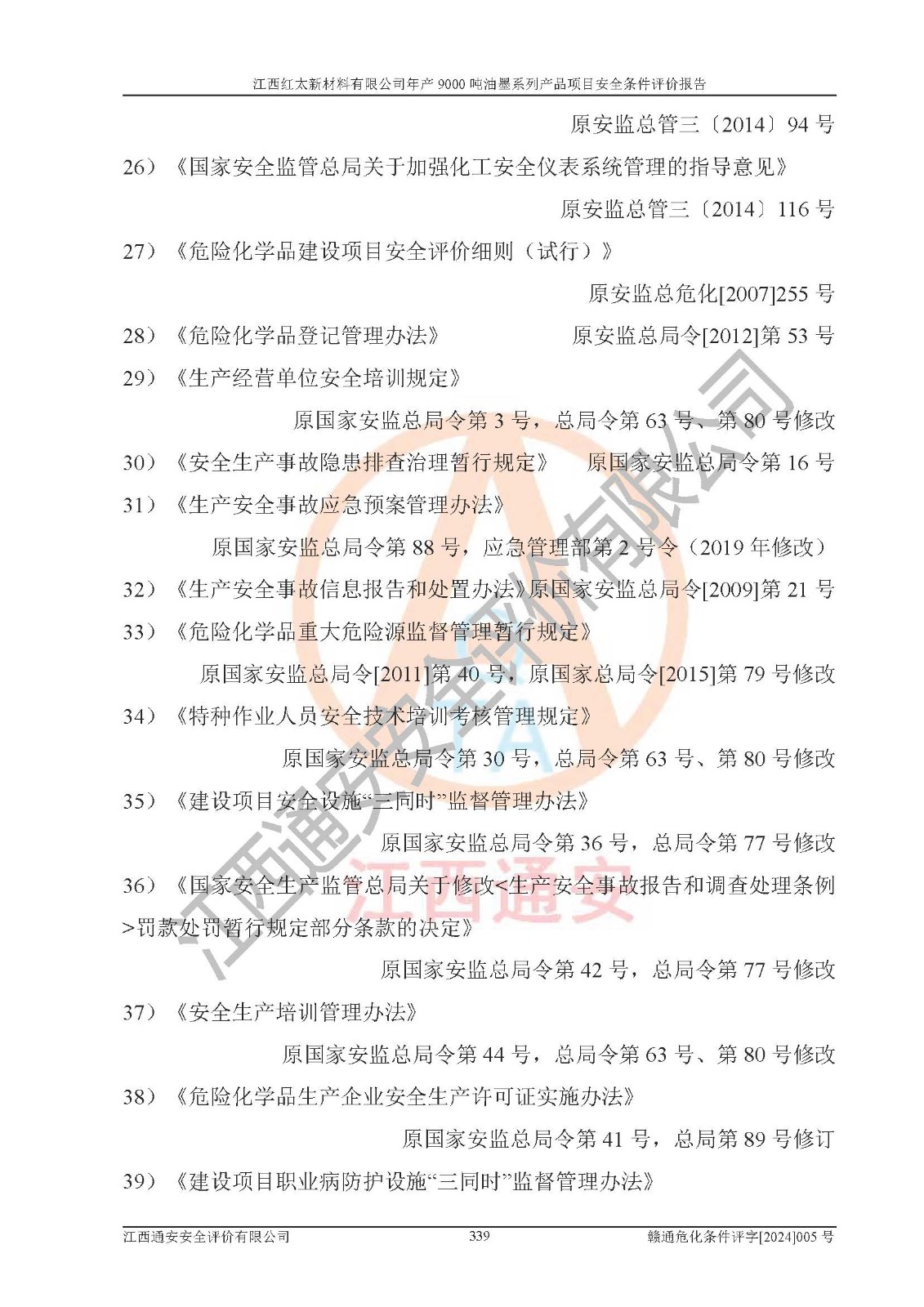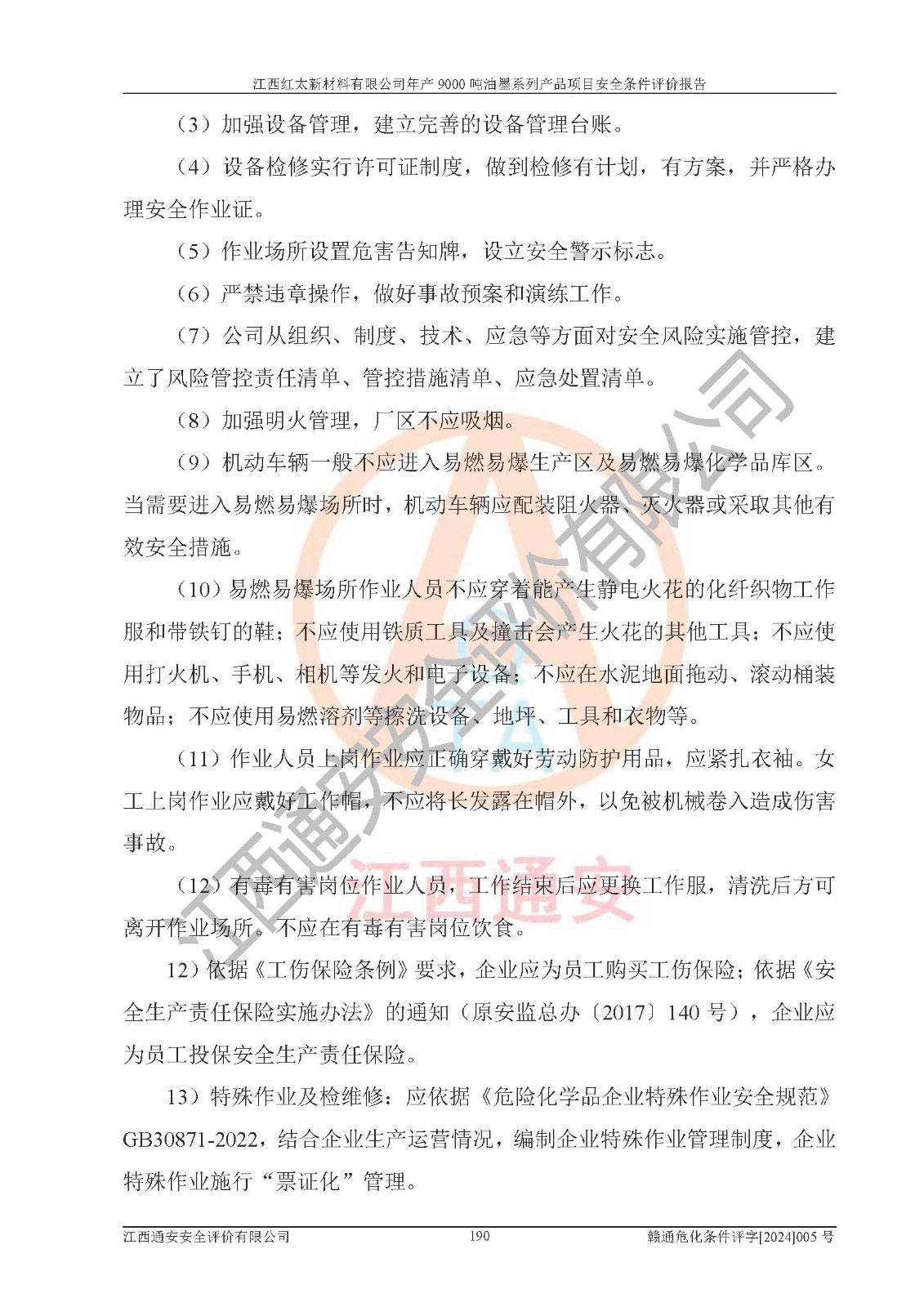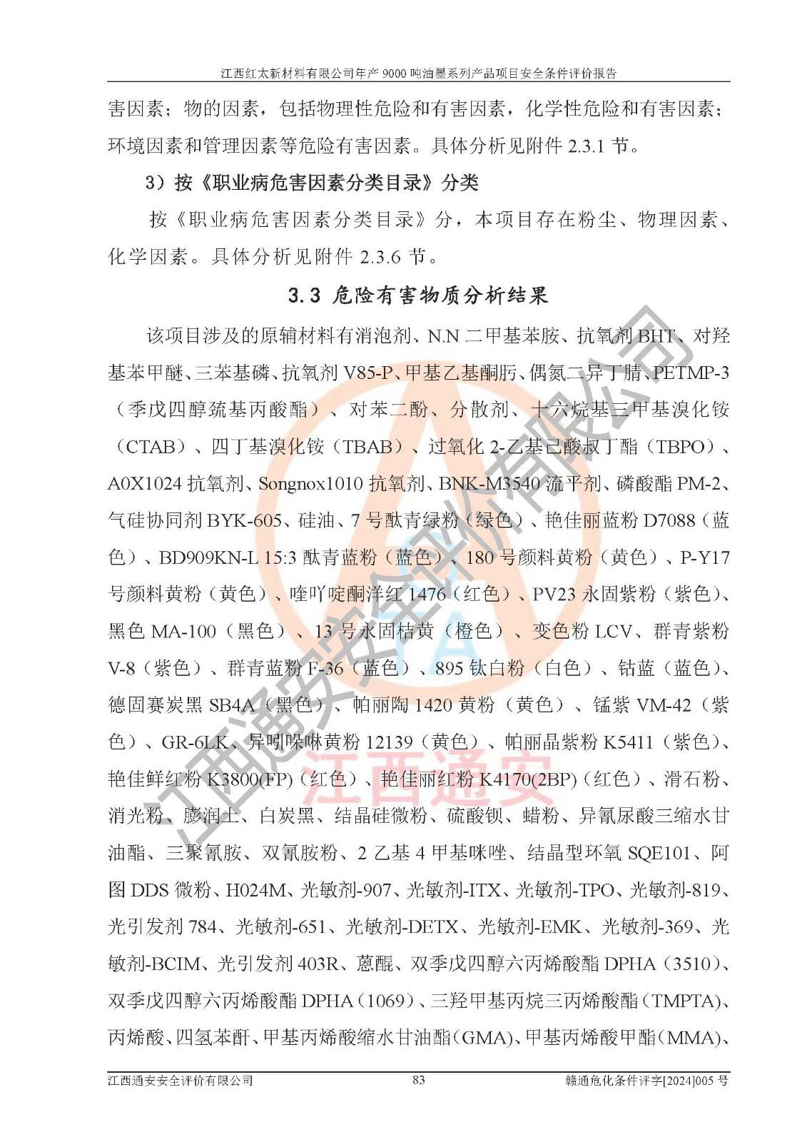 1)本項(xiàng)目依法取得了《江西省企業(yè)投資項(xiàng)目備案通知書》、《建設(shè)用地規(guī)劃許可證》,符合地方產(chǎn)業(yè)發(fā)展規(guī)劃的要求。 2)根據(jù)《**安全監(jiān)管總局關(guān)于公布首批重點(diǎn)監(jiān)管的危險(xiǎn)化工工藝目錄的通知》(安監(jiān)總管三[2009]116號(hào))和《**安全監(jiān)管總局關(guān)于公布第二批重點(diǎn)監(jiān)管危險(xiǎn)化工工藝目錄和調(diào)整首批重點(diǎn)監(jiān)管危險(xiǎn)化工工藝中部分典型工藝的通知》(安監(jiān)總管三[2013]3號(hào)),本項(xiàng)目聚合工藝為常壓條件生產(chǎn)工藝,故不列入危險(xiǎn)工藝。 3)根據(jù)《危險(xiǎn)化學(xué)品重大危險(xiǎn)源辨識(shí)》(GB18218-2018),該項(xiàng)目未構(gòu)成危險(xiǎn)化學(xué)品重大危險(xiǎn)源。 4)項(xiàng)目存在的主要危險(xiǎn)因素有:火災(zāi)爆炸、容器爆炸、中毒窒息、灼燙、觸電、**傷害、機(jī)械傷害、高處墜落、物體打擊、淹溺等,存在的主要危害因素有:噪聲與振動(dòng)、高溫、有害化學(xué)物質(zhì)等;引起事故的原因有人的不安全行為、物的不安全狀態(tài)、管理缺陷和環(huán)境不良。其中*主要的危險(xiǎn)有害因素是火災(zāi)爆炸。 5)采用預(yù)先危險(xiǎn)性分析法評(píng)價(jià),結(jié)果為: (1)通過預(yù)先危險(xiǎn)(PHA)分析可知,項(xiàng)目廠址及總體布局單元存在周邊環(huán)境相互影響,發(fā)生異常情況,可對(duì)周邊企業(yè)生產(chǎn)經(jīng)營(yíng)活動(dòng)、人員活動(dòng)產(chǎn)生影響;存在自然條件影響,可因雷擊、暴雨等引起事故;存在**傷害、建筑物危害,其固有的危險(xiǎn)性等級(jí)為Ⅱ級(jí),屬于“臨界的”,應(yīng)予以排除、采取控制措施因素。 (2)生產(chǎn)作業(yè)存在的危險(xiǎn)因素包括火災(zāi)爆炸、觸電、灼燙、中毒窒息固有的危險(xiǎn)等級(jí)為Ⅲ級(jí),屬于“危險(xiǎn)的”,可能導(dǎo)致人員傷亡和系統(tǒng)損壞的因素,需要采取防范和對(duì)策措施的因素;其它危險(xiǎn)因素固有的危險(xiǎn)等級(jí)為Ⅱ級(jí),屬于“臨界的”,應(yīng)予以排除、采取控制措施因素。 (3)生產(chǎn)作業(yè)存在的噪聲、粉塵、高溫、有害化學(xué)物質(zhì)的危險(xiǎn)有害因素等級(jí)為Ⅱ級(jí),屬于“臨界的”,應(yīng)予以排除、采取控制措施因素。 6)危險(xiǎn)度評(píng)價(jià)分析,結(jié)果為: 生產(chǎn)裝置危險(xiǎn)度評(píng)價(jià)分析:101甲類車間為**危險(xiǎn)(Ⅰ級(jí)),102丙類車間為中度危險(xiǎn)(Ⅱ級(jí))。 儲(chǔ)存單元危險(xiǎn)度評(píng)價(jià)分析:202甲類倉(cāng)庫(kù)為**危險(xiǎn)(Ⅰ級(jí)),201丙類倉(cāng)庫(kù)為低度危險(xiǎn)(Ⅲ級(jí)),203丙類罐區(qū)為中度危險(xiǎn)(Ⅱ級(jí))。 7)作業(yè)條件危險(xiǎn)性評(píng)價(jià)結(jié)果:在選定的評(píng)價(jià)單元中,其危險(xiǎn)分值均在70以下,危險(xiǎn)程度基本屬于“可能危險(xiǎn)”、“稍有危險(xiǎn)”范圍,作業(yè)條件相對(duì)安全。企業(yè)經(jīng)營(yíng)過程中首先應(yīng)重點(diǎn)加強(qiáng)對(duì)甲類生產(chǎn)車間、甲類倉(cāng)庫(kù)、儲(chǔ)罐區(qū)的危險(xiǎn)因素的嚴(yán)格控制,注重日常安全管理;其次要建立健全完善的安全生產(chǎn)責(zé)任制、安全管理制度、安全技術(shù)操作規(guī)程并**其貫徹落實(shí);第三要認(rèn)真抓好操作人員、管理人員的安全知識(shí)和操作技能的培訓(xùn),**人員具有與工程技術(shù)水平相適應(yīng)的技術(shù)素質(zhì)和安全素質(zhì),**安全作業(yè)。 8)項(xiàng)目建設(shè)場(chǎng)地符合當(dāng)?shù)匾?guī)劃要求,建設(shè)場(chǎng)地通過合理規(guī)劃,其選址、周邊環(huán)境、總平面布置、交通運(yùn)輸?shù)饶芊稀吨腥A人民共和國(guó)安全生產(chǎn)法》、《危險(xiǎn)化學(xué)品安全管理?xiàng)l例》、《建筑設(shè)計(jì)防火規(guī)范》、《精細(xì)化工企業(yè)工程設(shè)計(jì)防火標(biāo)準(zhǔn)》等法規(guī)、標(biāo)準(zhǔn)、規(guī)范要求。 廠址地區(qū)地震活動(dòng)相對(duì)較弱,災(zāi)害性天氣出現(xiàn)頻率稍高,自然災(zāi)害對(duì)項(xiàng)目建設(shè)具有**影響,通過采取相應(yīng)的防護(hù)措施,自然條件適宜建設(shè)。 9)建設(shè)項(xiàng)目符合**產(chǎn)業(yè)政策的要求;選擇工藝為現(xiàn)行成熟工藝,其安全可靠性可得到**。 10)本報(bào)告已根據(jù)有關(guān)安全生產(chǎn)法律、法規(guī)、規(guī)章和**標(biāo)準(zhǔn)、行業(yè)標(biāo)準(zhǔn),并嚴(yán)格執(zhí)行省委辦公廳省**辦公廳《關(guān)于全面加強(qiáng)危險(xiǎn)化學(xué)品安全生產(chǎn)工作的實(shí)施意見》(贛辦發(fā)[2020]32號(hào))及都陽(yáng)湖生態(tài)經(jīng)濟(jì)區(qū)、長(zhǎng)江經(jīng)濟(jì)帶、“五河一湖”相關(guān)政策規(guī)定,客觀、公正、科學(xué)地進(jìn)行安全評(píng)價(jià),項(xiàng)目符合《江西省應(yīng)急管理廳關(guān)于印發(fā)《江西省危險(xiǎn)化學(xué)品建設(shè)項(xiàng)目安全監(jiān)督管理實(shí)施細(xì)則》(試行)的通知》(贛應(yīng)急字[2021]100號(hào))的要求。 11)本報(bào)告結(jié)合工藝特征,提出應(yīng)采取的對(duì)應(yīng)的自動(dòng)化控制系統(tǒng)及自動(dòng)化實(shí)施方案,滿足《江西省應(yīng)急管理廳關(gu
