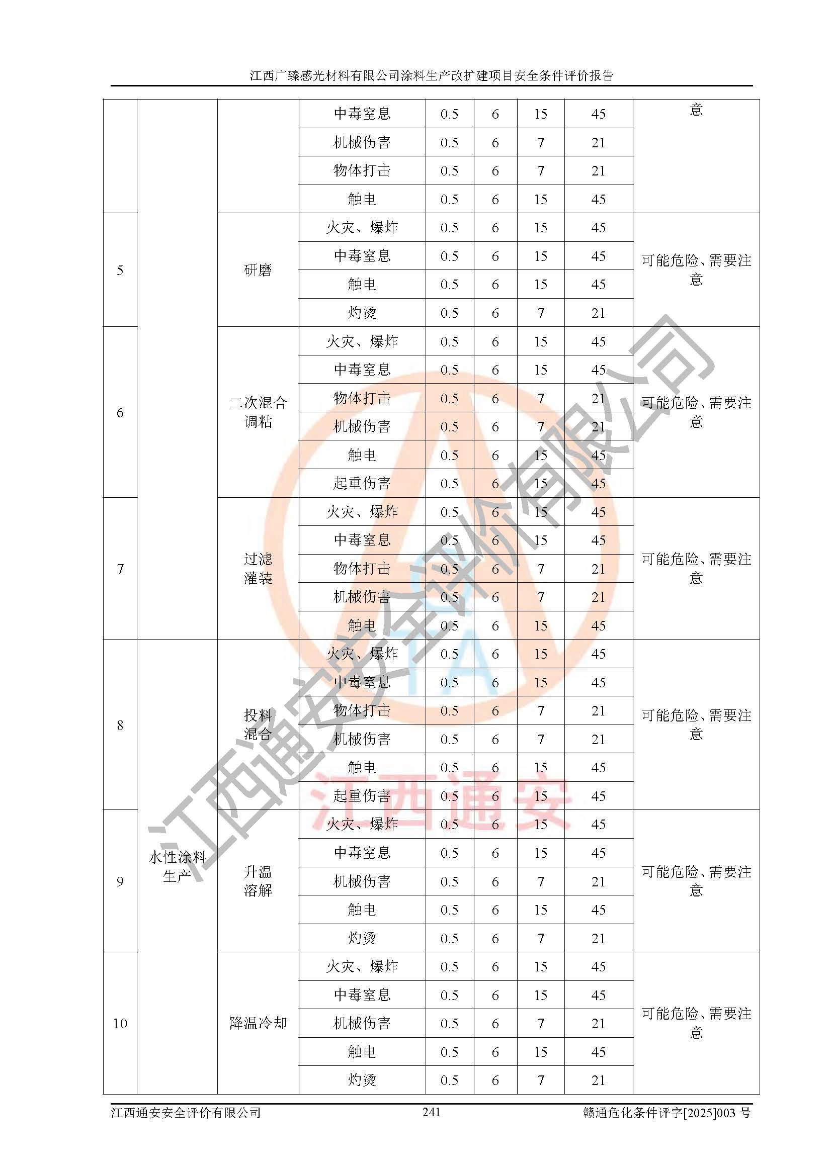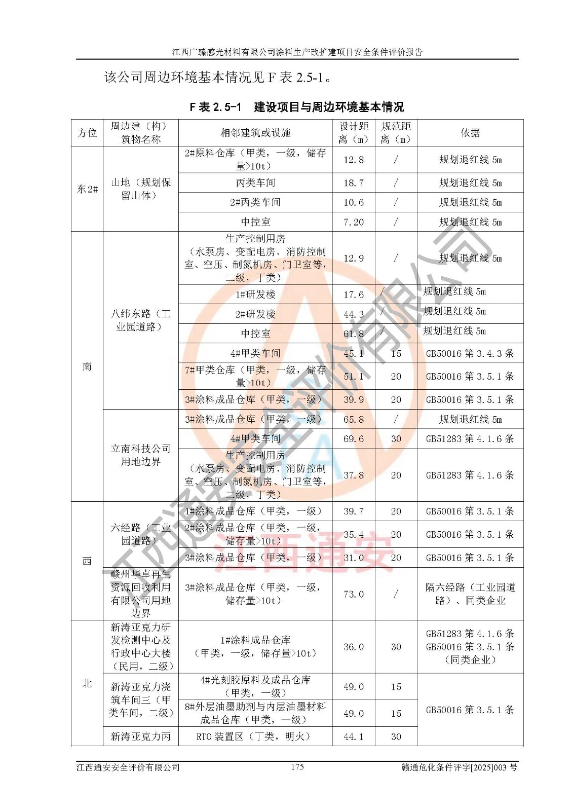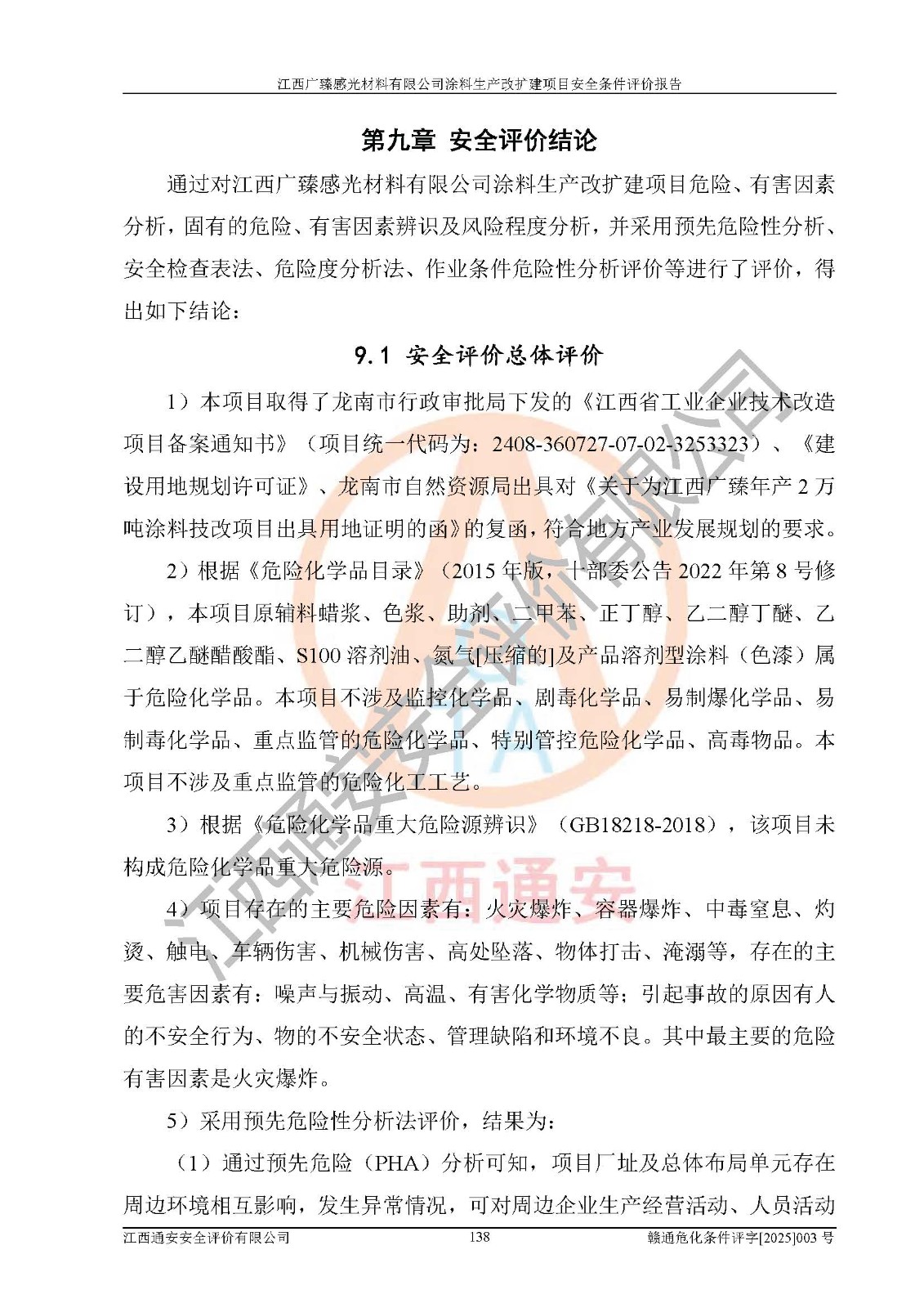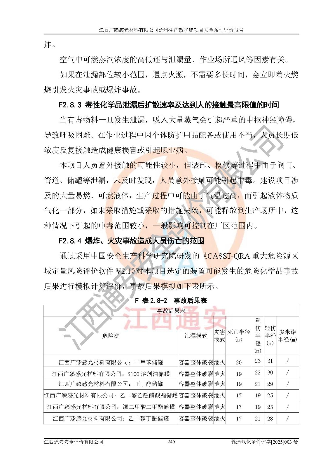 1)本項(xiàng)目取得了龍南市行政審批局下發(fā)的《江西省工業(yè)企業(yè)技術(shù)改造項(xiàng)目備案通知書》(項(xiàng)目統(tǒng)一代碼為:2408-360727-07-02-3253323)、《建設(shè)用地規(guī)劃許可證》、龍南市自然資源局出具對(duì)《關(guān)于為江西廣臻年產(chǎn)2萬噸涂料技改項(xiàng)目出具用地證明的函》的復(fù)函,符合地方產(chǎn)業(yè)發(fā)展規(guī)劃的要求。 2)根據(jù)《危險(xiǎn)化學(xué)品目錄》(2015年版,十部委公告2022年第8號(hào)修訂),本項(xiàng)目原輔料蠟漿、色漿、助劑、二甲苯、正丁醇、乙二醇丁醚、乙二醇乙醚醋酸酯、S100溶劑油、氮?dú)?/span>[壓縮的]及產(chǎn)品溶劑型涂料(色漆)屬于危險(xiǎn)化學(xué)品。本項(xiàng)目不涉及監(jiān)控化學(xué)品、劇毒化學(xué)品、易制爆化學(xué)品、易制毒化學(xué)品、重點(diǎn)監(jiān)管的危險(xiǎn)化學(xué)品、特別管控危險(xiǎn)化學(xué)品、高毒物品。本項(xiàng)目不涉及重點(diǎn)監(jiān)管的危險(xiǎn)化工工藝。 3)根據(jù)《危險(xiǎn)化學(xué)品重大危險(xiǎn)源辨識(shí)》(GB18218-2018),該項(xiàng)目未構(gòu)成危險(xiǎn)化學(xué)品重大危險(xiǎn)源。 4)項(xiàng)目存在的主要危險(xiǎn)因素有:火災(zāi)爆炸、容器爆炸、中毒窒息、灼燙、觸電、**傷害、機(jī)械傷害、高處墜落、物體打擊、淹溺等,存在的主要危害因素有:噪聲與振動(dòng)、高溫、有害化學(xué)物質(zhì)等;引起事故的原因有人的不安全行為、物的不安全狀態(tài)、管理缺陷和環(huán)境不良。其中*主要的危險(xiǎn)有害因素是火災(zāi)爆炸。 5)采用預(yù)先危險(xiǎn)性分析法評(píng)價(jià),結(jié)果為: (1)通過預(yù)先危險(xiǎn)(PHA)分析可知,項(xiàng)目廠址及總體布局單元存在周邊環(huán)境相互影響,發(fā)生異常情況,可對(duì)周邊企業(yè)生產(chǎn)經(jīng)營(yíng)活動(dòng)、人員活動(dòng)產(chǎn)生影響;存在自然條件影響,可因雷擊、暴雨等引起事故;存在**傷害、建筑物危害,其固有的危險(xiǎn)性等級(jí)為Ⅱ級(jí),屬于“臨界的”,應(yīng)予以排除、采取控制措施因素。 (2)生產(chǎn)作業(yè)存在的危險(xiǎn)因素包括火災(zāi)爆炸、觸電、灼燙、中毒窒息固有的危險(xiǎn)等級(jí)為Ⅲ級(jí),屬于“危險(xiǎn)的”,可能導(dǎo)致人員傷亡和系統(tǒng)損壞的因素,需要采取防范和對(duì)策措施的因素;其它危險(xiǎn)因素固有的危險(xiǎn)等級(jí)為Ⅱ級(jí),屬于“臨界的”,應(yīng)予以排除、采取控制措施因素。 (3)生產(chǎn)作業(yè)存在的噪聲、粉塵、高溫、有害化學(xué)物質(zhì)的危險(xiǎn)有害因素等級(jí)為Ⅱ級(jí),屬于“臨界的”,應(yīng)予以排除、采取控制措施因素。 6)危險(xiǎn)度評(píng)價(jià)分析,結(jié)果為: 生產(chǎn)裝置危險(xiǎn)度評(píng)價(jià)分析:3#甲類車間為中度危險(xiǎn)(Ⅱ級(jí))。 儲(chǔ)存單元危險(xiǎn)度評(píng)價(jià)分析:1#涂料成品倉庫為**危險(xiǎn)(Ⅰ級(jí))、5#涂料原料倉庫為**危險(xiǎn)(Ⅰ級(jí))、6#涂料原料倉庫為中度危險(xiǎn)(Ⅱ級(jí))、7#涂料原料倉庫為中度危險(xiǎn)(Ⅱ級(jí))、9#危廢倉庫為中度危險(xiǎn)(Ⅱ級(jí))、2#丙類原料倉庫為中度危險(xiǎn)(Ⅱ級(jí))、甲類罐區(qū)為**危險(xiǎn)(Ⅰ級(jí))。 7)作業(yè)條件危險(xiǎn)性評(píng)價(jià)結(jié)果:在選定的評(píng)價(jià)單元中,其危險(xiǎn)分值均在70以下,危險(xiǎn)程度基本屬于“可能危險(xiǎn)”、“稍有危險(xiǎn)”范圍,作業(yè)條件相對(duì)安全。企業(yè)經(jīng)營(yíng)過程中首先應(yīng)重點(diǎn)加強(qiáng)對(duì)甲類生產(chǎn)車間、甲類倉庫、儲(chǔ)罐區(qū)的危險(xiǎn)因素的嚴(yán)格控制,注重日常安全管理;其次要建立健全完善的安全生產(chǎn)責(zé)任制、安全管理制度、安全技術(shù)操作規(guī)程并**其貫徹落實(shí);第三要認(rèn)真抓好操作人員、管理人員的安全知識(shí)和操作技能的培訓(xùn),**人員具有與工程技術(shù)水平相適應(yīng)的技術(shù)素質(zhì)和安全素質(zhì),**安全作業(yè)。 8)項(xiàng)目建設(shè)場(chǎng)地符合當(dāng)?shù)匾?guī)劃要求,建設(shè)場(chǎng)地通過合理規(guī)劃,其選址、周邊環(huán)境、總平面布置、交通運(yùn)輸?shù)饶芊稀吨腥A人民共和國安全生產(chǎn)法》《危險(xiǎn)化學(xué)品安全管理?xiàng)l例》《建筑設(shè)計(jì)防火規(guī)范》《精細(xì)化工企業(yè)工程設(shè)計(jì)防火標(biāo)準(zhǔn)》等法規(guī)、標(biāo)準(zhǔn)、規(guī)范要求。 廠址地區(qū)地震活動(dòng)相對(duì)較弱,災(zāi)害性天氣出現(xiàn)頻率稍高,自然災(zāi)害對(duì)項(xiàng)目建設(shè)具有**影響,通過采取相應(yīng)的防護(hù)措施,自然條件適宜建設(shè)。 9)建設(shè)項(xiàng)目符合**產(chǎn)業(yè)政策的要求;選擇工藝為現(xiàn)行成熟工藝,其安全可靠性可得到**。 10)本報(bào)告已根據(jù)有關(guān)安全生產(chǎn)法律、法規(guī)、規(guī)章和**標(biāo)準(zhǔn)、行業(yè)標(biāo)準(zhǔn),并嚴(yán)格執(zhí)行省委辦公廳省**辦公廳《關(guān)于全面加強(qiáng)危險(xiǎn)化學(xué)品安全生產(chǎn)工作的實(shí)施意見》(贛辦發(fā)[2020]32號(hào))及鄱陽湖生態(tài)經(jīng)濟(jì)區(qū)、長(zhǎng)江經(jīng)濟(jì)帶、“五河一湖”相關(guān)政策規(guī)定,客觀
