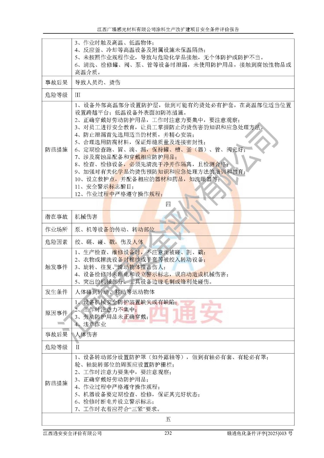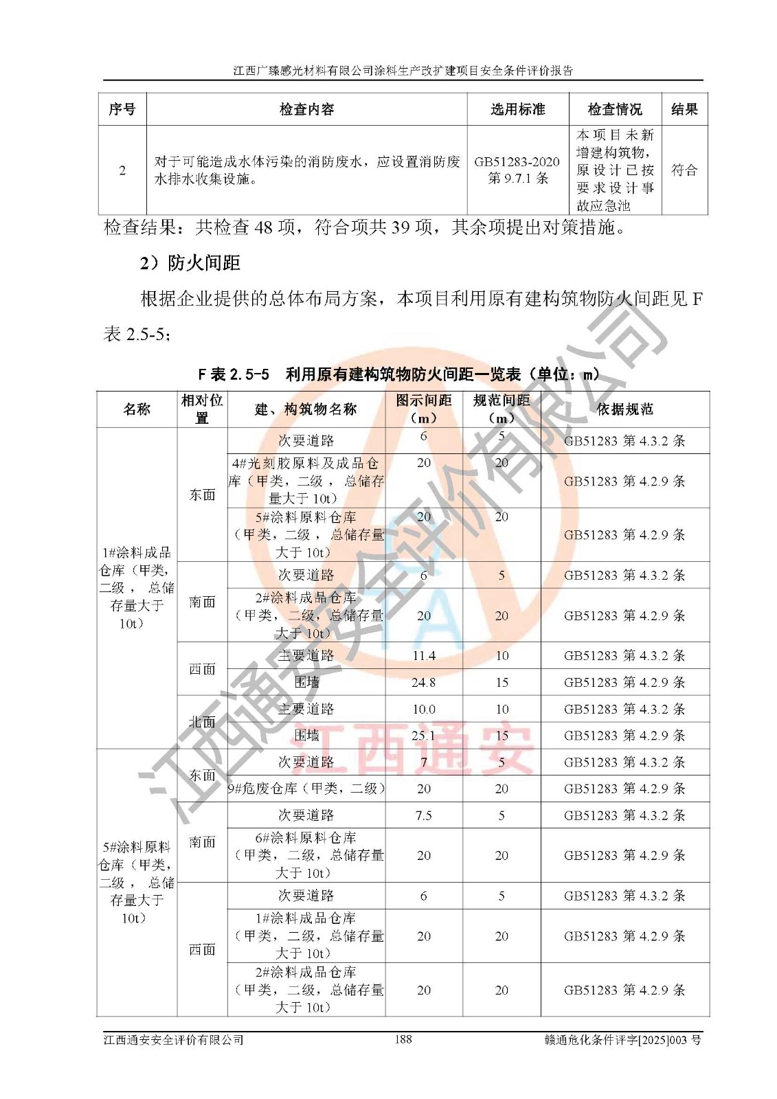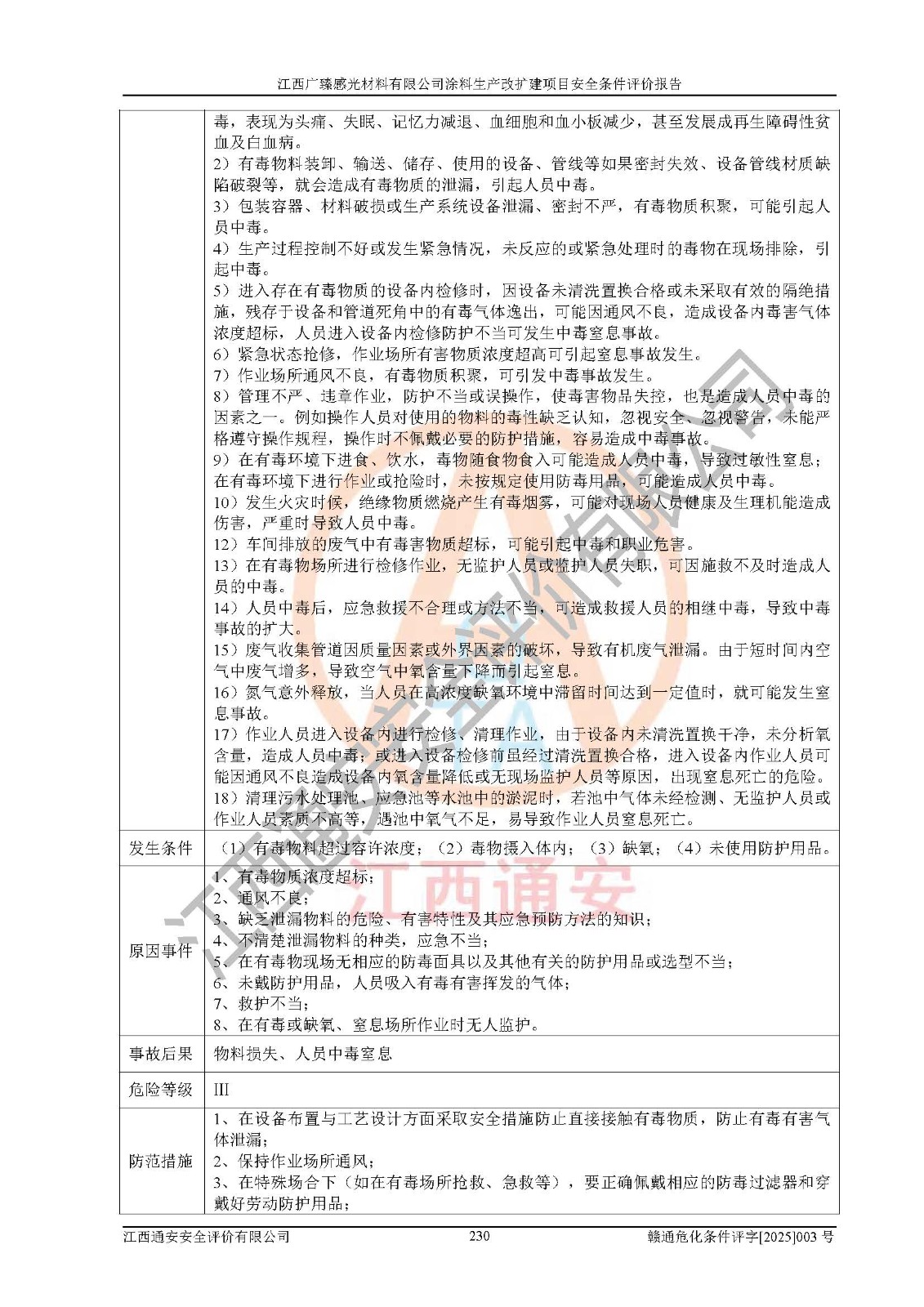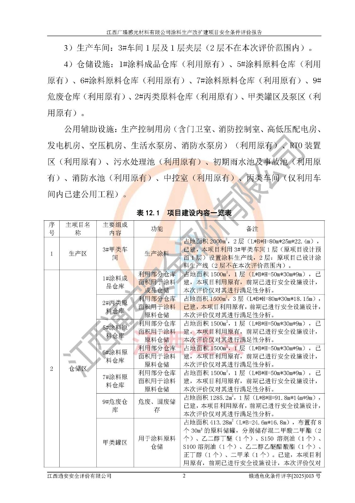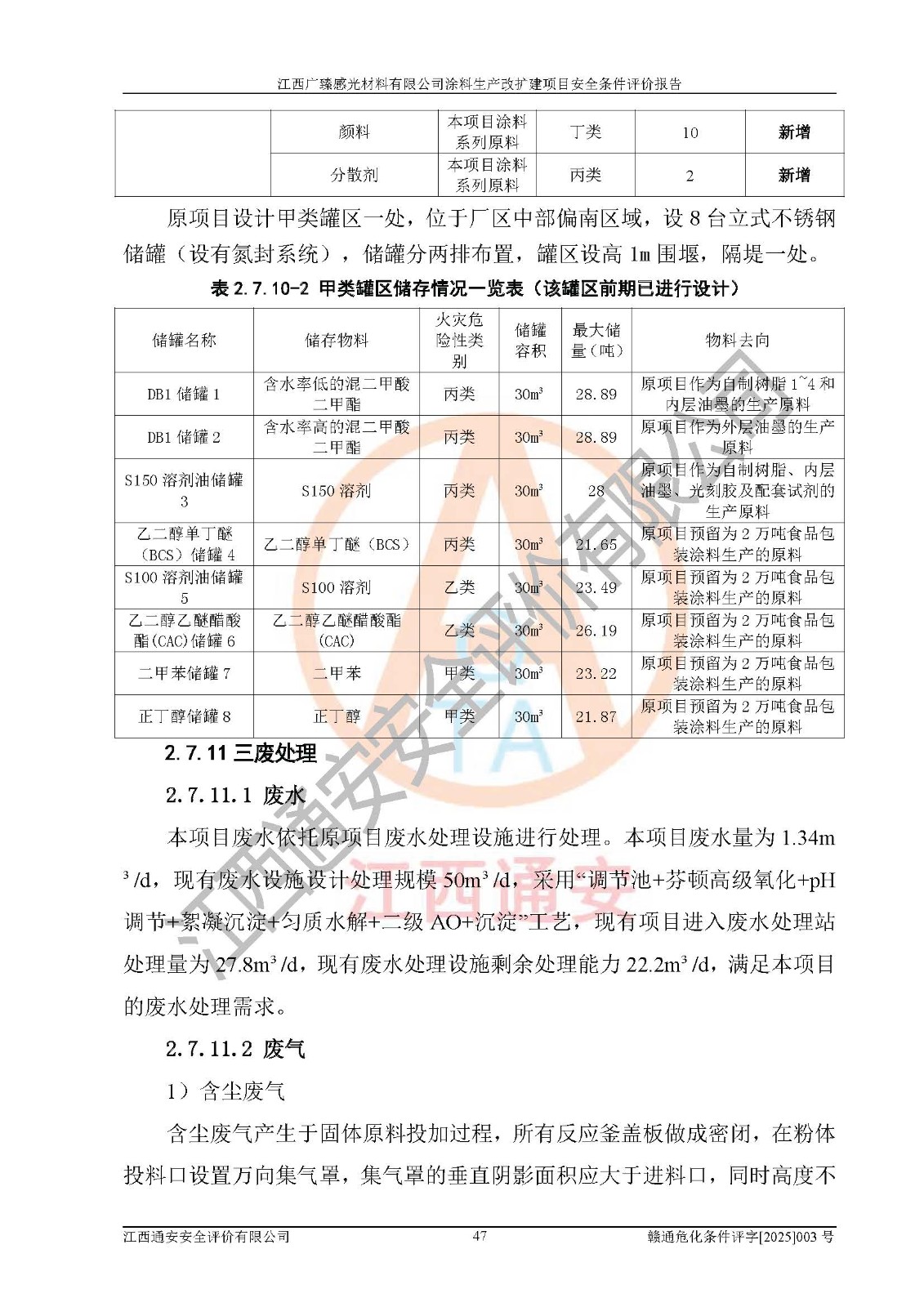 1)本項(xiàng)目取得了龍南市行政審批局下發(fā)的《江西省工業(yè)企業(yè)技術(shù)改造項(xiàng)目備案通知書》(項(xiàng)目統(tǒng)一代碼為:2408-360727-07-02-3253323)、《建設(shè)用地規(guī)劃許可證》、龍南市自然資源局出具對(duì)《關(guān)于為江西廣臻年產(chǎn)2萬噸涂料技改項(xiàng)目出具用地證明的函》的復(fù)函,符合地方產(chǎn)業(yè)發(fā)展規(guī)劃的要求。 2)根據(jù)《危險(xiǎn)化學(xué)品目錄》(2015年版,十部委公告2022年第8號(hào)修訂),本項(xiàng)目原輔料蠟漿、色漿、助劑、二甲苯、正丁醇、乙二醇丁醚、乙二醇乙醚醋酸酯、S100溶劑油、氮?dú)?/span>[壓縮的]及產(chǎn)品溶劑型涂料(色漆)屬于危險(xiǎn)化學(xué)品。本項(xiàng)目不涉及監(jiān)控化學(xué)品、劇毒化學(xué)品、易制爆化學(xué)品、易制毒化學(xué)品、重點(diǎn)監(jiān)管的危險(xiǎn)化學(xué)品、特別管控危險(xiǎn)化學(xué)品、高毒物品。本項(xiàng)目不涉及重點(diǎn)監(jiān)管的危險(xiǎn)化工工藝。 3)根據(jù)《危險(xiǎn)化學(xué)品重大危險(xiǎn)源辨識(shí)》(GB18218-2018),該項(xiàng)目未構(gòu)成危險(xiǎn)化學(xué)品重大危險(xiǎn)源。 4)項(xiàng)目存在的主要危險(xiǎn)因素有:火災(zāi)爆炸、容器爆炸、中毒窒息、灼燙、觸電、**傷害、機(jī)械傷害、高處墜落、物體打擊、淹溺等,存在的主要危害因素有:噪聲與振動(dòng)、高溫、有害化學(xué)物質(zhì)等;引起事故的原因有人的不安全行為、物的不安全狀態(tài)、管理缺陷和環(huán)境不良。其中*主要的危險(xiǎn)有害因素是火災(zāi)爆炸。 5)采用預(yù)先危險(xiǎn)性分析法評(píng)價(jià),結(jié)果為: (1)通過預(yù)先危險(xiǎn)(PHA)分析可知,項(xiàng)目廠址及總體布局單元存在周邊環(huán)境相互影響,發(fā)生異常情況,可對(duì)周邊企業(yè)生產(chǎn)經(jīng)營(yíng)活動(dòng)、人員活動(dòng)產(chǎn)生影響;存在自然條件影響,可因雷擊、暴雨等引起事故;存在**傷害、建筑物危害,其固有的危險(xiǎn)性等級(jí)為Ⅱ級(jí),屬于“臨界的”,應(yīng)予以排除、采取控制措施因素。 (2)生產(chǎn)作業(yè)存在的危險(xiǎn)因素包括火災(zāi)爆炸、觸電、灼燙、中毒窒息固有的危險(xiǎn)等級(jí)為Ⅲ級(jí),屬于“危險(xiǎn)的”,可能導(dǎo)致人員傷亡和系統(tǒng)損壞的因素,需要采取防范和對(duì)策措施的因素;其它危險(xiǎn)因素固有的危險(xiǎn)等級(jí)為Ⅱ級(jí),屬于“臨界的”,應(yīng)予以排除、采取控制措施因素。 (3)生產(chǎn)作業(yè)存在的噪聲、粉塵、高溫、有害化學(xué)物質(zhì)的危險(xiǎn)有害因素等級(jí)為Ⅱ級(jí),屬于“臨界的”,應(yīng)予以排除、采取控制措施因素。 6)危險(xiǎn)度評(píng)價(jià)分析,結(jié)果為: 生產(chǎn)裝置危險(xiǎn)度評(píng)價(jià)分析:3#甲類車間為中度危險(xiǎn)(Ⅱ級(jí))。 儲(chǔ)存單元危險(xiǎn)度評(píng)價(jià)分析:1#涂料成品倉庫為**危險(xiǎn)(Ⅰ級(jí))、5#涂料原料倉庫為**危險(xiǎn)(Ⅰ級(jí))、6#涂料原料倉庫為中度危險(xiǎn)(Ⅱ級(jí))、7#涂料原料倉庫為中度危險(xiǎn)(Ⅱ級(jí))、9#危廢倉庫為中度危險(xiǎn)(Ⅱ級(jí))、2#丙類原料倉庫為中度危險(xiǎn)(Ⅱ級(jí))、甲類罐區(qū)為**危險(xiǎn)(Ⅰ級(jí))。 7)作業(yè)條件危險(xiǎn)性評(píng)價(jià)結(jié)果:在選定的評(píng)價(jià)單元中,其危險(xiǎn)分值均在70以下,危險(xiǎn)程度基本屬于“可能危險(xiǎn)”、“稍有危險(xiǎn)”范圍,作業(yè)條件相對(duì)安全。企業(yè)經(jīng)營(yíng)過程中首先應(yīng)重點(diǎn)加強(qiáng)對(duì)甲類生產(chǎn)車間、甲類倉庫、儲(chǔ)罐區(qū)的危險(xiǎn)因素的嚴(yán)格控制,注重日常安全管理;其次要建立健全完善的安全生產(chǎn)責(zé)任制、安全管理制度、安全技術(shù)操作規(guī)程并**其貫徹落實(shí);第三要認(rèn)真抓好操作人員、管理人員的安全知識(shí)和操作技能的培訓(xùn),**人員具有與工程技術(shù)水平相適應(yīng)的技術(shù)素質(zhì)和安全素質(zhì),**安全作業(yè)。 8)項(xiàng)目建設(shè)場(chǎng)地符合當(dāng)?shù)匾?guī)劃要求,建設(shè)場(chǎng)地通過合理規(guī)劃,其選址、周邊環(huán)境、總平面布置、交通運(yùn)輸?shù)饶芊稀吨腥A人民共和國安全生產(chǎn)法》《危險(xiǎn)化學(xué)品安全管理?xiàng)l例》《建筑設(shè)計(jì)防火規(guī)范》《精細(xì)化工企業(yè)工程設(shè)計(jì)防火標(biāo)準(zhǔn)》等法規(guī)、標(biāo)準(zhǔn)、規(guī)范要求。 廠址地區(qū)地震活動(dòng)相對(duì)較弱,災(zāi)害性天氣出現(xiàn)頻率稍高,自然災(zāi)害對(duì)項(xiàng)目建設(shè)具有**影響,通過采取相應(yīng)的防護(hù)措施,自然條件適宜建設(shè)。 9)建設(shè)項(xiàng)目符合**產(chǎn)業(yè)政策的要求;選擇工藝為現(xiàn)行成熟工藝,其安全可靠性可得到**。 10)本報(bào)告已根據(jù)有關(guān)安全生產(chǎn)法律、法規(guī)、規(guī)章和**標(biāo)準(zhǔn)、行業(yè)標(biāo)準(zhǔn),并嚴(yán)格執(zhí)行省委辦公廳省**辦公廳《關(guān)于全面加強(qiáng)危險(xiǎn)化學(xué)品安全生產(chǎn)工作的實(shí)施意見》(贛辦發(fā)[2020]32號(hào))及鄱陽湖生態(tài)經(jīng)濟(jì)區(qū)、長(zhǎng)江經(jīng)濟(jì)帶、“五河一湖”相關(guān)政策規(guī)定,客觀