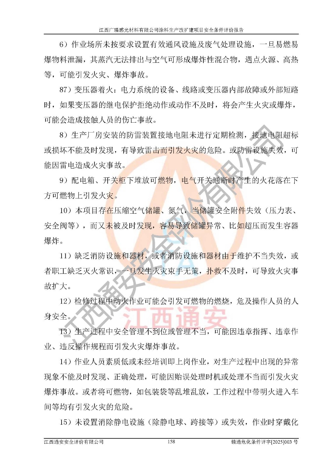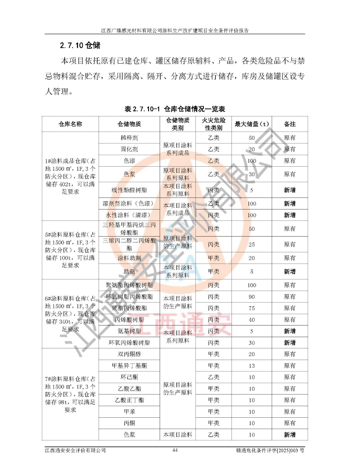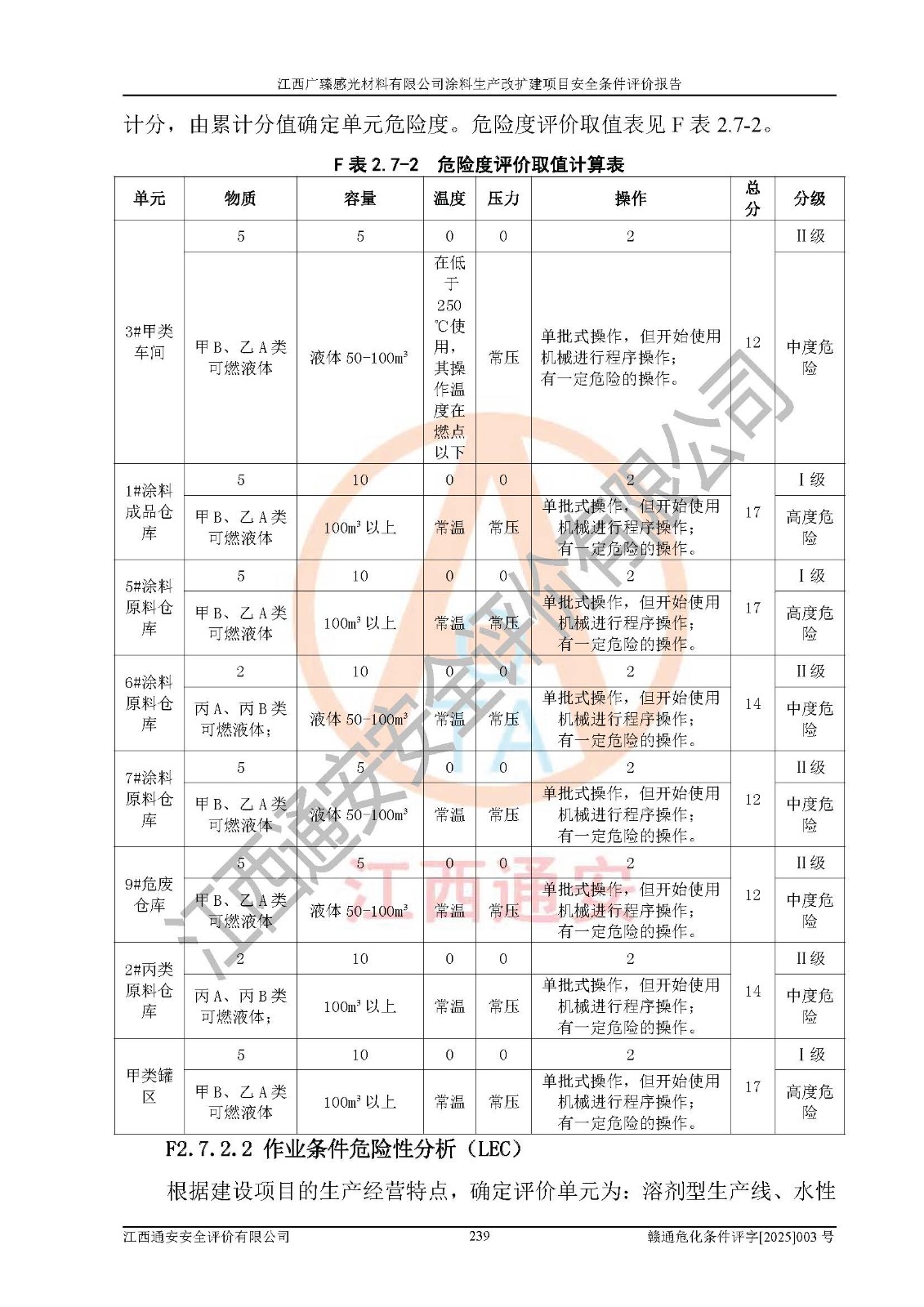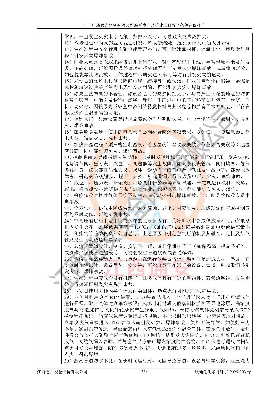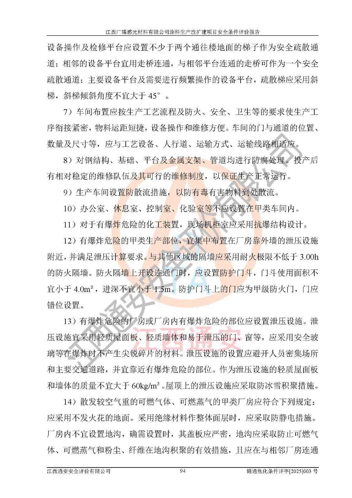 1)本項(xiàng)目取得了龍南市行政審批局下發(fā)的《江西省工業(yè)企業(yè)技術(shù)改造項(xiàng)目備案通知書》(項(xiàng)目統(tǒng)一代碼為:2408-360727-07-02-3253323)、《建設(shè)用地規(guī)劃許可證》、龍南市自然資源局出具對(duì)《關(guān)于為江西廣臻年產(chǎn)2萬噸涂料技改項(xiàng)目出具用地證明的函》的復(fù)函,符合地方產(chǎn)業(yè)發(fā)展規(guī)劃的要求。 2)根據(jù)《危險(xiǎn)化學(xué)品目錄》(2015年版,十部委公告2022年第8號(hào)修訂),本項(xiàng)目原輔料蠟漿、色漿、助劑、二甲苯、正丁醇、乙二醇丁醚、乙二醇乙醚醋酸酯、S100溶劑油、氮?dú)?/span>[壓縮的]及產(chǎn)品溶劑型涂料(色漆)屬于危險(xiǎn)化學(xué)品。本項(xiàng)目不涉及監(jiān)控化學(xué)品、劇毒化學(xué)品、易制爆化學(xué)品、易制毒化學(xué)品、重點(diǎn)監(jiān)管的危險(xiǎn)化學(xué)品、特別管控危險(xiǎn)化學(xué)品、高毒物品。本項(xiàng)目不涉及重點(diǎn)監(jiān)管的危險(xiǎn)化工工藝。 3)根據(jù)《危險(xiǎn)化學(xué)品重大危險(xiǎn)源辨識(shí)》(GB18218-2018),該項(xiàng)目未構(gòu)成危險(xiǎn)化學(xué)品重大危險(xiǎn)源。 4)項(xiàng)目存在的主要危險(xiǎn)因素有:火災(zāi)爆炸、容器爆炸、中毒窒息、灼燙、觸電、**傷害、機(jī)械傷害、高處墜落、物體打擊、淹溺等,存在的主要危害因素有:噪聲與振動(dòng)、高溫、有害化學(xué)物質(zhì)等;引起事故的原因有人的不安全行為、物的不安全狀態(tài)、管理缺陷和環(huán)境不良。其中*主要的危險(xiǎn)有害因素是火災(zāi)爆炸。 5)采用預(yù)先危險(xiǎn)性分析法評(píng)價(jià),結(jié)果為: (1)通過預(yù)先危險(xiǎn)(PHA)分析可知,項(xiàng)目廠址及總體布局單元存在周邊環(huán)境相互影響,發(fā)生異常情況,可對(duì)周邊企業(yè)生產(chǎn)經(jīng)營(yíng)活動(dòng)、人員活動(dòng)產(chǎn)生影響;存在自然條件影響,可因雷擊、暴雨等引起事故;存在**傷害、建筑物危害,其固有的危險(xiǎn)性等級(jí)為Ⅱ級(jí),屬于“臨界的”,應(yīng)予以排除、采取控制措施因素。 (2)生產(chǎn)作業(yè)存在的危險(xiǎn)因素包括火災(zāi)爆炸、觸電、灼燙、中毒窒息固有的危險(xiǎn)等級(jí)為Ⅲ級(jí),屬于“危險(xiǎn)的”,可能導(dǎo)致人員傷亡和系統(tǒng)損壞的因素,需要采取防范和對(duì)策措施的因素;其它危險(xiǎn)因素固有的危險(xiǎn)等級(jí)為Ⅱ級(jí),屬于“臨界的”,應(yīng)予以排除、采取控制措施因素。 (3)生產(chǎn)作業(yè)存在的噪聲、粉塵、高溫、有害化學(xué)物質(zhì)的危險(xiǎn)有害因素等級(jí)為Ⅱ級(jí),屬于“臨界的”,應(yīng)予以排除、采取控制措施因素。 6)危險(xiǎn)度評(píng)價(jià)分析,結(jié)果為: 生產(chǎn)裝置危險(xiǎn)度評(píng)價(jià)分析:3#甲類車間為中度危險(xiǎn)(Ⅱ級(jí))。 儲(chǔ)存單元危險(xiǎn)度評(píng)價(jià)分析:1#涂料成品倉庫為**危險(xiǎn)(Ⅰ級(jí))、5#涂料原料倉庫為**危險(xiǎn)(Ⅰ級(jí))、6#涂料原料倉庫為中度危險(xiǎn)(Ⅱ級(jí))、7#涂料原料倉庫為中度危險(xiǎn)(Ⅱ級(jí))、9#危廢倉庫為中度危險(xiǎn)(Ⅱ級(jí))、2#丙類原料倉庫為中度危險(xiǎn)(Ⅱ級(jí))、甲類罐區(qū)為**危險(xiǎn)(Ⅰ級(jí))。 7)作業(yè)條件危險(xiǎn)性評(píng)價(jià)結(jié)果:在選定的評(píng)價(jià)單元中,其危險(xiǎn)分值均在70以下,危險(xiǎn)程度基本屬于“可能危險(xiǎn)”、“稍有危險(xiǎn)”范圍,作業(yè)條件相對(duì)安全。企業(yè)經(jīng)營(yíng)過程中首先應(yīng)重點(diǎn)加強(qiáng)對(duì)甲類生產(chǎn)車間、甲類倉庫、儲(chǔ)罐區(qū)的危險(xiǎn)因素的嚴(yán)格控制,注重日常安全管理;其次要建立健全完善的安全生產(chǎn)責(zé)任制、安全管理制度、安全技術(shù)操作規(guī)程并**其貫徹落實(shí);第三要認(rèn)真抓好操作人員、管理人員的安全知識(shí)和操作技能的培訓(xùn),**人員具有與工程技術(shù)水平相適應(yīng)的技術(shù)素質(zhì)和安全素質(zhì),**安全作業(yè)。 8)項(xiàng)目建設(shè)場(chǎng)地符合當(dāng)?shù)匾?guī)劃要求,建設(shè)場(chǎng)地通過合理規(guī)劃,其選址、周邊環(huán)境、總平面布置、交通運(yùn)輸?shù)饶芊稀吨腥A人民共和國安全生產(chǎn)法》《危險(xiǎn)化學(xué)品安全管理?xiàng)l例》《建筑設(shè)計(jì)防火規(guī)范》《精細(xì)化工企業(yè)工程設(shè)計(jì)防火標(biāo)準(zhǔn)》等法規(guī)、標(biāo)準(zhǔn)、規(guī)范要求。 廠址地區(qū)地震活動(dòng)相對(duì)較弱,災(zāi)害性天氣出現(xiàn)頻率稍高,自然災(zāi)害對(duì)項(xiàng)目建設(shè)具有**影響,通過采取相應(yīng)的防護(hù)措施,自然條件適宜建設(shè)。 9)建設(shè)項(xiàng)目符合**產(chǎn)業(yè)政策的要求;選擇工藝為現(xiàn)行成熟工藝,其安全可靠性可得到**。 10)本報(bào)告已根據(jù)有關(guān)安全生產(chǎn)法律、法規(guī)、規(guī)章和**標(biāo)準(zhǔn)、行業(yè)標(biāo)準(zhǔn),并嚴(yán)格執(zhí)行省委辦公廳省**辦公廳《關(guān)于全面加強(qiáng)危險(xiǎn)化學(xué)品安全生產(chǎn)工作的實(shí)施意見》(贛辦發(fā)[2020]32號(hào))及鄱陽湖生態(tài)經(jīng)濟(jì)區(qū)、長(zhǎng)江經(jīng)濟(jì)帶、“五河一湖”相關(guān)政策規(guī)定,客觀
