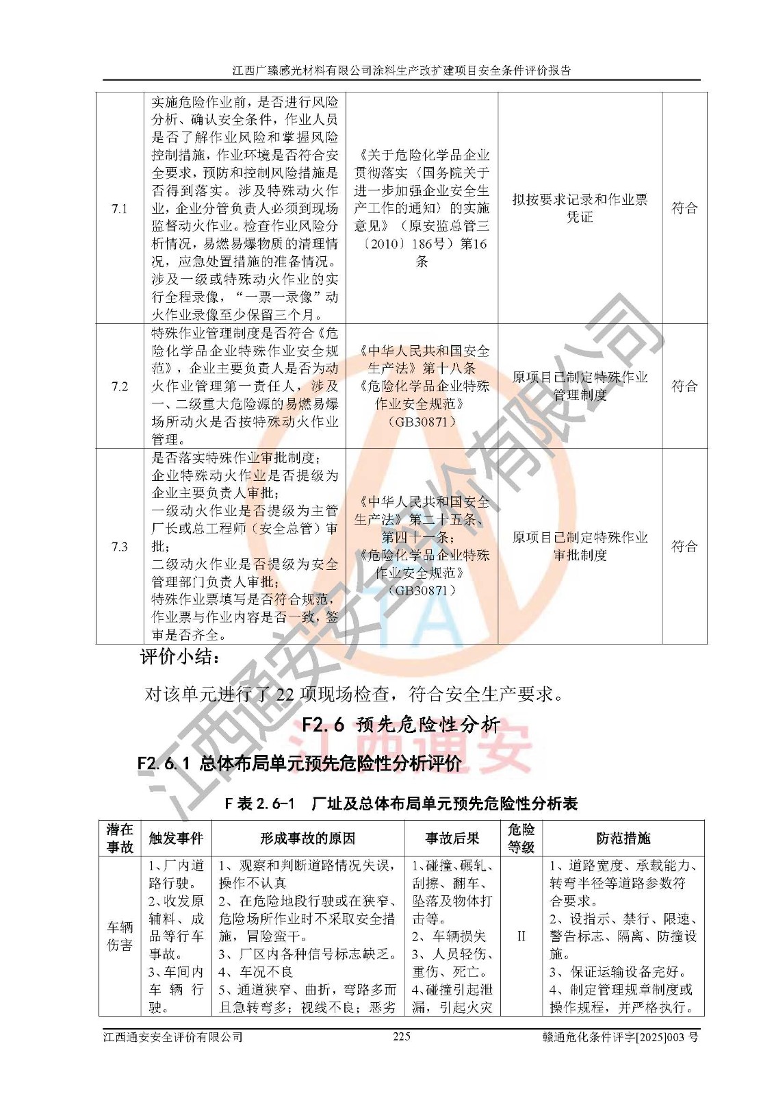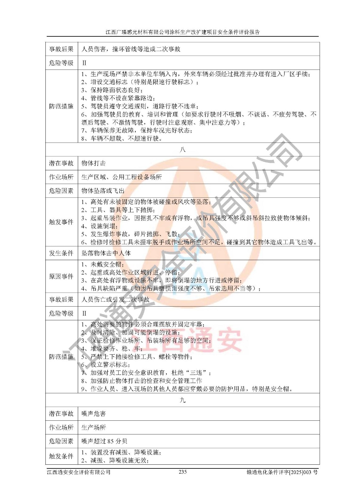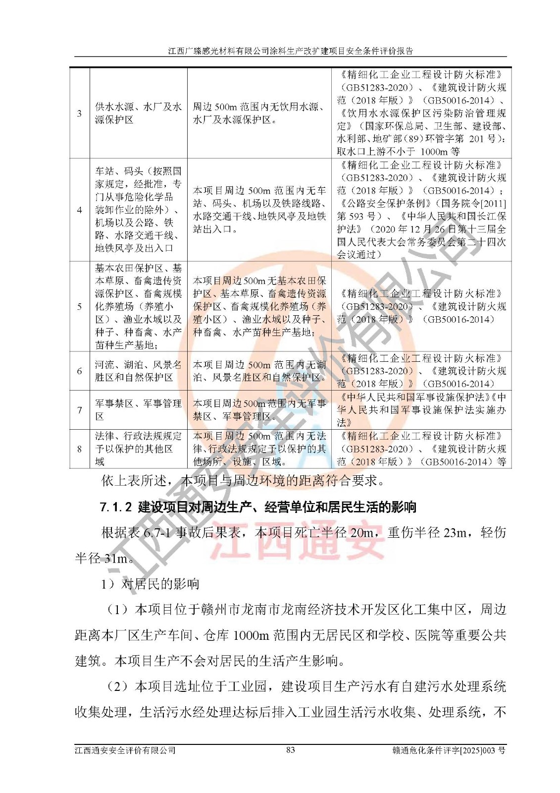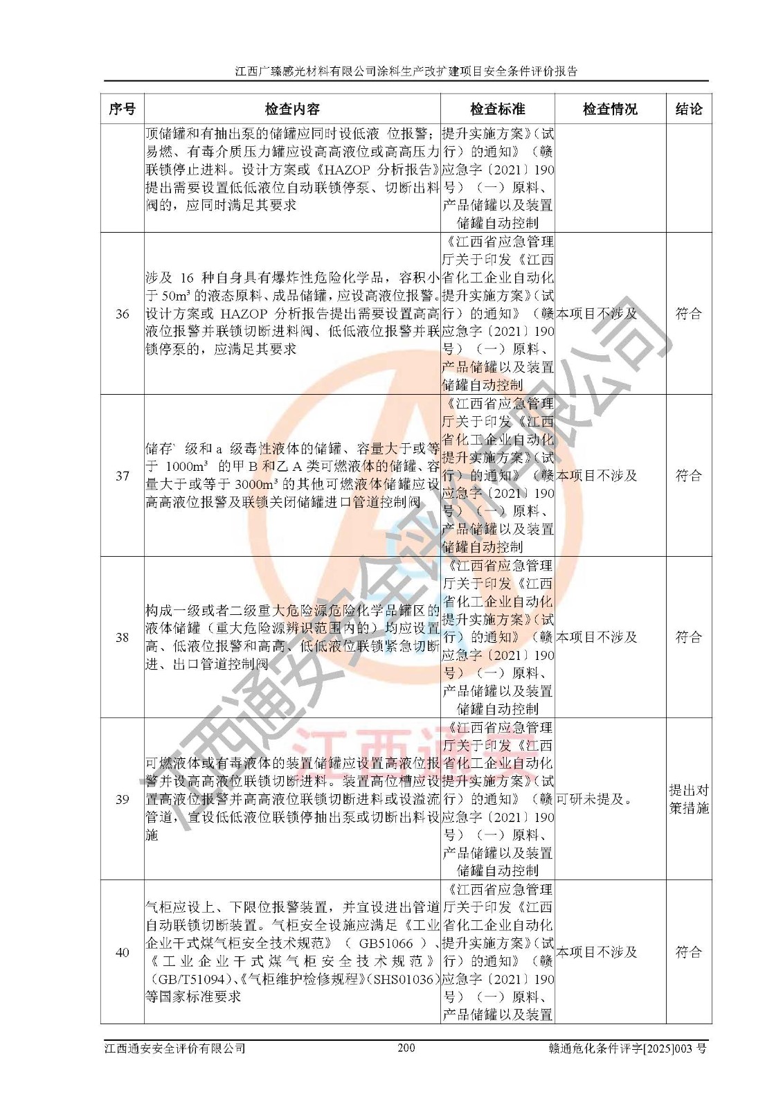 1)本項(xiàng)目取得了龍南市行政審批局下發(fā)的《江西省工業(yè)企業(yè)技術(shù)改造項(xiàng)目備案通知書》(項(xiàng)目統(tǒng)一代碼為:2408-360727-07-02-3253323)、《建設(shè)用地規(guī)劃許可證》、龍南市自然資源局出具對(duì)《關(guān)于為江西廣臻年產(chǎn)2萬噸涂料技改項(xiàng)目出具用地證明的函》的復(fù)函,符合地方產(chǎn)業(yè)發(fā)展規(guī)劃的要求。 2)根據(jù)《危險(xiǎn)化學(xué)品目錄》(2015年版,十部委公告2022年第8號(hào)修訂),本項(xiàng)目原輔料蠟漿、色漿、助劑、二甲苯、正丁醇、乙二醇丁醚、乙二醇乙醚醋酸酯、S100溶劑油、氮?dú)?/span>[壓縮的]及產(chǎn)品溶劑型涂料(色漆)屬于危險(xiǎn)化學(xué)品。本項(xiàng)目不涉及監(jiān)控化學(xué)品、劇毒化學(xué)品、易制爆化學(xué)品、易制毒化學(xué)品、重點(diǎn)監(jiān)管的危險(xiǎn)化學(xué)品、特別管控危險(xiǎn)化學(xué)品、高毒物品。本項(xiàng)目不涉及重點(diǎn)監(jiān)管的危險(xiǎn)化工工藝。 3)根據(jù)《危險(xiǎn)化學(xué)品重大危險(xiǎn)源辨識(shí)》(GB18218-2018),該項(xiàng)目未構(gòu)成危險(xiǎn)化學(xué)品重大危險(xiǎn)源。 4)項(xiàng)目存在的主要危險(xiǎn)因素有:火災(zāi)爆炸、容器爆炸、中毒窒息、灼燙、觸電、**傷害、機(jī)械傷害、高處墜落、物體打擊、淹溺等,存在的主要危害因素有:噪聲與振動(dòng)、高溫、有害化學(xué)物質(zhì)等;引起事故的原因有人的不安全行為、物的不安全狀態(tài)、管理缺陷和環(huán)境不良。其中*主要的危險(xiǎn)有害因素是火災(zāi)爆炸。 5)采用預(yù)先危險(xiǎn)性分析法評(píng)價(jià),結(jié)果為: (1)通過預(yù)先危險(xiǎn)(PHA)分析可知,項(xiàng)目廠址及總體布局單元存在周邊環(huán)境相互影響,發(fā)生異常情況,可對(duì)周邊企業(yè)生產(chǎn)經(jīng)營(yíng)活動(dòng)、人員活動(dòng)產(chǎn)生影響;存在自然條件影響,可因雷擊、暴雨等引起事故;存在**傷害、建筑物危害,其固有的危險(xiǎn)性等級(jí)為Ⅱ級(jí),屬于“臨界的”,應(yīng)予以排除、采取控制措施因素。 (2)生產(chǎn)作業(yè)存在的危險(xiǎn)因素包括火災(zāi)爆炸、觸電、灼燙、中毒窒息固有的危險(xiǎn)等級(jí)為Ⅲ級(jí),屬于“危險(xiǎn)的”,可能導(dǎo)致人員傷亡和系統(tǒng)損壞的因素,需要采取防范和對(duì)策措施的因素;其它危險(xiǎn)因素固有的危險(xiǎn)等級(jí)為Ⅱ級(jí),屬于“臨界的”,應(yīng)予以排除、采取控制措施因素。 (3)生產(chǎn)作業(yè)存在的噪聲、粉塵、高溫、有害化學(xué)物質(zhì)的危險(xiǎn)有害因素等級(jí)為Ⅱ級(jí),屬于“臨界的”,應(yīng)予以排除、采取控制措施因素。 6)危險(xiǎn)度評(píng)價(jià)分析,結(jié)果為: 生產(chǎn)裝置危險(xiǎn)度評(píng)價(jià)分析:3#甲類車間為中度危險(xiǎn)(Ⅱ級(jí))。 儲(chǔ)存單元危險(xiǎn)度評(píng)價(jià)分析:1#涂料成品倉庫為**危險(xiǎn)(Ⅰ級(jí))、5#涂料原料倉庫為**危險(xiǎn)(Ⅰ級(jí))、6#涂料原料倉庫為中度危險(xiǎn)(Ⅱ級(jí))、7#涂料原料倉庫為中度危險(xiǎn)(Ⅱ級(jí))、9#危廢倉庫為中度危險(xiǎn)(Ⅱ級(jí))、2#丙類原料倉庫為中度危險(xiǎn)(Ⅱ級(jí))、甲類罐區(qū)為**危險(xiǎn)(Ⅰ級(jí))。 7)作業(yè)條件危險(xiǎn)性評(píng)價(jià)結(jié)果:在選定的評(píng)價(jià)單元中,其危險(xiǎn)分值均在70以下,危險(xiǎn)程度基本屬于“可能危險(xiǎn)”、“稍有危險(xiǎn)”范圍,作業(yè)條件相對(duì)安全。企業(yè)經(jīng)營(yíng)過程中首先應(yīng)重點(diǎn)加強(qiáng)對(duì)甲類生產(chǎn)車間、甲類倉庫、儲(chǔ)罐區(qū)的危險(xiǎn)因素的嚴(yán)格控制,注重日常安全管理;其次要建立健全完善的安全生產(chǎn)責(zé)任制、安全管理制度、安全技術(shù)操作規(guī)程并**其貫徹落實(shí);第三要認(rèn)真抓好操作人員、管理人員的安全知識(shí)和操作技能的培訓(xùn),**人員具有與工程技術(shù)水平相適應(yīng)的技術(shù)素質(zhì)和安全素質(zhì),**安全作業(yè)。 8)項(xiàng)目建設(shè)場(chǎng)地符合當(dāng)?shù)匾?guī)劃要求,建設(shè)場(chǎng)地通過合理規(guī)劃,其選址、周邊環(huán)境、總平面布置、交通運(yùn)輸?shù)饶芊稀吨腥A人民共和國安全生產(chǎn)法》《危險(xiǎn)化學(xué)品安全管理?xiàng)l例》《建筑設(shè)計(jì)防火規(guī)范》《精細(xì)化工企業(yè)工程設(shè)計(jì)防火標(biāo)準(zhǔn)》等法規(guī)、標(biāo)準(zhǔn)、規(guī)范要求。 廠址地區(qū)地震活動(dòng)相對(duì)較弱,災(zāi)害性天氣出現(xiàn)頻率稍高,自然災(zāi)害對(duì)項(xiàng)目建設(shè)具有**影響,通過采取相應(yīng)的防護(hù)措施,自然條件適宜建設(shè)。 9)建設(shè)項(xiàng)目符合**產(chǎn)業(yè)政策的要求;選擇工藝為現(xiàn)行成熟工藝,其安全可靠性可得到**。 10)本報(bào)告已根據(jù)有關(guān)安全生產(chǎn)法律、法規(guī)、規(guī)章和**標(biāo)準(zhǔn)、行業(yè)標(biāo)準(zhǔn),并嚴(yán)格執(zhí)行省委辦公廳省**辦公廳《關(guān)于全面加強(qiáng)危險(xiǎn)化學(xué)品安全生產(chǎn)工作的實(shí)施意見》(贛辦發(fā)[2020]32號(hào))及鄱陽湖生態(tài)經(jīng)濟(jì)區(qū)、長(zhǎng)江經(jīng)濟(jì)帶、“五河一湖”相關(guān)政策規(guī)定,客觀