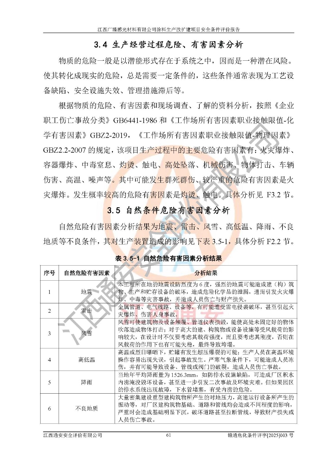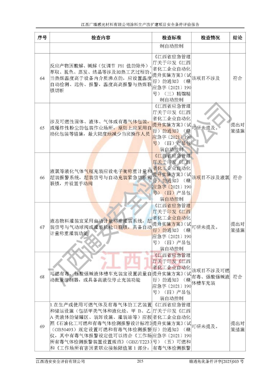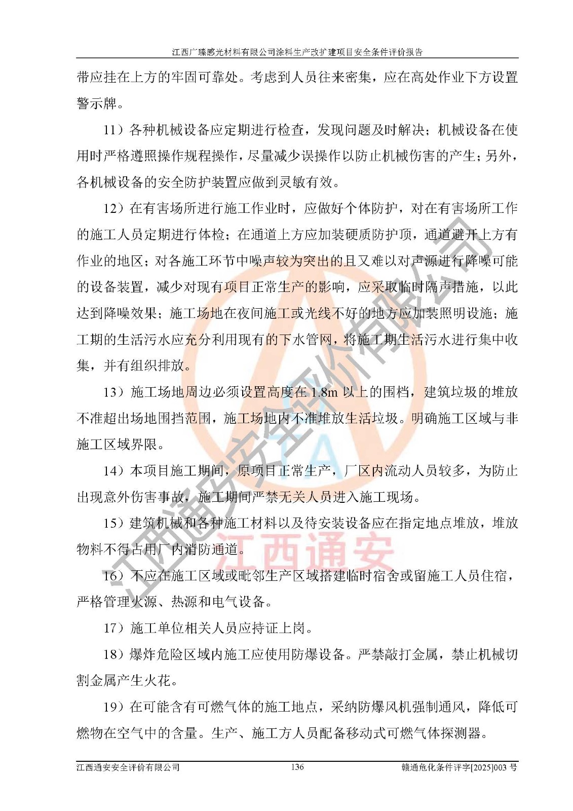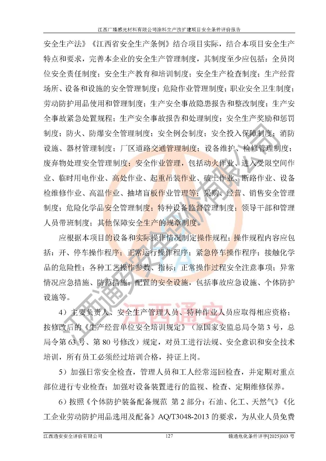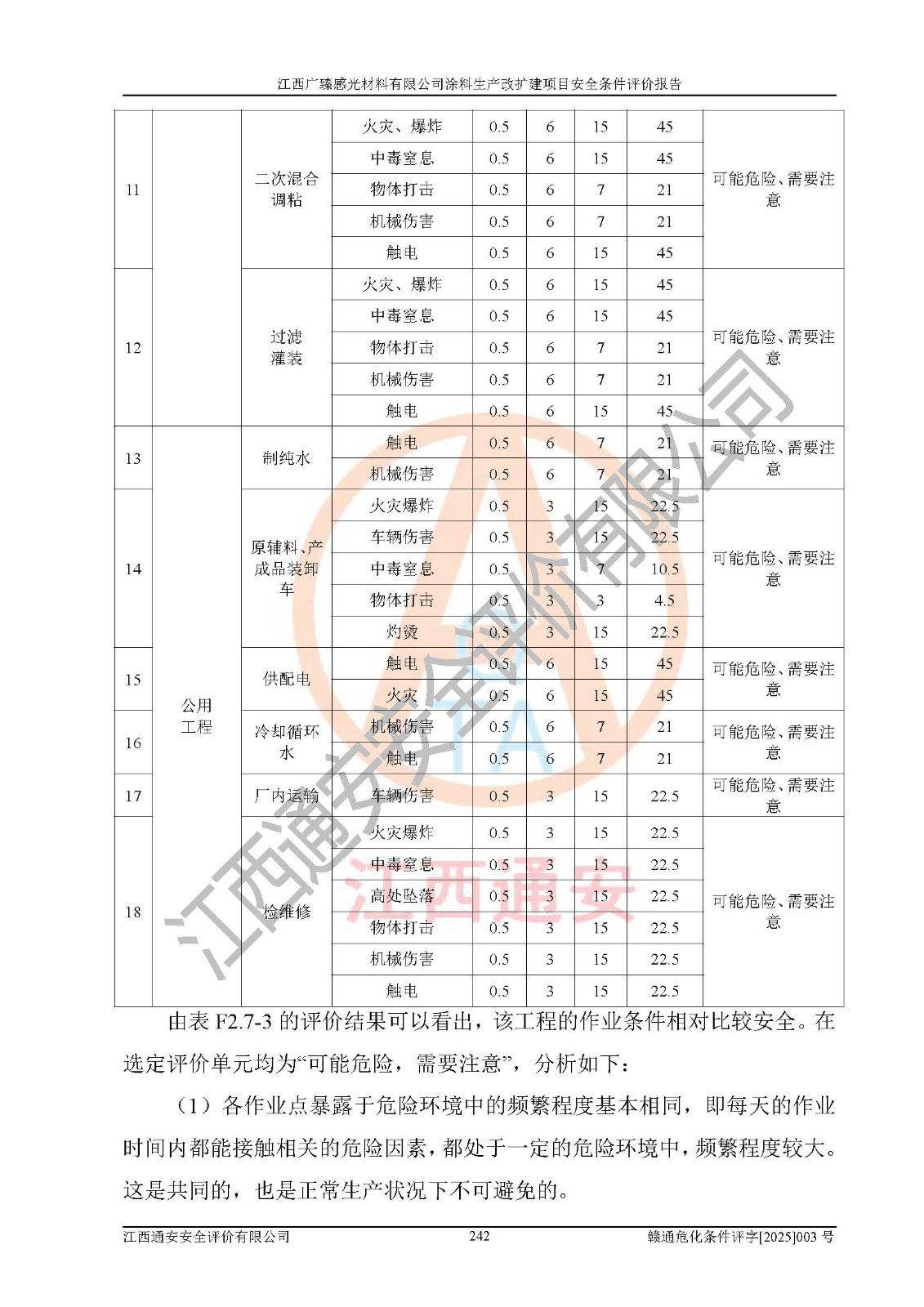 1)本項(xiàng)目取得了龍南市行政審批局下發(fā)的《江西省工業(yè)企業(yè)技術(shù)改造項(xiàng)目備案通知書》(項(xiàng)目統(tǒng)一代碼為:2408-360727-07-02-3253323)、《建設(shè)用地規(guī)劃許可證》、龍南市自然資源局出具對(duì)《關(guān)于為江西廣臻年產(chǎn)2萬噸涂料技改項(xiàng)目出具用地證明的函》的復(fù)函,符合地方產(chǎn)業(yè)發(fā)展規(guī)劃的要求。 2)根據(jù)《危險(xiǎn)化學(xué)品目錄》(2015年版,十部委公告2022年第8號(hào)修訂),本項(xiàng)目原輔料蠟漿、色漿、助劑、二甲苯、正丁醇、乙二醇丁醚、乙二醇乙醚醋酸酯、S100溶劑油、氮?dú)?/span>[壓縮的]及產(chǎn)品溶劑型涂料(色漆)屬于危險(xiǎn)化學(xué)品。本項(xiàng)目不涉及監(jiān)控化學(xué)品、劇毒化學(xué)品、易制爆化學(xué)品、易制毒化學(xué)品、重點(diǎn)監(jiān)管的危險(xiǎn)化學(xué)品、特別管控危險(xiǎn)化學(xué)品、高毒物品。本項(xiàng)目不涉及重點(diǎn)監(jiān)管的危險(xiǎn)化工工藝。 3)根據(jù)《危險(xiǎn)化學(xué)品重大危險(xiǎn)源辨識(shí)》(GB18218-2018),該項(xiàng)目未構(gòu)成危險(xiǎn)化學(xué)品重大危險(xiǎn)源。 4)項(xiàng)目存在的主要危險(xiǎn)因素有:火災(zāi)爆炸、容器爆炸、中毒窒息、灼燙、觸電、**傷害、機(jī)械傷害、高處墜落、物體打擊、淹溺等,存在的主要危害因素有:噪聲與振動(dòng)、高溫、有害化學(xué)物質(zhì)等;引起事故的原因有人的不安全行為、物的不安全狀態(tài)、管理缺陷和環(huán)境不良。其中*主要的危險(xiǎn)有害因素是火災(zāi)爆炸。 5)采用預(yù)先危險(xiǎn)性分析法評(píng)價(jià),結(jié)果為: (1)通過預(yù)先危險(xiǎn)(PHA)分析可知,項(xiàng)目廠址及總體布局單元存在周邊環(huán)境相互影響,發(fā)生異常情況,可對(duì)周邊企業(yè)生產(chǎn)經(jīng)營(yíng)活動(dòng)、人員活動(dòng)產(chǎn)生影響;存在自然條件影響,可因雷擊、暴雨等引起事故;存在**傷害、建筑物危害,其固有的危險(xiǎn)性等級(jí)為Ⅱ級(jí),屬于“臨界的”,應(yīng)予以排除、采取控制措施因素。 (2)生產(chǎn)作業(yè)存在的危險(xiǎn)因素包括火災(zāi)爆炸、觸電、灼燙、中毒窒息固有的危險(xiǎn)等級(jí)為Ⅲ級(jí),屬于“危險(xiǎn)的”,可能導(dǎo)致人員傷亡和系統(tǒng)損壞的因素,需要采取防范和對(duì)策措施的因素;其它危險(xiǎn)因素固有的危險(xiǎn)等級(jí)為Ⅱ級(jí),屬于“臨界的”,應(yīng)予以排除、采取控制措施因素。 (3)生產(chǎn)作業(yè)存在的噪聲、粉塵、高溫、有害化學(xué)物質(zhì)的危險(xiǎn)有害因素等級(jí)為Ⅱ級(jí),屬于“臨界的”,應(yīng)予以排除、采取控制措施因素。 6)危險(xiǎn)度評(píng)價(jià)分析,結(jié)果為: 生產(chǎn)裝置危險(xiǎn)度評(píng)價(jià)分析:3#甲類車間為中度危險(xiǎn)(Ⅱ級(jí))。 儲(chǔ)存單元危險(xiǎn)度評(píng)價(jià)分析:1#涂料成品倉庫為**危險(xiǎn)(Ⅰ級(jí))、5#涂料原料倉庫為**危險(xiǎn)(Ⅰ級(jí))、6#涂料原料倉庫為中度危險(xiǎn)(Ⅱ級(jí))、7#涂料原料倉庫為中度危險(xiǎn)(Ⅱ級(jí))、9#危廢倉庫為中度危險(xiǎn)(Ⅱ級(jí))、2#丙類原料倉庫為中度危險(xiǎn)(Ⅱ級(jí))、甲類罐區(qū)為**危險(xiǎn)(Ⅰ級(jí))。 7)作業(yè)條件危險(xiǎn)性評(píng)價(jià)結(jié)果:在選定的評(píng)價(jià)單元中,其危險(xiǎn)分值均在70以下,危險(xiǎn)程度基本屬于“可能危險(xiǎn)”、“稍有危險(xiǎn)”范圍,作業(yè)條件相對(duì)安全。企業(yè)經(jīng)營(yíng)過程中首先應(yīng)重點(diǎn)加強(qiáng)對(duì)甲類生產(chǎn)車間、甲類倉庫、儲(chǔ)罐區(qū)的危險(xiǎn)因素的嚴(yán)格控制,注重日常安全管理;其次要建立健全完善的安全生產(chǎn)責(zé)任制、安全管理制度、安全技術(shù)操作規(guī)程并**其貫徹落實(shí);第三要認(rèn)真抓好操作人員、管理人員的安全知識(shí)和操作技能的培訓(xùn),**人員具有與工程技術(shù)水平相適應(yīng)的技術(shù)素質(zhì)和安全素質(zhì),**安全作業(yè)。 8)項(xiàng)目建設(shè)場(chǎng)地符合當(dāng)?shù)匾?guī)劃要求,建設(shè)場(chǎng)地通過合理規(guī)劃,其選址、周邊環(huán)境、總平面布置、交通運(yùn)輸?shù)饶芊稀吨腥A人民共和國安全生產(chǎn)法》《危險(xiǎn)化學(xué)品安全管理?xiàng)l例》《建筑設(shè)計(jì)防火規(guī)范》《精細(xì)化工企業(yè)工程設(shè)計(jì)防火標(biāo)準(zhǔn)》等法規(guī)、標(biāo)準(zhǔn)、規(guī)范要求。 廠址地區(qū)地震活動(dòng)相對(duì)較弱,災(zāi)害性天氣出現(xiàn)頻率稍高,自然災(zāi)害對(duì)項(xiàng)目建設(shè)具有**影響,通過采取相應(yīng)的防護(hù)措施,自然條件適宜建設(shè)。 9)建設(shè)項(xiàng)目符合**產(chǎn)業(yè)政策的要求;選擇工藝為現(xiàn)行成熟工藝,其安全可靠性可得到**。 10)本報(bào)告已根據(jù)有關(guān)安全生產(chǎn)法律、法規(guī)、規(guī)章和**標(biāo)準(zhǔn)、行業(yè)標(biāo)準(zhǔn),并嚴(yán)格執(zhí)行省委辦公廳省**辦公廳《關(guān)于全面加強(qiáng)危險(xiǎn)化學(xué)品安全生產(chǎn)工作的實(shí)施意見》(贛辦發(fā)[2020]32號(hào))及鄱陽湖生態(tài)經(jīng)濟(jì)區(qū)、長(zhǎng)江經(jīng)濟(jì)帶、“五河一湖”相關(guān)政策規(guī)定,客觀