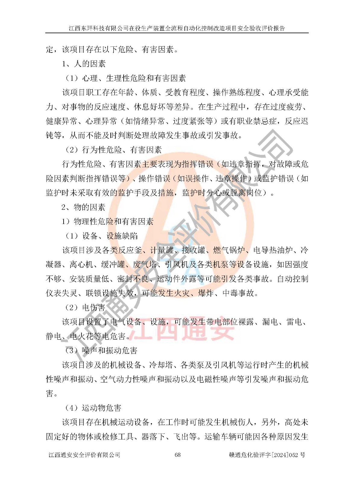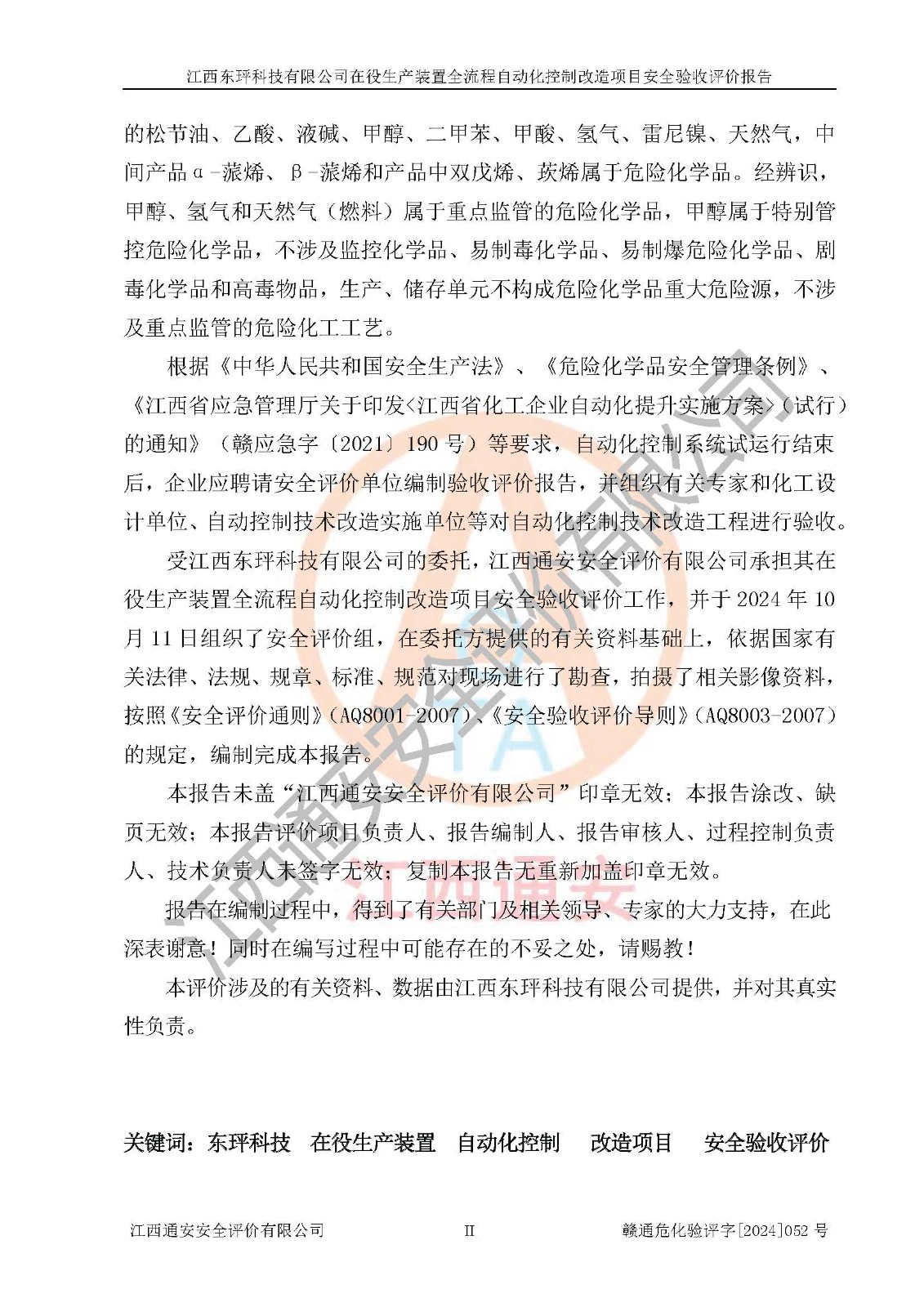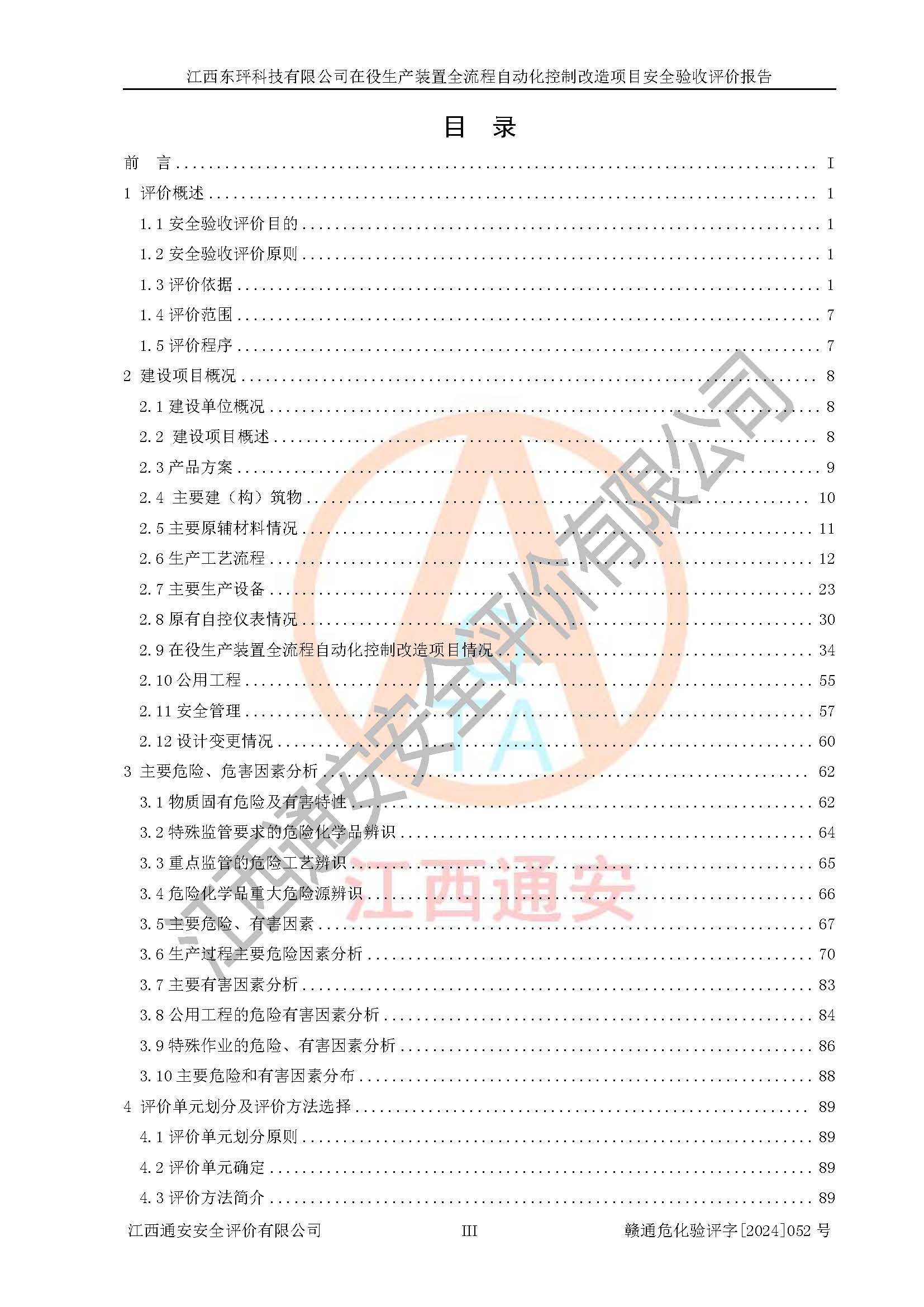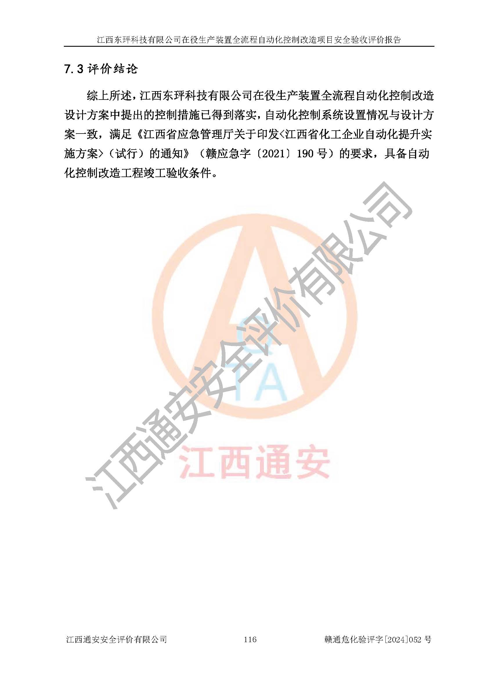 評價報告名稱 | 江西東玶科技有限公司在役生產(chǎn)裝置全流程自動化控制改造項目安全驗收評價報告 | ||||||