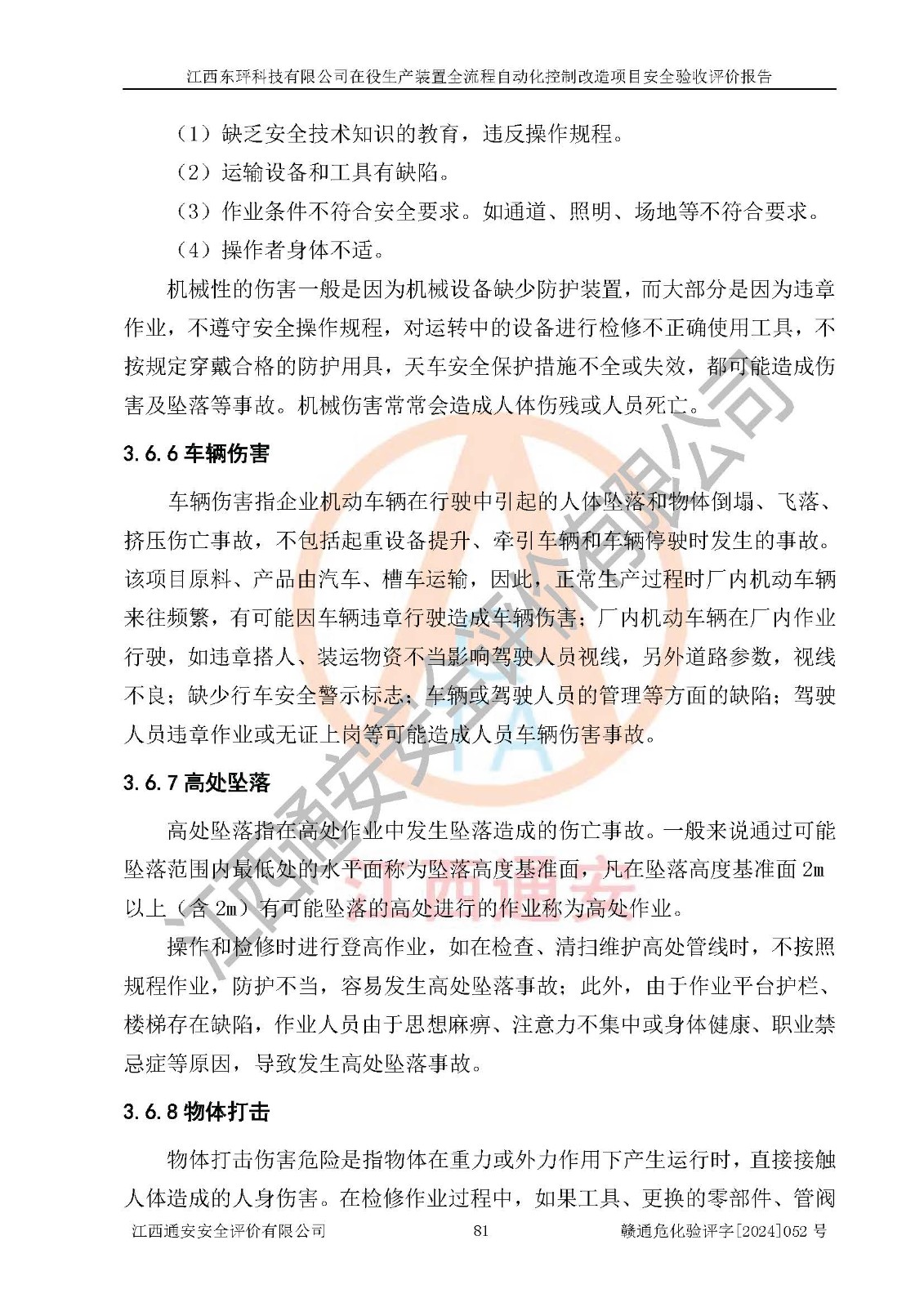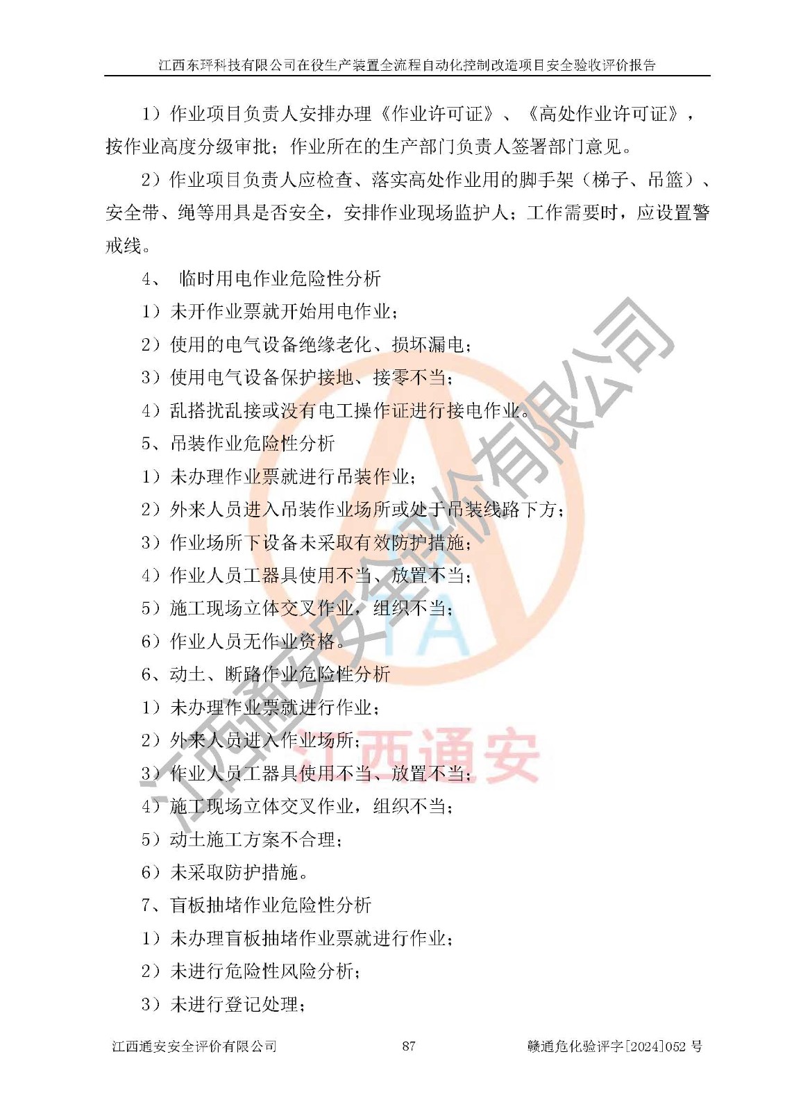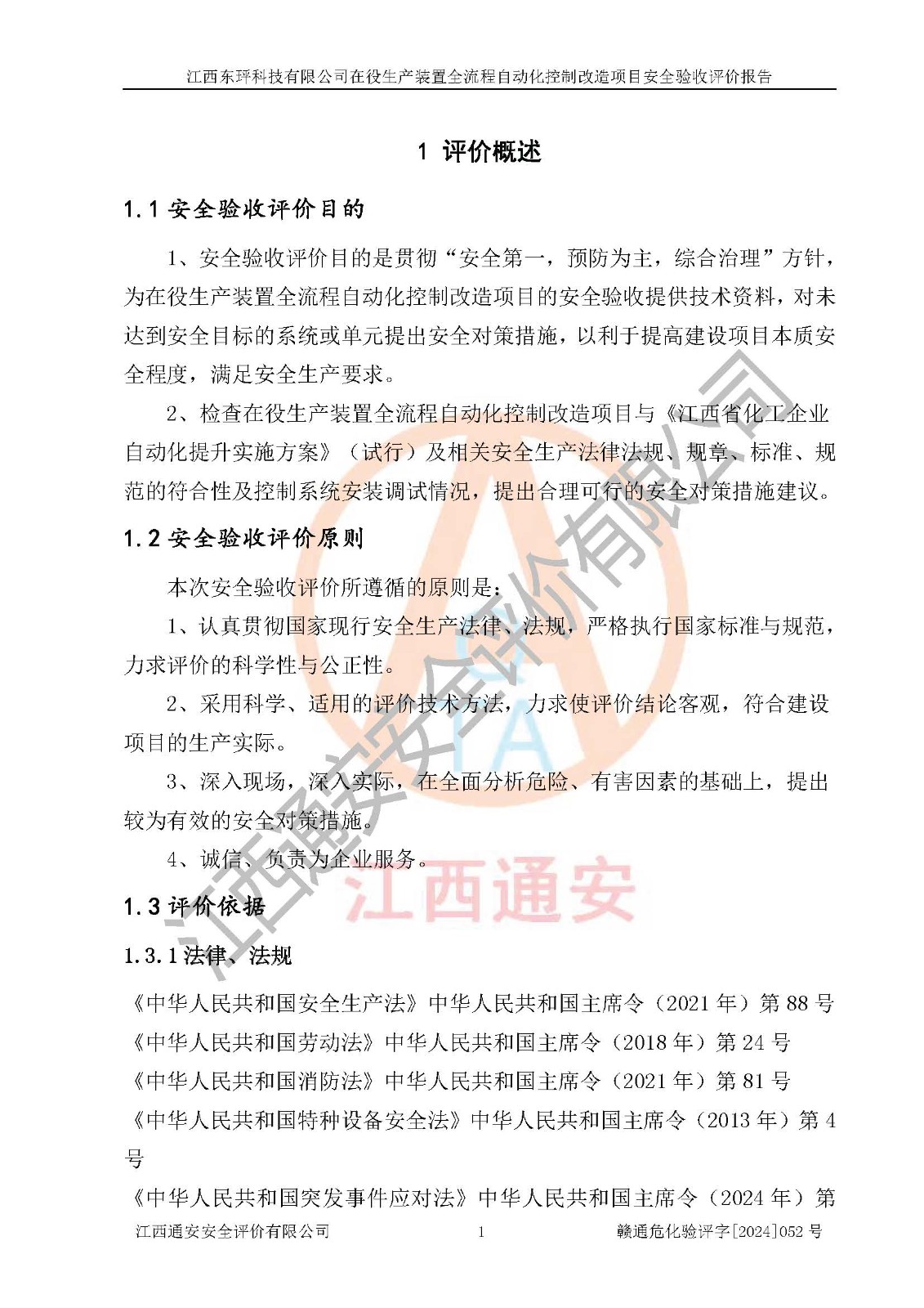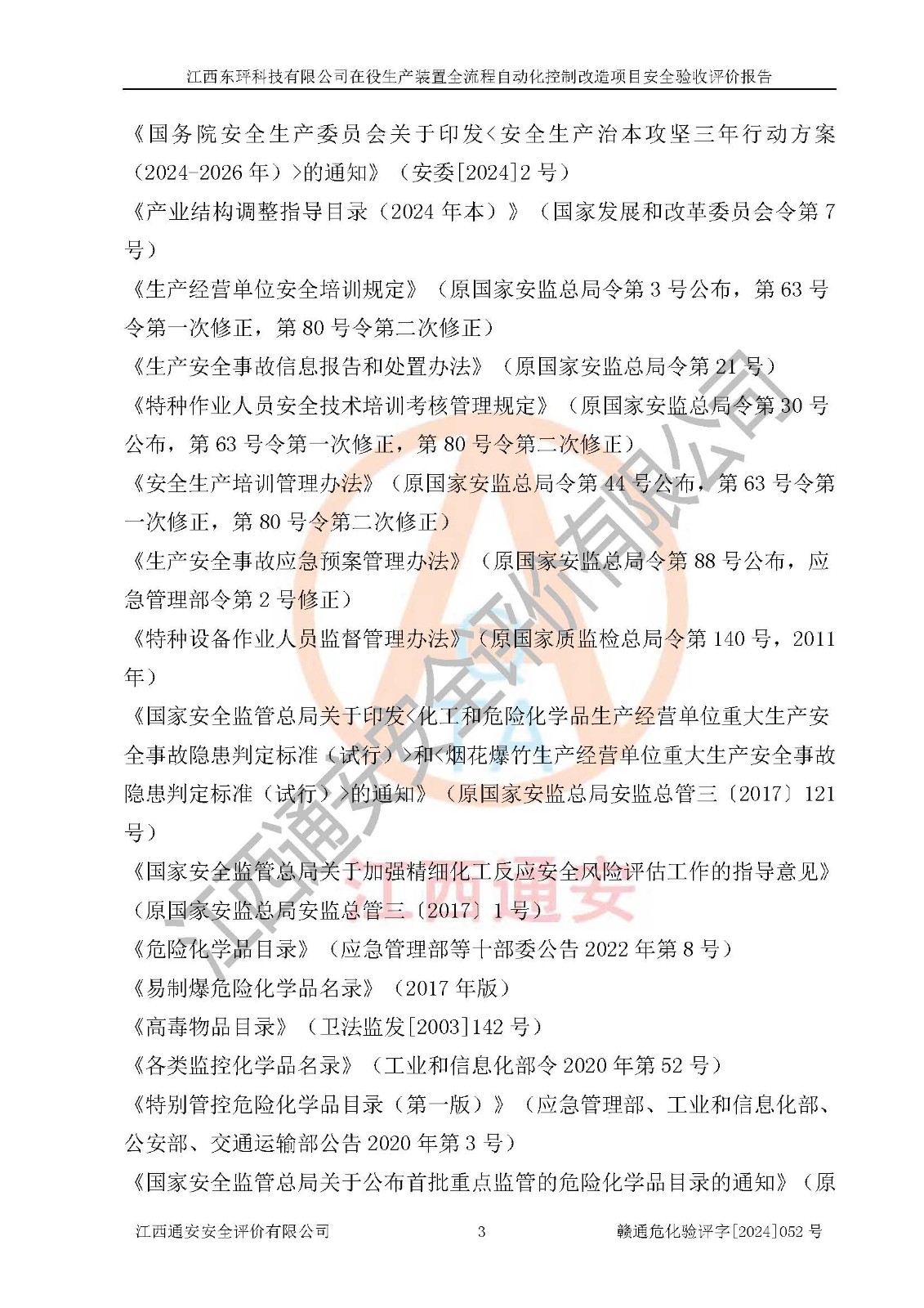 評價報告名稱 | 江西東玶科技有限公司在役生產(chǎn)裝置全流程自動化控制改造項目安全驗收評價報告 | ||||||