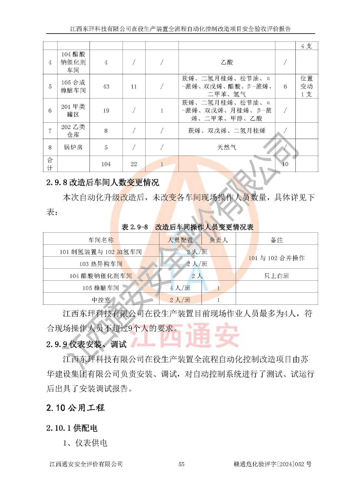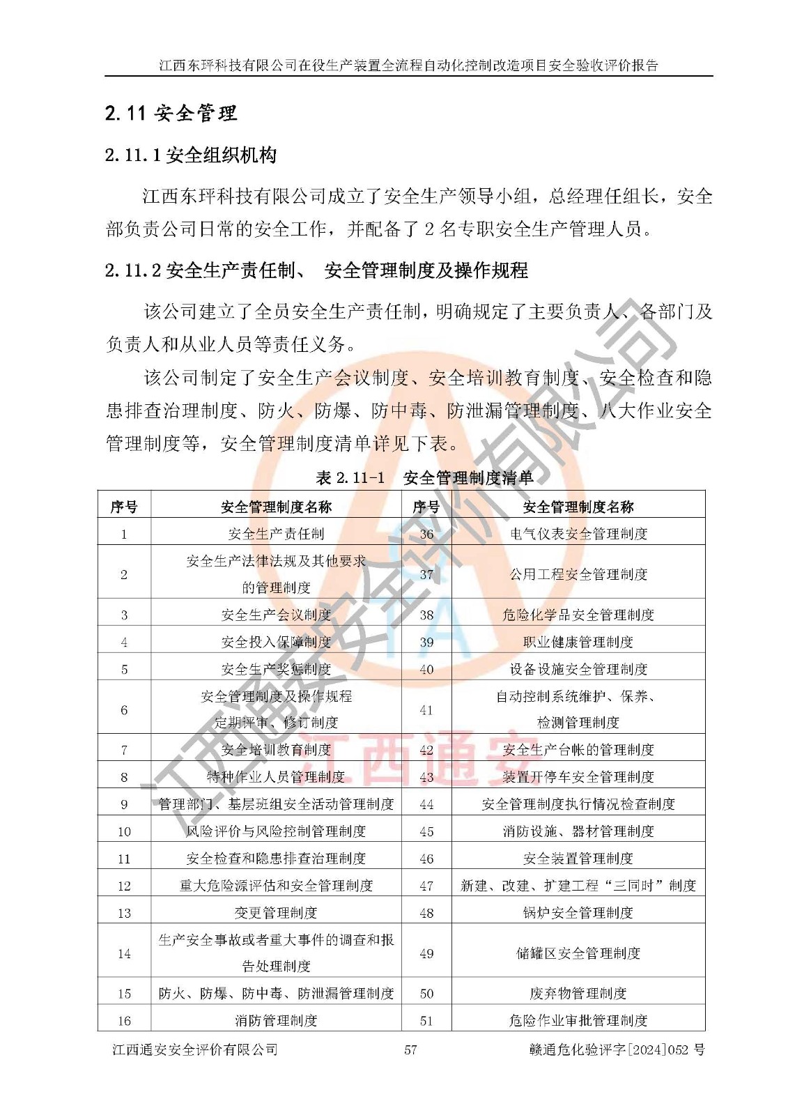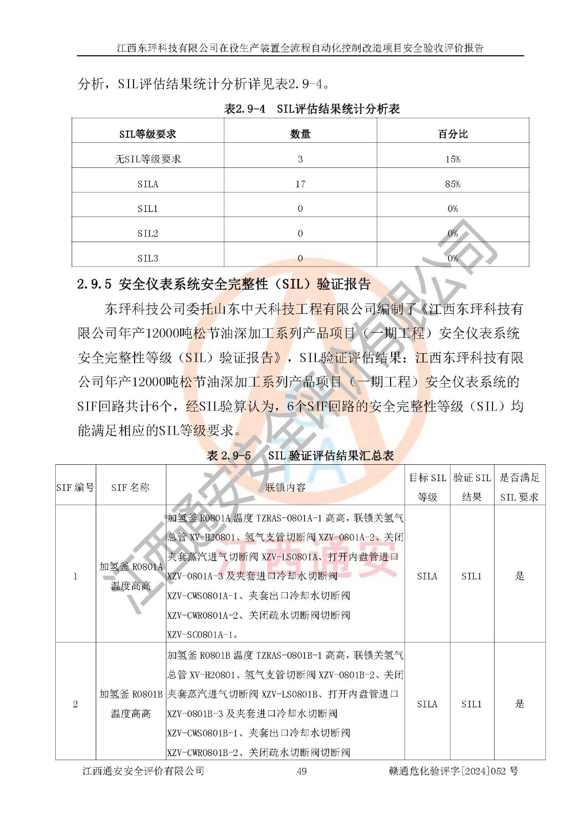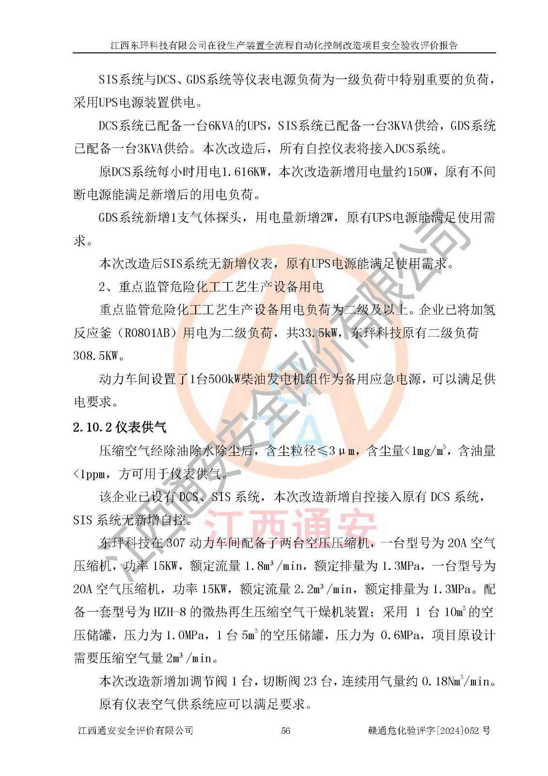評價結論 | 江西睿達新能源科技有限公司在役生產(chǎn)裝置自動化控制改造設計方案中提出的控制措施已得到落實,自動化控制系統(tǒng)設置情況與設計方案一致,滿足《江西省應急管理廳關于印發(fā)<江西省化工企業(yè)自動化提升實施方案>(試行)的通知》(贛應急字〔2021〕190號)的要求,具備自動化控制改造工程竣工驗收條件。 | ||||||