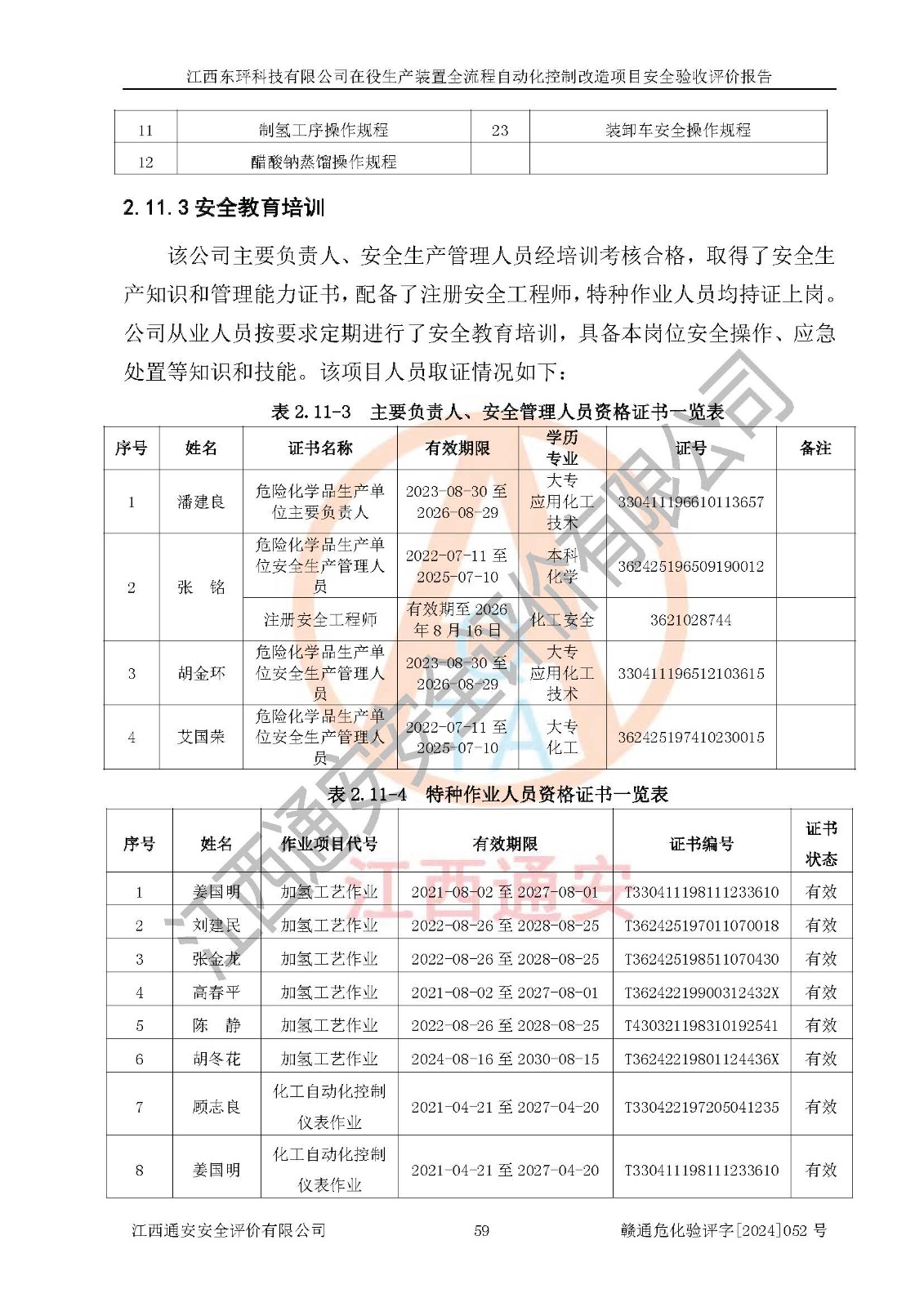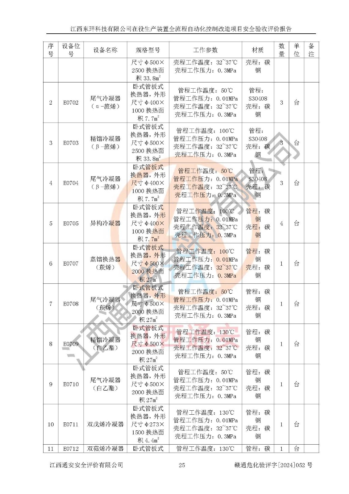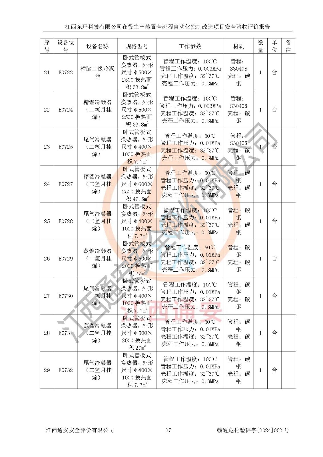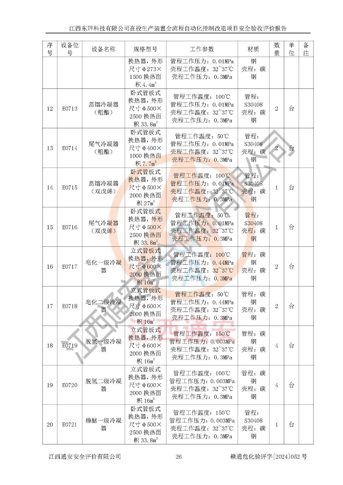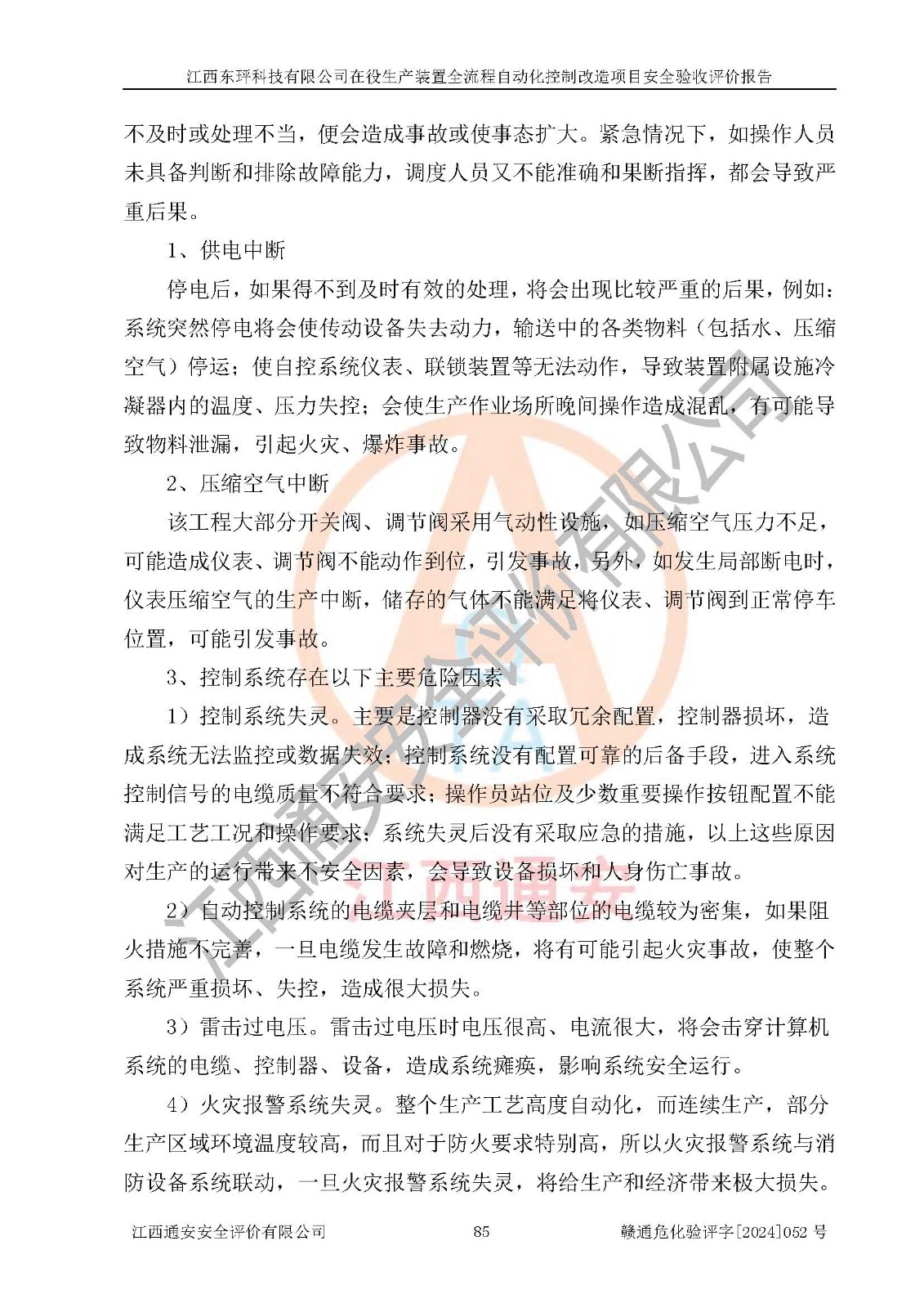 評價結論 | 江西睿達新能源科技有限公司在役生產(chǎn)裝置自動化控制改造設計方案中提出的控制措施已得到落實,自動化控制系統(tǒng)設置情況與設計方案一致,滿足《江西省應急管理廳關于印發(fā)<江西省化工企業(yè)自動化提升實施方案>(試行)的通知》(贛應急字〔2021〕190號)的要求,具備自動化控制改造工程竣工驗收條件。 | ||||||