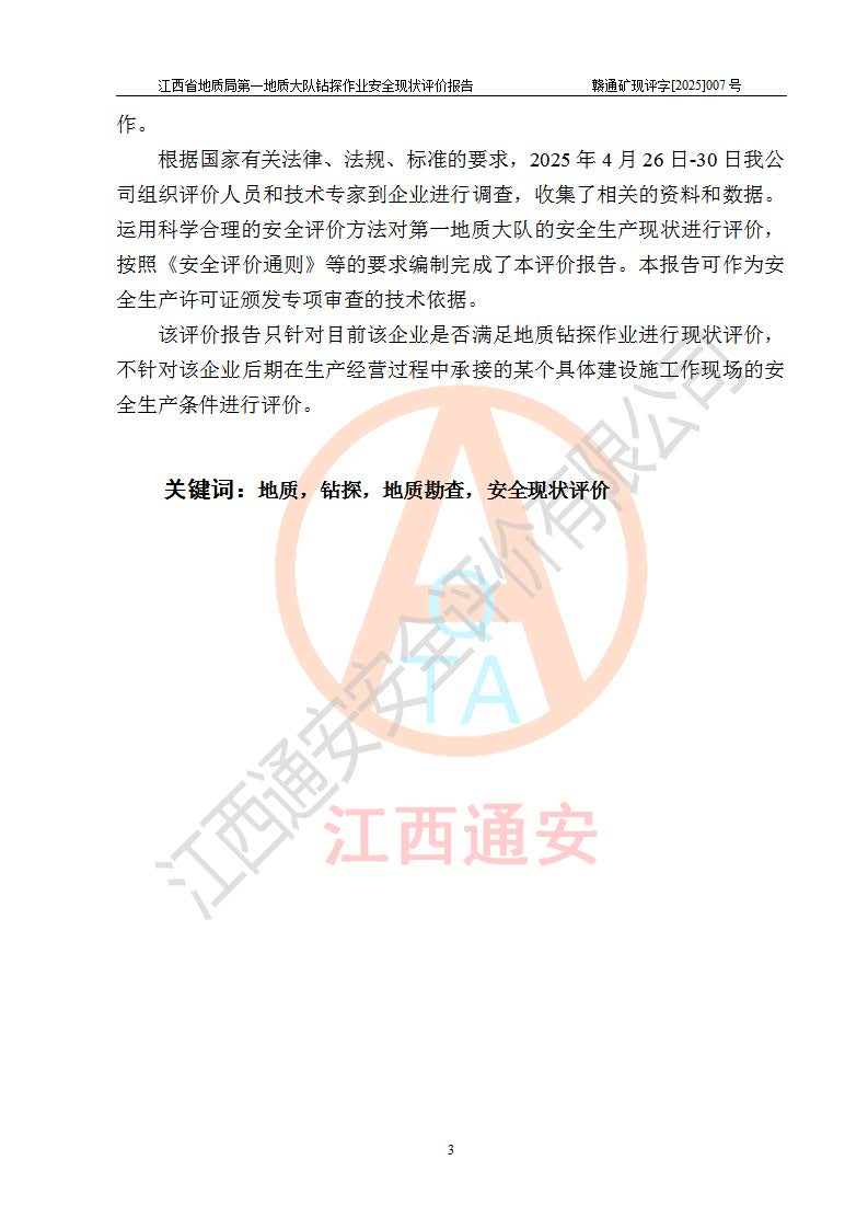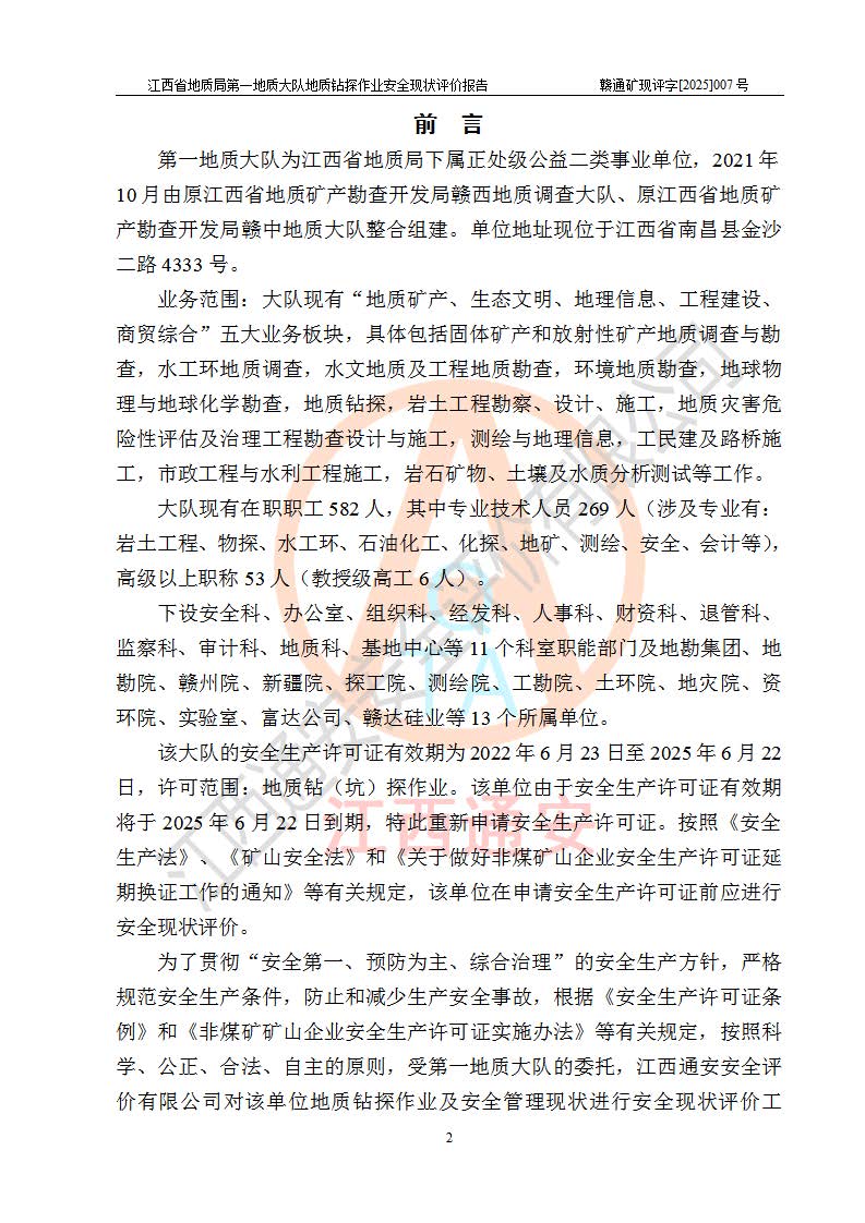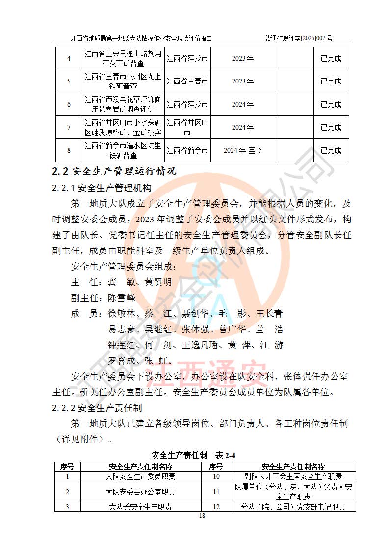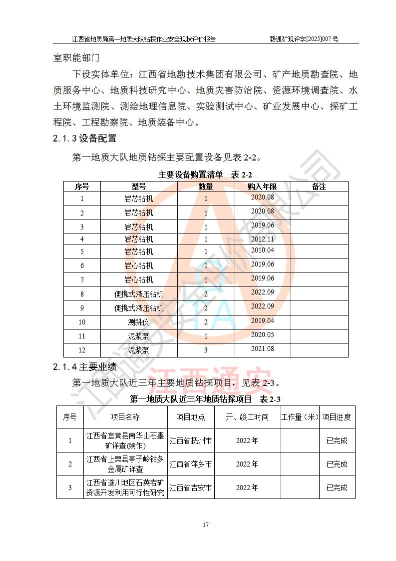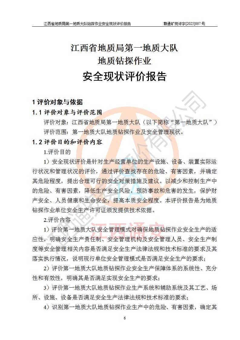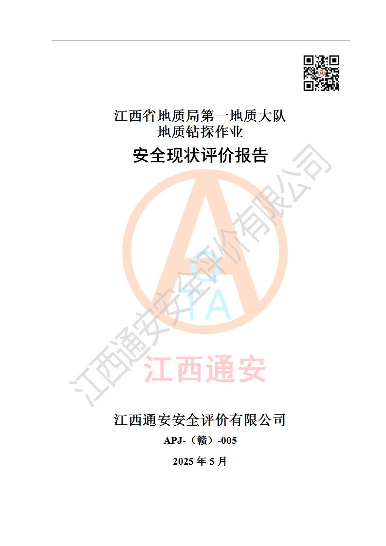 報(bào)告名稱 | 江西省地質(zhì)局**地質(zhì)大隊(duì)地質(zhì)鉆探作業(yè)安全現(xiàn)狀評價(jià)報(bào)告 | |||||