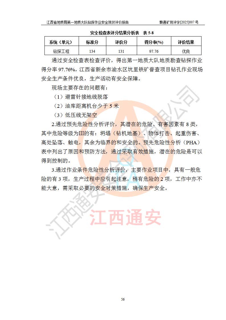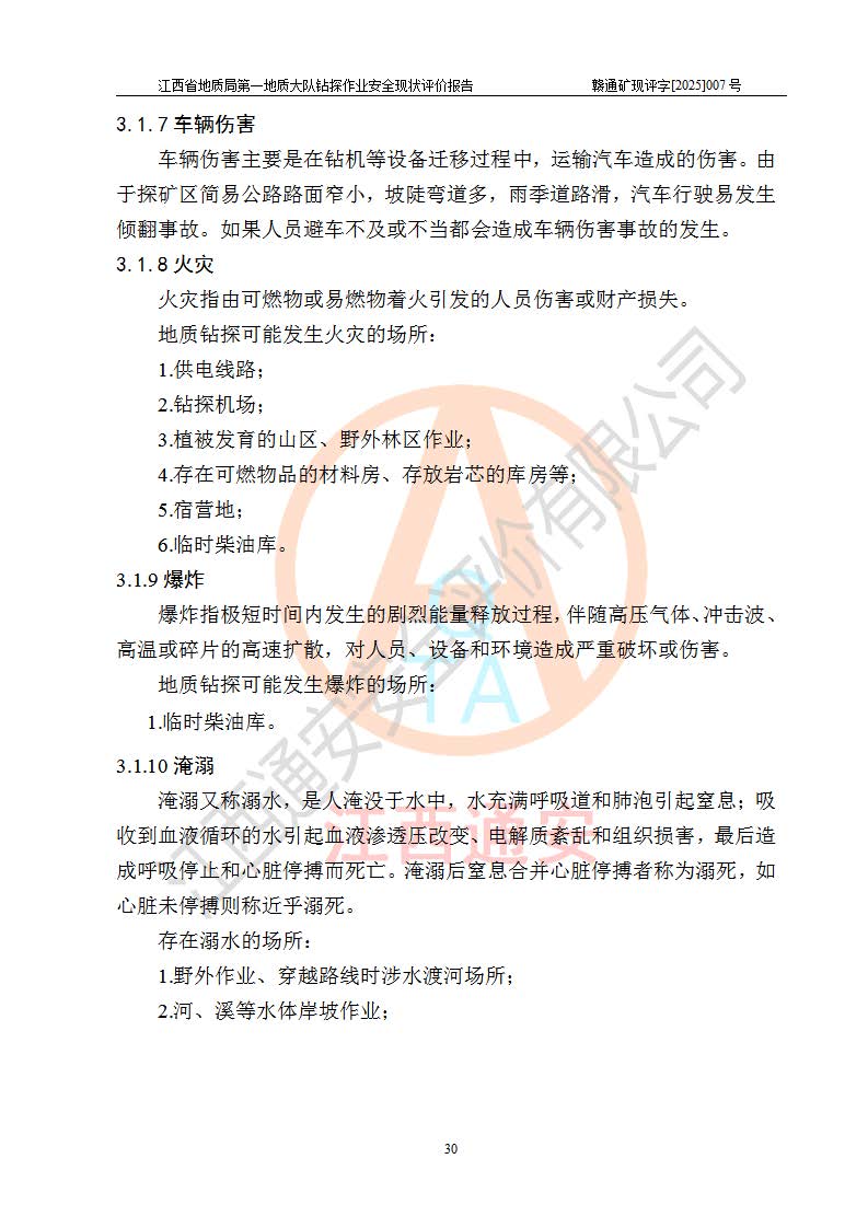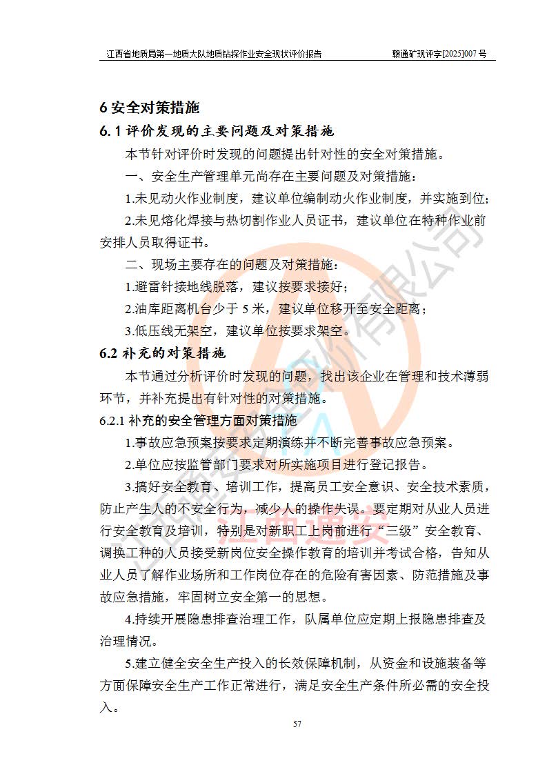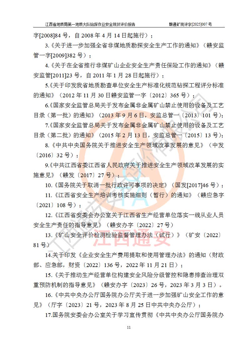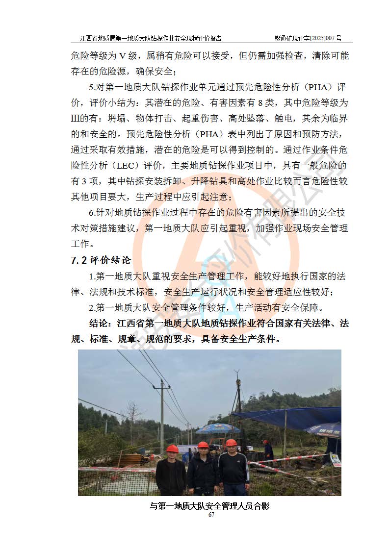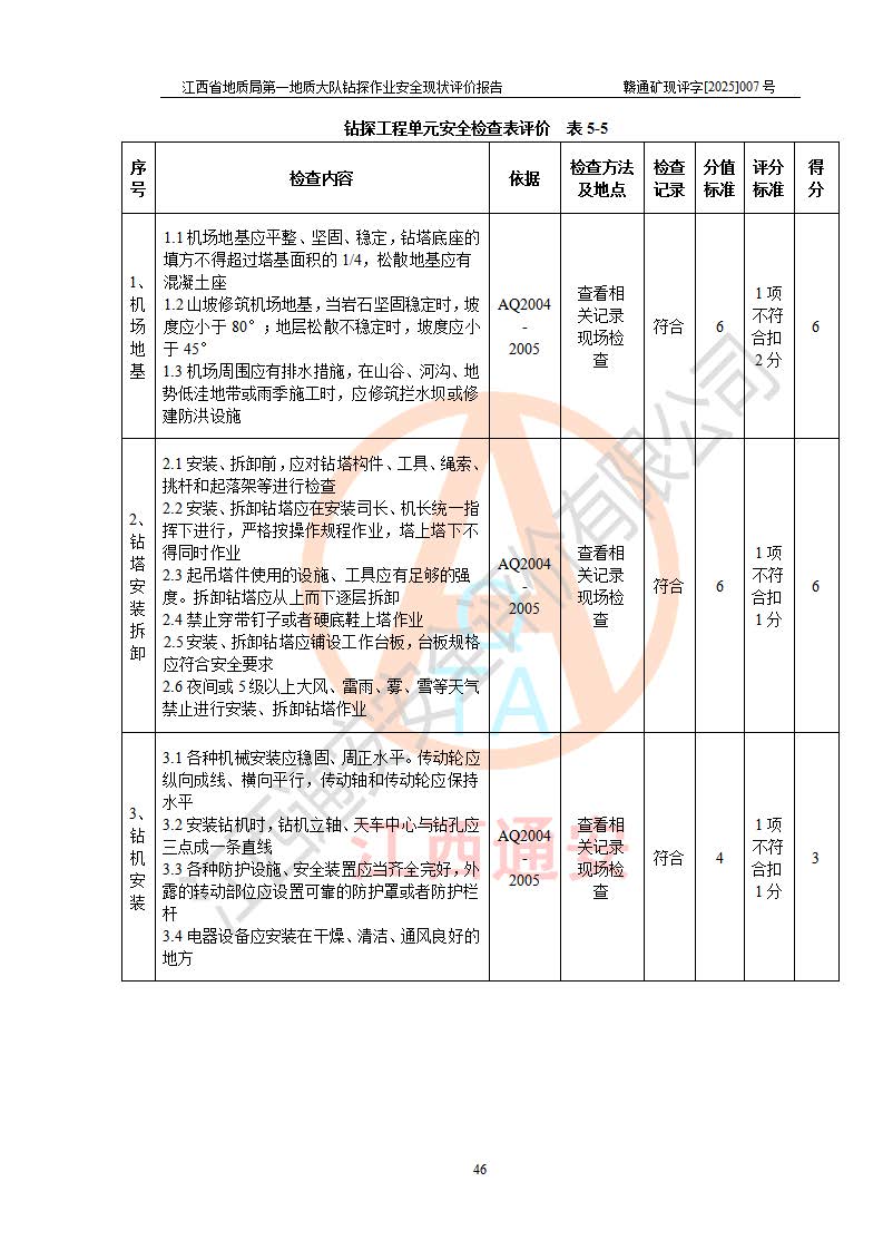報(bào)告名稱 | 江西省地質(zhì)局**地質(zhì)大隊(duì)地質(zhì)鉆探作業(yè)安全現(xiàn)狀評價(jià)報(bào)告 | |||||